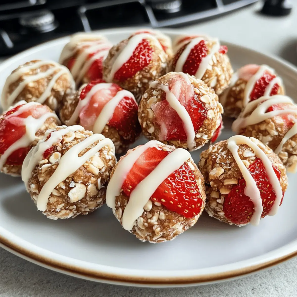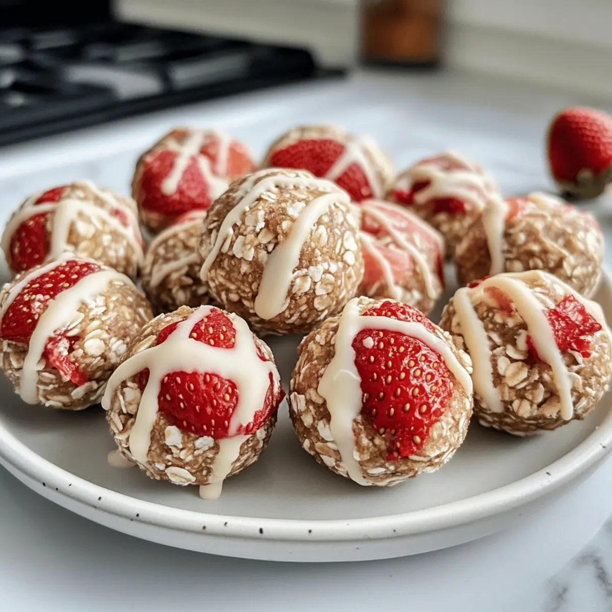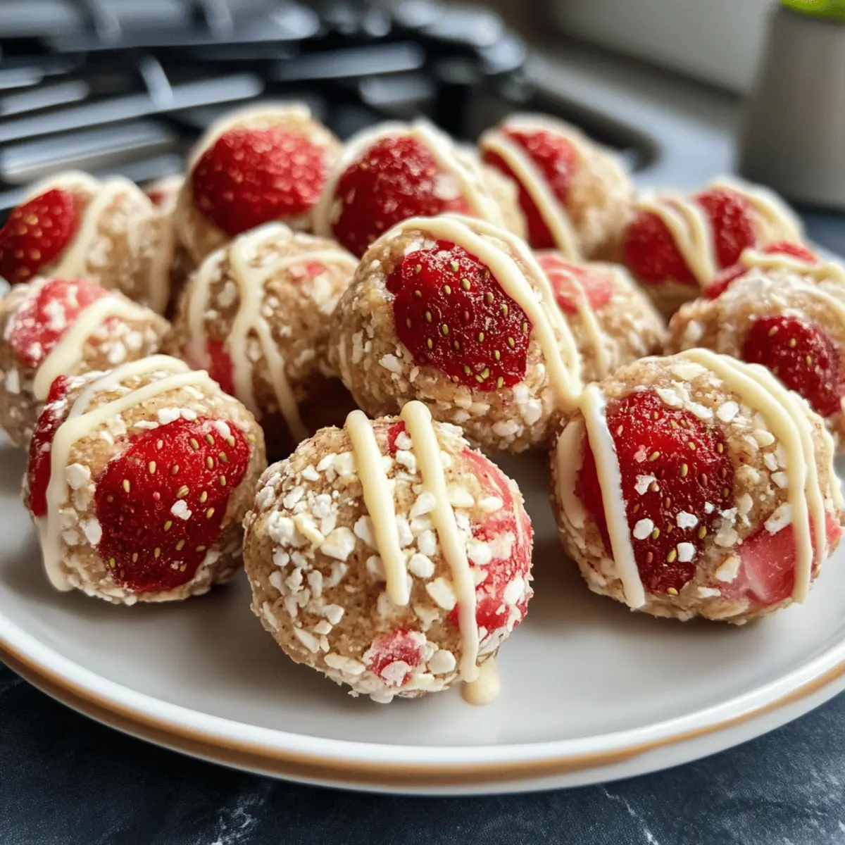 Die Vorstellung, dass man die klassische Erdbeer-Sahne-Torte in eine gesunde Snack-Option verwandeln kann, ist einfach unwiderstehlich. Mit meinen Strawberry Shortcake Energy Bites kannst du die nostalgischen Aromen dieser beliebten Nachspeise genießen, ohne Reue zu empfinden. Diese gesunden Snacks sind nicht nur schnell zuzubereiten und ohne Backen, sie liefern auch die Energien, die du nach dem Training oder während eines langen Arbeitstags brauchst. Die Kombination aus cremiger Cashew, süßen Medjool-Daten und spritzigen gefriergetrockneten Erdbeeren ist ein Geschmackserlebnis, das dich sofort in Erinnerungen schwelgen lässt. Neugierig, wie du diese kleinen Wunder zaubern kannst? Warum wirst du diese Energie-Bällchen lieben? Einfachheit: Die Zubereitung ist unkompliziert und benötigt nur wenig Küchentechnik. Perfekt für alle, die sich nicht mit aufwendigen Rezepten beschäftigen möchten. Gesunde Zutaten: Mit Cashewbutter, Medjool-Daten und gefriergetrockneten Erdbeeren hast du einen Snack voller Nährstoffe, der trotzdem süß ist. Das macht die Bällchen ideal für eine gesunde Ernährung. Vielfältigkeit: Du kannst die Zutaten nach deinem Geschmack anpassen, sei es die nuttige Basis oder die fruchtige Kralle. Probiere beispielsweise verschiedene Nüsse oder Früchte für abwechslungsreiche Geschmackserlebnisse. Sofortige Energie: Diese kleinen Bällchen sind perfekt nach dem Training oder als Snack für zwischendurch. Sie liefern schnell die nötige Energie und stillen Heißhungerattacken. Crowd-Pleaser: Vor Freund:innen oder Familie sind diese Snacks der Hit! Ihre ansprechende Optik und der köstliche Geschmack machen sie zur perfekten Ergänzung bei jedem Treffen. Wenn du mehr zur Zubereitung erfahren möchtest, schaue dir auch die Tipps zur Zubereitung an. Erdbeer-Shortcake-Energie-Bällchen Zutaten Für die Basis Cashewbutter – sorgt für Cremigkeit und gesunde Fette; du kannst auch Mandelbutter verwenden, wenn du einen anderen Geschmack möchtest. Medjool-Daten – liefern natürliche Süße und Feuchtigkeit; sie können bei Bedarf durch Ahornsirup ersetzt werden. Gefriergetrocknete Erdbeeren – verleihen einen spritzigen Erdbeergeschmack; frische Erdbeeren können verwendet werden, ändern jedoch die Textur. Weiße Schokolade – zum Drizzeln, die einen Hauch von Genuss hinzufügt; dunkle Schokolade eignet sich hervorragend für einen reichhaltigeren Geschmack. Vanilleextrakt – verbessert das gesamte Geschmacksprofil; optional, aber empfehlenswert für mehr Tiefe. Für das Topping Weiße Schokolade – für den süßen Abschluss; achte darauf, sie sanft zu schmelzen, um die cremige Textur beizubehalten. Das Rezept für die Erdbeer-Shortcake-Energie-Bällchen ist eine fantastische, gesunde Snackalternative, die du dir nicht entgehen lassen solltest! Step-by-Step Instructions für Erdbeer-Shortcake-Energie-Bällchen Step 1: Basis vorbereiten In einer Küchenmaschine kombinierst du Cashewbutter, Medjool-Daten und Vanilleextrakt. Mixe die Zutaten auf hoher Stufe, bis eine glatte und cremige Masse entsteht. Dies kann etwa 1-2 Minuten dauern, wobei du gelegentlich die Wände der Schüssel abkratzen solltest. Achte darauf, dass die Mischung keine Klumpen aufweist, um die perfekte Grundlage für deine Erdbeer-Shortcake-Energie-Bällchen zu erhalten. Step 2: Erdbeeren einrühren Füge die gefriergetrockneten Erdbeeren zur Mischung hinzu. Pulsieren die Mixtur in der Küchenmaschine für etwa 20-30 Sekunden, bis die Erdbeeren gleichmäßig verteilt sind. Achte darauf, dass sie gut integriert sind, ohne zu viel zu zerkleinern, damit die Frische und der Geschmack der Erdbeeren erhalten bleiben. Step 3: Bällchen formen Nutze einen kleinen Löffel oder eine Eisportioniererscheibe, um die Mischung in gleichmäßige Portionen zu nehmen. Rolle die Portionen mit den Händen zu Bällchen von etwa 2-3 cm Durchmesser. Platziere die geformten Bällchen auf einem mit Backpapier ausgelegten Blech, damit sie nicht kleben bleiben. Step 4: Kühlen Stelle das Blech mit den Energie-Bällchen in den Kühlschrank und lasse sie mindestens 30 Minuten ruhen. Dies sorgt dafür, dass die Bällchen fest werden und ihre Form behalten. Nach dieser Zeit sollten sie etwas fester geworden sein und sind bereit für das nächste Schritt. Step 5: Schokolade drizzeln Schmelze die weiße Schokolade vorsichtig in einem Wasserbad oder in der Mikrowelle. Achte darauf, die Schokolade nicht zu überhitzen, da sie sonst klumpen kann. Nimm die gekühlten Bällchen aus dem Kühlschrank und träufle die geschmolzene Schokolade gleichmäßig über sie. Lass die Schokolade vor dem Servieren etwas abkühlen und fest werden. Lagerungstipps für Erdbeer-Shortcake-Energie-Bällchen Raumtemperatur: Die Bällchen sollten nicht länger als 2 Stunden bei Raumtemperatur aufbewahrt werden, da sie an Frische und Konsistenz verlieren können. Kühlschrank: Bewahre die Energie-Bällchen in einem luftdichten Behälter im Kühlschrank für bis zu 2 Wochen auf. Dies erhält ihre Frische und Geschmack. Gefrierfach: Für eine längere Aufbewahrung kannst du die Bällchen bis zu 3 Monate im Gefrierfach aufbewahren. Achte darauf, sie in einem gefrierfesten Behälter oder Folie gut einzuwickeln. Auftauen: Lass die gefrorenen Bällchen einfach über Nacht im Kühlschrank auftauen oder bei Raumtemperatur für etwa 30 Minuten, bevor du sie genießt. Vorbereitung für die Erdbeer-Shortcake-Energie-Bällchen Diese Erdbeer-Shortcake-Energie-Bällchen sind perfekt für deine Meal Prep! Du kannst die Basis bis zu 24 Stunden im Voraus zubereiten, indem du Cashewbutter, Medjool-Daten und Vanilleextrakt in einer Küchenmaschine mixt und dann die gefriergetrockneten Erdbeeren untermischst. Forme die Bällchen und lagere sie in einem luftdichten Behälter im Kühlschrank. Zudem kannst du die Bällchen auch bis zu 3 Tagen im Voraus kühlen, bevor du die weiße Schokolade drüber träufelst. Zum Abschluss schmelze die Schokolade kurz vor dem Servieren, da