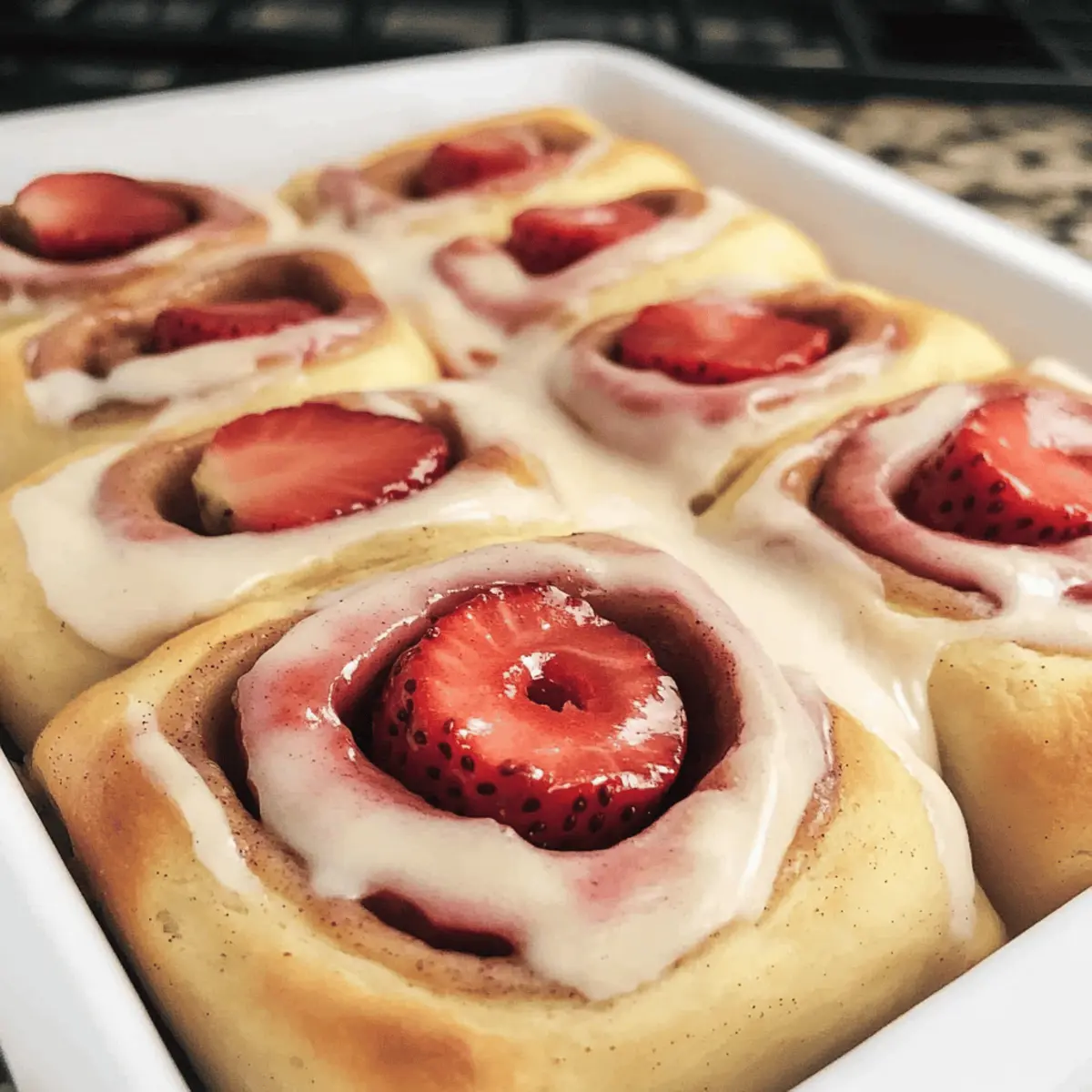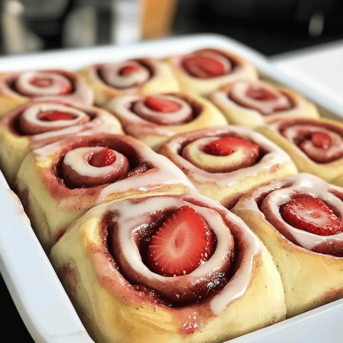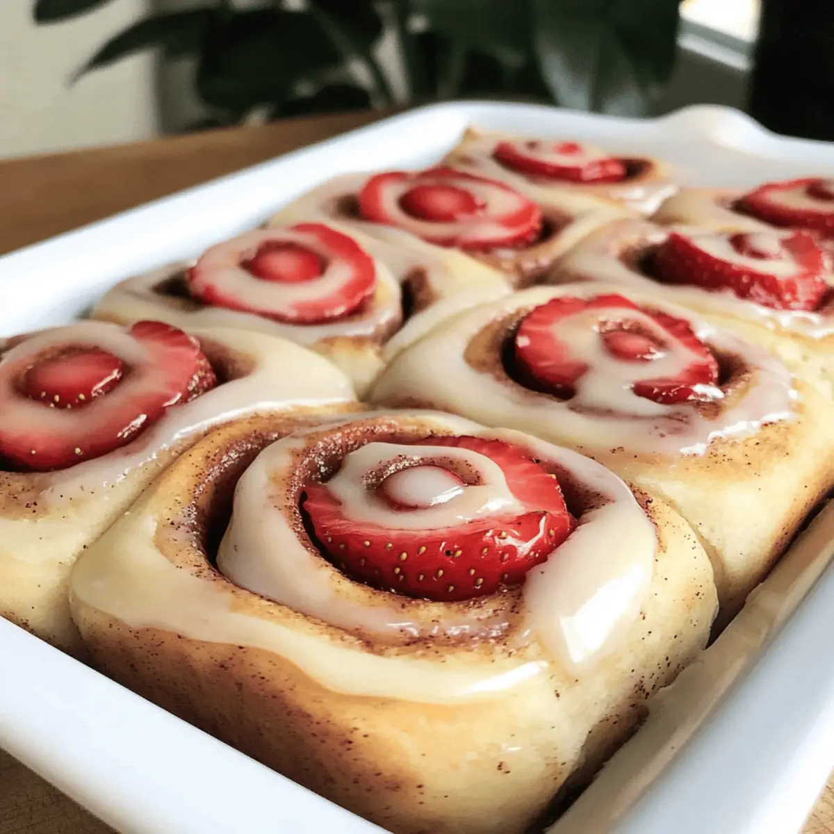 Wusstest du, dass der Duft von frisch gebackenen Brötchen die Stimmung des ganzen Morgens heben kann? Diese Strawberry Cinnamon Rolls sind nicht nur ein wahrer Genuss für die Sinne, sondern auch ein bemerkenswerter Start in den Tag. Mit ihrem zarten, flaumigen Teig und einer fruchtigen Füllung aus saftigen Erdbeeren werden diese süßen Teilchen schnell zu deinem neuen Frühstücksliebling. Das Beste daran? Sie sind schnell zubereitet und eine wahre Freude für die ganze Familie. Ganz gleich, ob du ein erfahrener Bäcker oder ein leidenschaftlicher Koch bist, dieses Rezept ist ein Muss in deiner Küche. Hast du schon darauf gewartet, deine Backkünste mit einer fruchtigen Note zu verfeinern? weiterlesen! Warum wirst du Erdbeer-Zimtschnecken lieben? Frische und Fruchtigkeit: Mit frischen, saftigen Erdbeeren wird jeder Bissen zu einem fruchtigen Traum. Einfache Zubereitung: Dieses Rezept benötigt keine besonderen Backkünste, sodass es perfekt für alle ist, die schnelle und köstliche Ergebnisse lieben. Familienfreundlich: Die Erdbeer-Zimtschnecken sind ein Hit bei Groß und Klein – ideal für gemütliche Frühstücke oder Brunch-Partys! Vielseitigkeit: Du kannst die Erdbeeren ganz leicht durch andere Früchte wie Himbeeren oder Blaubeeren ersetzen, um verschiedene Geschmäcker zu entdecken. Perfekte Textur: Die Kombination aus fluffigem Teig und cremiger Frischkäseglasur sorgt für ein unvergessliches Geschmackserlebnis, das dich und deine Gäste begeistern wird. Warum also nicht gleich mit dieser köstlichen Leckerei beginnen? Für eine herzhaftere Variante schau dir auch unsere Herzhafte Linsen Gemuesesuppe an! Erdbeer-Zimtschnecken Zutaten Für den Teig: Allzweckmehl – sorgt für die Struktur und Kaubarkeit der Zimtschnecken; du kannst auch eine glutenfreie Mehlmischung verwenden. Zucker – süßt sowohl den Teig als auch die Füllung; für weniger Süße einfach etwas reduzieren. Salz – verstärkt den Geschmack; lass es nicht weg, da es die Süße ausbalanciert. Vollmilch – hält den Teig feucht und zart; Buttermilch sorgt für zusätzlichen Geschmack und Reichhaltigkeit. Ungesalzene Butter – verleiht dem Teig Reichtum; achte darauf, dass sie weich ist für ein einfaches Mischen. Schnellhefe – sorgt für einen fluffigen Teig; du kannst auch Trockenhefe verwenden, aber diese muss eventuell aktiviert werden. Eier – bringen Reichhaltigkeit und helfen, den Teig zu binden; nimm sie sollten Zimmertemperatur haben für eine bessere Emulgierung. Für die Füllung: Erdbeeren – der Star der Füllung; achte darauf, dass sie frisch und gehackt sind; Brombeeren oder Himbeeren sind ebenfalls eine tolleAlternative. Zitronensaft – balanciert die Süße in der Füllung; optional, aber empfohlen für einen helleren Geschmack. Maisstärke – verdickt die Erdbeerfüllung; wesentlich für eine marmeladige Konsistenz. Für die Glasur: Frischkäse – die Basis für die Glasur, sorgt für eine cremige Textur; verwende Vollfett für die besten Ergebnisse. Getrocknetes Erdbeerpulver – verstärkt den Erdbeergeschmack in der Glasur ohne zusätzliche Flüssigkeit hinzuzufügen; optional, aber empfohlen. Puderzucker – süßt die Glasur; wichtig für die Textur; die Menge kann je nach gewünschter Süße angepasst werden. Vanilleextrakt – fügt warme Geschmacksnoten hinzu; verwende reinen Vanilleextrakt für den besten Geschmack. Schlagsahne – optional, sorgt für zusätzliche Feuchtigkeit, wenn sie vor dem Backen zwischen die Rollen gegossen wird. Schritt-für-Schritt-Anleitung für Erdbeer-Zimtschnecken mit Frischkäseglasur Step 1: Teig vorbereiten Mische in einer großen Schüssel das Allzweckmehl, Zucker, Salz, Milch, ungesalzene Butter, Schnellhefe und Eier. Knete die Mischung mit den Händen oder einer Küchenmaschine etwa 5 bis 7 Minuten lang, bis der Teig weich und elastisch ist. Der Teig sollte sich vom Schüsselrand lösen und glatt sein. Step 2: Erste Gärung Forme den Teig zu einer Kugel und lege ihn in eine leicht geölte Schüssel. Decke die Schüssel mit einem feuchten Tuch ab und lasse den Teig an einem warmen Ort etwa 1 Stunde ruhen, oder bis er sich verdoppelt hat. Dieser Schritt ist entscheidend für die fluffige Konsistenz der Erdbeer-Zimtschnecken. Step 3: Erdbeerfüllung zubereiten Während der Teig ruht, bereite die Füllung vor. Koche die fein gehackten Erdbeeren zusammen mit Zucker, Wasser, Zitronensaft und Maisstärke in einem kleinen Topf bei mittlerer Hitze. Rühre kontinuierlich, bis die Mischung eindickt und eine marmeladige Konsistenz erreicht, was etwa 5 bis 10 Minuten dauert. Lass die Füllung danach abkühlen. Step 4: Teig ausrollen Wenn der Teig ausreichend aufgegangen ist, rolle ihn auf einer leicht bemehlten Fläche zu einem Rechteck (ca. 40 x 30 cm) aus. Verteile die weiche Butter gleichmäßig darauf und lasse einen Rand von etwa 1 cm. Anschließend verteile die abgekühlte Erdbeerfüllung gleichmäßig auf dem Teig. Step 5: Rollen und schneiden Beginne an der langen Kante und rolle den Teig eng auf, sodass eine lange Rolle entsteht. Schneide die Rolle mit einem scharfen Messer oder ungewachstem Zahnseide in gleichmäßige Stücke von etwa 5 cm. Achte darauf, dass du die Stücke nicht quetschst, um die Form zu bewahren. Step 6: Zweite Gärung Lege die geschnittenen Erdbeer-Zimtschnecken in eine gefettete Auflaufform und lasse sie erneut 30 bis 40 Minuten gehen. Decke den Teig mit einem Geschirrtuch ab. Die Stücke sollten aufgehen und fast doppelt so groß werden, was sie besonders fluffig macht. Step 7: Backen Heize den Ofen auf 180 °C (Ober- und Unterhitze) vor. Backe die Zimtschnecken für 25 bis 30 Minuten, bis sie goldbraun sind und angenehm duften. Überprüfe die Bräunung und ziehe sie rechtzeitig aus dem Ofen, um ein Austrocknen zu vermeiden. Step 8: Glasur vorbereiten Während die Zimtschnecken backen, bereite die Glasur vor. Schlage in einer Schüssel Frischkäse, ungesalzene Butter, Puderzucker, Erdbeerpulver und Vanilleextrakt 