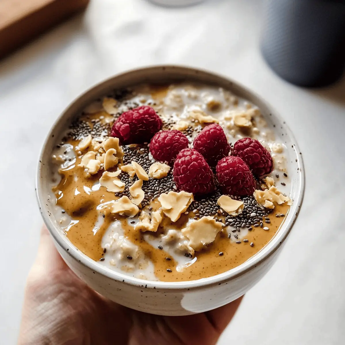 Wenn ich an meine frühen Morgenstunden denke, kann ich nicht anders, als mich an die aufregende Überraschung zu erinnern, die perfekte Peanut Butter Overnight Oats mit sich bringen. In gerade mal fünf Minuten zubereitet, sind diese cremigen Haferflocken nicht nur ein wahrer Genuss, sondern auch vollgepackt mit 12 Gramm Protein und 8 Gramm Ballaststoffen pro Portion – ideal für einen gesunden Start in den Tag! Dieses einfache Rezept ist nicht nur ein Schnellschuss für vielbeschäftigte Morgen, sondern auch eine hervorragende Möglichkeit, um den Nussgeschmack und die herzhaften Inhalte der Haferflocken zu genießen. Wie wäre es, wenn wir noch ein paar kreative Toppings hinzufügen, um das Ganze zu verfeinern? Lasst uns entdecken, wie einfach es ist, gesunde und köstliche Frühstücke zuzubereiten! Warum werden Sie dieses Rezept lieben? Einfachheit: Die Zubereitung benötigt lediglich fünf Minuten und kann am Vorabend erfolgen, sodass Sie morgens nur noch genießen müssen. Reichhaltiger Geschmack: Mit dem nussigen Aroma der Erdnussbutter und einer Prise Zimt sind diese Overnight Oats ein wahrer Gaumenschmaus. Protein-Power: Jeder Biss enthält 12 Gramm Protein und 8 Gramm Ballaststoffe, ideal für Fitnessliebhaber, die auch auf ihre Ernährung achten. Vielseitigkeit: Passen Sie das Rezept nach Lust und Laune an – probieren Sie verschiedene Toppings wie frisches Obst oder sogar Schokoladensplitter, um neuen Schwung in Ihr Frühstück zu bringen. Beliebte Genussoption: Perfekt für alle, die schnelle und gesunde Alternativen zum Fast Food suchen, so wie bei unseren Knoblauch Butter Rinderfilet oder Butter Nudeln Mit. Zeitersparnis: Diese Overnight Oats sind nicht nur schnell zu machen, sondern können auch für mehrere Tage aufbewahrt werden – ideal für hektische Wochen! Erdnussbutter Overnight Oats Zutaten • Perfekt für ein gesundes Frühstück! Für die Basis Haferflocken – sorgen für die Struktur und beste Textur sind die zarten Haferflocken. Salz – hebt den Geschmack und balanciert die Süße. Für die Konsistenz Chiasamen – erhöhen den Nährwert und verdicken die Mischung. Griechischer Joghurt – bringt Cremigkeit und Protein; kann durch pflanzlichen Joghurt ersetzt werden. Für den Geschmack Zimt – fügt eine warme Note hinzu, die die Aromen intensiviert. Erdnussbutter – das Herzstück, vollgepackt mit Geschmack und Protein; wähle natürliche Varianten für weniger Zucker. Vanilleextrakt – sorgt für einen süßen Unterton; kann weggelassen werden, wenn nicht vorhanden. Für die Flüssigkeit Mandelmilch – sorgt für Feuchtigkeit; kann durch jede Pflanzliche oder normale Milch ersetzt werden. Zum Süßen Ahornsirup – ein natürlicher Süßstoff; Honig oder Agave sind auch möglich. Schritt-für-Schritt-Anleitung für Erdnussbutter Overnight Oats Step 1: Zutaten vermengen In einer großen Schüssel die Haferflocken, Salz, Chiasamen und Zimt gut vermischen. Fügen Sie die cremige Erdnussbutter und den griechischen Joghurt hinzu und rühren Sie alles mit einem Löffel gründlich um, bis eine homogene Mischung entsteht. Diese Basis wird die Textur der Erdnussbutter Overnight Oats entscheidend beeinflussen. Step 2: Flüssigkeiten hinzufügen Gießen Sie langsam die Mandelmilch sowie den Ahornsirup und den Vanilleextrakt in die Schüssel. Rühren Sie die Mischung erneut kräftig um, bis alle Zutaten vollständig miteinander verbunden sind. Achten Sie darauf, dass keine Klumpen zurückbleiben – die Konsistenz sollte schön cremig sein und ein einladendes Aussehen haben. Step 3: Kühlung vorbereiten Decken Sie die Schüssel mit Frischhaltefolie oder einem Deckel ab, um ein Austrocknen der Mischung zu verhindern. Stellen Sie die Schüssel in den Kühlschrank und lassen Sie die Erdnussbutter Overnight Oats über Nacht mindestens 6–8 Stunden ruhen. Dies ermöglicht den Haferflocken, die Flüssigkeit optimal aufzunehmen und die Konsistenz zu perfektionieren. Step 4: Konsistenz überprüfen Am nächsten Morgen die Erdnussbutter Overnight Oats aus dem Kühlschrank nehmen und die Konsistenz überprüfen. Wenn sie zu dick sind, geben Sie einen Spritzer Mandelmilch hinzu und rühren Sie um, bis die gewünschte Cremigkeit erreicht ist. Der Anblick sollte dickflüssig und einladend sein, bereit zum Servieren. Step 5: Servieren und genießen Die Erdnussbutter Overnight Oats können nun kalt serviert oder nach Belieben für 30-60 Sekunden in der Mikrowelle erwärmt werden. Garnieren Sie sie mit frischen Früchten, zusätzlicher Erdnussbutter oder anderen Toppings Ihrer Wahl, um das Frühstück noch köstlicher zu machen. Lassen Sie sich von dem nussigen Aroma verzaubern! Tipps zur Vorbereitung der Erdnussbutter Overnight Oats Erdnussbutter Overnight Oats sind ideal für die Vorbereitung im Voraus! Sie können die grundlegende Mischung aus Haferflocken, Erdnussbutter, Chiasamen, Joghurt und Mandelmilch bis zu 24 Stunden vor dem Servieren zubereiten. Einfach alles gut vermengen, in eine abgedeckte Schüssel geben und im Kühlschrank lagern; so bleibt die Konsistenz cremig und frisch. Wenn Sie die Erdnussbutter Overnight Oats am nächsten Morgen servieren, überprüfen Sie die Konsistenz und fügen Sie bei Bedarf einen oder zwei Spritzer Mandelmilch hinzu, um die Cremigkeit anzupassen. Mit diesen einfachen Vorbereitungen sparen Sie Zeit an hektischen Morgen und genießen dennoch ein köstliches, gesundes Frühstück! Expertentipps für Erdnussbutter Overnight Oats Richtige Haferwahl: Achten Sie darauf, zarte Haferflocken zu verwenden, um eine cremige Textur zu erzielen. Vermeiden Sie Instant-Hafer, da diese zu einer matschigen Konsistenz führen können. Konsistenz anpassen: Wenn die Midnight-Oats am Morgen zu dick sind, fügen Sie einfach einen Spritzer Mandelmilch hinzu. So erreichen Sie die perfekte Cremigkeit. Abdeckung nicht vergessen: Decken Sie die Haferflocken beim Kühlen ab, um ein Austrocknen zu vermeiden. So bleiben sie frisch und lecker. Proteinboost: Fü