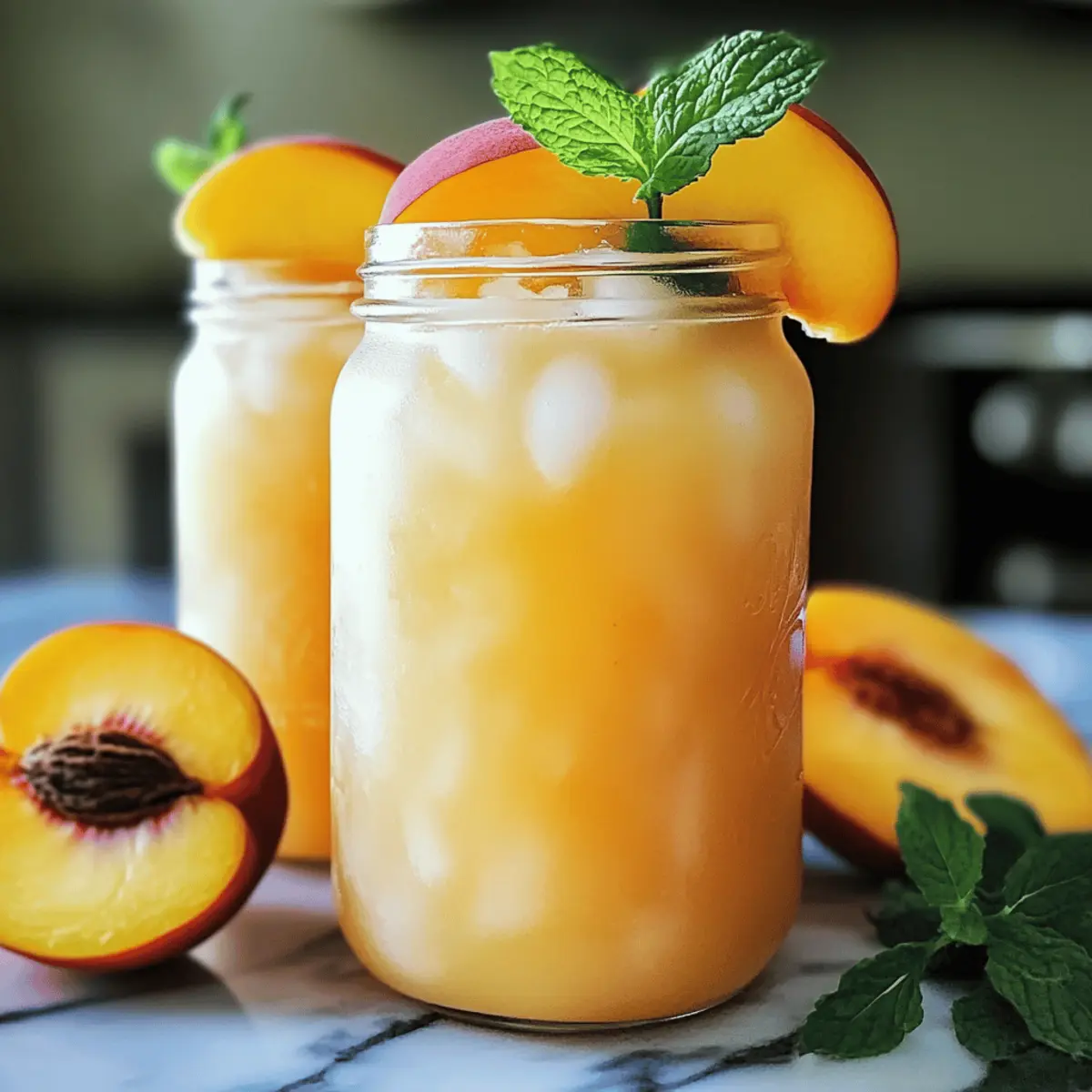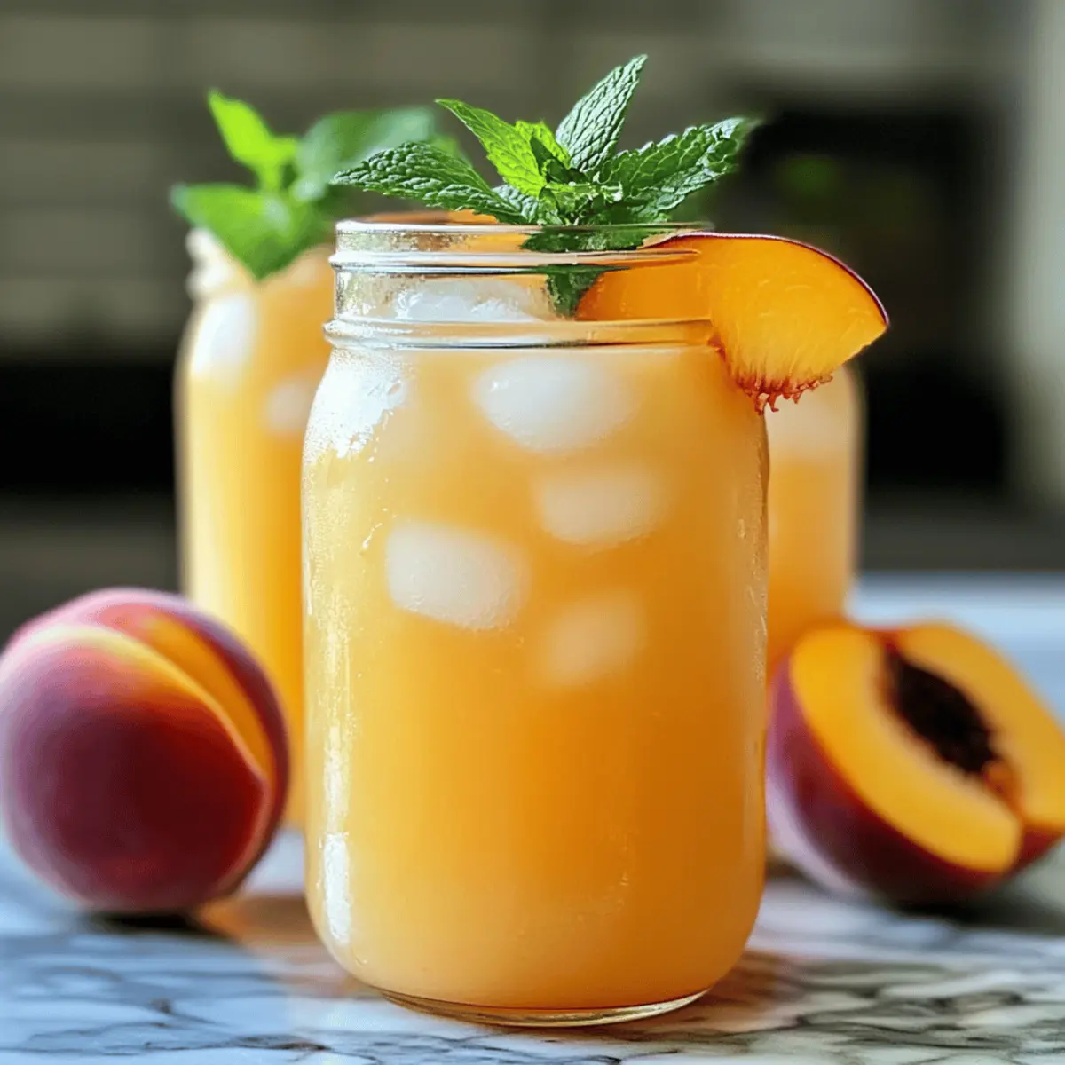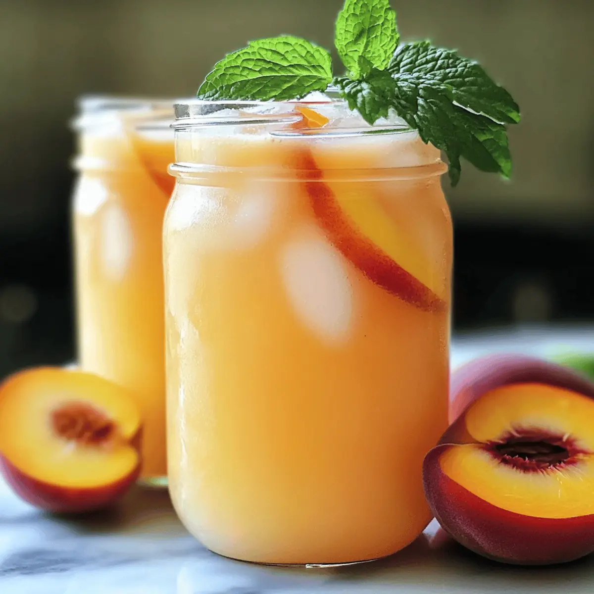 In der warmen Sonne des Sommers, wenn die Tage länger werden und die Luft nach frischen Früchten duftet, gibt es nichts Besseres als ein Glas eigener, erfrischender Pfirsich-Limonade. Diese köstliche Mischung aus saftigen Pfirsichen und spritzigen Zitronen bringt den Geschmack des Sommers direkt in deine Küche. Die Zubereitung dieser Pfirsich-Limonade ist ein Kinderspiel – blitzschnell und einfach, perfekt für entspannte Nachmittage oder gesellige Grillabende. Und das Beste daran? Du kannst den Süßegrad nach deinem Geschmack anpassen, egal ob du klassischen Zucker, Honig oder etwas anderes verwenden möchtest. Wie spannend ist es, deinen eigenen Sommer-Hit zu kreieren? Lass uns gemeinsam in die Welt der erfrischenden Pfirsich-Limonade eintauchen! Warum wirst du diese Limonade lieben? Erfrischend und fruchtig: Die Kombination aus süßen Pfirsichen und spritzigen Zitronen sorgt für einen Geschmack, der dich direkt an einen warmen Sommertag erinnert. Einfache Zubereitung: Mit nur wenigen Schritten und grundlegenden Zutaten kannst du diese Limonade ganz schnell selbst zaubern. Anpassbar: Ob mit Zucker, Honig oder Agave – du hast die Kontrolle über den Süßegrad, sodass jeder Schluck perfekt für dich ist. Perfekt für jeden Anlass: Diese Limonade ist das ideale Getränk für Grillpartys, Picknicks oder entspannte Nachmittage. Serviere sie in eleganten Einmachgläsern und bringe so einen Hauch von Sommer auf deinen Tisch! Wenn dir auch herzhafte Speisen am Herzen liegen, dann schau dir unser Rezept für Wuerziges Rinderfleisch Mit an oder genieße dazu Knoblauch Butter Rinderfilet. Zutaten für die Erfrischende Pfirsich-Limonade • Du wirst die perfekte Mischung aus Frische und Süße erleben! Für die Limonade Frische Pfirsiche – Sie sorgen für die Süße und den fruchtigen Geschmack; achte darauf, dass sie reif sind für den besten Genuss. Frische Zitronen – Wichtig für die spritzige Note; rolle sie vor dem Auspressen, um mehr Saft herauszubekommen. Zucker – Fügt Süße hinzu; passe die Menge nach deinem Geschmack an. Eine tolle Alternative sind Honig oder Agavendicksaft. Wasser – Verdünnt die Mischung; verwende gefiltertes Wasser für einen besseren Geschmack. Sprudelwasser sorgt für zusätzlichen Schwung! Eiswürfel – Halten die Limonade kühl; größere Würfel schmelzen langsamer und verhindern Verdünnung. Optional zur Garnitur Zitronenscheiben – Setze sie als dekorative Note für einen ansprechenden Look ein. Frische Minzblätter – Für eine besondere Frische und einen zusätzlichen Farbtupfer! Die erfrischende Pfirsich-Limonade wird dir in der warmen Jahreszeit ein treuer Begleiter sein! Step-by-Step Instructions für die Erfrischende Pfirsich-Limonade Step 1: Zutaten vorbereiten Wasche die frischen Pfirsiche und Zitronen gründlich unter fließendem Wasser. Schneide die Pfirsiche in dünne Scheiben, um die Aromen freizusetzen. Rolle die Zitronen leicht auf der Arbeitsfläche, um den Saft herauszupressen. Press die Zitronen aus, um frischen Zitronensaft zu gewinnen – du benötigst etwa 150 ml. Step 2: Mischen Gib die geschnittenen Pfirsiche, den frisch gepressten Zitronensaft und die gewünschte Menge Zucker in einen Hochleistungsmixer. Mixe die Zutaten auf hoher Stufe für etwa 30 Sekunden, bis eine glatte und lebendige Pfirsich-Püree entsteht. Achte darauf, dass sich der Zucker vollständig auflöst und keine Klumpen mehr vorhanden sind. Step 3: Abseihen Nimm ein feines Sieb oder ein feinmaschiges Küchensieb und stelle es über eine große Schüssel oder einen Krug. Gieße das Pfirsichgemisch vorsichtig durch das Sieb, um die Schalen und das Fruchtfleisch zu entfernen. Verwende einen Spatel, um sicherzustellen, dass so viel Flüssigkeit wie möglich in den Krug gelangt. Step 4: Verdünnen Fülle den Krug mit kaltem, gefiltertem Wasser auf und rühre gründlich um, bis die gewünschte Intensität der Erfrischenden Pfirsich-Limonade erreicht ist. Wenn du es spritziger magst, ersetze einen Teil des Wassers durch Sprudelwasser. Das Ergebnis sollte eine leichte, fruchtige Limonade sein, perfekt für heiße Sommertage. Step 5: Servieren und Garnieren Fülle ein oder mehrere Gläser mit Eiswürfeln und gieße die frisch zubereitete Pfirsich-Limonade darüber. Für eine ansprechende Präsentation kannst du die Gläser mit Zitronenscheiben und frischen Minzblättern garnieren. Serviere die Erfrischende Pfirsich-Limonade sofort, um die kühlende Frische optimal zu genießen. Expert Tips für die Erfrischende Pfirsich-Limonade Reife Früchte: Achte darauf, dass die Pfirsiche wirklich reif sind; sie geben die beste Süße und den vollen Geschmack ab. Zitronensaft maximieren: Rolle die Zitronen vor dem Auspressen, um mehr Saft herauszuholen und die Limonade spritziger zu machen. Süße anpassen: Beginne mit wenig Zucker und passe die Süße nach deinem Geschmack an; Honig oder Agave sind tolle Alternativen, um die Limonade anzupassen. Eis rechtzeitig hinzufügen: Füge das Eis nur kurz vor dem Servieren hinzu, damit die Limonade nicht verwässert wird. Gesundheitsbonus: Experimentiere mit frischen Minzblättern als Garnitur, denn sie sorgen für eine zusätzliche frische Note und sind gesund! Variationen der Erfrischenden Pfirsich-Limonade Mache diese erfrischende Limonade noch spannender mit einfachen Anpassungen! Zucker-Alternative: Nutze Honig oder Agavendicksaft für eine natürliche Süße, die sich wunderbar einfügt. Zusätzliche Früchte: Mische pürierte Erdbeeren oder Himbeeren unter, um fruchtige Geschmacksexplosionen hinzuzufügen. Kräuter-Power: Frische Minzblätter oder Basilikum sorgen für ein überraschendes, aromatisches Element in der Limonade. Spritzige Note: Ersetze einen Teil des Wassers durch sprudelndes Wasser für extra Erfrischung und Fizz. Kälte-Power: Friere die übrig gebliebene Limonade in Eiswürfeln ein, um künftige Getränke zu verfeinern. Zitrus-Mix: Experimentiere mit Limetten- oder Grapefruitsaft für einen aufregende
