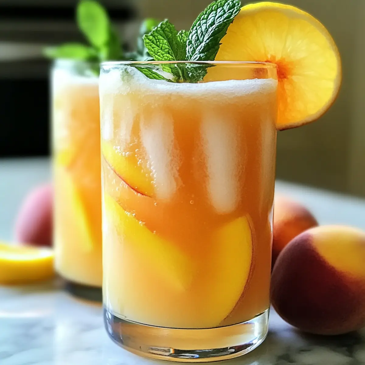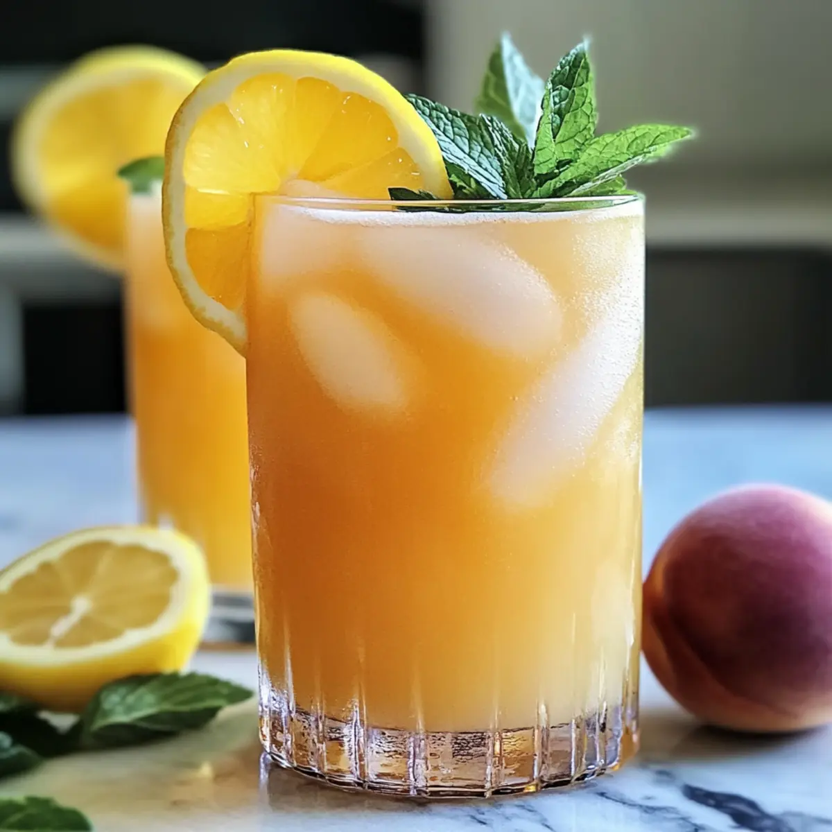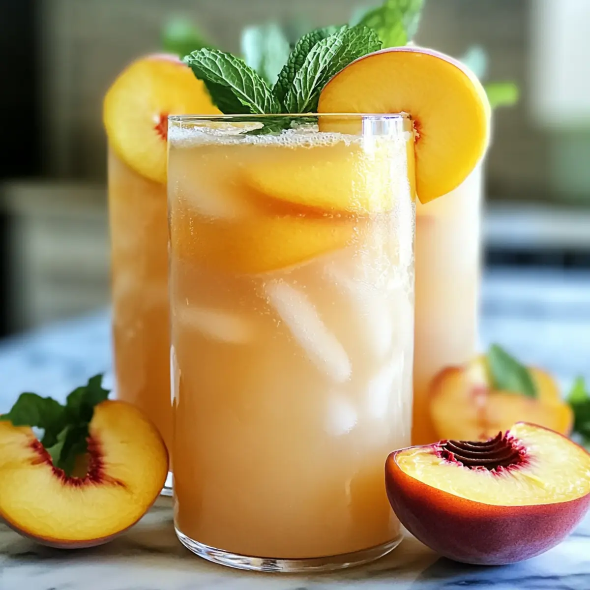 Frisches Obst in der Sonne genießen – gibt es etwas Besseres? Wenn ich an die warmen Sommertage denke, kommt mir sofort die Vorstellung von einer erfrischenden Pfirsichlimonade in den Sinn. Diese köstliche Erfrischung vereint die süße Leichtigkeit reifer Pfirsiche mit der spritzigen Frische frisch gepresster Zitronen. Ideal für gesellige Treffen im Garten oder entspannte Nachmittage, bietet dieses Rezept eine einfache Zubereitung und ist perfekt, um Ihre Gäste zu beeindrucken. Egal, ob Sie einen Grillabend planen oder einfach nur eine Abkühlung suchen, meine erfrischende Pfirsichlimonade bringt das Flair des Sommers direkt in Ihr Glas. Neugierig, wie Sie diese köstliche Erfrischung zaubern können? Warum ist diese Pfirsichlimonade ein Hit? Einfachheit: Die Zubereitung ist kinderleicht und erfordert nur wenige Schritte. Außerdem sind alle Zutaten leicht erhältlich, was es perfekt für spontane Sommer-Tage macht. Erfrischender Geschmack: Der harmonische Mix aus süßen Pfirsichen und saftigen Zitronen sorgt für einen unvergesslichen Geschmack, der Ihnen das Gefühl von Sommer in den Alltag bringt. Vielseitigkeit: Ob als Erfrischung beim Picknick, zu einer Grillparty oder einfach nur für einen heißen Nachmittag – diese Limonade ist der ideale Begleiter. Gesunde Alternative: Im Vergleich zu herkömmlichen Limonaden ist dieses Rezept eine hervorragende Wahl mit weniger Zucker und mehr frischen Früchten. Werfen Sie auch einen Blick auf meine Tomatensuppe mit Gegrilltem für eine weitere gesunde Erfrischung an heißen Tagen! Crowd-Pleaser: Ihre Freunde und Familie werden diese Limonade lieben und sie wird mit Sicherheit ein Hit bei allen geselligen Anlässen. Erfrischende Pfirsichlimonade Zutaten • Diese Zutaten ergeben die perfekte Erfrischung für heiße Sommertage! Für die Limonade Frische Pfirsiche – Ihre Süße und der Geschmack kommen am besten zur Geltung, wenn Sie reife, leicht drückbare Pfirsiche wählen. Frische Zitronen – Sie sorgen für die spritzige Säure; rollen Sie die Zitronen vor dem Auspressen, um mehr Saft zu gewinnen. Zucker – Passen Sie die Süße nach Ihrem Geschmack an; Alternativen wie Honig, Agavensirup oder Stevia bieten gesündere Optionen. Wasser – Als Basis für die Limonade ist gefiltertes Wasser ideal, für einen sprudelnden Genuss können Sie auch Sprudelwasser verwenden. Eiswürfel – Sie sorgen für optimale Kühlung; große Eiswürfel schmelzen langsamer und halten Ihr Getränk länger kühl. Schritt-für-Schritt-Anleitung für Erfrischende Pfirsichlimonade Step 1: Zutaten vorbereiten Waschen Sie die frischen Pfirsiche gründlich und schneiden Sie sie in kleine Stücke. Pressen Sie die frischen Zitronen aus, um den Saft zu gewinnen; rollen Sie sie vorher auf der Arbeitsfläche, um mehr Saft zu extrahieren. Legen Sie die geschnittenen Pfirsiche und den Zitronensaft bereit, damit sie bereit sind für die nächste Phase. Step 2: Pfirsiche mixen Geben Sie die vorbereiteten Pfirsichstücke, den frisch gepressten Zitronensaft und den Zucker in einen Mixer. Mixen Sie alles auf hoher Stufe, bis eine glatte, lebendige Pfirsich-Püree entsteht, was etwa 30 bis 45 Sekunden dauern sollte. Achten Sie darauf, dass keine Klumpen übrig bleiben, um eine angenehme Textur in Ihrer pfirsichlimonade zu gewährleisten. Step 3: Mischung abseihen Gießen Sie das Pfirsich-Püree durch ein feinmaschiges Sieb in einen großen Krug oder eine Pitcher. Nutzen Sie einen Spatel oder einen Löffel, um das Püree leicht zu drücken, während Sie die Flüssigkeit abseihen. Dies entfernt Fruchtfleisch und sorgt für eine glatte Konsistenz der Erfrischenden Pfirsichlimonade. Step 4: Wasser hinzufügen Fügen Sie zum abgeseihten Pfirsichsaft allmählich das gefilterte Wasser hinzu. Messen Sie je nach gewünschter Intensität der Aromen etwa 1 bis 2 Liter hinzu und rühren Sie gut um, um alles zu vermengen. Probieren Sie die Mischung und passen Sie die Süße oder den Wasseranteil nach Ihrem Geschmack an. Step 5: Servieren Füllen Sie Gläser mit großen Eiswürfeln und gießen Sie die fertige Erfrischende Pfirsichlimonade darüber. Garnieren Sie die Gläser nach Belieben mit frischen Zitronenscheiben oder Minzblättern für einen zusätzlichen Hauch von Frische. Genießen Sie diese köstliche Limonade an einem sonnigen Tag! Erfrischende Pfirsichlimonade Variationen Passen Sie diese köstliche Erfrischung ganz nach Ihrem Geschmack an und lassen Sie Ihrer Kreativität freien Lauf! Dairy-Free: Verwenden Sie Kokosnuss- oder Mandelmilch anstelle von Wasser für eine cremige Variante. Dies verleiht Ihrer Limonade eine exotische Note. Fruchtige Explosion: Fügen Sie zusätzliche gefrorene Früchte wie Himbeeren oder Erdbeeren hinzu, um die Limonade zu intensivieren. Die Farbvielfalt macht sie noch appetitlicher! Spritzige Zubereitung: Ersetzen Sie das gefilterte Wasser durch Sprudelwasser, um dieser Limonade ein spritziges Erlebnis zu verleihen, perfekt für gesellige Treffen. Minze-Infusion: Geben Sie vor dem Servieren frische Minzblätter zur Limonade hinzu, um einen aromatischen Twist zu kreieren. Die Minze sorgt für einen erfrischenden Kick. Würzige Note: Für eine feurige Überraschung können Sie eine Prise Cayennepfeffer oder einige Scheiben frischer Jalapeños hinzufügen. Eine aufregende Variante für alle, die es schärfer mögen! Fruchtsirup: Experimentieren Sie mit einem hausgemachten Sirup aus anderen Früchten wie Ananas oder Mango, um eine exotische Note in die Limonade zu bringen. Alkoholische Variante: Mixen Sie einen Schuss Wodka oder Gin hinzu, um eine erfrischende Sommer-Cocktailversion zu kreieren. Ideal für einen entspannten Abend! Wasserreduktion: Reduzieren Sie die Wassermenge und erhöhen Sie die Pfirsich- und Zitronenanteile, um einen intensiveren Fruchtgeschmack zu erzielen, ideal für jede Gelegenheit. Entdecken Sie auch meine köstliche Tomatensuppe mit Gegrilltem oder die Avocado Bowl Geroesteter für weitere erfrischende Ideen! Was servie