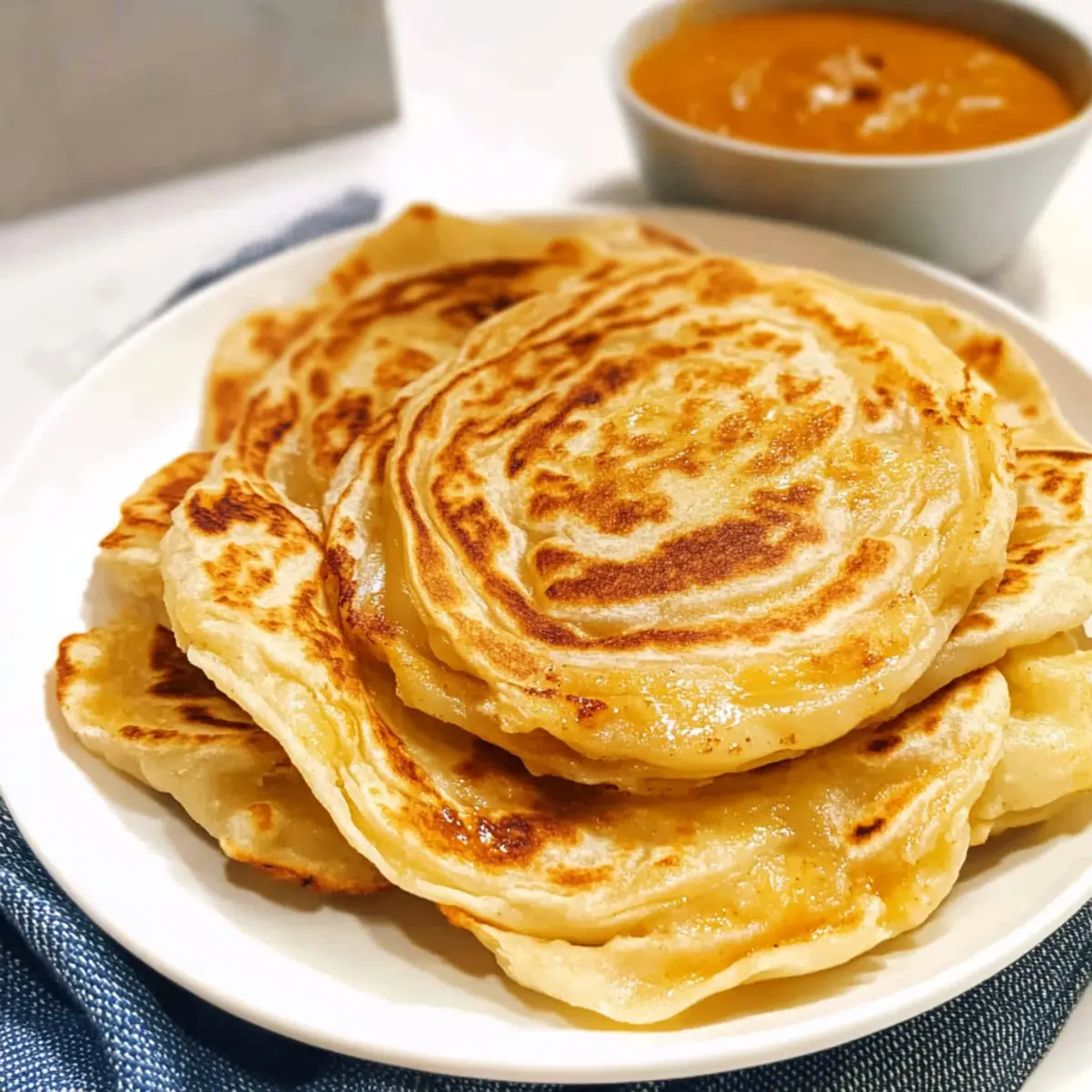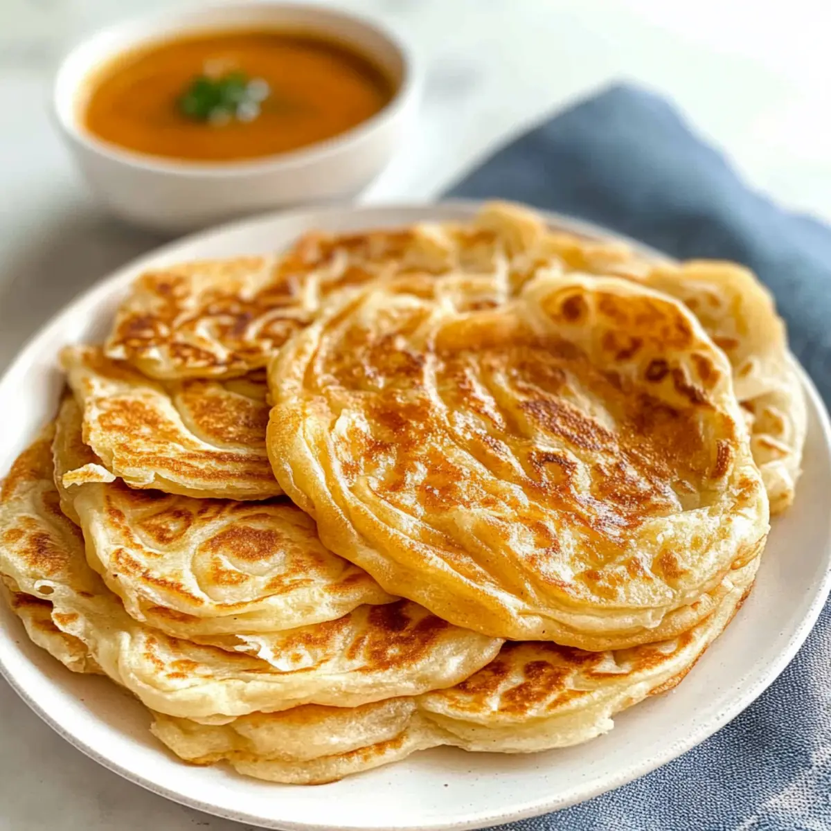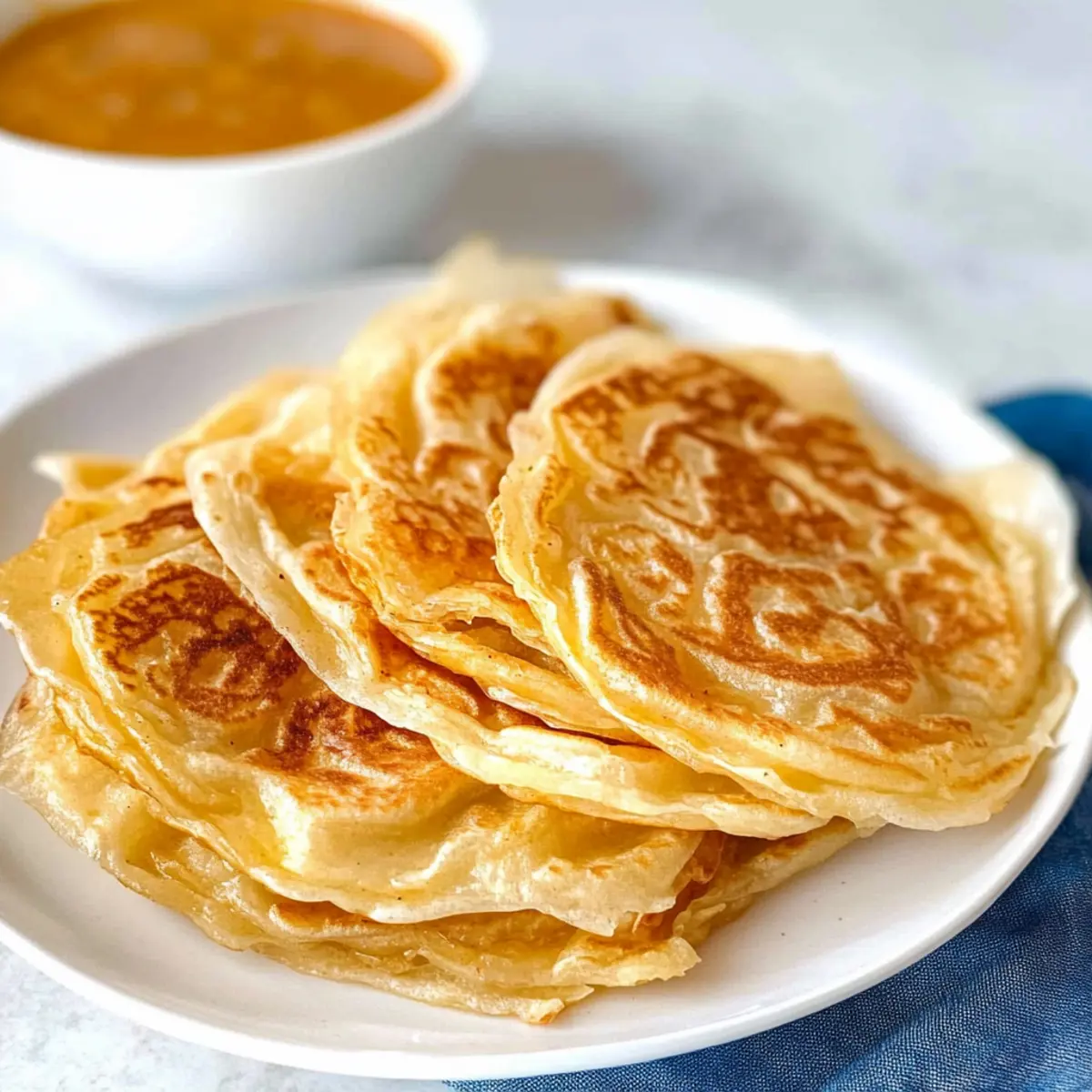 Wenn ich an die üppigen Straßenmärkte in Malaysia denke, durchströmt mich der verlockende Duft von frisch gebackenem Roti Canai. Diese köstlichen, schichtweisen Fladenbrote haben sich einen festen Platz in meinen kulinarischen Erinnerungen erobert und sind der Inbegriff für herzhaftes, hausgemachtes Essen. Mit meinem Flaky Roti Canai Rezept bringen Sie ein Stück dieser exotischen Küche in Ihre eigene Küche. Egal, ob zum Frühstück, als Snack oder als Beilage zu einem würzigen Curry – dieses Rezept ist nicht nur einfach zuzubereiten, sondern sorgt auch garantiert für Begeisterung am Tisch. Mit nur wenigen Zutaten und einer Prise Geduld meistern Sie die Kunst, diesen himmlischen Genuss zu kreieren. Neugierig, wie Sie diesen Klassiker selbst zaubern können? Lassen Sie uns loslegen! Warum sollten Sie dieses Roti Canai Rezept ausprobieren? Einfachheit, das Rezept ist mühelos und benötigt nur grundlegende Kochfähigkeiten – perfekt für alle, die gerne selbst kochen! Vielfältig, Roti Canai passt wunderbar zu verschiedenen Gerichten, sei es als Frühstück oder als Beilage zu einem würzigen Curry. Aromatisch, das schichtweise Brot bietet einen himmlisch buttrigen Geschmack, der jedem Bissen Wert verleiht. Snackzeit, es ist eine ideale Snack-Option, die bei jedem Anlass begeistert. Wenn Sie auf der Suche nach weiteren köstlichen Rezepten sind, werfen Sie einen Blick auf Butter Nudeln Mit oder entdecken Sie die frischen Aromen von gebratenem Reis Mit. Flaky Roti Canai Zutaten • Perfekt für Ihr nächstes Kochabenteuer! Für den Teig: Allzweckmehl – Die Hauptzutat für die Grundlage des Roti. Für eine gesündere Variante kann Vollkornmehl verwendet werden. Meersalz – Verstärkt den Geschmack des Teigs. Alternativ kann auch koscheres Salz genutzt werden. Zucker – Sorgt für einen Hauch von Süße; er kann auch weggelassen werden, wenn eine herzhafte Variante gewünscht ist. Warmes Wasser – Hilft, das Mehl zu hydratisieren und einen geschmeidigen Teig zu entwickeln. Kann durch kochendes Wasser ersetzt werden, wenn gewünscht. Milch – Verleiht dem Teig eine extra geschmeidige Konsistenz; kann auch durch pflanzliche Milch ersetzt werden. Butter – Fügt zusätzlichen Geschmack und Reichhaltigkeit hinzu; ghee ist eine gute Alternative für einen intensiveren Geschmack. Öl (zum Braten) – Verhindert das Anhaften und fördert die Flakigkeit der Rotis. Achten Sie darauf, nicht zu viel zu verwenden, um ein Handhaben zu erleichtern. Optional: Kräuter oder Gewürze – Für eine aromatische Note können fein gehackte Kräuter oder Gewürze in den Teig eingearbeitet werden. Dieses Flaky Roti Canai Rezept bringt internationale Küche auf Ihren Teller und wird sicher ein neuer Favorit in Ihrem Zuhause! Step-by-Step Instructions for Flaky Roti Canai Rezept Step 1: Teig vorbereiten In einer großen Schüssel Mehl, Salz und Zucker gründlich vermengen. Langsam das Wasser und die Milch hinzufügen und alles mit den Händen oder einem Rührlöffel zu einem groben Teig kneten. Achten Sie darauf, dass der Teig keine Klumpen mehr aufweist, bevor Sie fortfahren, um die perfekte Basis für das Flaky Roti Canai Rezept zu schaffen. Step 2: Teig ruhen lassen Den Teig in die Schüssel zurücklegen und mit einem feuchten Tuch abdecken, um ihn vor dem Austrocknen zu schützen. Lassen Sie den Teig mindestens 30 Minuten ruhen, damit sich das Gluten entwickeln kann. Diese Ruhezeit ist entscheidend, um später die gewünschte Flakigkeit im Roti zu erreichen. Step 3: Teig kneten und formen Nach der Ruhezeit den Teig auf eine leicht bemehlte Arbeitsfläche geben und etwa 2-3 Minuten kräftig kneten, bis er glatt und elastisch ist. Teilen Sie den Teig anschließend in etwa 8 gleich große Portionen und rollen Sie jede Portion zu einer kleinen Kugel. Diese sollten beim Ruhen leicht mit Öl eingestrichen werden, um ein Anhaften zu vermeiden. Step 4: Lange Ruhezeit Lassen Sie die Teigkugeln vor der weiteren Verarbeitung für mindestens 2 Stunden, idealerweise bis zu 12 Stunden, unter Plastikfolie ruhen. Dies gibt dem Teig die nötige Zeit, um die Aromen zu entwickeln und die Struktur zu verfeinern. Je länger er ruht, desto besser wird das Endergebnis des Flaky Roti Canai. Step 5: Rotis formen Nach der Ruhezeit die Teigkugeln nacheinander auf einer bemehlten Fläche flach drücken und mithilfe der Hände oder eines Nudelholzes zu dünnen Scheiben ausrollen. Jede Scheibe leicht mit Öl bestreichen, dann zu einem langen Schlauch aufrollen und spiralig zu einer kleinen Rolle formen. Diese Technik erzeugt die charakteristischen Schichten im Roti. Step 6: Letzte Ruhezeit Lassen Sie die geformten Teigspiralen für mindestens 1 Stunde ruhen, damit sich die Schichten setzen. Bedecken Sie die Spiralen während des Wartens mit einem Küchentuch, um ein Austrocknen zu verhindern. Diese zusätzliche Ruhezeit verbessert die Textur und macht das Flaky Roti Canai noch angenehmer. Step 7: Rotis backen Erhitzen Sie eine große, antihaftbeschichtete Pfanne bei mittlerer bis hoher Temperatur. Geben Sie ein wenig Öl in die Pfanne und lassen Sie es heiß werden, bevor Sie die erste flache Roti hineinlegen. Braten Sie die Roti etwa 2-3 Minuten pro Seite oder bis sie goldbraun und knusprig sind. Achten Sie darauf, das Brot während des Kochens zu drücken, um die Schichten zu lockern. Step 8: Servieren Nachdem die Rotis fertig gebraten sind, nehmen Sie sie aus der Pfanne und lassen Sie sie kurz auf Küchenpapier abtropfen. Zum Servieren die Roti vorsichtig quetschen, um die Schichten zu trennen, und warm genießen. Diese köstlichen Flaky Roti Canai sind perfekt als Beilage zu Currys oder einfach solo mit etwas Dip. Flaky Roti Canai Rezept: Vorbereitung für stressfreies Kochen Die Zubereitung des Flaky Roti Canai Rezept ist perfekt für alle, die Zeit sparen möchten! Sie können den Teig bis zu 24 Stunden im Voraus vorbereiten, indem Sie ihn ungebacken in einer luftdichten Schüssel aufbewahren, um Austrocknen zu verm