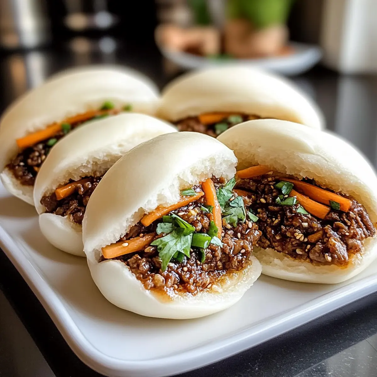 • Süß-sauer: Kombiniere die Füllung mit einer süß-sauren Sojasauce oder einer hausgemachten Teriyaki-Sauce, um den Geschmack zu variieren. Diese Kombination harmoniert hervorragend mit der fluffigen Textur der Brötchen.