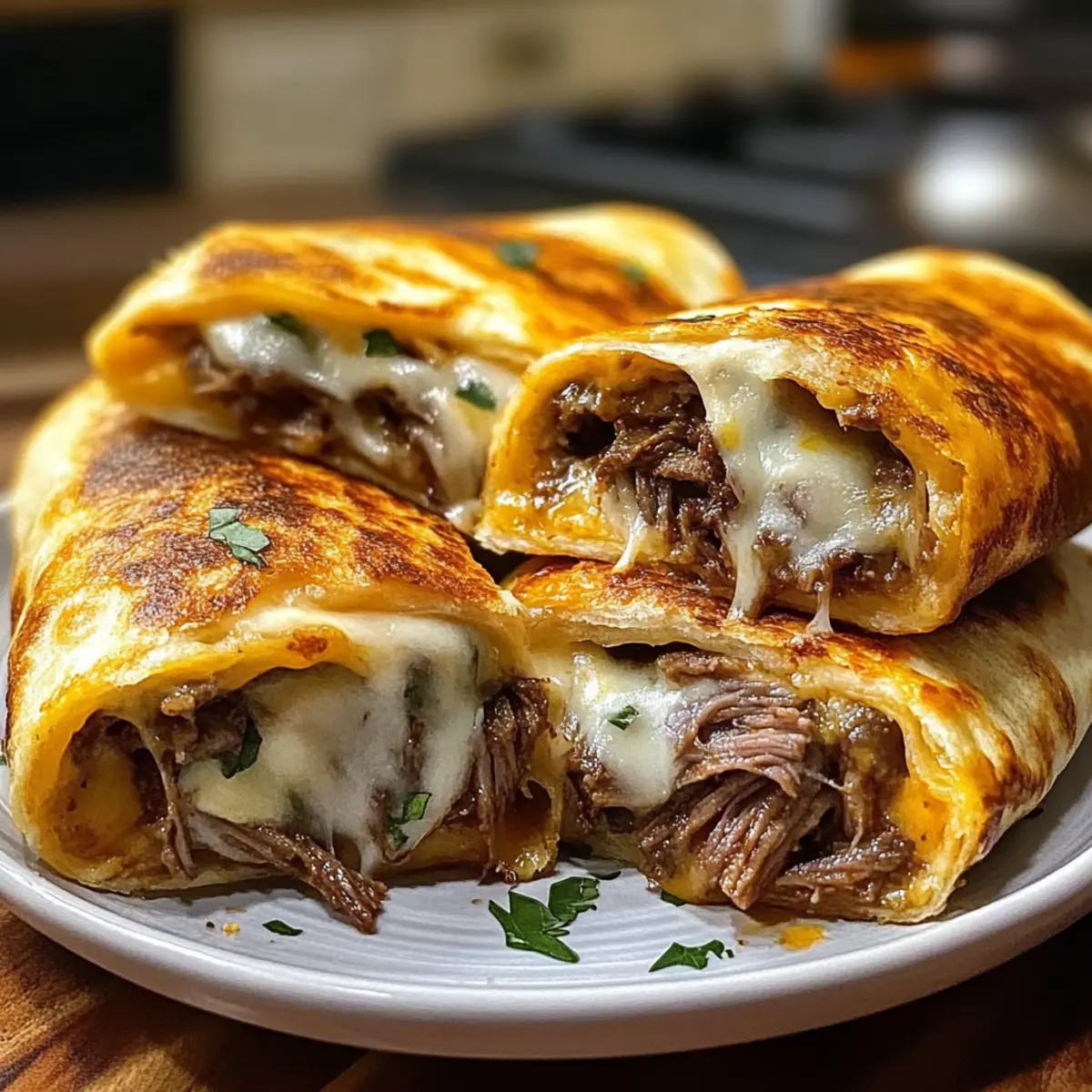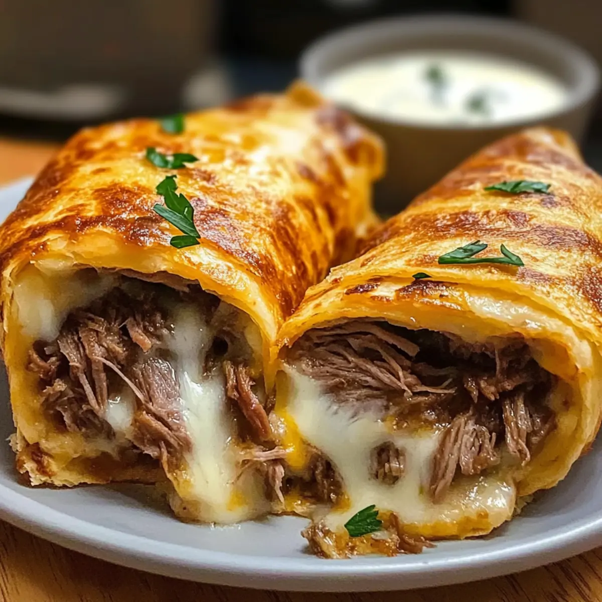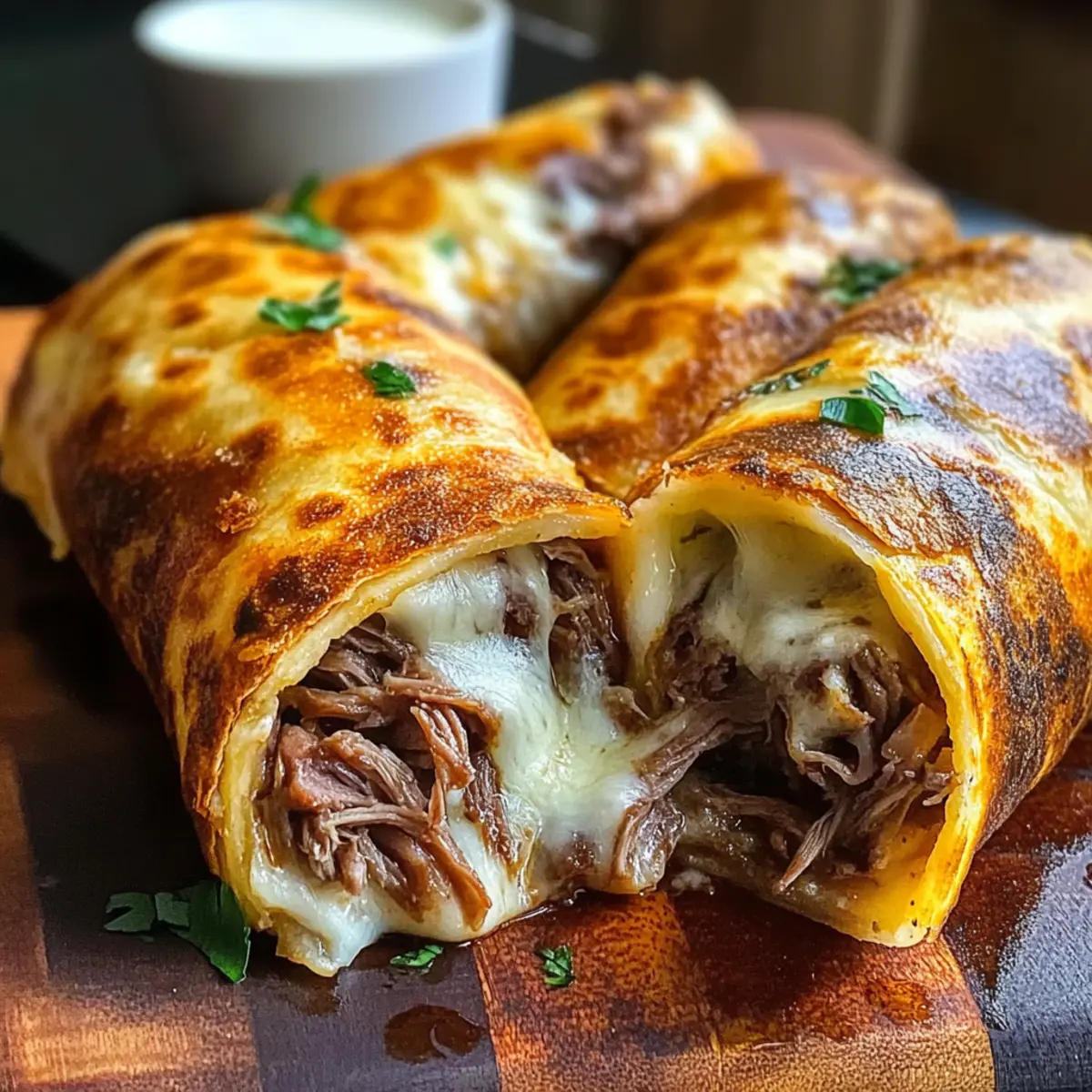 Es war einmal an einem hektischen Wochentag, als ich nach einer schnellen und dennoch herzhaften Dinner-Lösung suchte. In dieser kleinen Küchenkrise entstand die Idee für meine Französischen Dip Tortilla Rollen. Diese einfachen aber köstlichen Roll-Ups vereinen das Beste aus der klassischen französischen Dip-Sandwich-Welt mit der praktischen Handhabung einer Tortilla. Innerhalb von nur 25 Minuten sind sie zubereitet und bieten eine perfekte Kombination aus geschmolzenem, Käse und zartem Rindfleisch. Ideal für ein entspanntes Abendessen oder spontane Zusammenkünfte, sind diese Roll-Ups nicht nur ein Genuss, sondern auch eine wunderbare Möglichkeit, um beim Kochen kreativ zu werden. Glaubt mir, der aromatische Dip aus einladendem Rinderbrühe wird bei euch und euren Lieben für Begeisterung sorgen. Habt ihr schon eine persönliche Variante im Kopf, die ihr probieren möchtet? Warum wirst du diese Rezept lieben? Schnelligkeit und Einfachheit: In nur 25 Minuten zaubert ihr diese herzhaften Roll-Ups, die selbst an hektischen Tagen Freude bereiten. Vielfältige Variationen: Ob mit Jalapeños für die Schärfe oder einem anderen Käse – hier könnt ihr kreativ werden und eure Lieblingsfüllungen ausprobieren! Köstlicher Geschmack: Die Kombination aus würzigem Rindfleisch, geschmolzenem Käse und aromatischem Dip wird euch und eure Gäste begeistern – perfekt für Partys oder gemütliche Abende. Besser als Fast Food: Mit frischen Zutaten zubereitet, sind diese Tortilla Rollen eine gesunde Alternative zu herkömmlichem Fast Food. Einfach zuzubereiten: Auch wenn ihr noch nicht viel Erfahrung habt, der Prozess ist unkompliziert und macht Spaß! Für eine erfrischende Beigabe passt ein erfrischender Gurken Edamame Salat wunderbar dazu. Zutaten für Französische Dip Tortilla Rollen Für die Füllung: Rindfleisch – sorgt für eine herzhafte und saftige Füllung; verwende deli-stil oder übrig gebliebenes Rinderbraten. Geriebener Mozzarella oder Provolone – sorgt für die geschmolzene, zähflüssige Textur; ein Alternativ ist Cheddar für einen würzigen Geschmack. Tortillas – die Hauptbasis für die Roll-Ups; man kann auch low-carb Tortillas oder Salatblätter verwenden, um es leichter zu machen. Geschmolzene Butter – sorgt für eine goldene, knusprige Außenseite; alternativ kann auch Öl verwendet werden. Knoblauchpulver – fügt aromatische Tiefe und herzhaften Geschmack hinzu; frischer, gehackter Knoblauch ist auch eine gute Alternative. Zwiebelpulver – wichtig für die Geschmacksintensität; frische Zwiebeln können ebenfalls angebraten werden. Getrocknete Petersilie – bringt Farbe und eine leichte Kräuternote; kann weggelassen werden, wenn nicht verfügbar. Für die Au Jus (Dipsauce): Rinderbrühe – Basis der Dipsauce; verwende eine natriumarme Brühe für weniger Salz. Worcestershiresauce – fügt umami Tiefe hinzu; Sojasauce ist ein geeigneter Ersatz für einen reicheren Geschmack. Sojasauce – verstärkt das herzhafte Profil; kann weggelassen oder reduziert werden, je nach Bedarf. Knoblauchpulver und Zwiebelpulver – erhöhen die Geschmacksintensität der Sauce; frische Alternativen können ebenfalls verwendet werden. Salz & Pfeffer – nach Geschmack anpassen; je nach Vorliebe variieren. Eure Französischen Dip Tortilla Rollen werden mit diesen köstlichen Zutaten zum echten Hit auf jedem Tisch! Schritt-für-Schritt-Anleitung für Französische Dip Tortilla Rollen Step 1: Ofen vorheizen Heize deinen Ofen auf 190°C (375°F) vor und lege ein Backblech mit Backpapier aus. Dies sorgt dafür, dass die Französischen Dip Tortilla Rollen gleichmäßig und knusprig backen, ohne an der Oberfläche festzukleben. Das Backpapier erleichtert auch die Reinigung später. Step 2: Tortillas zusammenstellen Lege die Tortillas flach auf eine saubere Arbeitsfläche. Platziere großzügige Portionen des zarten Rindfleischs und des geriebenen Käses in der Mitte jeder Tortilla, dabei genügend Platz an den Rändern lassen. Achte darauf, dass die Füllung gleichmäßig verteilt ist, um eine gleichmäßige Garung zu gewährleisten. Step 3: Rollen Falte die Seiten der Tortilla hinein und rolle sie von der unteren Kante auf, ähnlich wie bei einem Burrito. Achte darauf, die Tortilla fest zu rollen, damit die Füllung nicht herausfällt. Lege die gerollten Tortillas mit der Nahtseite nach unten auf das vorbereitete Backblech. Step 4: Bestreichen und würzen Bestreiche die oberen Seiten der Tortilla Rollen großzügig mit geschmolzener Butter. Streue gleichmäßig Knoblauchpulver, Zwiebelpulver und getrocknete Petersilie darüber. Dies verleiht den Französischen Dip Tortilla Rollen eine köstliche goldene Kruste und zusätzlichen Geschmack. Step 5: Backen Backe die Tortilla Rollen im vorgeheizten Ofen für 12-15 Minuten, bis sie goldbraun und knusprig sind. Achte darauf, dass der Käse an den Rändern blubbert und geschmolzen ist. Dies zeigt, dass die Rollen in perfektem Zustand für das Servieren sind. Step 6: Au Jus zubereiten Während die Tortilla Rollen backen, erhitze in einem kleinen Topf die Rinderbrühe zusammen mit Worcestershiresauce, Sojasauce, Knoblauchpulver und Zwiebelpulver bei mittlerer Hitze. Lasse die Mischung 5-7 Minuten köcheln, bis sie leicht eindickt und die Aromen gut vermischt sind. Step 7: Servieren Nehme die warmen Französischen Dip Tortilla Rollen aus dem Ofen und schneide sie in mundgerechte Stücke. Serviere die Rollen heiß zusammen mit dem frisch zubereiteten Au Jus als perfekten Dip. Lass deinen Gästen die köstlichen Aromen genießen, während sie in die würzige Brühe eintauchen! Aufbewahrungstipps für Französische Dip Tortilla Rollen Zimmertemperatur:: Am besten frisch genießen! Wenn jedoch Reste übrig bleiben, sollten sie nicht länger als 2 Stunden bei Raumtemperatur stehen gelassen werden. Kühlschrank:: Lagere übrig gebliebene Französische Dip Tortilla Rollen in einem luftdichten Behälter für bis zu 3 Tage. So bleiben sie frisch un