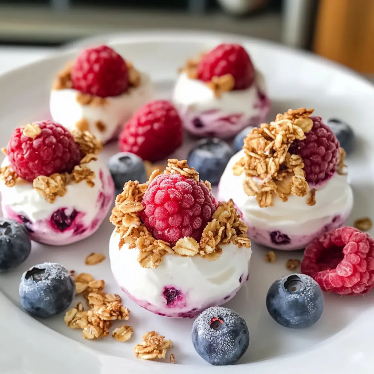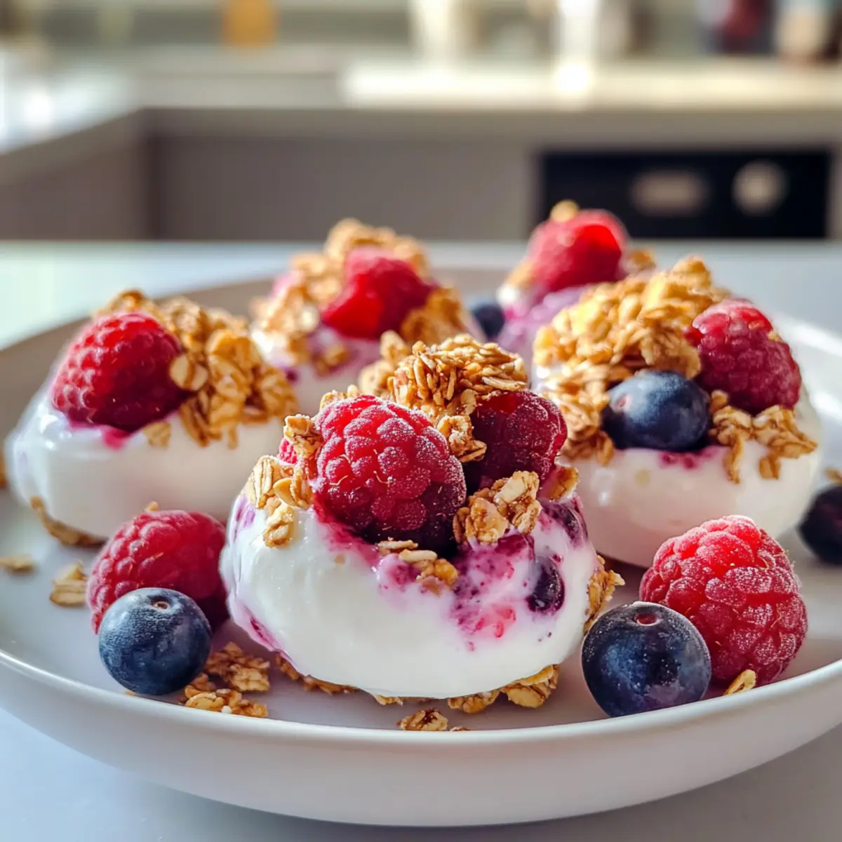 Es war ein heißer Sommertag, und ich fand mich auf dem Balkon wieder, während die Sonne gnadenlos brannte. Plötzlich hatte ich Heißhunger auf etwas Erfrischendes, das ohne viel Aufwand zuzubereiten war. Genau in diesem Moment kamen mir die Gefrorenen griechischen Joghurtbissen in den Sinn! Diese köstlichen kleinen Häppchen sind nicht nur ein gesunder Snack, sondern auch kinderleicht zuzubereiten und anpassbar nach Lust und Laune. Egal, ob du sie mit frischen Beeren, knackigen Nüssen oder einem Hauch von Honig verfeinerst – sie sind die perfekte süße Erfrischung für jede Gelegenheit. Darüber hinaus sind sie eine großartige Möglichkeit, den Verlockungen von Fast Food zu entkommen und etwas Selbstgemachtes zu genießen. Bist du bereit, mit mir diese köstlichen Bissen zu kreieren und das Hitzegefühl für immer zu vertreiben? Warum sind gefrorene Joghurtbissen so besonders? Unkompliziert: Das Rezept erfordert nur wenige Zutaten, sodass du schnell loslegen kannst. Kreativ: Du kannst die Bissen nach deinem Geschmack anpassen und mit verschiedenen Früchten oder Toppings experimentieren. Erfrischend: Perfekt zur Abkühlung an heißen Tagen, bieten sie eine köstliche Alternative zu schweren Desserts. Gesund: Diese gefrorenen Joghurtbissen sind proteinreich und enthalten weniger Zucker, besonders wenn du die Süßstoffe reduzierst oder ganz weglässt. Familienfreundlich: Ein zünftiger Snack, den Groß und Klein lieben werden! Wenn du weitere spannende Snack-Ideen suchst, schau dir auch unsere gesunden Snack-Rezepte an. Zutaten für gefrorene griechische Joghurtbissen • Diese Zutaten sind der Schlüssel zu deinen köstlichen gefrorenen griechischen Joghurtbissen! Für die Joghurtbasis Griechischer Joghurt – sorgt für Cremigkeit und einen erfrischenden Geschmack; wähle Naturjoghurt für einen neutralen Geschmack oder aromatisierten für zusätzliche Süße. Süßungsmittel – Honig oder Ahornsirup verstärken die Süße; du kannst auch Stevia oder Agavendicksaft verwenden oder ganz weglassen, wenn du süße Früchte nutzt. Für die Frucht Himbeeren & Heidelbeeren – sorgen für eine lebhafte Geschmacksexplosion; du kannst sie durch Erdbeeren, Bananen oder gemischte Beeren ersetzen, um den Geschmack und die Textur zu variieren. Für den Crunch Haferflocken/Granola – bringt einen schönen Crunch ins Spiel; ersetze sie durch zerstoßene Nüsse oder Samen für zusätzliches Protein. Verwende glutenfreies Granola für eine glutenfreie Variante. Entdecke die Möglichkeit, gefrorene griechische Joghurtbissen ganz nach deinem Geschmack zu gestalten und damit die Langeweile von Fast Food hinter dir zu lassen! Schritt-für-Schritt-Anleitung für gefrorene griechische Joghurtbissen Step 1: Joghurt mischen In einer großen Rührschüssel griechischen Joghurt mit dem gewählten Süßungsmittel sorgfältig verrühren, bis die Mischung schön cremig und glatt ist. Achte darauf, die Konsistenz gut zu überprüfen und eine einheitliche Mischung zu erreichen. Dies dauert etwa 2-3 Minuten. Step 2: Früchte hinzufügen Die Himbeeren und Heidelbeeren vorsichtig in den Joghurt fügen und sanft unterheben, um die Früchte ganz zu lassen. Dadurch bleibt die Frische der Früchte erhalten und sorgt für einen großartigen Geschmack in deinen gefrorenen griechischen Joghurtbissen. Es ist wichtig, behutsam zu arbeiten, um die Beeren nicht zu zerdrücken. Step 3: Formen vorbereiten Ein Mini-Muffinblech oder eine Silikonform mit Papierförmchen auslegen oder leicht einfetten, um ein Festkleben der Joghurtmischung zu verhindern. Dies gewährleistet, dass du die gefrorenen Bissen nach dem Gefrieren leicht herausnehmen kannst. Bereite alles vor, damit du im nächsten Schritt schnell arbeiten kannst. Step 4: Formen füllen Die Joghurtmischung in jede Form löffeln, dabei darauf achten, dass sie etwa zu drei Vierteln gefüllt ist. Achte darauf, die Mischung gleichmäßig zu verteilen, um ein gleichmäßiges Gefrieren der gefrorenen griechischen Joghurtbissen zu gewährleisten. Verwende einen Esslöffel oder einen kleinen Portionierer für eine saubere Ausführung. Step 5: Mit Crunch toppen Die gefüllten Formen mit Haferflocken oder Granola bestreuen, um einen leckeren Crunch zu erzeugen. Dies gibt deinen gefrorenen Joghurtbissen nicht nur Textur, sondern auch ein zusätzliches Aroma. Verteile die Haferflocken oder das Granola gleichmäßig auf jeder Portion. Step 6: Gefrieren Das Blech in den Gefrierschrank stellen und die Bissen mindestens 4 Stunden lang gefrieren, bis sie fest und durchgefroren sind. Achte darauf, dass sie vollständig gefroren sind, bevor du sie herausnimmst, damit sie die richtige Textur erhalten und beim Servieren nicht auseinanderfallen. Step 7: Bissen herausnehmen Um die gefrorenen griechischen Joghurtbissen leichter aus den Formen zu lösen, kannst du warmes Wasser über die Unterseite des Muffinblechs laufen lassen, falls nötig. Dies hilft, die Bissen sanft zu lösen, ohne sie zu beschädigen. Genieße sie sofort oder bewahre sie in einem luftdichten Behälter im Gefrierschrank auf. Variationen und Anpassungen: Gefrorene griechische Joghurtbissen Mach deine gefrorenen Joghurtbissen einzigartig! Lass deiner Kreativität freien Lauf und entdecke, wie einfach es ist, verschiedene Geschmäcker und Texturen zu kombinieren. Dairy-Free: Ersetze griechischen Joghurt durch Kokos- oder Mandelyoghurt für eine vegane Option. Schokoladensüß: Füge kleine Schokoladensplitter hinzu, um das Geschmackserlebnis zu verfeinern. Sie bringen einen köstlichen Kontrast zu den frischen Fruchtanteilen. Nussig: Mixe in die Joghurtmischung eine Handvoll gehackter Nüsse für zusätzlichen Crunch und gesunde Fette. Walnüsse oder Mandeln geben einen tollen Biss. Tropische Fusion: Ersetze die Beeren durch Ananas- oder Mango-Stücke für ein sommerliches Geschmackserlebnis. Diese Früchte bringen einen Hauch von Exotik. Cremige Süße: Gib einen Schuss Erdnuss- oder Mandelbutter zu deiner Joghurtbasis f
