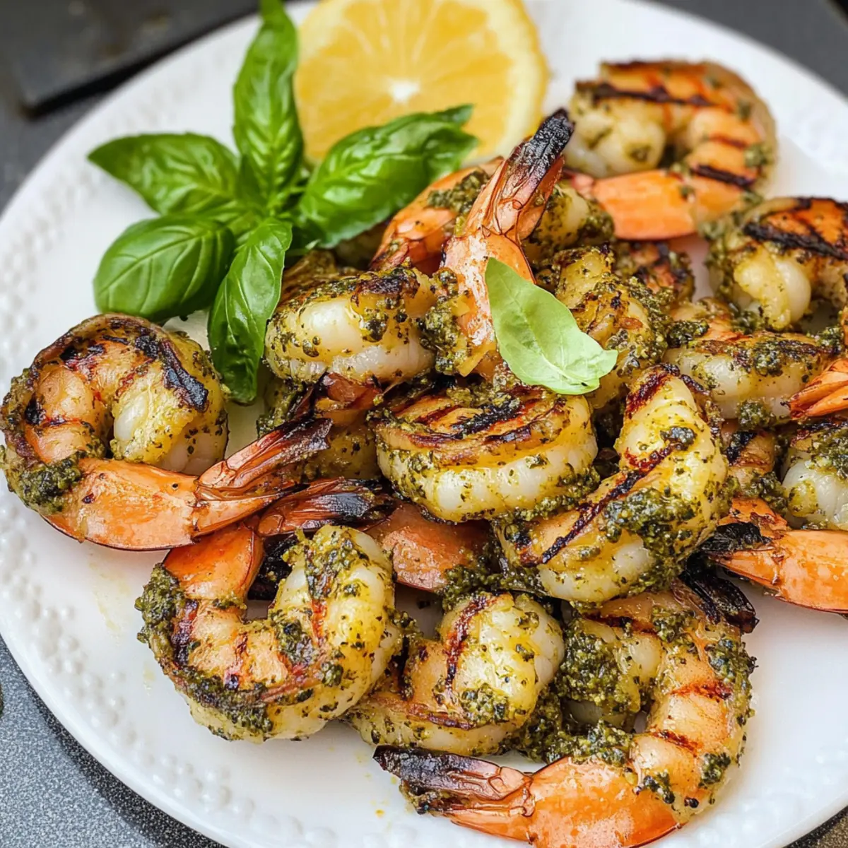 Die Sonne brennt und der Grill raucht – der perfekte Moment, um leckere, frisch zubereitete Meeresfrüchte auf den Tisch zu bringen! Meine Lieblingsvariante sind die schnellen gegrillten Pesto-Garnelen, die in nur 30 Minuten zubereitet sind und jeden Bissen in einen Genuss verwandeln. Dieser zart gegrillte Klassiker vereint die Aromen von aromatischem Basilikum, Knoblauch und würzigem Parmesan und ist dabei glutenfrei und familienfreundlich. Ob als schnelles Abendessen unter der Woche oder als schmackhafte Vorspeise für ein geselliges Beisammensein – diese Garnelen sind ein echter Publikumsliebling. Wer kann da widerstehen? Lassen Sie uns darüber sprechen, wie Sie mit diesem einfachen Rezept jeden Grillabend verwandeln können! Warum werden Sie dieses Rezept lieben? Schnelligkeit und Einfachheit: In nur 30 Minuten haben Sie ein köstliches Gericht auf dem Tisch, ideal für vielbeschäftigte Tage. Aromatische Vielfalt: Die Kombination von pesto mit frischen Garnelen sorgt für eine außergewöhnliche Geschmacksexplosion, die Ihre Sinne belebt. Familienfreundlich: Kinder lieben die zarten Garnelen, während die ganze Familie die gesunde und glutenfreie Zubereitung schätzt. Vielseitige Servieroptionen: Pairen Sie die Garnelen mit frischem Brot oder einem bunten Salat, um ein aufregendes und abwechslungsreiches Essen zu kreieren. Gourmet-Genuss: Dank der Verwendung von frischen Zutaten und hausgemachtem Pesto wird Ihr Grillabend zum kulinarischen Highlight. Probieren Sie auch diese nahrhaften Beilagen für ein rundum perfektes Mahl! Gegrillte Pesto-Garnelen Zutaten Für die Garnelen: 2 Pfund extra große Garnelen – Achten Sie darauf, dass sie geschält und entdarmt sind; gefrorene Garnelen vorher auftauen. 6 Esslöffel natives Olivenöl – Sorgt für Reichtum und Feuchtigkeit; kann durch Avocadoöl ersetzt werden. ¼ Teelöffel rote Pfefferflocken – Fügen Sie einen Hauch von Schärfe hinzu; weglassen, wenn kein Gewürz gewünscht ist. ½ Teelöffel Salz – Wichtig zum Würzen; nach Geschmack anpassen. Für das Pesto: 1 Tasse Basilikumblätter – Gibt die Hauptgeschmacksbasis; Spinat kann für einen milderen Geschmack verwendet werden. 3 große Knoblauchzehen – Intensiviert den Geschmack; gerösteter Knoblauch sorgt für ein süßeres Aroma. ¼ Tasse geriebener Parmigiano-Reggiano – Verleiht Tiefe und Umami; kann durch Hefeflocken ersetzt werden, um es milchfrei zu gestalten. ¼ Tasse Walnüsse – Sorgt für Textur und Geschmack im Pesto; verwenden Sie Sonnenblumenkerne für eine nussfreie Version. Zum Servieren: 1 Zitrone, in Spalten geschnitten – Optional, sorgt für Säure, die das Gericht aufhellt. Diese gegrillten Pesto-Garnelen sind eine einfache und köstliche Möglichkeit, frische Zutaten auf den Grill zu bringen! Schritt-für-Schritt-Anleitung für Gegrillte Pesto-Garnelen Step 1: Pesto zubereiten Zuerst bereiten Sie das aromatische Basilikumpesto vor. Geben Sie die Basilikumblätter, das Olivenöl, die Knoblauchzehen, die Walnüsse, die roten Pfefferflocken und das Salz in eine Küchenmaschine. Mixen Sie alles bei hoher Geschwindigkeit, bis eine glatte Paste entsteht. Dies sollte etwa 1-2 Minuten dauern. Achten Sie darauf, die Seiten der Schüssel abzukratzen, um alle Zutaten gut zu vermengen. Step 2: Garnelen marinieren Nehmen Sie 2 Esslöffel des zubereiteten Pestos und bewahren Sie es für später auf. Mischen Sie die Garnelen in einer großen Schüssel mit dem restlichen Pesto und stellen Sie sicher, dass jede Garnele gleichmäßig bedeckt ist. Lassen Sie die Garnelen dann etwa 30 Minuten bei Zimmertemperatur marinieren, damit sie die Aromen des Pestos gut aufnehmen. Step 3: Grill vorheizen Während die Garnelen marinieren, erhitzen Sie den Grill auf mittelhohe Temperatur (ca. 200-230 °C). Stellen Sie sicher, dass der Grillrost sauber ist und gut geölt, um ein Ankleben zu verhindern. Dies dauert etwa 10 Minuten, also nutzen Sie die Zeit, um alles weitere vorzubereiten. Step 4: Garnelen grillen Legen Sie die marinierten Garnelen vorsichtig auf den Grillrost. Grillen Sie sie für etwa 2-3 Minuten pro Seite, bis sie opak und leicht angebräunt sind. Achten Sie darauf, die Garnelen nicht zu überkochen, da sie sonst zäh werden können. Halten Sie die Grilldeckel geschlossen, um gleichmäßige Hitze zu gewährleisten. Step 5: Pesto hinzufügen Sobald die Garnelen fertig gegrillt sind, nehmen Sie sie vorsichtig vom Grill. Träufeln Sie das reservierte Pesto über die heißen Garnelen, damit es sich gleichmäßig verteilt und zusätzlichen Geschmack hinzufügt. Diese letzten Schritte verleihen den gegrillten Pesto-Garnelen den ultimativen Geschmackskick. Step 6: Servieren Servieren Sie die gegrillten Pesto-Garnelen sofort auf einem großen Teller. Fügen Sie lemon wedges hinzu, um dem Gericht eine frische Note zu verleihen. Genießen Sie die Garnelen allein oder in Kombination mit frischem Brot oder einem bunten Salat für ein perfektes Abendessen. Bereiten Sie Ihre Gegrillten Pesto-Garnelen im Voraus vor Die Gegrillten Pesto-Garnelen sind perfekt für die Vorbereitung im Voraus, sodass Sie in stressigen Zeiten Zeit sparen können! Sie können das Basilikumpesto bis zu 3 Tage im Voraus zubereiten und im Kühlschrank aufbewahren (in einem luftdichten Behälter, um die frische Farbe und den Geschmack zu bewahren). Auch die Garnelen können in der Marinade für bis zu 24 Stunden im Voraus vorbereitet werden, einfach nach dem Marinieren in einem gut verschlossenen Behälter im Kühlschrank lagern. Wenn Sie bereit sind zu grillen, heizen Sie einfach den Grill vor und grillen die Garnelen wie gewohnt. So genießen Sie den vollen Geschmack und die Qualität der gegrillten Pesto-Garnelen mit minimalem Aufwand! Variationen & Substitutionen für Gegrillte Pesto-Garnelen Machen Sie dieses Rezept noch kreativer und entdecken Sie, wie vielseitig Ihre gegrillten Pesto-Garnelen sein können! Nussfrei: Ersetzen Sie Walnüsse durch Sonnenblumenkerne für eine nussfreie Pesto-V