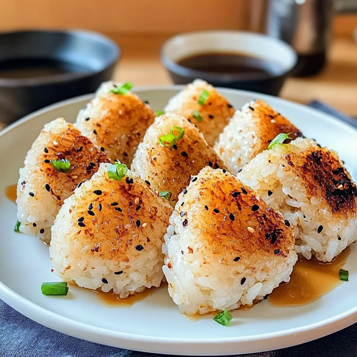 Als ich das erste Mal in Japan war, erlebte ich die Magie der Straßenstände, an denen sich Menschen um die frisch gegrillten Reisbällchen drängten. Diese gegrillten Reisbällchen, oder Onigiri, sind mehr als nur ein Snack – sie sind eine herzliche Umarmung, perfekt für ein Picknick oder als leichtes Mittagessen. Mit ihrer knackigen Kruste und der fluffigen Füllung bieten sie nicht nur eine gelungene Abwechslung von Fast Food, sondern auch die Möglichkeit zur individuellen Gestaltung mit verschiedenen Füllungen, von zartem Hähnchen bis hin zu reifem Avocado. Die Zubereitung ist kinderleicht und schnell, ideal für stressige Tage. Neugierig, wie Sie Ihren eigenen kleinen japanischen Snack zaubern können? Lassen Sie uns starten! Warum sind gegrillte Reisbällchen so beliebt? Einfachheit: Diese köstlichen kleinen Snacks sind mit minimalem Aufwand zubereitet. Sie benötigen lediglich grundlegende Kochfähigkeiten und einen Grill. Vielseitigkeit: Mit zahlreichen Füllmöglichkeiten – von zartem Hähnchen bis hin zu frischer Avocado – kann jeder ganz nach seinem Geschmack wählen und anpassen. Perfekte Konsistenz: Die Kombination aus außen knusprig und innen fluffig macht jeden Biss zu einem Genuss, der an Japan erinnert. Gesunde Option: Diese Reisbällchen sind eine großartige Alternative zu Fast Food und lassen sich leicht in eine ausgewogene Ernährung integrieren. Kreativ sein: Experimentieren Sie mit verschiedenen Saucen wie Teriyaki oder scharfer Mayo, um den Geschmack noch weiter zu verfeinern. Wenn Sie nach weiteren Ideen suchen, könnten unsere Rezeptvariationen inspirierend sein! Zutaten für gegrillte Reisbällchen • Gegrillte Reisbällchen sind einfach zuzubereiten und können nach Belieben gefüllt werden. Für den Reis Sushi-Reis – sorgt für die perfekte, klebrige Konsistenz der Reisbällchen; er ist ideal für die klassische Textur. Wasser – notwendig, um den Reis richtig zu garen; verwenden Sie das Verhältnis 1:1,5. Für die Würze Sojasauce – fügt einen herzhaften Umami-Geschmack hinzu; wählen Sie eine natriumarme Variante für eine leichtere Option. Geröstetes Sesamöl – bringt eine nussige Note; Sie können auch Olivenöl verwenden, wenn Sie einen anderen Geschmack möchten. Füllungen (optional) Gekochtes Hähnchen – eine proteinreiche Füllung, die gut vorbereitet werden kann; perfekt für eine herzhafte Variante. Thunfisch – eine köstliche Option für Meeresfrüchte-Liebhaber; einfach zu verwenden und leicht erhältlich. Avocado – sorgt für eine cremige Textur und ist reich an gesunden Fetten; ideal für Veganer. Gemüse – wählen Sie saisonales Gemüse wie Karotten oder Paprika für zusätzliche Frische und Farbe. Lassen Sie Ihrer Kreativität freien Lauf, um Ihre eigenen gegrillten Reisbällchen zu kreieren! Schritt-für-Schritt-Anleitung für gegrillte Reisbällchen Step 1: Reis waschen Waschen Sie 1 Tasse Sushi-Reis unter kaltem Wasser, bis das Wasser klar ist. Lassen Sie den Reis dann zusammen mit 1½ Tassen Wasser 30 Minuten lang einweichen, um die perfekte Textur für Ihre gegrillten Reisbällchen zu erreichen. Dies sorgt für einen klebrigen und gut formbaren Reis. Step 2: Reis kochen Kochen Sie den eingeweichten Reis in einem Topf oder Reiskocher gemäß den Anweisungen auf der Verpackung, was etwa 20 Minuten dauert. Achten Sie darauf, dass der Reis vollständig gekocht ist und lassen Sie ihn anschließend leicht abkühlen. Ein gut gekochter Reis ist entscheidend für das Formen schöner Reisbällchen. Step 3: Reis würzen Lockern Sie den gekochten Reis mit einer Gabel auf und mischen Sie dann 2 Esslöffel Sojasauce und 1 Esslöffel geröstetes Sesamöl unter. Dies verleiht Ihren gegrillten Reisbällchen einen leckeren Umami-Geschmack und eine nussige Note, die das Erlebnis abrundet. Step 4: Füllungen vorbereiten Während der Reis abkühlt, können Sie die gewünschten Füllungen vorbereiten. Hacken Sie beispielsweise gekochtes Hähnchen, Thunfisch oder Gemüse fein, um sie später in die Reisbällchen zu geben. Diese Füllungen sorgen für Abwechslung und Geschmack in Ihrer zubereiteten Speise. Step 5: Reisbällchen formen Befeuchten Sie Ihre Hände mit Wasser, um ein Kleben des Reises zu verhindern, und nehmen Sie etwa eine halbe Tasse des gewürzten Reises. Drücken Sie den Reis in Ihre Handfläche, fügen Sie die Füllung hinzu und rollen Sie ihn dann fest zu einer Kugel oder einem Dreieck. Achten Sie darauf, dass die Form kompakt ist, damit sie beim Grillen nicht auseinanderfällt. Step 6: Reisbällchen grillen Heizen Sie den Grill auf mittlere Hitze vor. Grillen Sie jede Seite der Reisbällchen etwa 3 Minuten lang, bis sie goldbraun und knusprig sind. Eine perfekte Bräunung sorgt für den köstlichen Crunch, den Sie bei Ihren gegrillten Reisbällchen erwarten. Step 7: Servieren Platzieren Sie die gegrillten Reisbällchen auf einer Platte. Wenn gewünscht, träufeln Sie etwas mehr Sojasauce darüber oder bestreuen Sie sie mit Sesamkörnern für zusätzlichen Geschmack und eine ansprechende Optik. Genießen Sie Ihre köstlichen, selbstgemachten gegrillten Reisbällchen! Expertentipps für gegrillte Reisbällchen Hände befeuchten: Um zu vermeiden, dass der Reis an Ihren Händen kleben bleibt, befeuchten Sie diese immer vor der Verarbeitung. Reissorte wählen: Verwenden Sie unbedingt Sushi-Reis für die optimale Konsistenz. Andere Reissorten werden weniger gut zusammenhalten. Grilltemperatur beachten: Achten Sie darauf, den Grill gut vorzuheizen; mittlere Hitze sorgt für eine gleichmäßige Bräunung ohne Verbrennungen. Füllung variieren: Probieren Sie verschiedene Füllungen aus, um Ihre gegrillten Reisbällchen interessant und schmackhaft zu halten. Kreativität ist hier das A und O! Lagerung: Lagern Sie übrig gebliebene Reisbällchen in einem luftdichten Behälter im Kühlschrank und erwärmen Sie diese auf einem Grill, um die Konsistenz zu bewahren. Lagerung und Einfrieren von gegrillten Reisbällchen Kühlsc