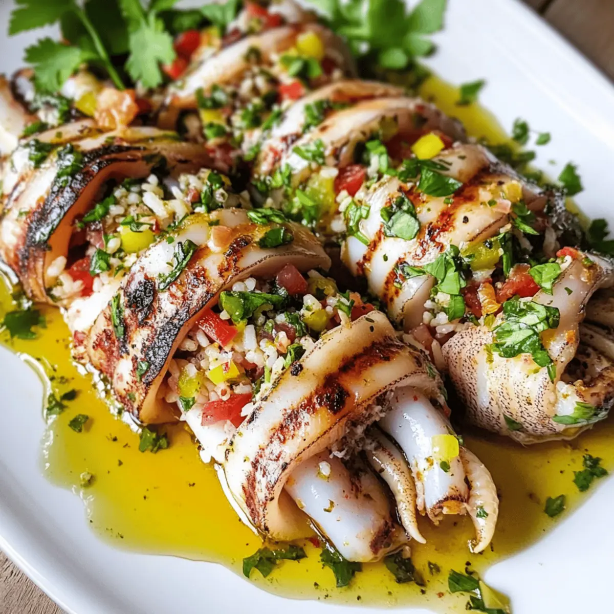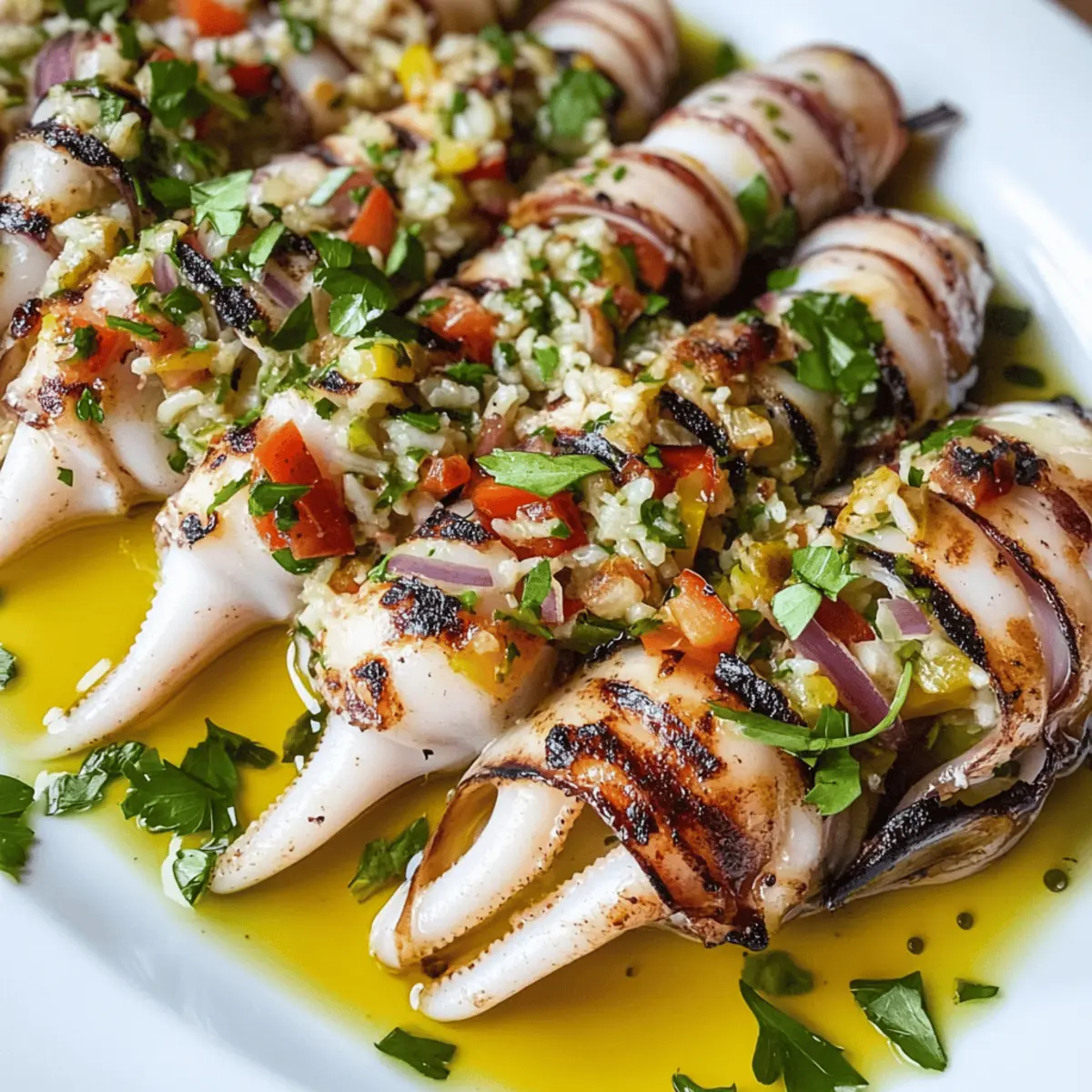 Genießen Sie der Ausgang mit diesem Rezept für gegrillten gefüllten Tintenfisch, vereint Aromen des Mittelmeers für einen unvergesslichen Genuss.