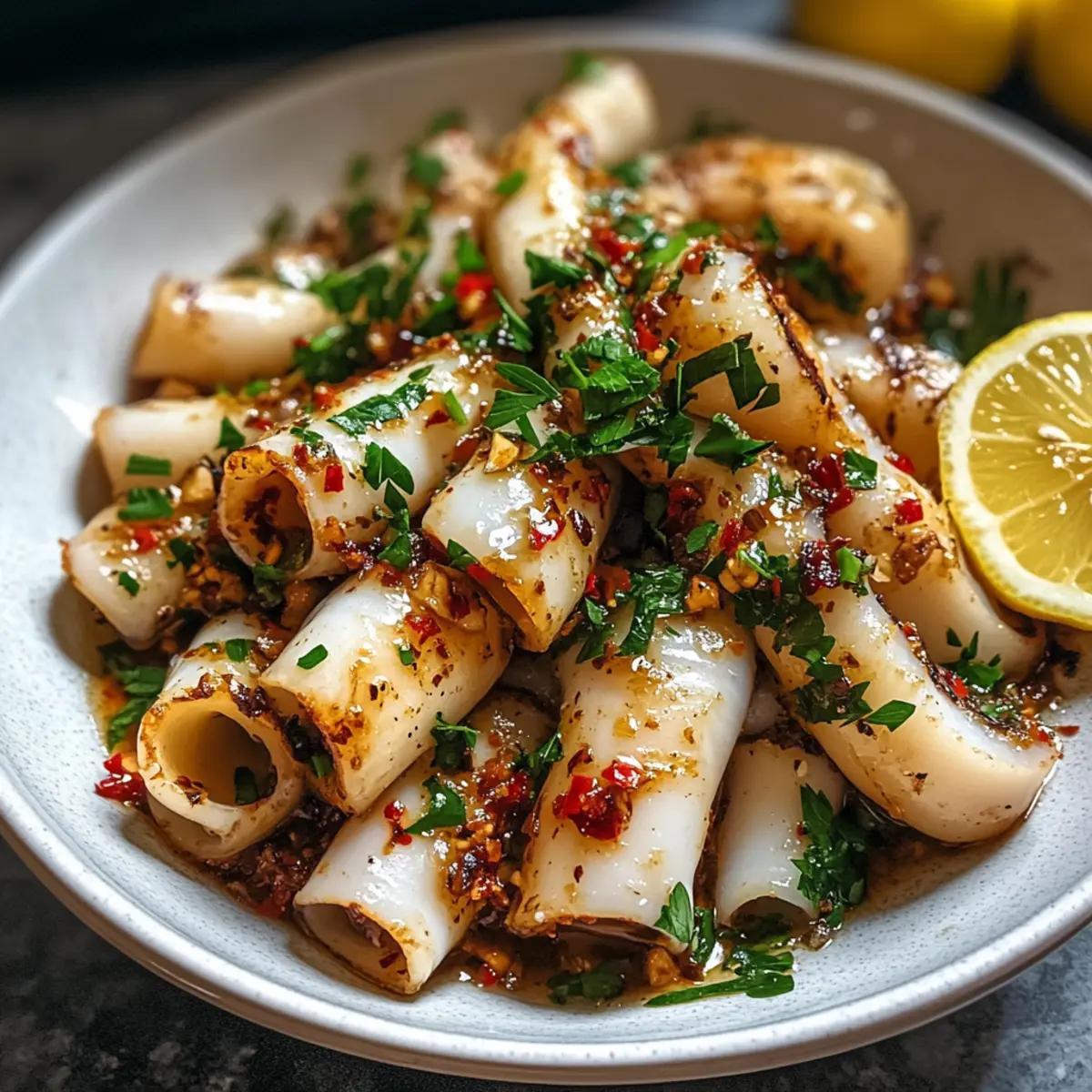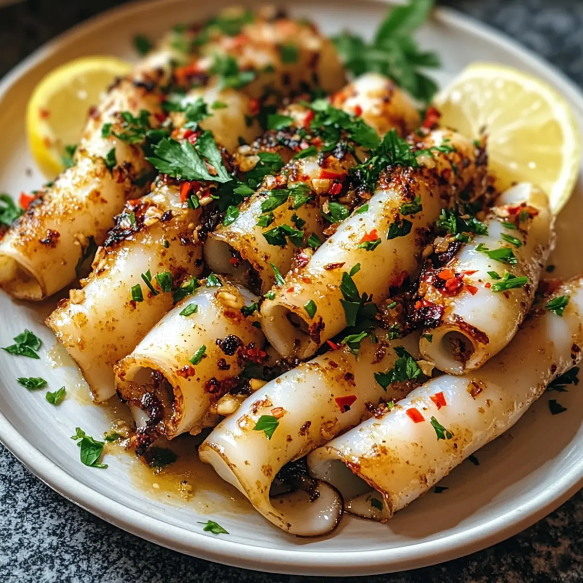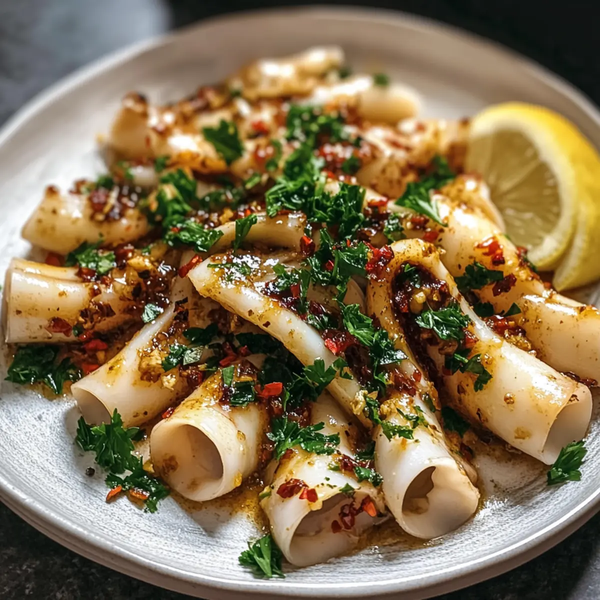 Während ich in meiner Küche stehe und den Duft von frisch gegrilltem Tintenfisch einatme, wird mir klar, dass sich diese Leidenschaft um viel mehr dreht als nur um Essen. Mein Rezept für Gegrillter Knoblauch-Chili-Tintenfisch bringt eine wunderbare Leichtigkeit auf den Tisch – perfekt für alle, die schnell und gesund genießen möchten. In nur 20 Minuten entführen wir unsere Geschmacksnerven auf eine mediterrane Reise, die auch eine ordentliche Portion Proteine liefert. Ob als Hauptgericht oder als leichter Snack, diese köstliche und nahrhafte Speise begeistert jeden Fischliebhaber und ist dabei so einfach zuzubereiten! Bist du bereit, deinem Gaumen ein Feuerwerk an Aromen zu schenken? Warum wirst du dieses Rezept lieben? Schnelligkeit: In nur 20 Minuten zauberst du ein köstliches Gericht, das perfekt in deinen hektischen Alltag passt. Ideal für spontane Dinnerpartys oder ein schnelles Abendessen nach einem langen Tag. Gesundheit: Der Gegrillte Knoblauch-Chili-Tintenfisch ist nicht nur lecker, sondern auch eine hervorragende Quelle für hochwertiges Protein mit weniger als 420 Kalorien pro Portion. So kannst du dich gesund ernähren, ohne auf den Geschmack zu verzichten. Aromatische Vielfalt: Mit frisch gehacktem Knoblauch und Chili verleiht dieses Rezept dem milden Tintenfisch ein aufregendes Geschmacksprofil, das jeden begeistert. Du wirst dir und deinen Gästen das Wasser im Mund zusammenlaufen lassen! Flexibilität: Ob als Hauptgang oder leichtes Fingerfood, dieser gegrillte Tintenfisch passt zu vielen Anlässen und kann mit verschiedenen Beilagen wie einem frischen Salat oder knusprigem Brot kombiniert werden. Für weitere Inspiration, probiere auch unser Rezept für Balsamico Steak, das ideal dazu passt. Einfache Zubereitung: Die wenigen Schritte des Rezepts machen es für Köche jeder Erfahrungsstufe zugänglich. Perfekt, um selbst in der stressigsten Zeit ein beeindruckendes Gericht zu servieren. Gegrillter Knoblauch-Chili-Tintenfisch Zutaten Für den Tintenfisch • Frische Tintenfischtuben – Achte darauf, dass die Tintenfische frisch sind, um die beste Textur und den süßlichen Geschmack zu erzielen. • Olivenöl – Hochwertiges extra natives Olivenöl verstärkt das Aroma und sorgt für eine schöne Grillfläche. • Steinsalz – Es hebt den natürlichen Geschmack des Tintenfischs hervor, ohne ihn zu übertönen. Für die Knoblauch-Chili-Mischung • Knoblauch – Fein gehackt und angebraten, bringt er eine reichhaltige, aromatische Note in das Gericht. • Rote Chili – Fügt sowohl Farbe als auch Schärfe hinzu; passe die Menge nach deinem persönlichen Schärfewunsch an. • Petersilie – Frisch, verleiht dem Gericht eine schöne Farbe und sorgt für einen ausgewogenen Geschmack. • Zitronensaft – Sorgt für eine erfrischende Säure, die das Gericht perfekt abrundet und den Gegrillten Knoblauch-Chili-Tintenfisch belebt. Schritt-für-Schritt-Anleitung für Gegrillter Knoblauch-Chili-Tintenfisch Step 1: Tintenfisch vorbereiten Schneide vorsichtig Linien quer über die Oberseiten der frischen Tintenfischtuben, um ein gleichmäßiges Garen zu gewährleisten. Tupfe die Tintenfische gründlich mit Papiertüchern ab, damit sie trocken sind, was zu einer besseren Grillentwicklung führt. Lass die vorbereiteten Tintenfischstücke beiseite, während du die Grillpfanne erwärmst. Step 2: Tintenfisch grillen Erhitze 1 Esslöffel Olivenöl in einer Grillpfanne bei hoher Temperatur. Lege die Tintenfischtuben für 2 Minuten auf die heiße Fläche und grille sie, bis sie leicht angebräunt sind und sich die Textur leicht festigt. Wende die Tintenfische und grillen sie für weitere 2 Minuten, bis sie zart und leicht knusprig sind. Nimm sie heraus und streue etwas Steinsalz über die noch heißen Tintenfische. Step 3: Knoblauch-Chili-Mischung zubereiten Reduziere die Hitze in der Grillpfanne auf mittlere Temperatur und füge den restlichen Esslöffel Olivenöl hinzu. Gib den fein gehackten Knoblauch und die gehackte rote Chili in die Pfanne und sautierte alles, bis der Knoblauch goldbraun und aromatisch ist, etwa 1-2 Minuten. Achte darauf, dass der Knoblauch nicht verbrennt, um Bitterkeit zu vermeiden. Step 4: Vereinen und Servieren Gib die gegrillten Tintenfische zurück in die Pfanne und wirf sie in der Knoblauch-Chili-Mischung für 20-30 Sekunden, bis alles gut vermischt ist. Nimm die Pfanne vom Herd und presse frischen Zitronensaft über das Gericht, um einen erfrischenden Geschmack zu verleihen. Garniere den Gegrillten Knoblauch-Chili-Tintenfisch mit der restlichen Petersilie und serviere ihn sofort. Meal Prep für Gegrillter Knoblauch-Chili-Tintenfisch Bereiten Sie den Gegrillten Knoblauch-Chili-Tintenfisch im Voraus vor, um wertvolle Zeit an stressigen Wochentagen zu sparen. Sie können die frischen Tintenfischröhren bis 24 Stunden im Voraus vorbereiten: Schneiden Sie sie wie beschrieben ein und tupfen Sie sie trocken, um die bestmögliche Grillmarkierung zu erzielen. Die Knoblauch-Chili-Mischung kann ebenfalls bis zu 3 Tage im Voraus zubereitet und im Kühlschrank aufbewahrt werden, wodurch die Aromen sogar noch intensiver werden. Wenn Sie bereit sind, zu servieren, erhitzen Sie die Mischung in der Pfanne, grillen Sie den vorbereiteten Tintenfisch wie gewohnt für 4 Minuten und kombinieren Sie alles mit Zitronensaft. So genießen Sie ein frisches und köstliches Gericht mit minimalem Aufwand! Expert Tips für Gegrillter Knoblauch-Chili-Tintenfisch Frische Zutaten: Achte darauf, dass die Tintenfischtuben frisch sind. Alte Tintenfische können einen unangenehmen Geschmack haben, der das Gericht ruiniert. Warm und trocken: Tupfe die Tintenfische gründlich ab, bevor du sie grillst. Dies sorgt für ein besseres Anbraten und verhindert, dass sie beim Grillen Wasser verlieren. Nicht überkochen: Grill die Tintenfische nicht länger als 4 Minuten insgesamt. Übermäßiges Garen macht sie gummiartig; die perfekte Konsistenz ist zart und leicht knusprig. Aromen anpassen: