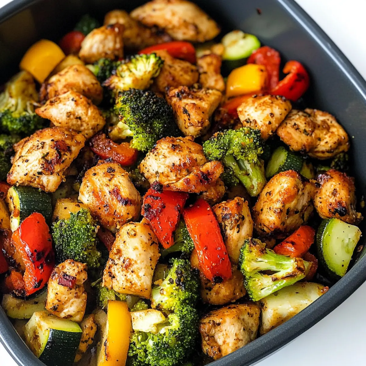 Ein schnelles und köstliches Gericht für die Gesunde Heißluftfritteuse mit Hähnchen und Gemüse, perfekt für eine low-carb oder keto Ernährung.