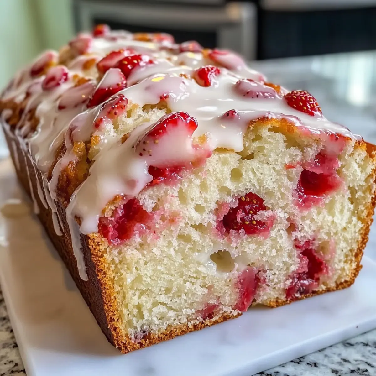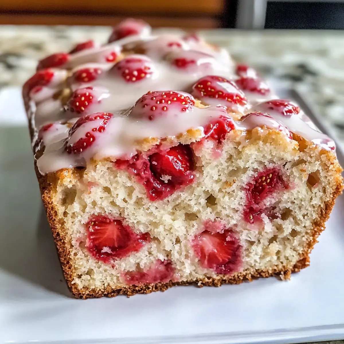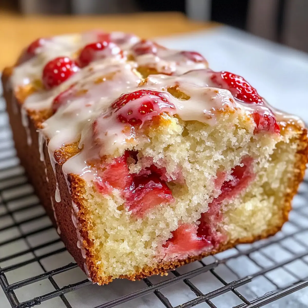 Es war ein sonniger Morgen, als ich die letzten Erdbeeren aus dem Kühlschrank holte. Sie dufteten frisch und süß, und ich wusste sofort, dass heute der perfekte Tag für ein glasiertes Erdbeerbrot ist. Dieses Rezept kombiniert zarte Erdbeeren in einem saftigen Brot, das dank seiner unkomplizierten Zubereitung zum idealen Begleiter für Frühstück oder Dessert wird. Mit wenigen Zutaten, die Sie wahrscheinlich bereits in Ihrer Küchenschublade haben, entsteht ein köstlicher Genuss, der nicht nur die ganze Familie erfreut, sondern auch Besucher beeindruckt. Stellen Sie sich vor, wie der süße Erdbeergeschmack auf Ihrer Zunge zergeht und das verführerische Glaze den perfekten Akzent setzt. Neugierig, wie Sie dieses fruchtige Meisterwerk selbst backen können? Warum sollten Sie glasiertes Erdbeerbrot lieben? Einfachheit: Die Zubereitung ist kinderleicht und benötigt nur grundlegende Backkenntnisse, sodass sogar Anfänger mühelos Erfolg haben. Fruchtige Frische: Saftige Erdbeeren sorgen für einen unerhört fruchtigen Geschmack, der jeden Bissen zu einem Genuss macht. Vielseitigkeit: Ob zum Frühstück, als Nachmittagskaffee oder bei Feiern – dieses Brot passt immer und sorgt für Begeisterung bei Gästen. Zeitersparnis: Schneller als Sie denken, ist dieser Laib im Ofen und erfüllt Ihr Zuhause mit einem unwiderstehlichen Aroma. Genießen Sie beim Backen die Vorfreude auf das Ergebnis und die glücklichen Gesichter, die es mit sich bringt. Glasiertes Erdbeerbrot Zutaten Für den Teig: Allzweckmehl – sorgt für die Struktur des Brotes; genaue Messung (ca. 250g) ist zu empfehlen. Zucker – verleiht Süße; verwenden Sie Kristallzucker, für einen reichhaltigen Geschmack können Sie die Hälfte durch braunen Zucker ersetzen. Backpulver – wirkt als Treibmittel; stellen Sie sicher, dass es frisch ist, um das richtige Aufgehen zu gewährleisten. Salz – hebt den Geschmack hervor; bei Verwendung von gesalzener Butter den Salzgehalt anpassen. Ungesalzene Butter (geschmolzen) – sorgt für Reichhaltigkeit und Feuchtigkeit; lassen Sie sie leicht abkühlen, bevor Sie sie vermischen; hochwertige europäische Butter ist empfehlenswert. Eier – geben Auftrieb und Struktur; verwenden Sie große Eier in Zimmertemperatur für eine glatte Emulsion. Hübsch gehackte frische Erdbeeren – sorgen für Fruchtigkeit und Feuchtigkeit; einige für das Glasieren zurückbehalten und wählen Sie feste, reife Beeren, um Durchweichen zu vermeiden. Vanilleextrakt – fügt Tiefe im Geschmack hinzu; nach Vorliebe anpassen. Für das Glasur: Puderzucker – wird für die Glasur verwendet; die Menge an Milch je nach gewünschter Konsistenz anpassen. Milch – hilft, die richtige Glasur-Konsistenz zu erreichen; nach Bedarf in kleinen Mengen hinzufügen. Dieses Rezept für glasiertes Erdbeerbrot wird nicht nur die Geschmäcker Ihrer Familie erfreuen, sondern wird auch der Star auf jedem Tisch! Schritt-für-Schritt-Anleitung für glasiertes Erdbeerbrot Step 1: Ofen vorheizen Heizen Sie Ihren Ofen auf 175 °C vor und bereiten Sie eine 23×13 cm große Kastenform vor, indem Sie sie leicht einfetten oder mit Backpapier auslegen. Dies sorgt dafür, dass Ihr glasiertes Erdbeerbrot nach dem Backen problemlos aus der Form gelöst werden kann. Step 2: Trockene Zutaten mischen In einer großen Schüssel das Allzweckmehl, den Zucker, das Backpulver und das Salz gründlich vermengen. Verwenden Sie einen Schneebesen, um sicherzustellen, dass alle trockenen Zutaten gut miteinander vermischt sind. Dies ist wichtig für die gleichmäßige Verteilung der Aromen im glasierten Erdbeerbrot. Step 3: Nasse Zutaten kombinieren In einer separaten Schüssel die geschmolzene Butter und die Eier gut verquirlen. Fügen Sie die gehackten Erdbeeren und den Vanilleextrakt hinzu und rühren Sie vorsichtig um, bis alles gut vermischt ist. Achten Sie darauf, die Erdbeeren gleichmäßig zu verteilen, um eine fruchtige Explosion in jedem Bissen des Brotes zu gewährleisten. Step 4: Zutaten kombinieren Fügen Sie die nassen Zutaten zu den trockenen Zutaten hinzu und falten Sie alles vorsichtig mit einem Spatel oder einem großen Löffel zusammen, bis gerade so alles vermischt ist. Achten Sie darauf, nicht zu übermischen, da dies das glasiertes Erdbeerbrot dichten könnte. Es sollten noch geringe Klumpen sichtbar sein. Step 5: Brot backen Gießen Sie den Teig in die vorbereitete Kastenform und glätten Sie die Oberseite mit einem Spatel. Backen Sie das Brot für 50 bis 60 Minuten im vorgeheizten Ofen, bis ein Zahnstocher, den Sie in die Mitte stechen, sauber herauskommt. Das Brot sollte goldbraun und beim Tippen auf die Oberfläche leicht elastisch sein. Step 6: Brot abkühlen Nehmen Sie das glasiertes Erdbeerbrot aus dem Ofen und lassen Sie es für etwa 10 Minuten in der Form abkühlen. Danach nehmen Sie es vorsichtig aus der Form und lassen es auf einem Gitterrost vollständig auskühlen. Dies ist entscheidend, um die perfekte Textur und das Aroma zu bewahren. Step 7: Glasur vorbereiten In einer kleinen Schüssel den Puderzucker und die Milch zusammen mit den zurückbehaltenen Erdbeeren gut vermischen, bis eine glatte Glasur entsteht. Falls die Glasur zu dick ist, fügen Sie nach Bedarf kleine Mengen Milch hinzu, um die gewünschte Konsistenz zu erreichen. Step 8: Glasur auftragen Sobald das Brot vollständig abgekühlt ist, gießen Sie die Glasur über die Oberseite und lassen Sie sie in die Ritzen des glasierten Erdbeerbrotes laufen. Diese süße Glasur verleiht Ihrem Brot den letzten Schliff und macht es noch verführerischer für alle, die es probieren möchten. Bereiten Sie Ihr glasiertes Erdbeerbrot im Voraus vor! Glasiertes Erdbeerbrot ist eine hervorragende Wahl für die Planung Ihrer Mahlzeiten! Sie können die trockenen Zutaten (Allzweckmehl, Zucker, Backpulver und Salz) bis zu 3 Tage im Voraus mischen und in einem luftdichten Behälter aufbewahren, um die Aromen frisch zu halten. Auch die Erdbeeren können bis zu 24 Stunden vorher gew