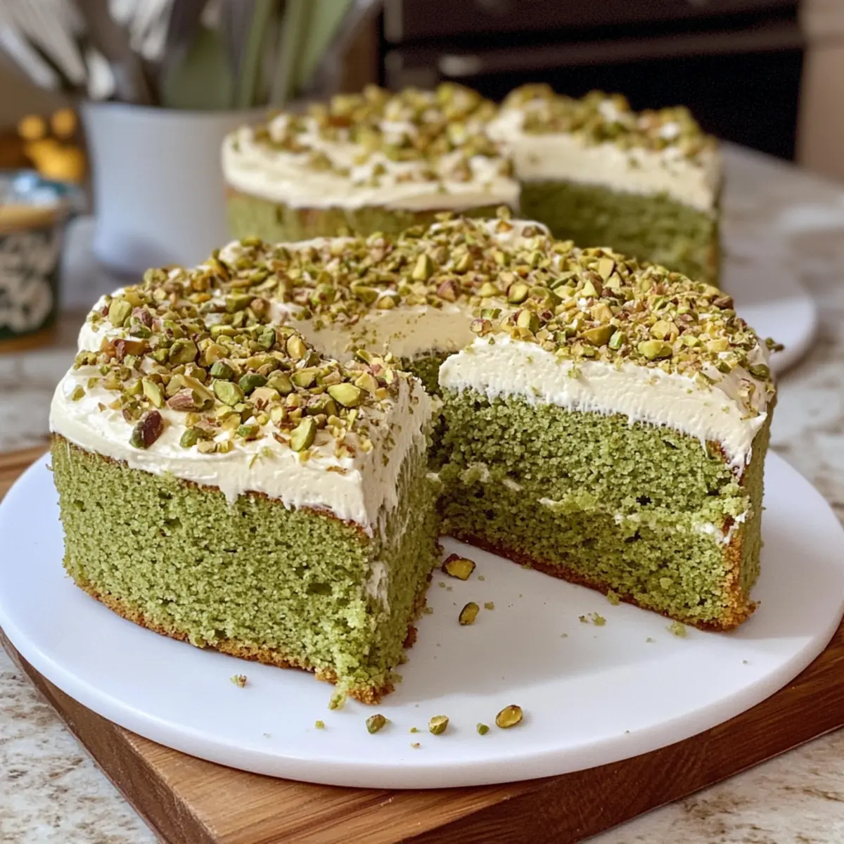 Dieser glutenfreie Matcha-Pistazienkuchen ist nicht nur ein Augenschmaus, sondern auch ein Wohltat für jeden Gaumen!