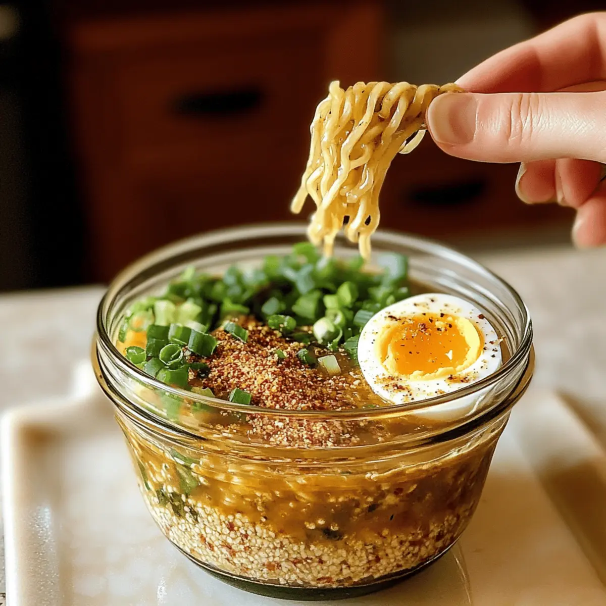 Eines der besten Dinge an selbstgemachter Küche ist die Freiheit, alle Kochgewohnheiten neu zu interpretieren. Während ich das Aroma von frischen Kräutern und Gewürzen genieße, hat mich die Idee begeistert, ein eigenes glutenfreies Ramen-Gewürz zu kreieren, das nicht nur absolut köstlich, sondern auch schnell und einfach zuzubereiten ist. Diese hausgemachte Mischung ist die perfekte Lösung für alle, die auf der Suche nach einer sättigenden und nahrhaften Alternative zu herkömmlichen Ramen-Päckchen sind. In nur fünf Minuten zauberst du ein ganz neues Geschmackserlebnis, das nicht nur glutenfrei, sondern auch kinderfreundlich und budgetschonend ist. Neugierig, wie du mit wenigen Zutaten ein unverwechselbares Aroma für deine nächsten Nudelgerichte erzielen kannst? Lass uns gemeinsam in die Welt des glutenfreien Ramen-Gewürzes eintauchen! Warum ist dieses Ramen-Gewürz einzigartig? Vielseitigkeit: Dieses glutenfreie Ramen-Gewürz passt zu einer Vielzahl von Gerichten – von Nudelgerichten bis hin zu Gemüsepfannen, du kannst es vielseitig einsetzen. Schnelle Zubereitung: In nur fünf Minuten hast du eine schmackhafte Gewürzmischung gezaubert, die deinen Stress in der Küche reduziert. Gesundheit: Mit hochwertigen Zutaten ist es nicht nur glutenfrei, sondern auch vegan und nährstoffreich – perfekt für Gesundheitsbewusste! Reichhaltiger Geschmack: Die Kombination aus Gewürzen sorgt für einen intensiven Umami-Geschmack, der selbst bei den verwöhntesten Gaumen Anklang findet. Kostengünstig: Du sparst Geld im Vergleich zu teuren Fertigprodukten, während du gleichzeitig die Kontrolle über die verwendeten Zutaten behältst. Entdecke auch unsere anderen leckeren Gewürzmischungen! Glutenfreies Ramen Gewürz Zutaten • Dieses glutenfreie Ramen Gewürz ist einfach und enthält nur die besten Zutaten für deinen perfekten Geschmack! Für die Gewürzmischung Nährhefe – Fügt einen käsigen, umami Geschmack hinzu; kann durch eine Mischung aus gemahlenen Cashewkernen und einem Spritzer Zitronensaft ersetzt werden. Salz – Verstärkt den Gesamteindruck des Geschmacks; je nach persönlichem Vorlieben anpassen. Knoblauchpulver – Sorgt für ein aromatisches Aroma; frischer Knoblauch kann in einer Notlage verwendet werden, beeinflusst jedoch die Zubereitungsmethode. Zwiebelpulver – Gibt eine süße, savoire Basis; für frische Zwiebel etwa 1 Esslöffel fein gehackte Zwiebel pro Teelöffel verwenden. Getrockneter Basilikum – Bietet eine süße Note und Tiefe; kann mit getrocknetem Thymian oder italienischen Gewürzen ersetzt werden. Getrockneter Oregano – Verleiht einen herzhaften, kräuterigen Eindruck; wenn nicht verfügbar, eignen sich italienische Kräuter oder Majoran. Schwarzer Pfeffer – Fügt eine milde Schärfe hinzu; frisch zerstoßener schwarzer Pfeffer wird für maximalen Geschmack empfohlen. Schritt-für-Schritt-Anleitung für glutenfreies Ramen-Gewürz Schritt 1: Zutaten vermengen In einer kleinen Schüssel alle Zutaten des glutenfreien Ramen-Gewürzes gründlich vermengen. Achte darauf, die Nährhefe, das Salz, das Knoblauchpulver, das Zwiebelpulver, den getrockneten Basilikum, den getrockneten Oregano und den schwarzen Pfeffer gleichmäßig zu kombinieren. Verwende einen Löffel oder einen kleinen Schneebesen, um eine gleichmäßige Mischung zu erreichen, die gut aussieht und intensiv duftet. Schritt 2: Gewürzmischung aufbewahren Übertrage die fertige Gewürzmischung in ein luftdichtes Behältnis, wie beispielsweise ein Einmachglas. Stelle sicher, dass der Deckel fest verschlossen ist, um die Frische zu bewahren. An einem kühlen, trockenen Ort kannst du das Gewürz bis zu drei Monate lang aufbewahren, bevor es seinen Geschmack verliert. Diese selbstgemachte glutenfreie Ramen-Gewürzmischung wartet darauf, in deinen Gerichten verwendet zu werden. Schritt 3: Ramen zubereiten Um glutenfreie Ramen herzustellen, lege einen Ramen-Teigblock in eine hitzebeständige Glasschüssel. Streue etwa 1 Esslöffel deiner frisch gemischten glutenfreien Ramen-Gewürzmischung gleichmäßig über die Nudeln. Das Gewürz verleiht den Nudeln eine kräftige Geschmacksbasis, die perfekt zu deinem Gericht passt. Schritt 4: Brühe hinzufügen Gieße 1 Tasse deiner Wahl an Hühner-, Rinder- oder Gemüsebrühe über den Ramen-Teigblock in der Schüssel. Achte darauf, dass die Brühe die Nudeln vollständig bedeckt, um ein gleichmäßiges Garen zu gewährleisten. Die Mischung erreicht die gewünschte Konsistenz, wenn du die Schüssel in die Mikrowelle stellst. Schritt 5: Mikrowelle benutzen Erhitze die Schüssel in der Mikrowelle in einminütlichen Intervallen, bis die Nudeln zart sind – das dauert in der Regel etwa 4 bis 5 Minuten. Überprüfe nach jeder Minute, ob die Ramen-Nudeln die gewünschte Garstufe erreicht haben. Die Nudeln sollten weich und durchscheinend sein, wenn sie fertig sind. Schritt 6: Abkühlen und genießen Lass die Ramen nach dem Erhitzen kurz abkühlen, bevor du sie servierst. Dies sorgt dafür, dass die Brühe nicht zu heiß ist und ein angenehmes Esserlebnis ermöglicht. Genieße deine selbstgemachte glutenfreie Ramen, die dank deiner eigenen Gewürzmischung voller Geschmack ist, und entdecke, wie die Aromen deine Geschmacksknospen verwöhnen. Lagerungstipps für glutenfreies Ramen-Gewürz Raumtemperatur: Bewahre das glutenfreie Ramen-Gewürz in einem luftdichten Behälter auf, um die Frische und den Geschmack bis zu drei Monate zu erhalten. Kühlschrank: Wenn du etwas länger die Haltbarkeit sichern möchtest, kann das Gewürz auch im Kühlschrank gelagert werden; trotzdem sollten die Aromen gut eingeschlossen sein. Gefriertruhe: Es ist nicht empfohlen, das Ramen-Gewürz einzufrieren, da dies die Textur und den Geschmack beeinträchtigen könnte. Verwendung: Bei der Zubereitung einfach 1 Esslöffel des Gewürzes pro Portion verwenden und wie beschrieben mit Brühe und Nudeln kombinieren. Vorbereitungen für das glutenfreie Ramen Gewürz Das glutenfreie 