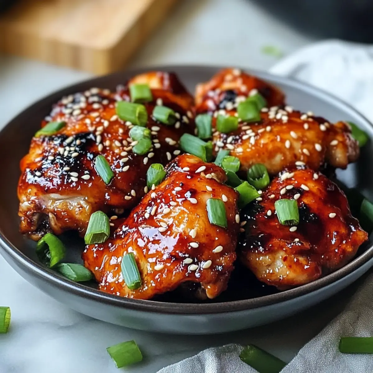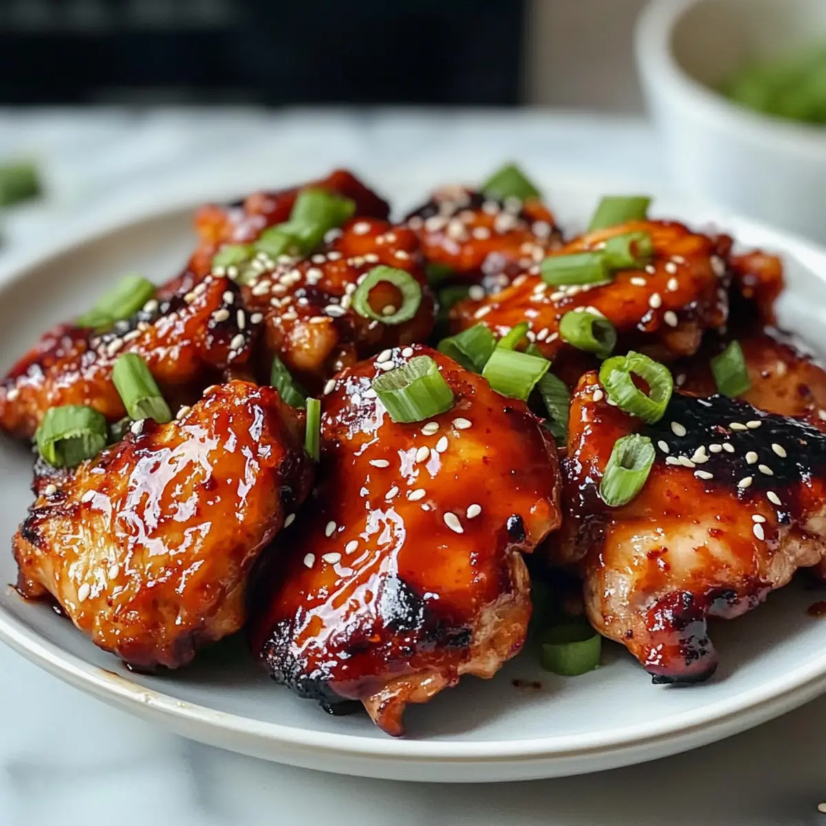 „Hast du schon mal probiert, mit deinem Kochen um die Welt zu reisen?“ In meiner kleinen Küche habe ich kürzlich die aufregenden Aromen Koreas entdeckt, und das Ergebnis waren diese köstlichen Gochujang-Hähnchenkeulen aus der Heißluftfritteuse. Schon nach den ersten Bissen wusste ich: diese knackigen, saftigen Stückchen sind mehr als nur ein schnelles Abendessen! Sie vereinen die perfekte Mischung aus würzig, süß und herzhaft und sind dabei ganz unkompliziert in der Zubereitung. Egal, ob du dir eine schnelle Woche versüßt oder Meal Prep für die kommenden Tage betreibst, dieses Rezept ist ein echter Hit. Bereit, deine Kochkünste auf das nächste Level zu heben? Lass uns gemeinsam eintauchen! Warum sind diese Hähnchenschenkel ein Hit? Einzigartiger Geschmack: Die Kombination aus Gochujang, Honig und Sesamöl führt zu einem köstlich-würzigen Besteck, das begeistert. Einfach zuzubereiten: Mit nur wenigen Zutaten ist das Rezept schnell und unkompliziert für jeden Küchenanfänger umsetzbar. Vielseitige Anpassungsmöglichkeiten: Du kannst die Schärfe anpassen und zusätzliche Gemüse beifügen, um das Gericht nach deinem Geschmack zu gestalten. Probiere es mit gebratenem Brokkoli oder einer frischen Gurkensalat als Beilage! Ideal für Meal Prep: Diese Hähnchenschenkel sind perfekt für die Wochenvorbereitung – sie bleiben im Kühlschrank bis zu drei Tage frisch! Gesund und Proteinreich: Genieße die Vorteile eines proteinreichen Gerichts ohne schlechtes Gewissen, während du die Aromen Koreas in deiner eigenen Küche entdeckst. Gochujang Hähnchenschenkel Zutaten • Für die Marinade: Gochujang – sorgt für die intensive Würze und Süße, die dem Gericht seinen charakteristischen koreanischen Geschmack verleiht. Sojasauce – für die salzige Tiefe; achte auf eine glutenfreie Variante wie Tamari, wenn nötig. Honig – bietet die perfekte Süßnote und hilft beim Karamellisieren während des Kochens. Sesamöl – bringt ein nussiges Aroma, das das gesamte Gericht verfeinert. Reisessig – verleiht eine milde Säure, die die Reichhaltigkeit ausbalanciert. Knoblauch (gehackt) – sorgt für aromatische Tiefe und zusätzlichen Geschmack. Ingwer (frisch gerieben) – bringt eine angenehme Wärme und Zing in die Marinade. Schwarzer Pfeffer – rundet den Geschmack ab und fördert die Aromen. • Für das Hähnchen: Hähnchenschenkel – das Hauptbestandteil, saftig und zart; du kannst auch Hühnchenbrust für eine magerere Option verwenden. Gemüsestücke (optional) – wie Brokkoli oder Paprika, um das Gericht zu bereichern und eine gesunde Beilage zu schaffen. Sesamsamen (zum Garnieren) – sorgen für zusätzlichen Crunch und ein ansprechendes Aussehen. Frühlingszwiebeln (gehackt) – bringen Frische und Farbe auf den Teller. • Für die Zubereitung: Pflanzenöl/Sprühöl – verhindert das Ankleben im Air Fryer und sorgt für knusprige Haut. Mit diesen Zutaten bringst du die aufregenden Aromen Koreas direkt in deine Küche! Schritt-für-Schritt-Anleitung für Gochujang Hähnchenschenkel aus der Heißluftfritteuse Schritt 1: Marinade vorbereiten Vermische in einer Schüssel das Gochujang, die Sojasauce, den Honig, das Sesamöl, den Reisessig, den gehackten Knoblauch, den geriebenen Ingwer und den schwarzen Pfeffer. Rühre die Zutaten gut um, bis sie eine homogene Marinade bilden. Diese aromatische Mischung wird den Gochujang Hähnchenschenkeln ihren einzigartigen Geschmack verleihen. Schritt 2: Hähnchen marinieren Lege die Hähnchenschenkel in eine große Schüssel oder einen Gefrierbeutel und übergieße sie gleichmäßig mit der vorbereiteten Marinade. Achte darauf, dass die Hähnchenschenkel gut bedeckt sind. Lass sie für mindestens 30 Minuten im Kühlschrank marinieren; für intensivere Aromen ist eine Übernachtmarinierung ideal. Schritt 3: Heißluftfritteuse vorheizen Erhitze die Heißluftfritteuse auf 200 °C (400 °F) für etwa 5 Minuten. Ein gut vorgeheiztes Gerät sorgt dafür, dass die Hähnchenschenkel gleichmäßig und knusprig garen. Bereite währenddessen den nächsten Schritt vor, indem du die Fritteuse mit Sprühöl einfettest. Schritt 4: Hähnchen anrichten Sprühe die Fritteuse leicht mit Pflanzenöl ein, um ein Ankleben zu verhindern. Lege die marinierten Hähnchenschenkel in einer einzigen Schicht in den Korb, wobei die Hautseite nach unten zeigt, wenn du Haut verwendest. Dies sorgt dafür, dass sie schön knusprig werden. Schritt 5: Hähnchen garen Frittier die Hähnchenschenkel 10 Minuten lang. Wende sie dann vorsichtig und frittiere sie für weitere 8-10 Minuten, bis die Haut goldbraun und knusprig ist und die Innentemperatur 74 °C (165 °F) erreicht. Ein Fleischthermometer hilft dir dabei, die perfekte Garstufe zu gewährleisten. Schritt 6: Garnieren und servieren Lass die Hähnchenschenkel nach dem Garen für einige Minuten ruhen. Garniere sie dann mit Sesamsamen und gehackten Frühlingszwiebeln, um das Gericht farbenfroher zu gestalten. Diese köstlichen Gochujang Hähnchenschenkel aus der Heißluftfritteuse passen hervorragend zu Reis oder frischem Gemüse. Variationen & Anpassungen für Gochujang Hähnchenschenkel Ermutige dich selbst, mit diesen köstlichen Gochujang Hähnchenschenkel zu experimentieren – deine Geschmacksknospen werden es dir danken! Schärfer: Erhöhe die Menge an Gochujang oder füge rote Pfefferflocken hinzu, um das Gericht noch feuriger zu gestalten. Ein wenig Extra-Wärme kann echte Begeisterung hervorrufen und dein Gericht auf die nächste Stufe heben. Glutenfrei: Tausche die Sojasauce gegen Tamari, um eine völlig glutenfreie Variante zu genießen. So steht dem Genuss nichts im Wege, selbst für diejenigen mit speziellen diätetischen Bedürfnissen. Gemüse hinzufügen: Ergänze das Gericht, indem du Gemüse wie Paprika oder Brokkoli im Air Fryer mit den Hähnchenschenkeln garst. Dies sorgt für eine gesunde, bunte Beilage und vereinfacht die Zubereitung, da alles in einem Gerät gekocht wird. Herzhafter: 