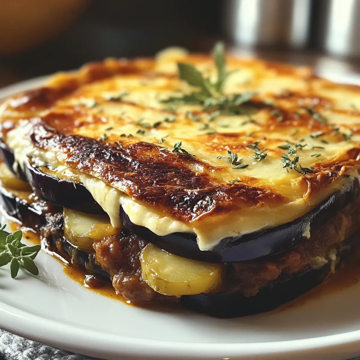 Wenn der Duft von frisch gebackenem Gemüse und würzigem Fleisch in die Luft steigt, weiß ich, dass etwas Besonderes auf dem Tisch landet. Diese Griechische Moussaka ist nicht nur ein einfaches Gericht, sondern eine wahre Hommage an die traditionelle griechische Küche. Die geschichteten Aromen von gebratenen Auberginen, zarten Kartoffeln und einer luxuriösen Béchamelsauce verwandeln jede Mahlzeit in ein gemütliches Festmahl. Dieses Rezept ist perfekt für alle, die in der Küche kreativ werden möchten, und bietet den zusätzlichen Vorteil, dass es sich hervorragend vorbereiten und für die ganze Familie servieren lässt. Und mal ehrlich – wer kann einem solchen Komfortessen schon widerstehen? Lassen Sie uns gemeinsam in die Welt der griechischen Genüsse eintauchen. Welche Erinnerungen weckt für Sie das Wort „Moussaka“? Warum ist Griechische Moussaka so besonders? Einzigartiger Geschmack: Die Kombination aus saftigem Fleisch, aromatischen Gewürzen und gebratenem Gemüse sorgt für ein unvergessliches Geschmackserlebnis. Einfach zuzubereiten: Trotz ihrer festlichen Erscheinung ist diese Moussaka erstaunlich leicht nachzukochen und bietet eine perfekte Möglichkeit, Gäste zu beeindrucken. Köstlicher Komfort: Dieses Gericht wärmt von innen und eignet sich hervorragend für Familienessen oder besondere Anlässe. Vielfältige Variationen: Passen Sie die Zutaten ganz nach Ihrem Geschmack an – probieren Sie zum Beispiel Rindfleisch oder sogar vegetarische Alternativen mit Ricotta. Vorbearbeitungsfreundlich: Bereiten Sie die Moussaka am Vortag vor, um die Aromen zu intensiveren. Perfekt für stressfreie Feierlichkeiten! Genießen Sie dazu einen frischen griechischen Salat oder knuspriges Brot, um die köstliche Sauce aufzusaugen! Griechische Moussaka Zutaten Für das Gemüse: Auberginen – Sie sind die Basis des Gerichts; verwenden Sie feste, glänzende Exemplare für den besten Geschmack. Kartoffeln – Sie geben der Moussaka Struktur und machen sie herzhaft. Zucchini – Fügt zusätzliche Textur und Geschmacksschichten hinzu. Für die Fleischsoße: Hackfleisch (Rind oder Lamm) – Lamm verleiht den traditionellen Geschmack, aber Rindfleisch ist eine gute Alternative. Zwiebel – Süße rote Zwiebeln balancieren die Aromen perfekt. Knoblauch – Ist entscheidend für eine aromatische Basis der Fleischsoße. Passierte Tomaten – Schaffen eine kräftige Sauce; verwenden Sie Dosentomaten für mehr Komfort. Rotwein – Bringt Reichtum und Säure in die Soße. Gewürze (Zimt, Muskat) – Unverzichtbar für den authentischen griechischen Geschmack. Kräuter (Oregano, Thymian, Petersilie) – Fügen klassische mediterrane Noten hinzu. Für die Béchamelsauce: Butter – Grundlage der Béchamel für einen reichen Geschmack. Mehl – Dient als Verdickungsmittel für die Sauce. Milch – Verleiht der Béchamel eine cremige Konsistenz. Eigelbe – Sorgen für eine seidige Textur der Sauce. Muskatnuss – Ein Hauch davon verstärkt den Geschmack. Käse (Kefalograviera oder Parmesan) – Sorgt für eine goldene, blubbernde Kruste. Genießen Sie die Zubereitung dieser Griechischen Moussaka, und denken Sie daran, das Gericht einen Tag vorher zu machen, um die Aromen noch intensiver zur Geltung zu bringen! Schritt-für-Schritt-Anleitung für Griechische Moussaka Schritt 1: Gemüse vorbereiten Schneiden Sie die Auberginen, Zucchini und Kartoffeln in gleichmäßige Scheiben, etwa 1 cm dick. Bestreuen Sie die Auberginenscheiben großzügig mit Salz und lassen Sie sie 30 Minuten ruhen, um die Feuchtigkeit zu entziehen. Dies fördert eine bessere Textur und verhindert, dass sie beim Braten matschig werden. Schritt 2: Gemüse anbraten Erhitzen Sie in einer großen Pfanne ausreichend Olivenöl bei mittlerer Hitze. Braten Sie die gewürzten Auberginen, Zucchini und Kartoffeln je nach Dicke etwa 3-5 Minuten pro Seite, bis sie goldbraun sind. Lassen Sie sie anschließend auf Küchenpapier abtropfen, um überschüssiges Öl zu entfernen. Schritt 3: Fleischsoße zubereiten Erhitzen Sie in einem großen Topf etwas Olivenöl und braten Sie die gehackten Zwiebeln bei mittlerer Hitze an, bis sie weich und durchscheinend sind (ca. 5 Minuten). Fügen Sie den gehackten Knoblauch hinzu und braten Sie ihn kurz mit. Geben Sie das Hackfleisch (Rind oder Lamm) hinzu und braten Sie dieses unter gelegentlichem Rühren an, bis es vollständig durchgegart ist (ca. 10 Minuten). Schritt 4: Sauce verfeinern Gießen Sie den Rotwein über das Fleisch und lassen Sie ihn bei mittlerer Hitze 5-7 Minuten köcheln, bis er fast vollständig verdampft ist. Fügen Sie dann die passierten Tomaten, Zimt, Muskat und die frischen Kräuter hinzu und lassen Sie die Soße 10-15 Minuten bei geringer Hitze köcheln, damit sich die Aromen gut vermischen. Schritt 5: Béchamelsauce herstellen In einem separaten Topf die Butter bei niedriger Hitze schmelzen. Fügen Sie das Mehl hinzu und rühren Sie es etwa 2 Minuten lang, um eine Roux zu erstellen. Bei gleichmäßigem Rühren die Milch langsam hinzufügen, bis die Mischung aufkocht und dicker wird. Rühren Sie die Eigelbe und den geriebenen Käse unter, bis die Béchamelsauce cremig und glatt ist. Schritt 6: Ofen vorheizen Heizen Sie Ihren Ofen auf 165°C (Umluft) oder 175°C (Ober-/Unterhitze) vor. Dies sorgt dafür, dass die Griechische Moussaka gleichmäßig und schnell durchbackt, was zu einer perfekten Kruste führt. Schritt 7: Moussaka schichten In einer großen Auflaufform beginnen Sie mit einer Schicht der vorgekochten Kartoffeln, gefolgt von einer Schicht Auberginen und Zucchini. Verteilen Sie die Fleischsoße gleichmäßig darauf und bedecken Sie alles mit der cremigen Béchamelsauce. Achten Sie darauf, alle Schichten gut einzuschließen, um ein optimales Ergebnis zu erzielen. Schritt 8: Backen und servieren Backen Sie die Moussaka im vorgeheizten Ofen für 40-45 Minuten, bis die Oberseite goldbraun und blubbernd ist. Lassen Sie die Moussaka nach dem Backen mindestens 30 Minuten 