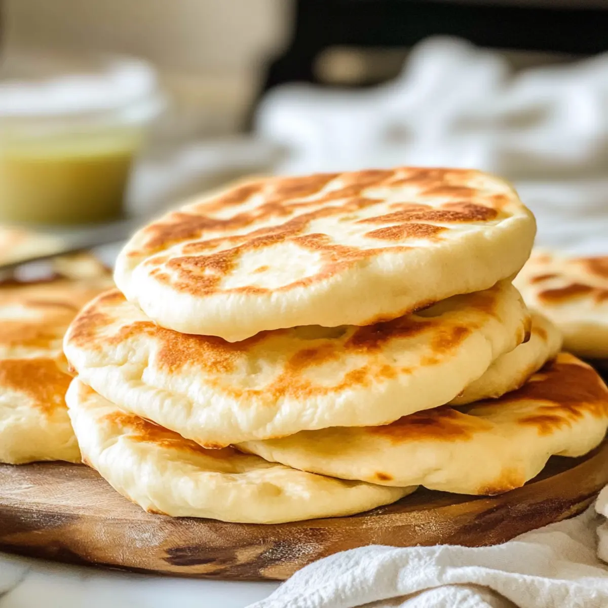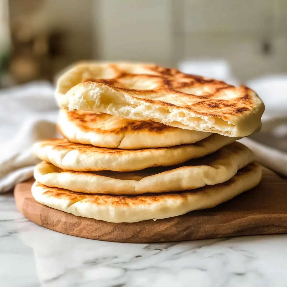 Es gibt Momente in der Küche, die einfach magisch sind – und das Backen von Griechischer Pita ist einer davon. Wenn der Teig zu einem zarten, leicht klebrigen Ball wird und die Luft von warmem Brotduft erfüllt ist, spüre ich sofort die Vorfreude auf ein herzhaftes Essen. Diese weichen, flauschigen Pitas sind nicht nur schnell und einfach zuzubereiten, sondern auch unglaublich vielseitig. Ob Sie sie mit frischen Zutaten füllen oder einfach nur mit einem köstlichen Dip genießen möchten, diese mediterrane Delikatesse wird zum Star jedes Dinners. Und das Beste? Es gibt eine glutenfreie Option, die jedem schmeckt! Bist du bereit, deine Küche in eine griechische Taverne zu verwandeln? Warum Griechische Pita selbst machen? Einfachheit: Das Rezept ist schnell und benötigt nur wenige Zutaten, die Sie wahrscheinlich bereits in Ihrer Küche haben. Vielseitigkeit: Füllen Sie die Pitas mit Ihren liebsten frischen Zutaten, sei es Gemüse, Fleisch oder sogar Dips wie Hummus oder Baba Ganoush. Gesundheit: Jede Pita hat nur etwa 124 Kalorien und kann eine gesunde, sättigende Option sein. Glutenfreie Möglichkeit: Mit einem einfachen Austausch können Sie eine glutenfreie Variante zubereiten, die trotzdem nicht an Geschmack verliert. Aromatisches Erlebnis: Der Duft von frisch gebackenem Brot wird Ihre Küche durchdringen und die Vorfreude auf das Essen steigern. Machen Sie sich bereit, diese köstliche mediterrane Delikatesse zu genießen! Griechische Pita Zutaten • Für eine köstliche und authentische Erfahrung! Für den Teig Allzweckmehl – sorgt für die Struktur der Pita; kann durch ein 1:1 glutenfreies Mehl ersetzt werden für eine glutenfreie Variante. Aktive Trockenhefe – verantwortlich für das Aufgehen des Teigs; stellen Sie sicher, dass die Hefe frisch ist für beste Ergebnisse. Koscheres Salz – verstärkt den Geschmack und reguliert die Hefeaktivität. Warme Milch – fügt eine gewisse Reichhaltigkeit hinzu und unterstützt die Hefeaktivierung; kann auch mit Wasser ersetzt werden für eine laktosefreie Option. Warmes Wasser – hydratisiert den Teig und aktiviert die Hefe; achten Sie darauf, dass es warm, aber nicht heiß ist, um die Hefe nicht zu töten. Olivenöl – verleiht Geschmack und Feuchtigkeit; nutzen Sie zusätzliches Öl zum Fetten der Schüssel und zum Braten der Pitas. Optional für die Verfeinerung Butter mit Knoblauch und Kräutern – verleiht den fertigen Pitas einen köstlichen, aromatischen Geschmack beim Bestreichen. Step-by-Step Instructions für Griechische Pita Step 1: Teig vorbereiten In einer großen Rührschüssel kombinieren Sie das Allzweckmehl, die aktive Trockenhefe und das koscheres Salz. Mischen Sie die trockenen Zutaten gut, um eine gleichmäßige Verteilung zu gewährleisten. Erwärmen Sie die Milch und das Wasser leicht, bis sie angenehm warm, aber nicht heiß sind. Fügen Sie die warmen Flüssigkeiten langsam zur Mischung hinzu und rühren Sie, bis alle Zutaten gut miteinander verbunden sind. Step 2: Teig kneten Geben Sie das Olivenöl zur Mischung und beginnen Sie, den Teig in der Schüssel zu kneten. Kneten Sie den Teig mindestens 5-7 Minuten lang, bis er glatt und elastisch ist und sich zu einer Kugel formt. Wenn der Teig zu klebrig ist, fügen Sie nach Bedarf etwas mehr Mehl hinzu, um die richtige Konsistenz zu erreichen. Step 3: Teig gehen lassen Fetten Sie eine separate Schüssel mit etwas Olivenöl ein und legen Sie den Teig hinein. Decken Sie die Schüssel mit Frischhaltefolie ab und lassen Sie den Teig an einem warmen Ort etwa 1 Stunde ruhen, bis er sich verdoppelt hat. Achten Sie darauf, dass der Teig schön aufgeht und eine luftige Textur entwickelt. Step 4: Teig portionsweise aufteilen Streuen Sie etwas Mehl auf Ihre Arbeitsfläche und geben Sie den aufgegangenen Teig darauf. Teilen Sie den Teig gleichmäßig in 8 Stücke. Formen Sie jedes Stück zu einer Kugel und drücken Sie sie dann flach, um eine gleichmäßige Dicke von etwa ¼ Zoll zu erreichen. Nutzen Sie einen Nudelholz, um eine kreisrunde Form von 7-8 Zoll Durchmesser zu erzielen. Step 5: Pitas braten Heizen Sie eine gusseiserne Pfanne bei hoher Temperatur vor. Fügen Sie einen Esslöffel Olivenöl hinzu und warten Sie, bis es heiß ist. Legen Sie eine der vorbereiteten Pitas in die Pfanne und braten Sie sie etwa 1 Minute lang, bis sie goldbraun und aufgebläht ist. Wenden Sie die Pita und braten Sie die andere Seite für weitere 1-2 Minuten, bis sie ebenfalls goldbraun ist. Step 6: Fertige Pitas servieren Nehmen Sie die gebratene Pita aus der Pfanne und halten Sie sie warm, während Sie die restlichen Pitas braten. Optional können Sie die fertigen Pitas mit geschmolzener Butter, die mit Knoblauch und Kräutern vermischt ist, bestreichen, um ihnen zusätzlichen Geschmack zu verleihen. Servieren Sie die Griechische Pita warm mit Ihren Lieblingszutaten oder Dips. Expertentipps für Griechische Pita Frische Hefe verwenden: Achten Sie darauf, dass Ihre aktive Trockenhefe frisch ist, um sicherzustellen, dass der Teig gut aufgeht. Teig richtig kneten: Kneten Sie den Teig mindestens 5-7 Minuten lang, um die richtige Konsistenz zu erreichen. Ein gut gekneteter Teig sorgt für fluffige Pitas. Temperaturen beachten: Stellen Sie sicher, dass die Flüssigkeiten warm, aber nicht heiß sind, um die Hefe nicht abzutöten. Pfanne richtig vorheizen: Eine gut vorgeheizte gusseiserne Pfanne sorgt dafür, dass die Pitas aufgehen und eine schöne goldbraune Farbe bekommen. Dünn ausrollen: Wenn Sie die Pitas dünner ausrollen, erhalten Sie eine zartere Textur. Achten Sie darauf, die Pitas nicht zu lange zu braten, um eine Überkochen zu vermeiden. Glutenfreie Option: Verwenden Sie ein 1:1 glutenfreies Mehl, um vollmundige und schmackhafte glutenfreie Griechische Pitas zuzubereiten. Griechische Pita im Voraus zubereiten Diese Griechischen Pita sind perfekt, um Zeit in der hektischen Woche zu sparen! Sie können den Teig bis zu 24 Stunden im Voraus vorbereiten und im Kühlschrank gehen