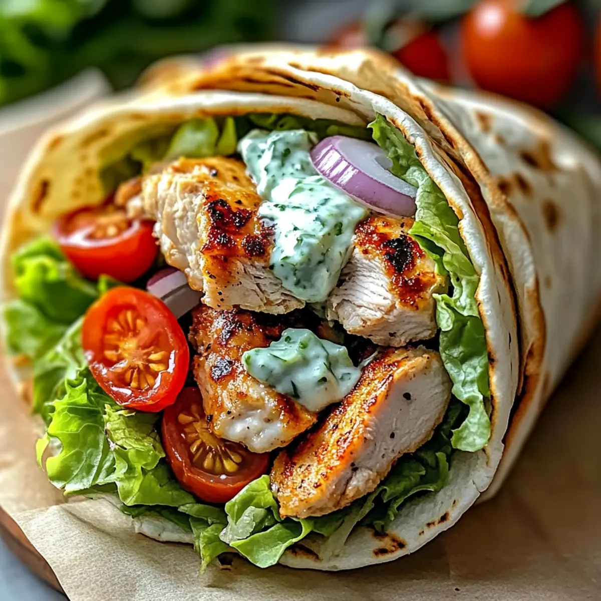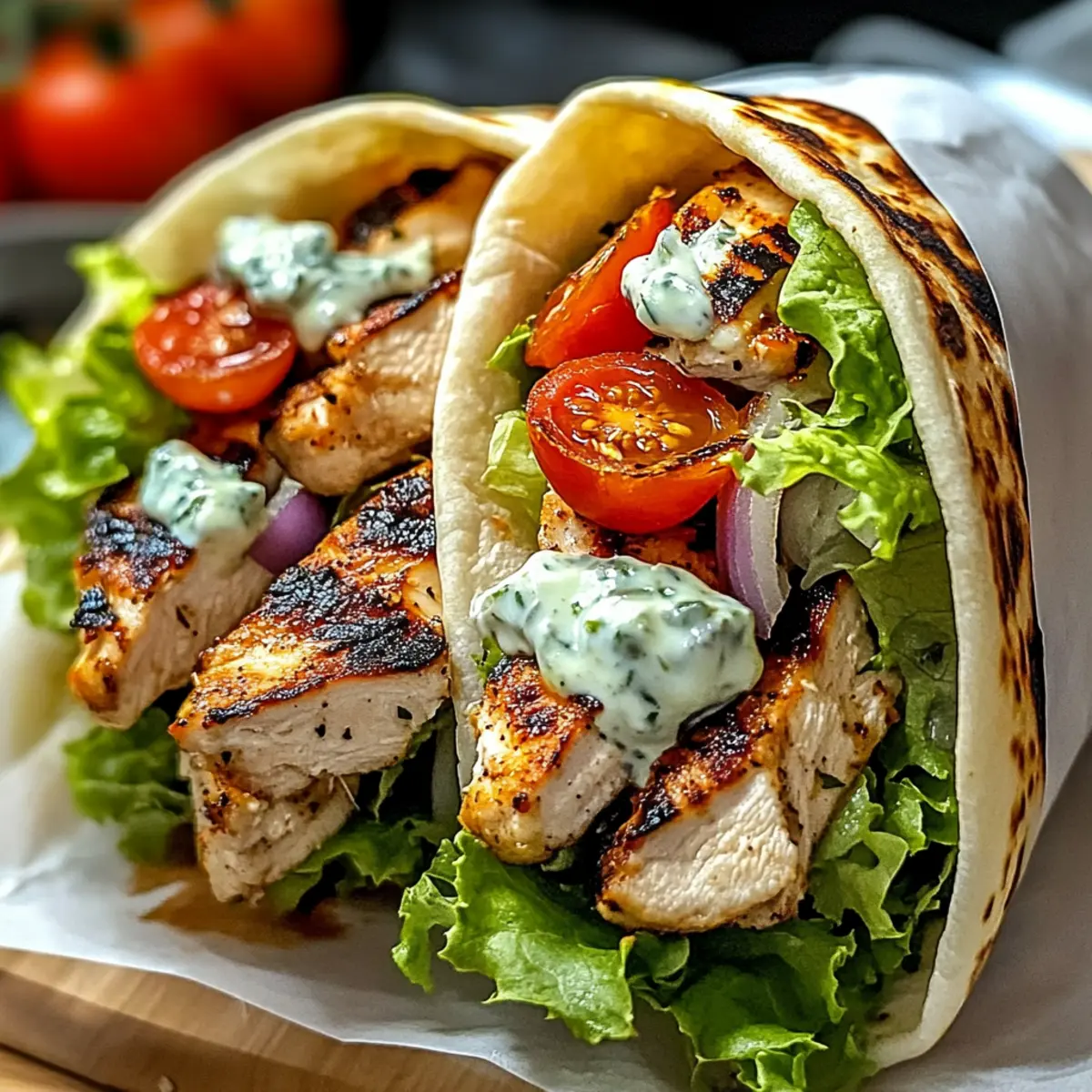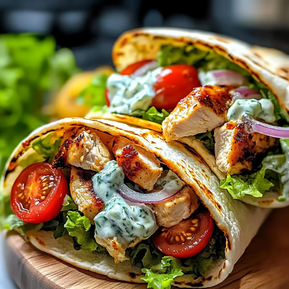 Wenn ich an die warmen, lebhaften Märkte Griechenlands denke, begegnen mir Bilder von sattgrünen Kräutern, flüchtigem Olivenöl und den verlockenden Düften von frisch zubereiteten Hähnchen Gyros. Diese mediterranen Hähnchen Gyros sind nicht nur eine köstliche Möglichkeit, Mariniertes und Knuspriges zu kombinieren, sondern sie sind auch das perfekte Gericht für ein schnelles Abendessen unter der Woche oder eine gesellige Feier mit Freunden. Sie sind nicht nur günstig in der Zubereitung, sondern lassen sich auch nach deinem Geschmack anpassen. Vergiss den Schnellimbiss, denn mit diesem Rezept zauberst du das echte Griechenland direkt auf deinen Tisch! Bist du bereit, deine Geschmacksknospen auf eine Reise ins Mittelmeer zu entführen? Warum sind Hähnchen Gyros so beliebt? Einfachheit: Diese Hähnchen Gyros sind schnell zubereitet und benötigen nur wenige grundlegende Zutaten. Vielseitig: Du kannst sie an deine Vorlieben anpassen, sei es mit zusätzlichen Gemüsesorten oder verschiedenen Käsesorten. Aromen: Die Kombination aus mariniertem Hähnchen und cremiger Tzatziki-Sauce sorgt für einen unverwechselbaren Geschmack. Perfekt für jeden Anlass: Ob für ein entspannendes Abendessen oder eine Party mit Freunden, sie kommen immer gut an. Gesund: Mit frischen Zutaten bieten sie ein nahrhaftes und ausgewogenes Gericht, das voller Geschmack steckt. Wenn du noch mehr Ideen suchst, schau dir auch unsere Huehnchen Ranch Salat oder das Tropisches Ananas Huehnchen mit Reis Rezept an! Hähnchen Gyros Zutaten Für das Hähnchen • Hähnchenkeulen – Hautlose und entbeinte Keulen sorgen für zarte und geschmackvolle Ergebnisse. • Olivenöl – Bringt Feuchtigkeit und Reichtum in die Marinade; Avocadoöl ist auch eine gute Alternative. • Rotweinessig – Sorgt für die nötige Säure und Tiefe; alternativ kann auch Weißweinessig verwendet werden. • Knoblauch – Frisch empfohlen, verleiht aromatischen Geschmack; pulverisierter Knoblauch kann als Ersatz dienen. • Getrockneter Oregano – Fügt den typischen mediterranen Kräutergeschmack hinzu; italienische Gewürzmischung kann alternativ verwendet werden. • Gemahlener Kreuzkümmel – Bringt Wärme und Komplexität; Koriander kann eine interessante Variante sein. • Räucherpaprika – Gibt ein rauchiges Aroma; reguläre Paprika kann verwendet werden, wenn der Rauchgeschmack nicht gewünscht ist. • Salz und Pfeffer – Verstärkt alle Geschmäcker; nach Belieben anpassen. Für die Tzatziki • Griechischer Joghurt – Cremige Basis für Tzatziki; pflanzlicher Joghurt ist eine großartige laktosefreie Alternative. • Gurke – Fügt Frische und Knusprigkeit hinzu; geraspelte Zucchini kann ebenfalls verwendet werden. • Frischer Dill – Gibt dem Tzatziki seinen klassischen Geschmack; getrockneter Dill kann in kleinerer Menge verwendet werden. • Zitronensaft – Bringt Frische in den Tzatziki; Essig kann bei Bedarf auch als Substitute dienen. Für das Zusammenstellen • Pita-Brot – Dient als leckere Ummantelung für die Gyros; glutenfreie Fladenbrote sind bei Bedarf eine Option. • Cherrytomaten und rote Zwiebel – Frische Gemüse sorgen für Farbe und Geschmack; beliebige frische Gemüse können verwendet werden. • Salat – Fügt knackige Textur hinzu; Spinat oder Rucola sind gute Alternativen. • Feta-Käse – Salzig und pikant, ideal als Garnierung; veganer Feta kann ebenfalls verwendet werden, um dem Geschmack treu zu bleiben. • Olivenöl und frische Petersilie (zum Garnieren) – Verleiht das gewisse Etwas; optional bei der Servierung. Mit diesen Zutaten wirst du garantiert die köstlichsten Hähnchen Gyros zubereiten, die dich an die sonnigen Küsten Griechenlands erinnern! Schritt-für-Schritt-Anleitung für Hähnchen Gyros Step 1: Hähnchen marinieren Verquirle in einer großen Schüssel das Olivenöl, den Rotweinessig, den Knoblauch, den Oregano, den Kreuzkümmel, die Räucherpaprika, das Salz und den Pfeffer. Füge die Hähnchenkeulen hinzu und stelle sicher, dass sie gleichmäßig mit der Marinade beschichtet sind. Lasse das Hähnchen mindestens eine Stunde oder über Nacht im Kühlschrank marinieren, damit die Aromen gut einziehen. Step 2: Tzatziki-Sauce zubereiten In einer separaten Schüssel mischst du den griechischen Joghurt, die geraspelte Gurke, den Knoblauch, den Dill und den Zitronensaft. Rühre die Zutaten gut um, bis die Mischung cremig und gleichmäßig ist. Bedecke die Schüssel und stelle die Tzatziki-Sauce für mindestens 30 Minuten in den Kühlschrank, damit die Aromen sich entfalten können. Step 3: Hähnchen kochen Heize den Grill auf mittelhohe Temperatur vor oder erhitze eine Pfanne bei mittlerer Hitze. Grill das marinierte Hähnchen 5-7 Minuten pro Seite, bis es eine goldbraune Farbe hat und eine Innentemperatur von 75 °C erreicht. Lasse das Hähnchen nach dem Garen 5 Minuten ruhen, bevor du es in dünne Scheiben schneidest. Step 4: Gyros zusammenstellen Erhitze das Pita-Brot leicht in einer Pfanne oder im Ofen. Fülle das warme Pita mit den geschnittenen Hähnchenstücken, den Cherrytomaten, der roten Zwiebel, dem Salat und dem Feta-Käse. Gieße großzügig die abgekühlte Tzatziki-Sauce darüber und träufle etwas Olivenöl drauf. Garniere die Gyros nach Belieben mit frischer Petersilie. Lagerungstipps für Hähnchen Gyros Kühlschrank: Bewahre die restlichen Hähnchen Gyros in einem luftdichten Behälter im Kühlschrank auf, wo sie bis zu 3 Tage frisch bleiben. Tzatziki: Die Tzatziki-Sauce kann separat in einem luftdichten Behälter im Kühlschrank aufbewahrt werden und bleibt bis zu 4 Tage haltbar. Gefriertruhe: Wenn du die Hähnchen Gyros für eine spätere Verwendung einfrieren möchtest, packe sie in einen gefrierfreundlichen Behälter oder -beutel. So bleiben sie bis zu 3 Monate frisch. Aufwärmen: Zum Aufwärmen koche die Hähnchenstücke in einer Pfanne bei mittlerer Hitze, bis sie durchgewärmt sind. Du kannst auch die Tzatziki-Sauce erst kurz vor dem Servieren hin