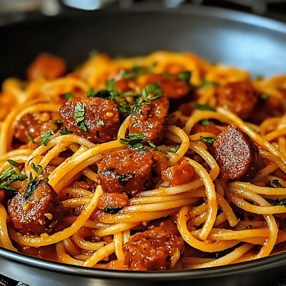 Jede Gabel dieses würzigen haitianischen Spaghetti mit Cajun Andouille-Wurst ist wie eine kurze kulinarische Reise durch die Aromen von Haiti und dem Cajun Südosten! Diese einzigartige Rezeptur vereint die herzhaften Noten einer reichhaltigen Tomatensoße mit dem unverwechselbaren Geschmack des Cajun-Wurst, sodass es sowohl zu einem gemütlichen Frühstück als auch zu einem einladenden Abendessen passt. Es ist nicht nur schnell zubereitet, sondern auch ein echter Gaumenschmaus, der Familie und Freunde gleichermaßen begeistert. Wer hätte gedacht, dass eine so köstliche Fusion der Küchen so viel Freude bringen könnte? Lass uns gemeinsam in die köstliche Welt dieses Rezepts eintauchen! Warum werden Sie dieses Rezept lieben? Einfachheit in jedem Schritt: Die Zubereitung dieses Gerichts ist unkompliziert und erfordert keine speziellen Kochkünste. Jeder kann es meistern! Starke, würzige Aromen: Die Kombination aus Cajun-Wurst und haitianischem Epis verleiht diesem Gericht einen unglaublichen Geschmacksreichtum. Vielfalt beim Servieren: Ideal für ein gemütliches Frühstück oder ein herzhaftes Abendessen – eignet sich perfekt für jeden Anlass! Ein schnelles Gericht: In weniger als 30 Minuten zubereitet, perfekt für beschäftigte Tage. Ein echtes Geschmackserlebnis: Die Verschmelzung der Kulturen macht jeden Bissen zu einem unvergesslichen Erlebnis. Probieren Sie es zu einem weiteren Rezept wie Knoblauch Butter Rinderfilet aus! Haitian Spaghetti Zutaten Für die Soße • Haitian Epis (Würzpaste) – sorgt für den aromatischen, krautigen Geschmack und die Schärfe. • Tomatenmark – bildet die Basis der Soße und verleiht Süße sowie Säure. • Zwiebel und Paprika – bringen Süße und Textur in die Soße. • Knoblauch – verstärkt den Gesamtgeschmack mit seinem aromatischen Duft. • Olivenöl – zum Anbraten der Zutaten und zur Geschmackssteigerung. • Salz und Pfeffer – essenziell zum Würzen und Balancieren der Aromen. Für die Pasta • Spaghetti – die Haupt-Kohlenhydratquelle, die Struktur gibt. Für die Wurst • Cajun Andouille-Wurst – bringt Rauchigkeit und Würze in das Gericht. Optionales Topping • Frische Petersilie oder Koriander – für zusätzlichen Farb- und Frischekick beim Servieren. Hinweis: Dieses Rezept für Haitian Spaghetti mit Cajun-Wurst ist eine wunderbare Symbiose aus zwei kulinarischen Traditionen. Step-by-Step Instructions for Haitian Spaghetti mit Cajun-Wurst Step 1: Epis vorbereiten Pürieren Sie frische Petersilie, Koriander, Knoblauch und Paprika in einem Mixer, um eine homogene Würzpaste, das haitianische Epis, zu erhalten. Dieser Schritt sollte etwa 5 Minuten dauern. Setzen Sie die Paste beiseite, um die Aromen später in der Soße freizusetzen. Step 2: Pasta kochen Bringen Sie einen großen Topf mit gesalzenem Wasser zum Kochen und fügen Sie die Spaghetti hinzu. Kochen Sie die Nudeln nach Packungsanweisung bis sie al dente sind, was ungefähr 8–10 Minuten dauert. Sobald sie fertig sind, lassen Sie die Pasta abtropfen und stellen Sie sie beiseite. Step 3: Aromaten anbraten Erhitzen Sie in einer großen Pfanne bei mittlerer Hitze 2 Esslöffel Olivenöl. Fügen Sie gewürfelte Zwiebel und Paprika hinzu und braten Sie diese etwa 5 Minuten lang, bis sie weich und leicht gebräunt sind. Achten Sie darauf, gelegentlich umzurühren, damit nichts anbrennt. Step 4: Wurst hinzufügen In die Pfanne die Cajun Andouille-Wurst geben und bei mittlerer bis hoher Hitze etwa 7–10 Minuten braten, bis sie schön gebräunt und knusprig ist. Dies verleiht dem Gericht die typische Rauchnote und bringt köstlichen Geschmack in die Haitain Spaghetti. Step 5: Zutaten kombinieren Fügen Sie den vorbereiteten Knoblauch, das haitianische Epis und das Tomatenmark zur Wurst und den Gemüse in der Pfanne hinzu. Rühren Sie alles gut um und lassen Sie die Mischung 3–5 Minuten köcheln, damit sich die Aromen vermischen und intensivieren. Step 6: Mit Pasta vermengen Geben Sie die abgetropften Spaghetti in die Pfanne zu der Wurstsoße. Mischen Sie alles gut durch, sodass die Nudeln gleichmäßig mit der aromatischen Sauce überzogen sind. Dies sollte etwa 2 Minuten dauern, um sicherzustellen, dass die Pasta die Aromen aufnimmt. Step 7: Servieren Richten Sie die Haitian Spaghetti mit Cajun-Wurst auf Tellern an und garnieren Sie das Gericht nach Belieben mit frischer Petersilie oder Koriander. Servieren Sie die Pasta heiß, damit die Aromen optimal zur Geltung kommen. Tipps zur Vorbereitung der Haitian Spaghetti mit Cajun-Wurst Die Haitian Spaghetti mit Cajun-Wurst sind perfekt für die Vorbereitung im Voraus! Sie können das haitianische Epis bis zu 3 Tage im Voraus zubereiten und in einem luftdichten Behälter im Kühlschrank aufbewahren, um die Aromen frisch zu halten. Auch das Gemüse (Zwiebel und Paprika) kann bereits geschnitten und bis zu 24 Stunden vor der Zubereitung gelagert werden. Wenn Sie bereit sind zu kochen, braten Sie einfach die Wurst an, fügen die vorbereiteten Aromaten und das Epis hinzu, und geben dann die gegarten Spaghetti einfach dazu. So sparen Sie wertvolle Zeit und dennoch bleibt das Gericht genauso köstlich! Was passt zu Haitian Spaghetti mit Cajun-Wurst? Lassen Sie sich von köstlichen Beilagen inspirieren, die jedes Gericht dieser einzigartigen Pasta-Fusion zu einem Festmahl machen. Frischer Salat: Ein knackiger, gemischter Salat mit Vinaigrette bringt Frische und balanciert die würzigen Aromen der Spaghetti. Knoblauchbrot: Das knusprige Brot sorgt für eine herrliche Textur und eignet sich hervorragend, um die leckere Soße aufzutunken. Gegrilltes Gemüse: Zartes, gegrilltes Gemüse wie Zucchini und Paprika ergänzt das Gericht perfekt und bringt zusätzliche Nährstoffe. Fruchtige Salsa: Eine Mango- oder Ananas-Salsa bildet eine süße, fruchtige Ergänzung und schafft einen erfrischenden Kontrast zu den würzigen Noten. Weißwein: Ein leichter, trockener Weißwein rundet das Erlebnis ab und hebt die Aromen des Gericht