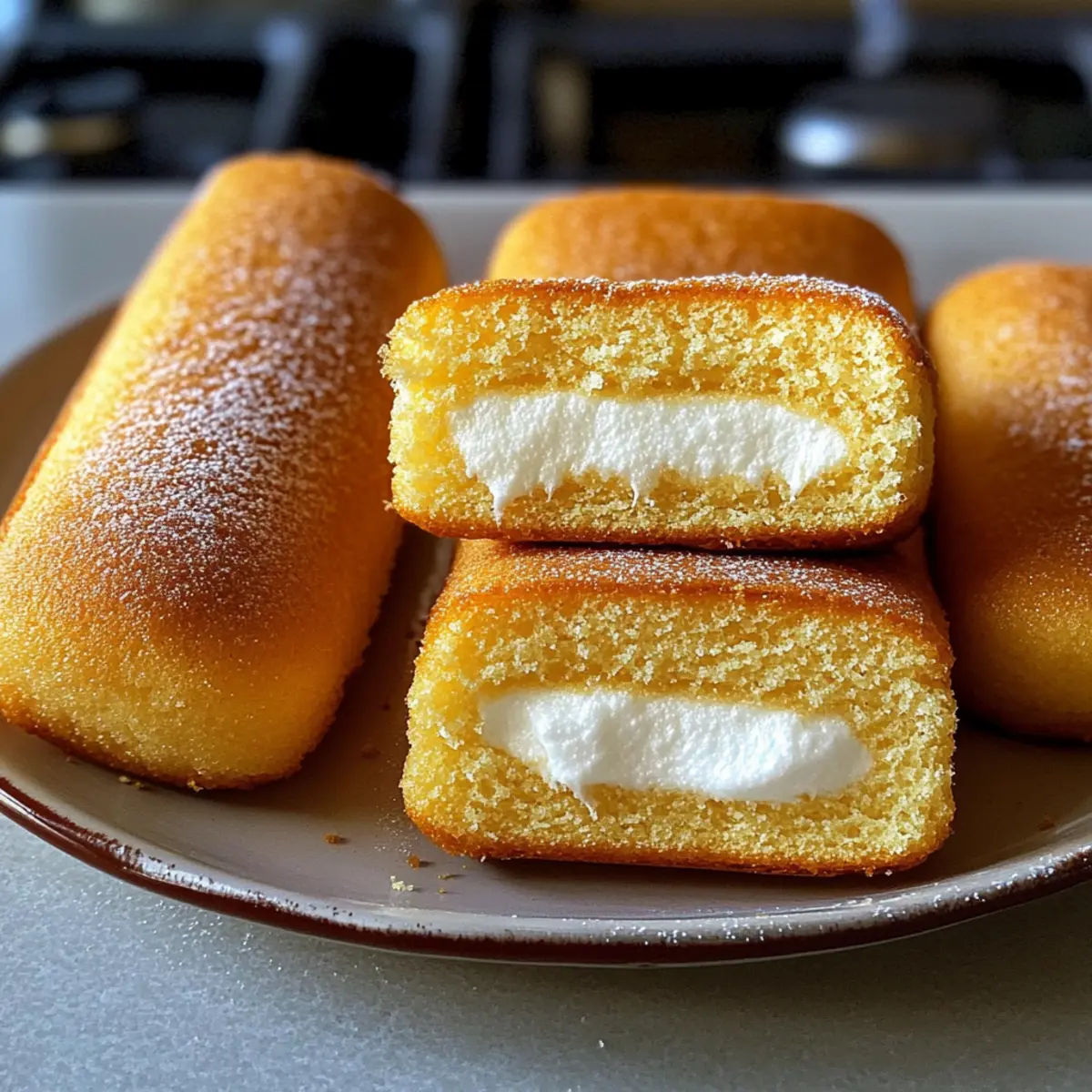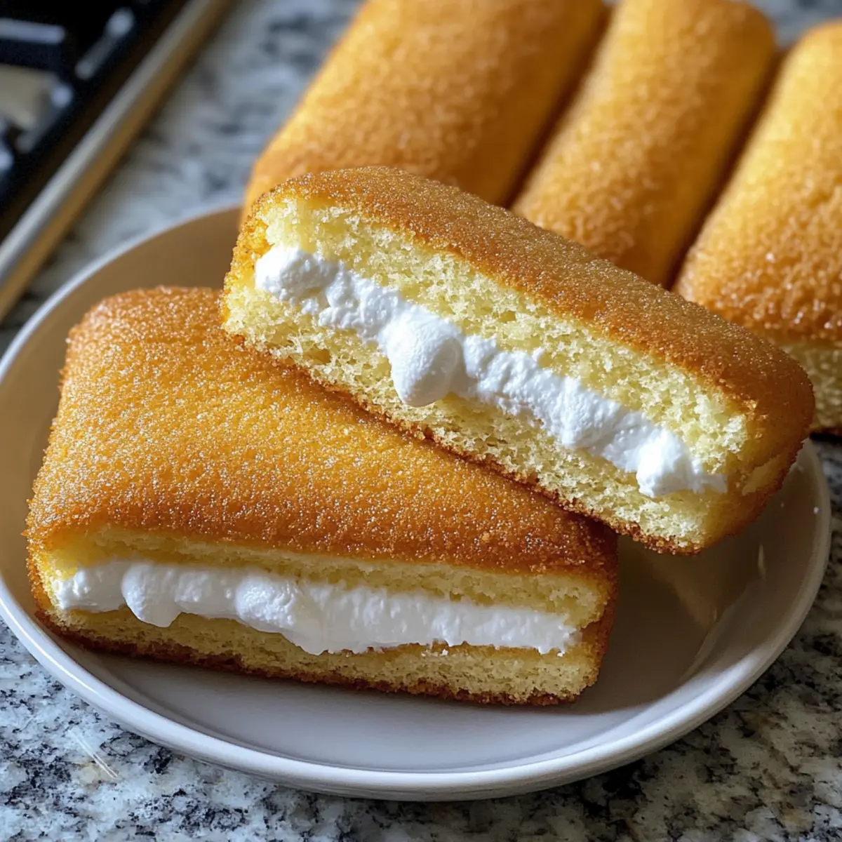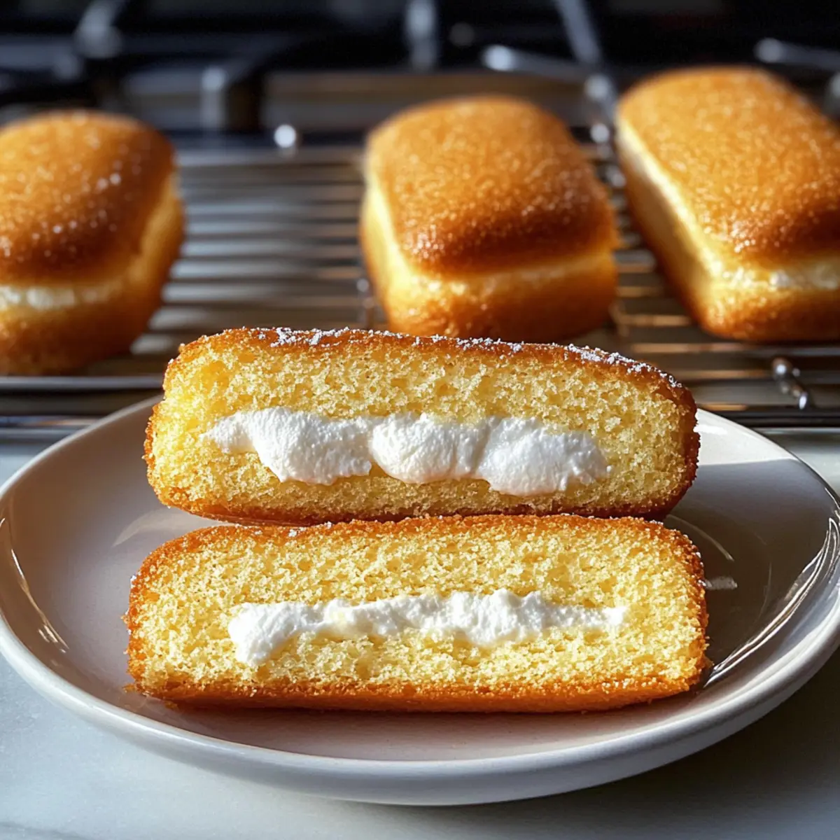 Während ich in meiner Küche stand und den verführerischen Duft von frisch gebackenem Teig einatmete, überkam mich ein Hauch von Nostalgie. Diese hausgemachten Twinkies bringen uns zurück zu den unbeschwerten Tagen der Kindheit – die perfekte Kombination aus leichtem Biskuit und süßer, cremiger Füllung. Im Gegensatz zu industriell gefertigten Versionen enthalten meine Twinkies keine Konservierungsstoffe, sondern nur frische und echte Zutaten, die jeden Bissen zu einem Erlebnis machen. Der Prozess ist einfach und macht nicht nur Spaß, sondern sorgt auch für ein unwiderstehliches Ergebnis, das Ihre Liebsten begeistern wird. Diese süßen Leckereien sind nicht nur ein Hit auf Kindergeburtstagspartys, sie sind auch eine kreative Möglichkeit, den klassischen Snack zu modernisieren. Neugierig, wie Sie diese köstlichen kleinen Kuchen selbst zubereiten können? Lassen Sie uns direkt eintauchen! Warum werden Sie diese Rezept lieben? Einfachheit, die begeistert: Die Zubereitung von hausgemachten Twinkies ist unkompliziert und benötigt keine professionellen Backfähigkeiten. Jeder Schritt ist einfach nachvollziehbar und macht Freude. Nostalgischer Geschmack: Diese kleinen Kuchen sind wie eine Reise in die Kindheit – leicht, süß und unfassbar lecker! Echte Zutaten: Im Gegensatz zu fertigen Varianten verzichten Sie auf Konservierungsstoffe und setzen auf frische, hochwertige Zutaten, die den Geschmack intensivieren. Vielseitigkeit: Experimentieren Sie mit verschiedenen Füllungen oder Toppings, um Ihren ganz persönlichen Twist hinzuzufügen – von Schokolade bis zu fruchtigen Aromen! Perfekt für jede Gelegenheit: Ob für Kindergeburtstage, Kaffeepausen oder einfach als süßer Snack zwischendurch, diese Twinkies sind immer ein Hit! Entdecken Sie auch andere herzhafte Leckereien in unserem Blog, die Ihren Gaumen erfreuen werden. Hausgemachte Twinkies Zutaten • Die perfekten Ergänzungen für Ihre nostalgischen Genussmomente. Für den Teig Allzweckmehl – sorgt für Struktur und Stabilität; kann durch eine glutenfreie Mischung ersetzt werden. Backpulver – wichtig für die fluffige Konsistenz; ist nicht nötig, wenn Sie mit selbstaufgehendem Mehl arbeiten. Salz – verstärkt den Geschmack; testen Sie auch Meersalz für eine interessante Note. Eier – bringen Feuchtigkeit und Struktur; Eier auf Zimmertemperatur sorgen für mehr Volumen. Zucker – verleiht Süße und hilft beim Bräunen; Kokoszucker ist eine gesündere Alternative. Vanilleextrakt – optimiert das Aroma; verwenden Sie echten Vanilleextrakt für den besten Geschmack oder probieren Sie Mandelaroma für eine neue Note. Milch – fügt Feuchtigkeit hinzu; pflanzliche Alternativen wie Mandel- oder Hafermilch sind ebenfalls möglich. Ungesalzene Butter – sorgt für eine reichhaltige Textur; vegane Butter ist eine gute Option für eine Milchalternative. Für die Füllung Marshmallow-Creme – ist entscheidend für die charakteristische Füllung; selbstgemachte Marshmallow- fluff kann eine frische Variation bieten. Puderzucker – sorgt für die süße, glatte Textur der Füllung; ersetzen Sie ihn durch eine zuckerfreie Alternative für eine leichtere Version. Schlagsahne – verleiht der Füllung mehr Reichtum; nutzen Sie Kokoscreme für eine vegane Variante. Diese hausgemachten Twinkies bieten nicht nur nostalgischen Genuss, sondern auch die Möglichkeit, kreative Füllungen zu erkunden! Schritt-für-Schritt-Anleitung für Hausgemachte Twinkies Step 1: Ofen vorheizen und Form vorbereiten Heizen Sie den Ofen auf 175°C vor und bereiten Sie Ihre Twinkie-Form vor, indem Sie sie leicht mit Butter einfetten oder mit Backpapier auslegen. Dies sorgt dafür, dass die kleinen Kuchen später leicht aus der Form gelöst werden können, ohne zu brechen. Step 2: Trockene Zutaten mischen Sichten Sie in einer Schüssel das Allzweckmehl, das Backpulver und das Salz sorgfältig zusammen. Dies sorgt für eine gleichmäßige Verteilung der Zutaten und schafft die Grundlage für die fluffigen Teigkonsistenz, die Ihre hausgemachten Twinkies perfekt macht. Step 3: Eier und Zucker aufschlagen Schlagen Sie in einer großen Schüssel die Eier und den Zucker mit einem elektrischen Mixer auf hoher Stufe für etwa 6-8 Minuten, bis die Mischung dick und blass ist. Achten Sie darauf, dass die Mischung beim Schlagen an Volumen gewinnt und eine cremige Textur annimmt – so erhalten Sie die luftigsten Hausgemachten Twinkies. Step 4: Vanille hinzufügen und trockene Zutaten einarbeiten Fügen Sie den Vanilleextrakt zu der Eier-Zucker-Mischung hinzu. Heben Sie dann vorsichtig die Mehlmischung in mehreren Portionen unter, um eine homogene Masse zu erhalten. Seien Sie dabei behutsam, damit Sie die Luftigkeit der Mischung nicht verlieren. Step 5: Milch und Butter kombinieren Erwärmen Sie die Milch zusammen mit der geschmolzenen Butter in einem kleinen Topf, bis sie warm, aber nicht kochend ist. Falten Sie diese Mischung vorsichtig in den Teig, bis alles gerade so kombiniert ist. Diese Ergänzung sorgt für Feuchtigkeit und einen reichhaltigen Geschmack in Ihren hausgemachten Twinkies. Step 6: Teig in die Form füllen und backen Füllen Sie die vorbereitete Twinkie-Form mit dem Teig, damit jede Form zu etwa drei Vierteln gefüllt ist. Backen Sie die Twinkies im vorgeheizten Ofen für 12-15 Minuten, bis sie goldbraun sind und ein Zahnstocher, den Sie hineinstechen, sauber herauskommt. Step 7: Abkühlen lassen Lassen Sie die gebackenen Twinkies in der Form etwa 10 Minuten abkühlen. Danach können Sie sie vorsichtig aus der Form nehmen und auf einem Kuchengitter vollständig auskühlen lassen. Dieser Schritt ist wichtig, um sicherzustellen, dass Ihre Füllung nicht schmilzt. Step 8: Füllung zubereiten Schlagen Sie in einer großen Schüssel die ungesalzene Butter, bis sie leicht und schaumig ist. Fügen Sie die Marshmallow-Creme, den Puderzucker, Vanilleextrakt und die Schlagsahne hinzu und vermengen alles gut, bis die Füllung glatt und cremig ist. 