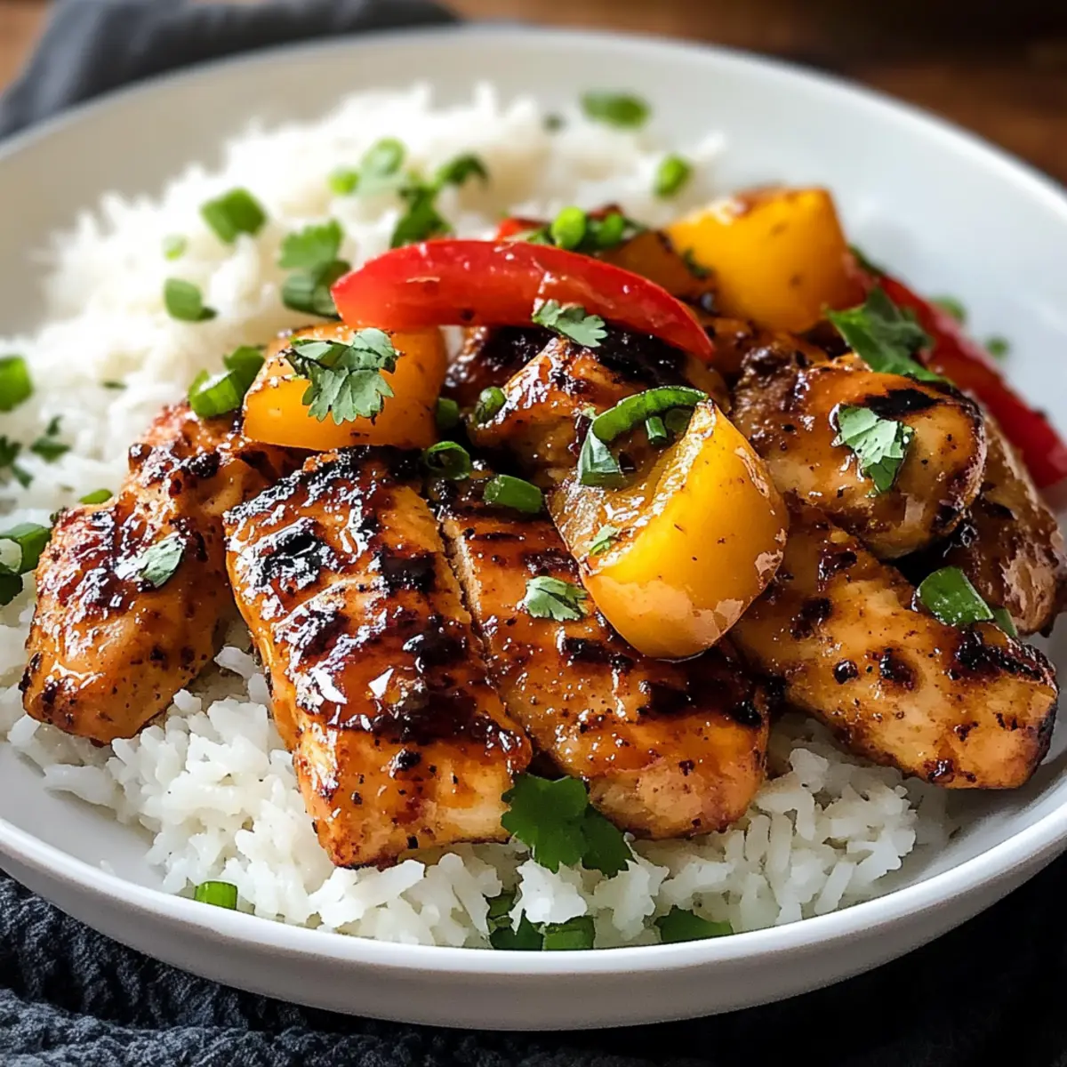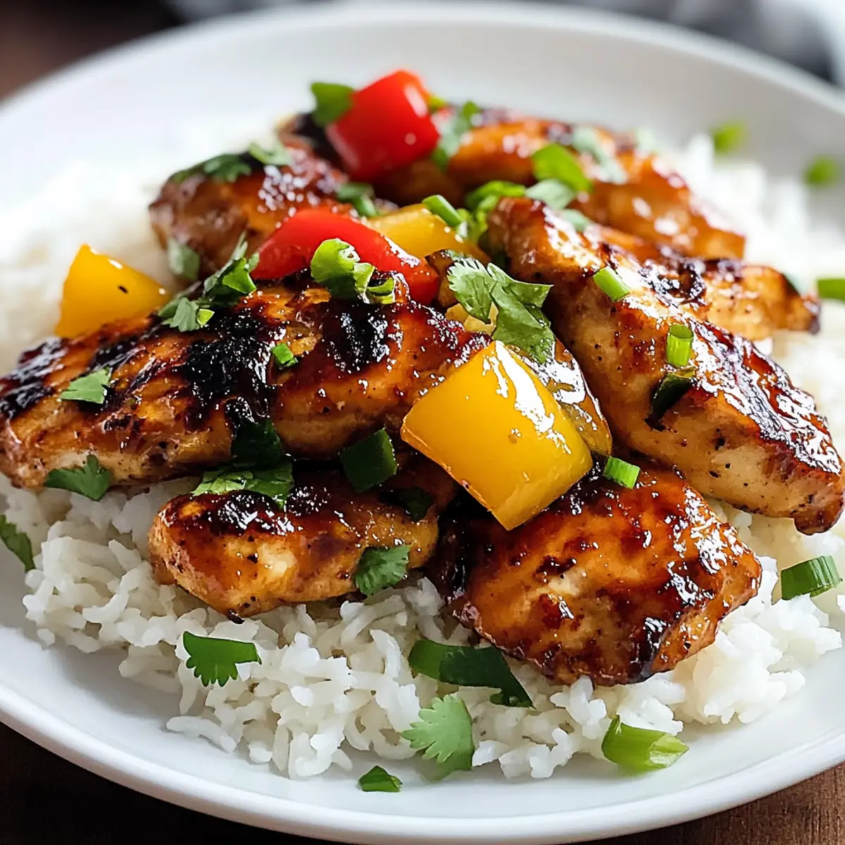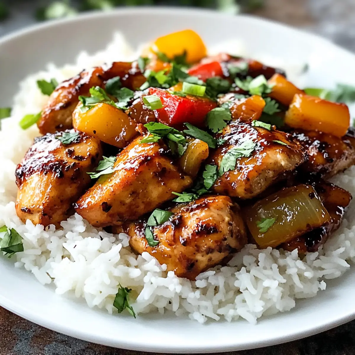 Das Aroma von tropischen Früchten und zartem Hähnchen schwebt durch die Küche, während ich die erste Zutat für mein Hawaiianisches Hähnchen & Kokosreis vorbereite. Dieses Rezept ist nicht nur eine kulinarische Reise zu den sonnenverwöhnten Stränden Hawaiis, sondern auch eine leichte und schnelle Lösung für stressige Wochentage. In weniger als zwei Stunden vereint es die süßen und herzhaften Aromen von mariniertem Hähnchen und cremigem Kokosreis, und sorgt dafür, dass jeder Bissen ein echtes Geschmackserlebnis ist – perfekt, um Familie und Freunde zu beeindrucken oder einfach dem Alltag zu entfliehen. Neugierig, wie dieses Gericht es schafft, jeden Gaumen zu begeistern? Warum werden Sie dieses Rezept lieben? Einfachheit: Die Zubereitung ist unkompliziert und erfordert nur grundlegende Kochfähigkeiten, was es perfekt für Kochanfänger macht. Tropisches Flair: Die Kombination aus zartem, mariniertem Hähnchen und cremigem Kokosreis bringt ein Stück Hawaii direkt in Ihre Küche. Vielseitigkeit: Sie können das Rezept leicht anpassen, indem Sie verschiedene Gemüsesorten oder Proteine wie Honig Feta Hähnchen verwenden, um Abwechslung zu schaffen. Schnelligkeit: In weniger als zwei Stunden steht ein köstliches Gericht auf dem Tisch, ideal für hektische Wochentage. Familiengerecht: Dieses Gericht kommt bei Groß und Klein gleichermaßen gut an und macht jede Mahlzeit zu einem besonderen Erlebnis. Gesunde Zutaten: Mit einer Vielzahl frischer Zutaten können Sie sicher sein, dass Sie Ihrer Familie nahrhafte und schmackhafte Mahlzeiten servieren. Hawaiianisches Hähnchen & Kokosreis Zutaten • Entdecken Sie die Zutaten, die dieses Rezept zum Leben erwecken! Für das Hähnchen Hähnchenschenkel – Bieten Zartheit und Geschmack; Hähnchenbrust oder fester Tofu sind gute Alternativen. Sojasauce – Fügt Salzigkeit und Umami hinzu; verwenden Sie natriumarme Sojasauce für eine gesündere Variante. Ananassaft – Bringt Süße und Säure ins Spiel; kann durch Orangensaft ersetzt werden. Brauner Zucker – Sorgt für Süße und Karamelisierung; Kokosblütenzucker ist eine passende Alternative. Reisessig – Fügt eine angenehme Säure hinzu; Apfelessig kann ebenfalls verwendet werden. Sesamöl – Verleiht nussiges Aroma; Olivenöl kann als Ersatz dienen. Knoblauch – Aromatische Geschmacksverstärkung; frischer Knoblauch ist der beste Einsatz. Ingwer – Bietet Wärme; gemahlener Ingwer kann schnell ersetzt werden. Maisstärke – Verdickt die Glasur; Pfeilwurzelmehl ist ein hervorragender Ersatz. Für den Reis Jasminreis – Die Basis des Gerichts, duftend und fluffig; brauner Reis oder Blumenkohlreis sind gesunde Alternativen. Kokosmilch – Verleiht Cremigkeit und tropisches Aroma; andere pflanzliche Milchsorten können verwendet werden, jedoch mit geschmacklichen Abweichungen. Für das Gemüse und die Garnitur Dose Ananas – Sorgt für Textur und zusätzliche Süße; frische Ananas kann den Geschmack verbessern, erfordert jedoch mehr Vorbereitungszeit. Paprika (rot und gelb) – Bringt Farbe und Knusprigkeit; jede Farbe von Paprika oder Zucchini kann verwendet werden. Rote Zwiebel – Bietet Süße und zusätzlichen Geschmack; eine gelbe Zwiebel kann benutzt werden, wenn gewünscht. Koriander, Sesamsamen, Frühlingszwiebeln – Fügen frische Garnitur und optische Attraktivität hinzu; Petersilie oder Schnittlauch können auch verwendet werden. Schritt-für-Schritt-Anleitung für Hawaiianisches Hähnchen & Kokosreis Step 1: Hähnchen vorbereiten und marinieren Zuerst schneiden Sie die Hähnchenschenkel in 2,5 cm große Stücke und tupfen sie trocken. In einer Schüssel mischen Sie die Zutaten für die Marinade: Sojasauce, Ananassaft, braunen Zucker, Reisessig, Sesamöl, Knoblauch und Ingwer. Legen Sie das Hähnchen in die Marinade und lassen es 30 Minuten bis zu 4 Stunden im Kühlschrank ziehen. Reservieren Sie etwas Marinade für die Glasur. Step 2: Glasur zubereiten Während das Hähnchen mariniert, bereiten Sie die Glasur vor. In einem kleinen Topf geben Sie die reservierte Marinade und bringen sie zum Köcheln. Lassen Sie die Marinade bei mittlerer Hitze etwa 5 Minuten köcheln, bis sie um ein Drittel reduziert und sirupartig wird. Rühren Sie dann langsam die mit Wasser vermischte Maisstärke ein, um die Glasur leicht zu verdicken. Danach vom Herd nehmen und beiseite stellen. Step 3: Kokosreis zubereiten Für den Kokosreis spülen Sie den Jasminreis gründlich unter kaltem Wasser, um überschüssige Stärke zu entfernen. Geben Sie den Reis in einen Topf und fügen Sie die Kokosmilch und eine Tasse Wasser sowie eine Prise Salz und etwas Zucker hinzu. Bringen Sie die Mischung zum Kochen und reduzieren dann die Hitze auf niedrig. Decken Sie den Topf und lassen Sie den Reis 18 Minuten köcheln, bis die Flüssigkeit vollständig aufgesogen ist. Nach dem Kochen vom Herd nehmen und 5 Minuten ruhen lassen, dann mit einer Gabel auflockern. Step 4: Hähnchen und Gemüse anbraten Erhitzen Sie eine große Pfanne bei mittlerer bis hoher Hitze und geben Sie etwas Olivenöl hinzu. Fügen Sie die geschnittenen Paprika und die rote Zwiebel hinzu und braten Sie sie 3–4 Minuten an, bis sie weich und leicht gebräunt sind, dann vom Herd nehmen und warm halten. In der gleichen Pfanne das marinierte Hähnchen anbraten, bis es goldbraun und durchgegart ist, etwa 6–8 Minuten, und dabei regelmäßig wenden. Step 5: Alles kombinieren und glasieren Geben Sie das angeschwitzte Gemüse und die Ananaswürfel in die Pfanne mit dem Hähnchen zurück. Fügen Sie lauwarm die vorbereitete Glasur hinzu und schwenken Sie alles gut durch, bis die Zutaten gleichmäßig bedeckt sind. Lassen Sie alles für 1–2 Minuten bei niedriger Hitze köcheln, damit sich die Aromen entfalten können. Step 6: Anrichten und servieren Zum Servieren geben Sie eine Portion des Kokosreises auf einen Teller und toppen Sie ihn mit dem glasierten Hawaiianischen Hähnchen und dem Gemüse. Garnieren Sie das Gericht mit frisc