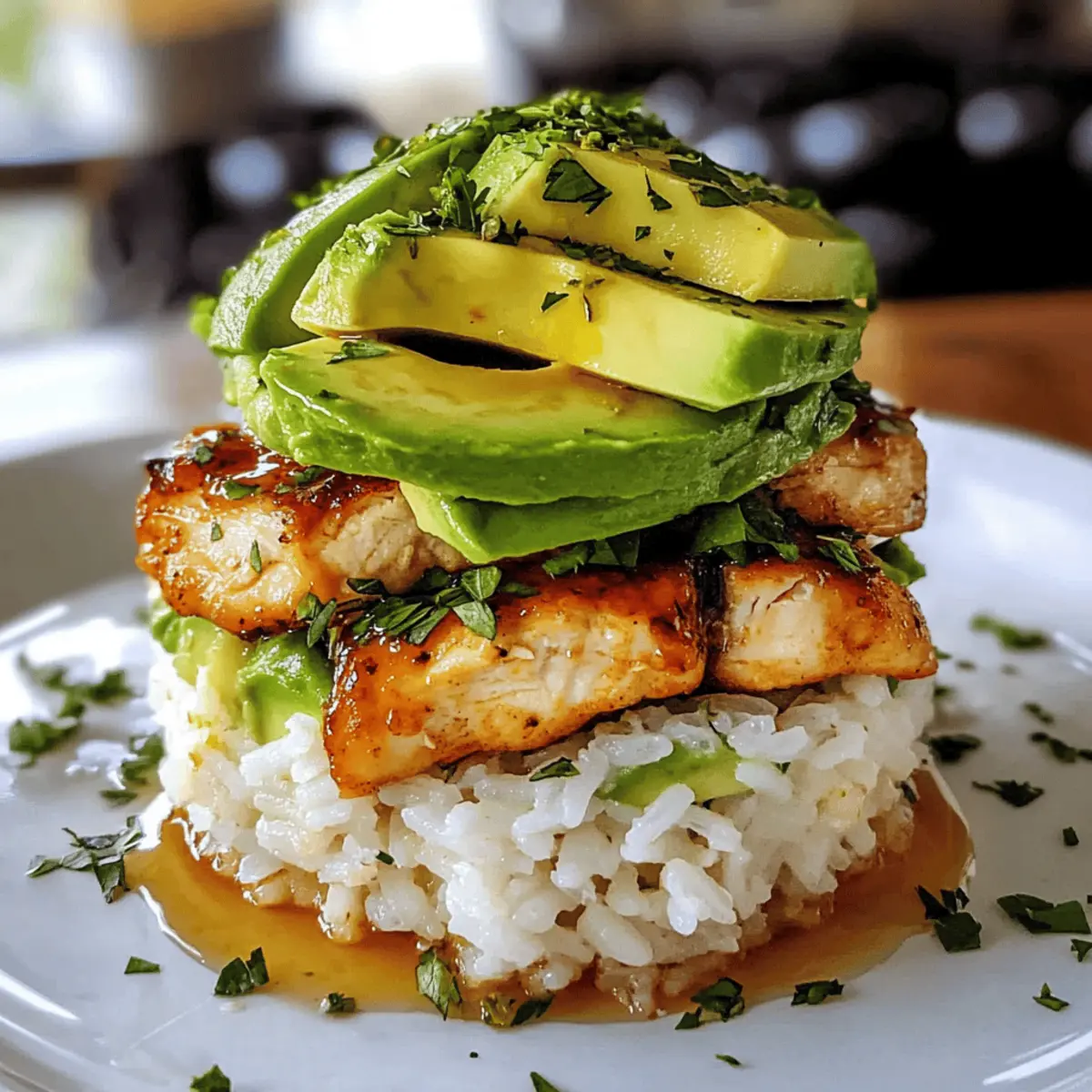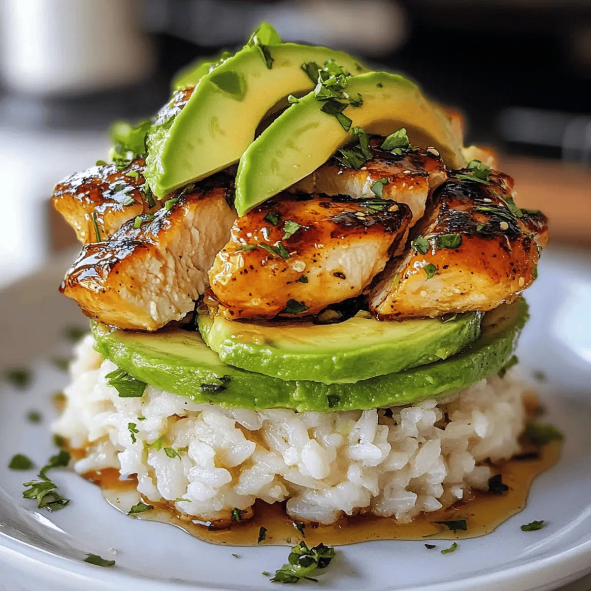Neulich beim Kochen wurde ich von einem herrlichen Aroma überwältigt – das süß-säuerliche Zusammenspiel von Honig und Limette, das im ganzen Raum schwebte. Heute teile ich mit euch mein Rezept für den ultimativen Honey Lime Chicken & Avocado Rice Stack. Diese köstliche Kreation vereint zartes, karamellisiertes Hähnchen, cremige Avocado und perfekt gewürzten Reis zu einem prachtvollen Türmchen, das nicht nur das Auge, sondern auch den Gaumen erfreut. Dieses Rezept ist nicht nur glutenfrei, es eignet sich auch perfekt zur Vorbereitung für gesunde Mahlzeiten und überrascht eure Gäste oder die Familie ganz sicher. Habt ihr euch jemals gefragt, wie ihr ein einfaches Abendessen in ein festliches Erlebnis verwandeln könnt? Lasst uns gemeinsam in die Welt des Genusses eintauchen! Warum wirst du dieses Rezept lieben? Einfachheit pur: Die Zubereitung ist unkompliziert und erfordert keine speziellen Kochkenntnisse. Frischer, herzhafter Geschmack: Die Kombination aus Honig und Limette sorgt für eine erfrischend süß-säuerliche Note, perfekt zum Hähnchen. Vielseitigkeit: Ob für ein schnelles Abendessen oder eine Festlichkeit – dieser Avocado-Reis-Stack passt immer. Gesunde Nährstoffe: Vollgepackt mit Proteinen und gesunden Fetten ist dieses Gericht nicht nur lecker, sondern auch nahrhaft. Perfekte Präsentation: Immer ein Hingucker – serviert auf einem bunten Teller, garniert mit frischen Kräutern wie Koriander, wird es sicher alle Beeindrucken. Honig-Limonen-Hühnchen-Zutaten Für das Hühnchen: • Hähnchenbrust – die Hauptproteinquelle, die Geschmack und Textur liefert; gleichmäßige Dicke sorgt für ein gleichmäßiges Garen. • Honig – dient als Süßungsmittel für die Glasur und sorgt für ein harmonisches Zusammenspiel mit der Limette. • Frischer Limettensaft – bringt die nötige Säure; verwende frische Limetten für den besten Geschmack, alternativ geht auch Saft aus der Flasche. Für den Reis: • Gekochter Reis (weiß oder braun) – bildet die Grundlage des Stapels und bietet komplexe Kohlenhydrate; ersetze ihn durch Quinoa oder Blumenkohlreis für weniger Kohlenhydrate. Für die Avocado: • Reife Avocados – verleihen dem Gericht Cremigkeit und Reichtum; wähle Avocados, die bei leichtem Druck nachgeben, um die perfekte Textur zu erhalten. Optionale Zusätze: • Rote Pfefferflocken – für eine scharfe Note; verleihen der Glasur oder dem Reis einen pikanten Kick. • Salz & Pfeffer – verbessert den Geschmack aller Komponenten. Mit diesen köstlichen Zutaten und dem Fokus auf Honig-Limonen-Hühnchen, zaubert ihr ein gesundes und ansprechendes Gericht, das nicht nur gut aussieht, sondern auch großartig schmeckt! Schritt-für-Schritt-Anleitung für Honig-Limonen-Hühnchen mit Avocado-Reis-Stack Schritt 1: Hühnchen vorbereiten Marinieren Sie die Hähnchenbrust in einer Mischung aus Honig, Limettensaft, Salz und Pfeffer für mindestens 30 Minuten. Heizen Sie eine Pfanne bei mittlerer Hitze vor und braten Sie das Hühnchen für 6-7 Minuten auf jeder Seite, bis es goldbraun und karamellisiert ist. Verwenden Sie ein Fleischthermometer, um sicherzustellen, dass die Innentemperatur 75 °C erreicht. Schritt 2: Reis zubereiten Während das Hühnchen brät, kochen Sie den Reis gemäß den Anweisungen auf der Verpackung. Verwenden Sie dafür einen Kochtopf mit passendem Deckel oder einen Reiskocher. Fügen Sie nach dem Kochen Salz hinzu und lassen Sie den Reis einige Minuten abgedeckt stehen, damit er locker und perfekt gewürzt wird. Schritt 3: Honig-Limonen-Glasur herstellen In einem kleinen Topf kombinieren Sie Honig und frischen Limettensaft. Erhitzen Sie die Mischung bei mittlerer Hitze, bis sie anfängt zu blubbern, dann lassen Sie sie 3-4 Minuten köcheln, bis sie leicht eingedickt ist. Rühren Sie gelegentlich um, um ein Anbrennen zu verhindern, und stellen Sie die Glasur beiseite, um abzukühlen. Schritt 4: Avocado vorbereiten Schneiden Sie die reifen Avocados kurz vor dem Zusammenstellen des Stapels in halbierte Scheiben. Um die Frische zu bewahren und eine Braunfärbung zu vermeiden, können Sie die Schnittflächen leicht mit Limettensaft bestreichen. Legen Sie die Avocados auf Seite, während Sie mit dem nächsten Schritt fortfahren. Schritt 5: Stapel zusammenstellen Beginnen Sie mit einer Schicht Reis als Basis auf einem schönen Teller. Kompaktieren Sie ihn leicht, um eine stabile Grundlage zu schaffen. Fügen Sie dann die karamellisierten Hähnchenstücke hinzu, gefolgt von den Avocadoscheiben. Verwenden Sie einen Ringformer oder eine gereinigte Dose, um die Struktur zu verbessern und eine ansprechende Präsentation zu erzielen. Expertentipps für Honig-Limonen-Hühnchen Gleichmäßige Dicke: Achte darauf, dass die Hähnchenbrust gleichmäßig dick ist, damit sie gleichmäßig gart und nicht trocken wird. Glasur anpassen: Wenn die Honig-Limonen-Glasur zu dick wird, füge einfach etwas Wasser hinzu, um die gewünschte Konsistenz zu erreichen. Avocado schützen: Bestreiche die Avocadoscheiben mit Limettensaft, um eine Braunfärbung zu verhindern, falls du sie im Voraus zuschneidest. Vorkochen: Bereite das Hühnchen bis zu 2 Tage im Voraus zu und bewahre es im Kühlschrank auf, um Zeit bei der Mahlzeitenzubereitung zu sparen. Vermeide Überkochen: Nutze ein Fleischthermometer, um sicherzustellen, dass das Hühnchen perfekt gar ist, ohne den saftigen Geschmack zu verlieren. Lagerung: Gekochtes Hühnchen kann bis zu 3 Monate eingefroren werden (ohne Avocado oder Reis). Lagerungstipps für Honig-Limonen-Hühnchen Raumtemperatur:: Das Hühnchen sollte nicht länger als 2 Stunden bei Raumtemperatur stehen bleiben, um die Frische zu gewährleisten. Kühlschrank:: Bewahre Reste in einem luftdichten Behälter im Kühlschrank auf, um sie bis zu 3 Tage frisch zu halten. Füge die Avocado erst kurz vor dem Servieren hinzu, um ein Braunwerden zu vermeiden. Gefriertruhe:: Gekochtes Hühnchen kann bis zu 3 Monate eingefroren werden, ohne Avocado und Reis. A