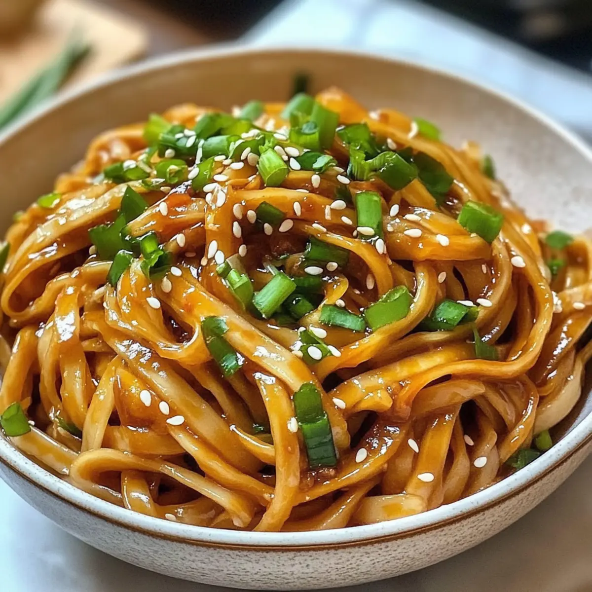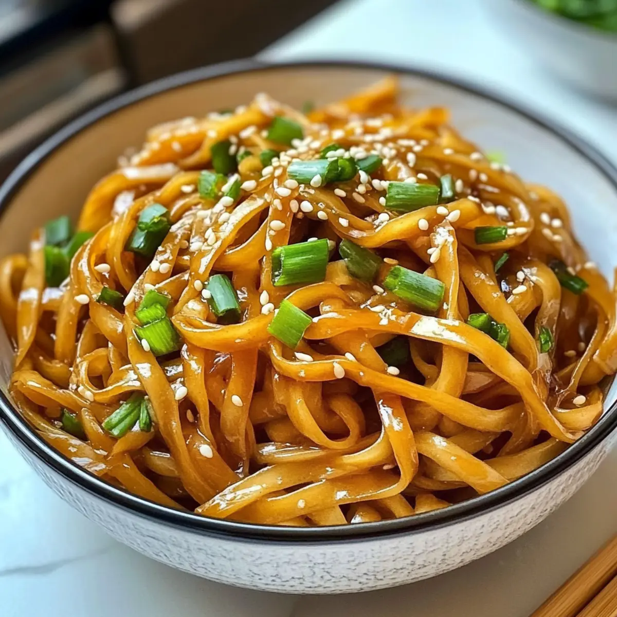 „Hast du schon einmal die Magie einer perfekt gewürzten Kombination aus Süße und Schärfe erlebt?“ Diese Frage kam mir in den Sinn, als ich zum ersten Mal meine Honigbutter-Nudel-Schalen zubereitete. Dieses Rezept ist mehr als nur eine Mahlzeit; es verwandelt ein gewöhnliches Abendessen in ein wohltuendes Geschmackserlebnis. Mit zarten Nudeln, die in einer reichhaltigen Honigbutter-Sauce baden, verfeinert durch saftigen Knoblauch und garniert mit knackigen Frühlingszwiebeln und Sesam, wird jede Gabel zu einer Umarmung für die Sinne. Die Zubereitung ist ein Kinderspiel und eignet sich sowohl für entspannte Wochentage als auch für gesellige Abende mit Freunden. Egal, ob du deine Schärfewahl anpassen oder die Nudeln glutenfrei gestalten möchtest – diese Schalen sind kinderleicht anpassbar und versprechen Genuss für jeden. Bereit, deine Küche in eine Oase der Aromen zu verwandeln? Warum sind Honigbutter-Nudel-Schalen so besonders? Einzigartige Geschmackskomposition: Die perfekte Mischung aus Süße und Würze lässt jede Gabel explodieren vor Geschmack. Schnelle Zubereitung: In nur 30 Minuten bereitet, ideal für hektische Wochentage oder ungeplante Dinnerpartys. Anpassungsfähig: Ob vegetarisch oder glutenfrei, du kannst das Rezept leicht personalisieren, um allen Vorlieben gerecht zu werden. Denk an die köstlichen Cremige Haehnchen Rezept, wenn du nach Abwechslung suchst! Wohltuende Texturen: Die Kombination aus glänzenden Nudeln, knackigen Frühlingszwiebeln und nussigen Sesamkörnern sorgt für ein harmonisches Esserlebnis. Gesellig und einladend: Einfach anzurichten, werden sie deine Gäste begeistern und perfekt für jedes Treffen sein. Schaffe mit diesen Schalen unvergessliche Momente! Zutaten für Honigbutter-Nudel-Schalen • Für die Nudeln Spaghetti oder Reisnudeln – Die perfekte Basis, die die Sauce aufsaugt; du kannst sie durch Zucchini oder glutenfreie Nudeln ersetzen. • Für die Sauce Ungesalzene Butter – Sorgt für reichhaltigen Geschmack und ermöglicht die Kontrolle über die Aromen; achte darauf, dass sie schmelzt, ohne zu verbrennen. Reiner Honig – Fügt natürliche Süße hinzu, die die Schärfe ergänzend wirkt; du kannst auch Ahornsirup verwenden und die Flüssigkeitsmengen anpassen. Sriracha-Sauce – Bringt die gewünschte Schärfe; passe die Menge nach deinem persönlichen Geschmack an. Knoblauchzehen – Frische Geschmacksnote; fein hacken, um Aroma und Geschmack zu verstärken. • Für die Garnitur Frühlingszwiebeln – Fügen Frische und Farbe hinzu; dünn schneiden, um sie als Garnitur zu verwenden. Geröstete Sesamsamen – Sorgen für Crunch und visuelle Attraktivität; unentbehrlich für das Finish. • Zusätzliche Zutaten Gemischtes Gemüse (optional) – Paprika und Brokkoli erhöhen die Nährwerte und die Farben; je nach Geschmack anpassen. Schritt-für-Schritt-Anleitungen für Honigbutter-Nudel-Schalen Step 1: Nudeln kochen Bringe einen großen Topf mit gesalzenem Wasser zum Kochen und füge die Spaghetti oder Reisnudeln hinzu. Koche die Nudeln nach Packungsanweisung für 8-10 Minuten, bis sie al dente sind. Eigne dir einen Sieb an, um die Nudeln abzugießen, und stelle sie beiseite, während du die Sauce zubereitest. Step 2: Knoblauch anbraten Erhitze eine große Pfanne bei mittlerer Hitze und füge die ungesalzene Butter hinzu, bis sie schmilzt. Gib den fein gehackten Knoblauch hinzu und brate ihn für etwa 30 Sekunden an, bis er aromatisch ist und leicht goldbraun wird. Achte darauf, dass der Knoblauch nicht verbrennt, um einen bitteren Geschmack zu vermeiden. Step 3: Honigbutter-Sauce erstellen Reduziere die Hitze auf niedrig und rühre den reinen Honig sowie die Sriracha-Sauce in die Pfanne mit dem Knoblauch ein. Lass die Mischung leicht köcheln und whisk sie kontinuierlich, bis alles gut vermischt und sprudelnd ist. Diese Honigbutter-Sauce wird nicht nur süß, sondern erhält auch eine angenehme Schärfe. Step 4: Nudeln hinzufügen Gib die abgetropften Nudeln in die Pfanne zur Honigbutter-Sauce. Verwende eine Zange, um die Nudeln gründlich zu wenden und gleichmäßig mit der Sauce zu beschichten, bis sie einen glänzenden Überzug aufweisen. Dies dauert etwa 1-2 Minuten, damit die Nudeln die Aromen aufnehmen können. Step 5: Garnierungen hinzufügen Streue die dünn geschnittenen Frühlingszwiebeln und die gerösteten Sesamsamen über die Nudeln in der Pfanne. Mische alles gut durch, sodass die Garnituren gleichmäßig verteilt sind. Dies gibt den Honigbutter-Nudel-Schalen nicht nur Farbe, sondern auch eine leckere Textur und einen zusätzlichen Crunch. Step 6: Anrichten und servieren Verteile die Honigbutter-Nudel-Schalen in warmen Schalen und garniere sie optional mit weiteren Frühlingszwiebeln und Sesamsamen für ein schönes Finish. Serviere die Schalen sofort, um die warmen Aromen und den Glanz der Sauce zu genießen, während sie frisch zubereitet sind. Bereite deine Honigbutter-Nudel-Schalen im Voraus vor! Die Honigbutter-Nudel-Schalen sind ideal für dein Meal Prep, denn viele Komponenten kannst du bereits bis zu 3 Tage im Voraus vorbereiten. Koche die Nudeln und bewahre sie in einem luftdichten Behälter im Kühlschrank auf, damit sie frisch bleiben und nicht austrocknen. Du kannst auch die Honigbutter-Sauce zubereiten und ebenfalls im Kühlschrank aufbewahren, damit sich die Aromen entfalten können. Wenn du bereit bist zu servieren, erhitze die Sauce in einer Pfanne und füge die Nudeln hinzu, wobei du sicherstellst, dass sie gut mit der Sauce bedeckt sind, um die beste Textur zu erhalten. Mit diesen Vorbereitungen sparst du Zeit und genießt trotzdem die köstliche, frisch zubereitete Mahlzeit! Expertentipps für Honigbutter-Nudel-Schalen Nudeln richtig kochen: Achte darauf, die Nudeln nur bis al dente zu kochen. Zu lange gekochte Nudeln können matschig werden und die Textur der Honigbutter-Nudel-Schalen beeinträchtigen. Schärfe anpassen: Beginne mit weniger Sriracha; du kannst die Schärfe leicht er