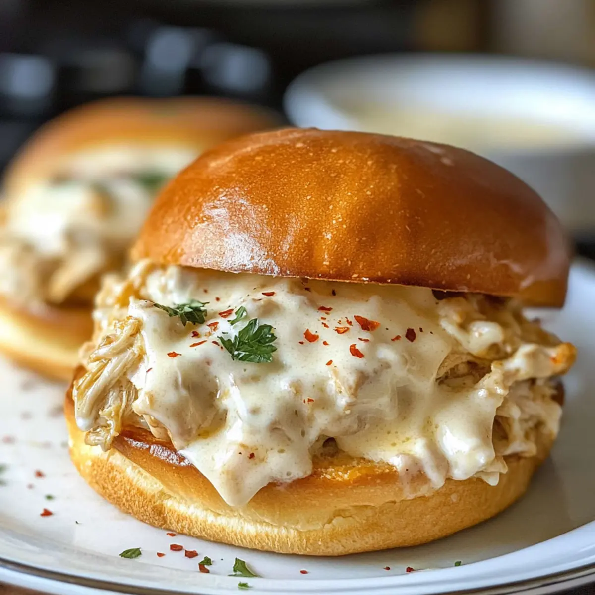 Gerade als ich an einem hektischen Wochentag mit dem Kochen beginnen wollte, kam mir die geniale Idee, das klassische Hühnchen Alfredo in eine Handheld-Delikatesse zu verwandeln: Hühnchen Alfredo Sloppy Joes! Diese köstliche Variante kombiniert zartes Hähnchen mit einer reichhaltigen, cremigen Alfredo-Sauce und wird auf weichen, gerösteten Brötchen serviert. In weniger als 30 Minuten zubereitet, vereint dieses Rezept die Vorteile eines schnellen Abendessens und ist gleichzeitig ein absoluter Familienliebling. Ideal für entspannte Abende oder gesellige Zusammenkünfte, sorgt es für Leichtigkeit in der Küche und lässt jeden Gaumen glücklich machen. Bist du bereit, deinen nächsten Dinner-Liebling zu entdecken? Warum sind Hühnchen Alfredo Sloppy Joes so einzigartig? Verwandlung des Klassikers: Diese Hühnchen Alfredo Sloppy Joes sind eine neuartige Interpretation des traditionellen Rezepts und bringen Abwechslung in deinen Speiseplan. Schnelle Zubereitung: In weniger als 30 Minuten hast du dieses köstliche Gericht auf dem Tisch – perfekt für geschäftige Wochentage! Cremige Verführung: Die Kombination aus zartem Hähnchen und der reichhaltigen Alfredo-Sauce sorgt für ein Geschmackserlebnis, das du nicht verpassen möchtest. Vielseitig: Ob als schnelles Abendessen oder bei geselligen Zusammenkünften, diese Sandwiches kommen immer gut an. Du kannst sie sogar nach Belieben variieren, z.B. mit Zucchini Sahnesauce für eine spezielle Note! Einfach und lecker: Die simplen Zutaten und die unkomplizierte Zubereitung machen dieses Rezept für jeden zugänglich, egal ob Küchenprofi oder Anfänger. Hühnchen Alfredo Sloppy Joes Zutaten Für die Füllung: • Gekochtes Hähnchen (2 Tassen) – Ideal als Proteinquelle, verwende gezupftes oder gewürfeltes (Rotisserie-Hähnchen spart Zeit). • Butter (2 EL) – Für die Basis der Sauce, kann durch Olivenöl für eine leichtere Variante ersetzt werden. • Schlagsahne (1 Tasse) – Die Grundlage der Alfredo-Sauce, die Reichhaltigkeit verleiht; kann durch halb-und-halb für eine fettärmere Option ersetzt werden. • Geriebener Parmesan (1 Tasse) – Sorgt für Geschmack und Cremigkeit in der Sauce; frisch gerieben ist am besten. • Zwiebel (1 kleine, fein gehackt) – Aromaträger für die Basisnote; ersetze sie durch Schalotten für eine süßere Note. • Knoblauch (2 Zehen, gehackt) – Für eine geschmackliche Tiefe; frisch ist empfehlenswert, aber in der Not kann auch Knoblauchpulver verwendet werden. • Italienische Gewürzmischung (1 TL) – Verleiht das gewisse Etwas; kann durch Oregano, Basilikum und Petersilie ersetzt werden, falls notwendig. • Salz und Pfeffer (nach Geschmack) – Essenziell zum Würzen; je nach Vorliebe anpassen. • Optionale rote Pfefferflocken – Für eine würzige Note; weglassen für einen milderen Geschmack. • Hackspinat oder geröstete Paprika (1 Tasse, optional) – Fügt Farbe und Nährstoffe hinzu; ersetze Spinat durch Grünkohl für eine herzhaftere grüne Note. • Weiche Brötchen (4, geröstet) – Der ideale Träger für die Füllung; Slider-Brötchen sind perfekt für kleine Portionen. • Geriebener Mozzarella (optional) – Für extra Käsegeschmack; kannst auch jede schmelzbare Käsesorte verwenden. Tipp: Für diese Hühnchen Alfredo Sloppy Joes ist es wichtig, die Brötchen vorher zu toasten, damit sie nicht durchweichen! Schritt-für-Schritt-Anleitungen für Hühnchen Alfredo Sloppy Joes Step 1: Hähnchen vorbereiten Zerreibe oder würfle das gekochte Hähnchen. Falls du rohes Hähnchen verwendest, brate es in einer Pfanne bei mittlerer Hitze für etwa 10–12 Minuten, bis es vollständig durchgegart ist und eine goldene Farbe hat, dann zerkleinere es. Lege das vorbereitete Hähnchen beiseite, während du die Sauce zubereitest. Step 2: Aromastoffe anbraten In einer großen Pfanne bei mittlerer Hitze 2 Esslöffel Butter erhitzen, bis sie schäumt. Füge die fein gehackte Zwiebel hinzu und brate sie für etwa 3–4 Minuten, bis sie weich und durchsichtig ist. Dann fügst du den gehackten Knoblauch hinzu und brätst ihn für weitere 1–2 Minuten, bis er aromatisch ist. Step 3: Alfredo-Sauce zubereiten Gieße 1 Tasse Schlagsahne in die Pfanne mit den gedünsteten Zwiebeln und dem Knoblauch. Rühre die Mischung gut um und lass sie bei mittlerer Hitze erwärmen. Nun, füge schrittweise 1 Tasse geriebenen Parmesan hinzu, dabei ständig rühren, bis die Sauce glatt und cremig ist. Würze sie dann mit italienischer Gewürzmischung, Salz, Pfeffer, und optionalen roten Pfefferflocken nach Geschmack. Step 4: Hähnchen mit der Sauce kombinieren Sobald die Sauce fertig ist, füge die zerkleinerten Hähnchenstücke und optional den gehackten Spinat oder die gerösteten Paprika hinzu. Rühre alles einmal gut durch, sodass das Hähnchen gleichmäßig mit der cremigen Alfredo-Sauce umhüllt ist. Lass die Mischung bei schwacher Hitze für etwa 2–3 Minuten köcheln, bis alles gut erhitzt ist. Step 5: Sandwiches zusammenstellen Toaste nun die weichen Brötchen in einem Toaster oder einer Pfanne, bis sie leicht goldbraun sind. Löffle die cremige Hähnchenmischung großzügig auf die unteren Brötchenhälften und streue auf Wunsch geriebenen Mozzarella darüber. Decke die Sandwiches mit den oberen Brötchenhälften zu und serviere sie heiß, damit jeder Biss die cremige Füllung perfekt einfängt. Tipps für die besten Hühnchen Alfredo Sloppy Joes Rotisserie-Huhn verwenden: Gekauftes Hähnchen spart Zeit und bleibt saftig. Achte darauf, die Haut zu entfernen, wenn du es verwendest. Sauce anpassen: Für eine dickere Sauce kannst du die Schlagsahne reduziert oder mehr Parmesan hinzufügen. So bleibt sie cremig und köstlich. Brötchen toasten: Durch das Rösten der Brötchen wird verhindert, dass sie durchweichen, sodass deine Hühnchen Alfredo Sloppy Joes beim Essen knackig bleiben. Frische Kräuter nutzen: Verwende frische Kräuter wie Basilikum oder Petersilie für einen intensiveren Geschmack i