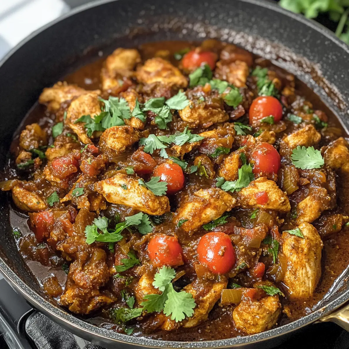 Der würzige Duft von Hühnchen Bhuna durchzieht meine Küche und versetzt mich sofort in eine andere Welt. Diese indische Spezialität bringt nicht nur intensive Aromen auf den Tisch, sondern verwandelt auch jede Mahlzeit in ein kleines Festessen. Mit saftigen Hühnchenteilen, die in einer dicken, aromatischen Sauce aus Gewürzen, Ingwer und Knoblauch geschmort werden, ist dieses Gericht sowohl einfach zubereitet als auch ein köstlicher Genuss für die ganze Familie. Ideal für hektische Wochentage oder besondere Anlässe, wird Hühnchen Bhuna garantiert zum Star deiner nächsten Dinner-Party! Bist du bereit, dein Kochgeschick auf die nächste Stufe zu heben und deine Liebsten mit diesem unwiderstehlichen Rezept zu begeistern? Warum solltest du Hühnchen Bhuna lieben? Aromatischer Genuss: Der würzige Duft von Hühnchen Bhuna wird deine Sinne verzaubern und deine Küche in ein indisches Restaurant verwandeln. Einfache Zubereitung: Mit nur wenigen Schritten und alltäglichen Zutaten gelingt dir ein beeindruckendes Gericht, ideal für jeden Kochlevel. Vielseitig: Ob beim gemütlichen Abendessen oder für Gäste – dieses Rezept passt zu jeder Gelegenheit. Und falls du mehr Abwechslung möchtest, probiere doch auch Linsensuppe mit Zitrone oder gebratenen Reis mit Ei. Herzhafte Aromen: Die Kombination aus Gewürzen, Ingwer und Knoblauch sorgt für ein Geschmackserlebnis, das alle begeistert. Schnell und sättigend: In kurzer Zeit zubereitet, bietet das Gericht nicht nur einen tollen Geschmack, sondern macht auch satt – perfekt für hektische Abende! Hühnchen Bhuna Zutaten • Um das Rezept perfekt nachzukochen, findest du hier alles, was du brauchst: Für die Sauce Gemüseöl – dient als Kochmedium; für einen authentischeren Geschmack kannst du auch Ghee verwenden. Boneless Hühnchenschenkel – saftige und geschmackvolle Hauptproteinquelle; Hühnchenbrust kann ebenfalls verwendet werden, jedoch muss die Garzeit angepasst werden. Zwiebeln – sorgen für grundlegenden Geschmack und Süße; wichtig für die Sauce, verwende gelbe oder rote Zwiebeln. Frischer Ingwer – fügt Wärme und Tiefe hinzu; frisch ist hier die beste Wahl. Knoblauchzehen – sorgen für aromatischen Geschmack; frisch gehackter Knoblauch ist für den besten Geschmack empfohlen. Jalapeño-Pfeffer – bringt Schärfe; für milderen Genuss können die Samen entfernt werden. Wenn weniger Schärfe gewünscht ist, kann Paprika verwendet werden. Chilipulver – liefert Schärfe und Farbe; passe die Menge je nach Vorliebe an. Kreuzkümmel – verleiht einen erdigen Geschmack, der das Verlangen nach indischer Küche steigert. Gemahlener Koriander – sorgt für Frische; kann im Notfall durch Currypulver ersetzt werden. Kardamom – süß und würzig, edel; garam masala kann ebenfalls als Ersatz verwendet werden. Garam Masala – eine Mischung aus gemahlenen Gewürzen, die Wärme hinzufügt; essenziell für die Authentizität des Gerichts. Salz & Pfeffer – zum würzen; nach Geschmack anpassen. Cherrytomaten – frische Tomaten verleihen Säure und Süße; bei Bedarf können auch Dosentomaten verwendet werden. Tomatenmark – verdickt die Sauce und sorgt für Tiefe. Wasser – um die Konsistenz der Sauce anzupassen; Gemüsebrühe kann für mehr Geschmack verwendet werden. Frischer Koriander – als Garnitur für Frische; kann durch Petersilie ersetzt werden. Frischer Zitronensaft – fügt Säure hinzu, um das Gericht auszugleichen; kann weggelassen werden, wenn er nicht verfügbar ist. Schritt-für-Schritt-Anleitung für Hühnchen Bhuna Step 1: Öl erhitzen Erhitze 2 Esslöffel Gemüseöl in einem großen Schmortopf bei mittlerer bis hoher Hitze. Achte darauf, dass das Öl heiß ist, bevor du mit dem nächsten Schritt fortfährst. Ein leicht schimmerndes Öl zeigt dir, dass die richtige Temperatur erreicht ist. Step 2: Hühnchen braten Füge die Hühnchenteile in mehreren Chargen hinzu und brate sie auf jeder Seite für etwa 3 Minuten, bis sie goldbraun sind. Verwende eine Zange, um das Hühnchen zu wenden, und lege es anschließend auf einen Teller. Achte darauf, dass die Stücke nicht zusammenkleben. Step 3: Zwiebeln anbraten Reduziere die Hitze auf mittlere Stufe und gib das restliche Öl in den Topf. Sauté die Zwiebeln für etwa 4 bis 5 Minuten, bis sie durchsichtig sind und einen zarten Duft verströmen. Dies bildet die aromatische Basis für deinen Hühnchen Bhuna. Step 4: Gewürze und Gemüse hinzufügen Rühre den minced Ingwer, den Knoblauch und den Jalapeño-Pfeffer in die Zwiebeln ein und brate sie für 1 Minute weiter. Du wirst das verführerische Aroma von frischem Ingwer und Knoblauch wahrnehmen, das sich während des Kochens entfaltet. Step 5: Gewürzmischung einrühren Füge das Chilipulver, den Kreuzkümmel, den gemahlenen Koriander, den Kardamom, das Garam Masala, Salz und schwarzen Pfeffer hinzu. Lasse die Gewürze für 1 Minute leicht rösten, um ihre Aromen freizusetzen und die Basis für die Sauce zu intensivieren. Step 6: Tomaten und Flüssigkeit hinzufügen Inkorporiere die Cherrytomaten, das Tomatenmark und das Wasser in den Topf. Bring die Mischung zum Kochen, indem du sie bei mittlerer Hitze erhitzt. Die Tomaten sollten weich werden und ihre Säfte freisetzen, um eine reichhaltige Sauce zu bilden. Step 7: Köcheln lassen Reduziere die Hitze und lasse das Ganze für etwa 5 Minuten köcheln. Überwache die Konsistenz der Sauce; sie sollte anfangen, dicker zu werden und ein ansprechendes Aroma abgeben. Step 8: Hühnchen wieder hinzugeben Lege das angebratene Hühnchen zurück in den Schmortopf und lasse es für weitere 15 Minuten köcheln, bis die Sauce reduziert ist und das Hühnchen vollständig durchgegart ist. Gelegentlich umrühren, damit das Hühnchen gleichmäßig mit der Sauce bedeckt ist und die Aromen aufnimmt. Step 9: Garnieren und servieren Kurz vor dem Servieren mit frischem Koriander garnieren und etwas Zitronensaft darüber träufeln, um die Aromen abzurunden. Achte darauf, den H
