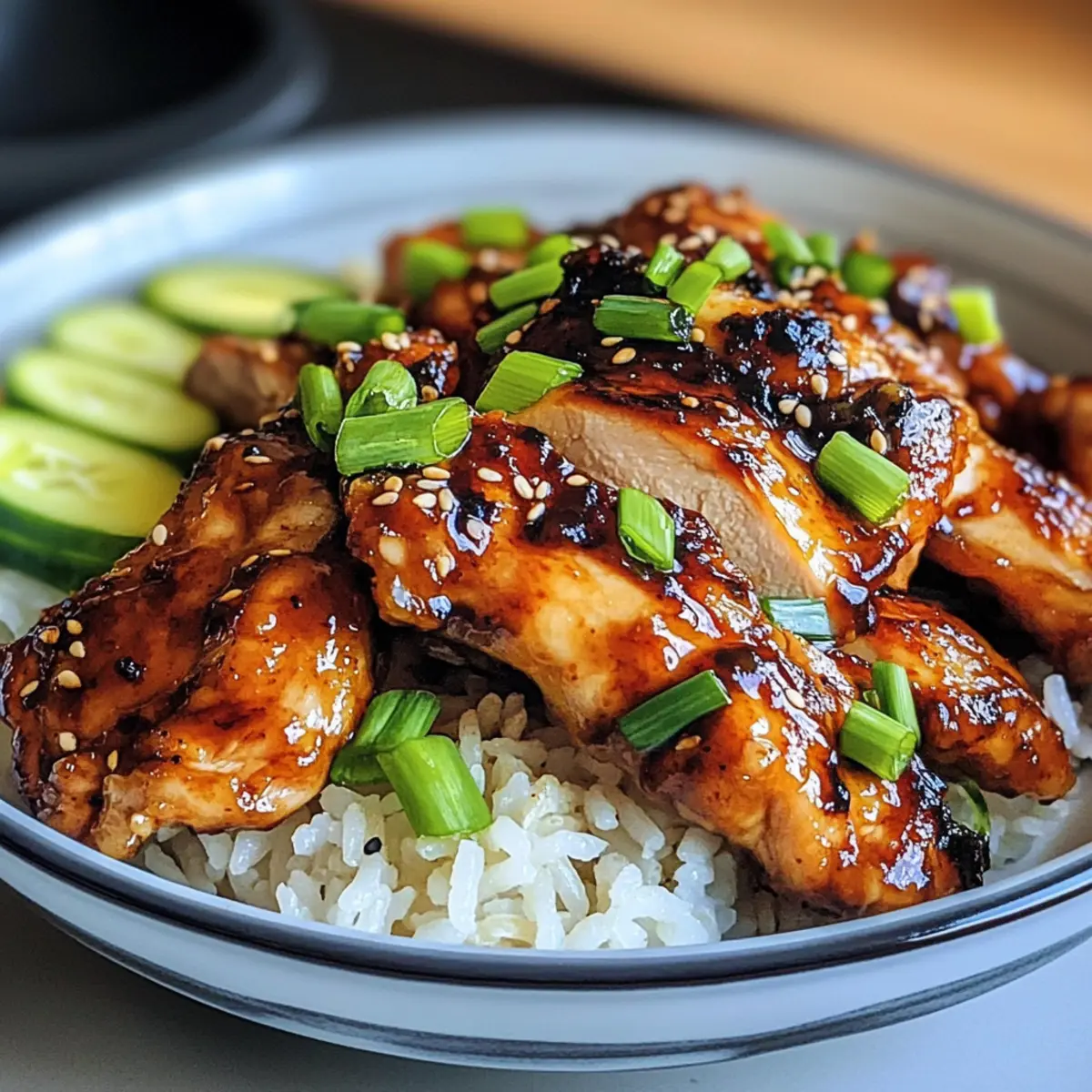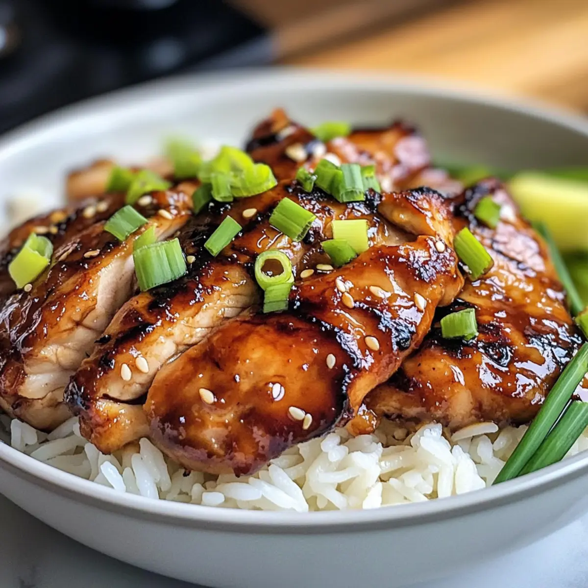 Stell dir vor, du bist nach einem langen Tag nach Hause gekommen und der verführerische Duft von Hühnchen Bulgogi durchdringt die Küche. Dieses Rezept bringt nicht nur die Aromen Koreas direkt auf deinen Tisch, sondern gelingt auch in kürzester Zeit! Mit saftigen Hähnchenschenkeln, die in einer perfekten Mischung aus würziger Sojasauce, süßem Zucker und aromatischem Knoblauch mariniert sind, ist dieses Gericht ein echter Genuss und ein schneller Rettungsanker für alle, die sich nach einer köstlichen, hausgemachten Mahlzeit sehnen. Egal, ob du es zur Abendessen mit der Familie servierst oder beim nächsten Grillabend die Gäste beeindrucken möchtest, Hühnchen Bulgogi ist vielseitig und einfach zuzubereiten. Neugierig, wie es sich auf deinem Teller entfalten wird? Lass uns gemeinsam in die Zubereitung eintauchen! Warum wirst du dieses Rezept lieben? Einfachheit: Die Zubereitung von Hühnchen Bulgogi ist kinderleicht. Mit nur wenigen Zutaten und einem einfachen Marinierprozess steht dein köstliches Essen in kürzester Zeit auf dem Tisch! Vielfältig: Dieses Rezept kann nach deinem Geschmack angepasst werden. Probiere es mit Gemüse oder passe die Marinade an, um deine persönliche Note hinzuzufügen. Würzige Aromen: Die Kombination aus Sojasauce und Knoblauch sorgt für einen unvergesslichen Geschmack, der deine Geschmacksknospen verzaubern wird. Familienfreundlich: Ob als schnelles Abendessen oder beim nächsten Grillabend, Hühnchen Bulgogi begeistert jeden am Tisch. Du kannst es wunderbar mit Reis oder in frischen Salatwickeln servieren. Raffinierte Textur: Luftgegart erhält das Hühnchen eine perfekt karamellisierte Oberfläche und bleibt innen saftig. Entdecke auch unser Rezept für Cremige Hühnchen Rezept und erfahre, wie du köstliche asiatische Aromen nach Hause holen kannst! Hühnchen Bulgogi Zutaten • Hühnchen-Schenkel: – Hauptproteinquelle, idealerweise entbeint und ohne Haut für zarte Textur. • Sojasauce: – Liefert Umami und Salzigkeit; verwende Tamari für eine glutenfreie Version. • Brauner Zucker: – Fügt Süße hinzu und fördert die Karamellisierung; kann durch Honig oder Ahornsirup ersetzt werden. • Knoblauch: – Verstärkt die Geschmacksdimension; frischer, gehackter Knoblauch sorgt für die besten Ergebnisse. • Ingwer: – Gibt eine wärmende Gewürznote; frischer Ingwer ist ideal, ersetze ihn durch gemahlenen Ingwer bei Bedarf. • Sesamöl: – Sorgt für einen nussigen Geschmack, typisch für asiatische Küche; kann durch Pflanzenöl ersetzt werden. • Frühlingszwiebeln: – Für Garnitur und Frische; gehackte Frühlingszwiebeln verwenden oder weglassen, wenn gewünscht. Schmecke die Aromen Koreas mit diesem köstlichen Hühnchen Bulgogi aus! Schritt-für-Schritt-Anleitung für Hühnchen Bulgogi Step 1: Marinade vorbereiten In einer Schüssel Sojasauce, braunen Zucker, gehackten Knoblauch, Ingwer und Sesamöl gut vermengen. Rühre die Mischung kräftig um, bis der Zucker vollständig aufgelöst ist. Diese köstliche Marinade sorgt für den charakteristischen Geschmack des Hühnchen Bulgogi und sollte gleichmäßig cremig und glänzend aussehen. Step 2: Hühnchen marinieren Füge die Hähnchenschenkel zur Marinade hinzu und stelle sicher, dass sie von allen Seiten gut bedeckt sind. Decke die Schüssel mit Frischhaltefolie ab und stelle sie für mindestens 1 Stunde, optimalerweise über Nacht, in den Kühlschrank. Dies ermöglicht dem Hühnchen, die Aromen intensiv aufzunehmen und besonders zart zu werden. Step 3: Heißluftfritteuse vorheizen Heize deine Heißluftfritteuse auf 200 °C (400 °F) vor, indem du sie für etwa 5 Minuten arbeiten lässt. Dies ist ein entscheidender Schritt, um sicherzustellen, dass das Hühnchen Bulgogi beim Garen eine perfekt knusprige und goldbraune Oberfläche erhält, die für ein authentisches BBQ-Geschmackserlebnis sorgt. Step 4: Hühnchen garen Lege die marinierten Hähnchenschenkel in einer einzelnen Schicht in den Korb der Heißluftfritteuse. Koche das Hühnchen für 20 Minuten und wende es nach der Hälfte der Zeit, um eine gleichmäßige Bräunung zu gewährleisten. Sobald es außen goldbraun und innen gut durchgegart ist, sollte das Hühnchen eine Innentemperatur von 74 °C (165 °F) erreichen. Step 5: Servieren Nimm das Hühnchen Bulgogi aus der Heißluftfritteuse und lasse es einige Minuten ruhen, bevor du es in Scheiben schneidest. Serviere es mit frischem Reis, knusprigem Kimchi oder in knackigen Salatwickeln. Diese Kombination macht das Gericht nicht nur geschmacklich, sondern auch optisch zu einem echten Highlight! Expertentipps für Hühnchen Bulgogi Längere Marinierzeit: Je länger du das Hühnchen mariniert, desto intensiver wird der Geschmack. Marinieren über 24 Stunden vermeiden, um ein zu salziges Ergebnis zu verhindern. Einheitliche Stücke: Dafür sorgen, dass die Hühnchenstücke gleichmäßig dick sind, um eine gleichmäßige Garung und perfekte Textur zu gewährleisten. Temperatur messen: Mit einem Kochthermometer prüfen, ob das Hühnchen eine Innentemperatur von 74 °C (165 °F) erreicht hat. So bist du sicher, dass es durchgegart ist. Variationen ausprobieren: Experimentiere mit Füllungen und Beilagen wie Gemüse oder Gochujang für zusätzliche Aromen und eine maßgeschneiderte Erfahrung. Resteverwertung: Überbleibsel in einem luftdichten Behälter im Kühlschrank bis zu 3 Tage aufbewahren. In der Heißluftfritteuse aufwärmen, um die knusprige Textur zu bewahren. Hühnchen Bulgogi Variationen Lass deiner Kreativität freien Lauf und passe das Rezept nach deinem Geschmack an! Dairy-Free: Verwende Kokosnusscreme anstelle von Sesamöl für einen leicht süßlichen Geschmack. Spicy Kick: Ergänze einen Teelöffel Gochujang zur Marinade für zusätzliche Schärfe und Tiefe. Gemüse hinzufügen: Mische in den Korb der Heißluftfritteuse Gemüse wie Paprika oder Zucchini für ein komplettes Gericht. Kohlenhydratarme Option: Ersetze den braunen Zucker mit Stevia oder einem and