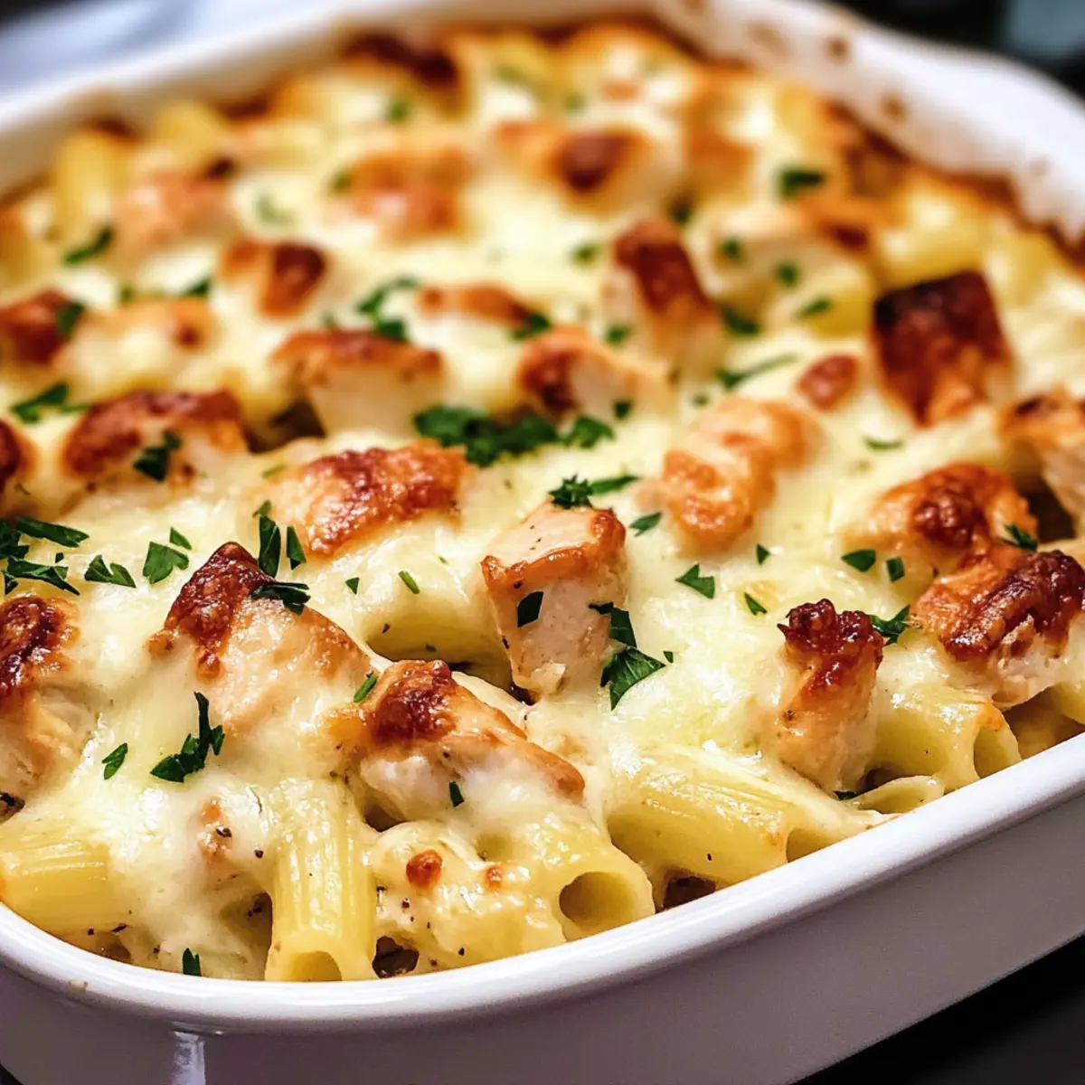 Es gibt Tage, an denen man einfach nach etwas Herzhaftem, Warmem und vor allem Einfachen verlangt. Mir geht es oft so, besonders nach einem langen Tag. Genau an solchen Abenden greife ich liebend gerne zu diesem köstlichen Rezept für Hühnchen-Ranch-Nudeln-Auflauf. Diese cremige Pasta ist nicht nur blitzschnell zubereitet, sondern auch ein echter Publikumsliebling für die ganze Familie. Die Kombination aus zartem Hühnchen, herzhaftem Speck und dem einzigartigen Geschmack von Ranch-Dressing macht dieses Gericht zu einem Wohlfühlessen, das selbst die Kleinsten begeistert. Wenn du auf der Suche nach einem Rezept bist, das sowohl Soulfood als auch eine gemeinsame Zeit beim Abendessen fördert, dann solltest du nicht weiterscrollen. Bist du bereit, dein neues Lieblingsgericht zu entdecken? Warum wird dieser Auflauf deine Familie begeistern? Herzhaft und cremig: Der Hühnchen-Ranch-Nudeln-Auflauf vereint die besten Aromen in einem Gericht, perfekt für jede Gelegenheit. Schnelle Zubereitung: In kürzester Zeit auf dem Tisch, ideal für hektische Wochentage, wenn die Zeit drängt. Familienfreundlich: Selbst die wählerischsten Esser werden hier große Freude haben, dank des köstlichen Geschmacks und der einfachen Zutaten. Vielseitig einsetzbar: Experimentiere mit verschiedenen Gemüsearten oder proteinreichen Alternativen wie Tofu für eine neue Variante. Einfache Aufbewahrung: Bereite ihn im Voraus zu und genieße die Bequemlichkeit einer herzhaften Mahlzeit, wann immer du möchtest. Schaut auch in unsere Tipps für die Aufbewahrung von Aufläufen für weitere hilfreiche Informationen! Hühnchen-Ranch-Nudeln-Auflauf Zutaten Für die Pasta • Dried Penne Pasta – Die Basis des Gerichts, die für die nötigen Kohlenhydrate sorgt; kann durch ähnliche Nudeln wie Rotini oder Muscheln ersetzt werden. Für das Hühnchen • Boneless, Skinless Chicken Breasts – Die Hauptproteinquelle, die für Herzhaftigkeit sorgt; du kannst auch bereits gegartes Hähnchen verwenden, um die Zubereitung zu beschleunigen. Für die Sauce • Ranch Seasoning/Dressing Mix – Verleiht dem Gericht den charakteristischen Ranch-Geschmack; alternativ kannst du eine hausgemachte Ranch-Gewürzmischung verwenden. • Salted Butter – Gibt der Sauce eine reichhaltige Note; ungesalzene Butter kann genutzt werden, aber achte auf die Salzmenge. • Minced Garlic – Intensiviert den Geschmack; frischer Knoblauch ist am besten, aber Knoblauchpulver ist auch eine mögliche Alternative. • All-Purpose Flour – Verdickt die Ranch-Sauce; kannst auch Maisstärke verwenden (1 Esslöffel mit kaltem Wasser vermischen). • Heavy Whipping Cream – Sorgt für eine cremige Sauce; Halbfett-Sahne kann verwendet werden, aber die Sauce wird dünner. • Freshly Grated Parmesan Cheese – Bringt Tiefe und einen salzigen Geschmack in die Sauce; Pecorino Romano kann für einen intensiveren Geschmack verwendet werden. Für das Topping • Black Pepper – Zum Würzen; nach Geschmack anpassen. • Shredded Mozzarella Cheese – Das köstliche Topping, das beim Schmelzen Cremigkeit hinzufügt; Cheddar kann für eine andere Geschmacksnote genutzt werden. • Cooked Bacon – Fügt einen herzhaften Crunch und zusätzliche Aromen hinzu; für eine leichtere Variante weglassen oder Truthahn-Bacon verwenden. • Fresh Chopped Parsley – Optional als Garnierung, die Farbe und Frische verleiht. Genieße dieses köstliche Rezept für Hühnchen-Ranch-Nudeln-Auflauf und erlebe, wie einfach es ist, ein hausgemachtes Wohlfühlessen auf den Tisch zu bringen! Schritt-für-Schritt-Anleitung für Hühnchen-Ranch-Nudeln-Auflauf Step 1: Pasta kochen Koche die Penne-Nudeln in einem großen Topf mit sprudelndem Salzwasser für etwa 10–12 Minuten, bis sie al dente sind. Achte darauf, die Nudeln gelegentlich umzurühren, damit sie nicht zusammenkleben. Sobald sie fertig sind, gieße sie ab und stelle sie beiseite, während du die restlichen Zutaten vorbereitest. Step 2: Hühnchen braten Würze die Hähnchenbruststücke großzügig mit der Ranch-Gewürzmischung. Erhitze eine beschichtete Pfanne bei mittlerer bis hoher Hitze und brate das Hühnchen für 10–12 Minuten, bis es innen nicht mehr rosa ist und eine goldene Kruste hat. Nimm das Hühnchen aus der Pfanne und decke es mit Folie ab, um es warm zu halten. Step 3: Sauce zubereiten In der gleichen Pfanne die Butter bei mittlerer Hitze schmelzen. Füge den gehackten Knoblauch hinzu und brate ihn für 1–2 Minuten, bis er duftet. Wichtig ist, dass der Knoblauch nicht anbrennt. Rühre dann die Ranch-Gewürzmischung zusammen mit dem Mehl ein und koche die Mischung für 1 Minute, um sie zu rösten. Step 4: Cremige Basis herstellen Gieße langsam die schwere Sahne unter ständigem Rühren in die Pfanne, bis die Mischung zu köcheln beginnt. Achte darauf, dass die Sahne nicht zu stark kocht, um Klumpen zu vermeiden. Nimm die Pfanne vom Herd und rühre den frisch geriebenen Parmesan ein, bis er vollständig geschmolzen ist und die Sauce cremig wird. Step 5: Alle Zutaten kombinieren Vermische die gekochten Nudeln mit der Ranch-Sauce und den gebratenen Hähnchenstücken in einer großen Schüssel. Achte darauf, dass alles gleichmäßig mit der Sauce umhüllt ist. Anschließend gib die Mischung in eine gefettete 9×13-inch Auflaufform und verteile sie gleichmäßig. Step 6: Auflauf toppen und backen Streue die geriebene Mozzarella über die Nudelmischung und füge optional den gebratenen Speck hinzu. Backe den Hühnchen-Ranch-Nudeln-Auflauf in einem vorgeheizten Ofen bei 190°C (375°F) für 20 Minuten, bis der Käse geschmolzen und goldbraun ist und die Ränder leicht blubbern. Step 7: Servieren und garnieren Lass den Auflauf nach dem Backen für einige Minuten ruhen, damit er sich setzen kann. Optional kannst du ihn mit frisch gehackter Petersilie bestreuen, bevor du ihn servierst. Genieße diesen herzhaften Hühnchen-Ranch-Nudeln-Auflauf als perfektes Wohlfühlgericht für die ganze Familie. Tipps für den besten 