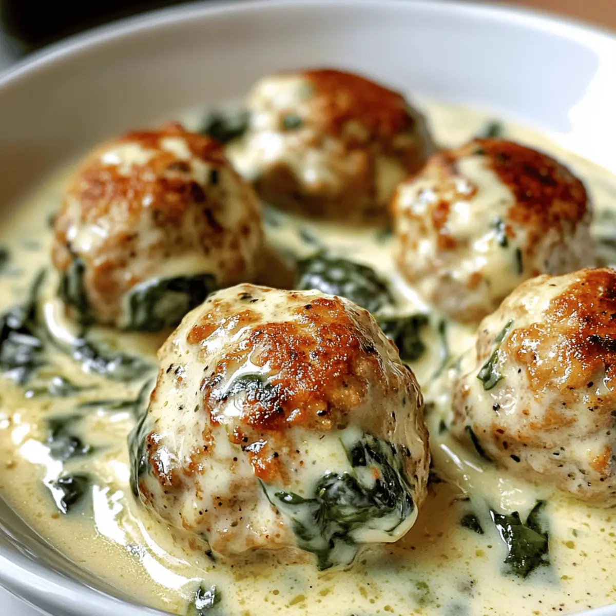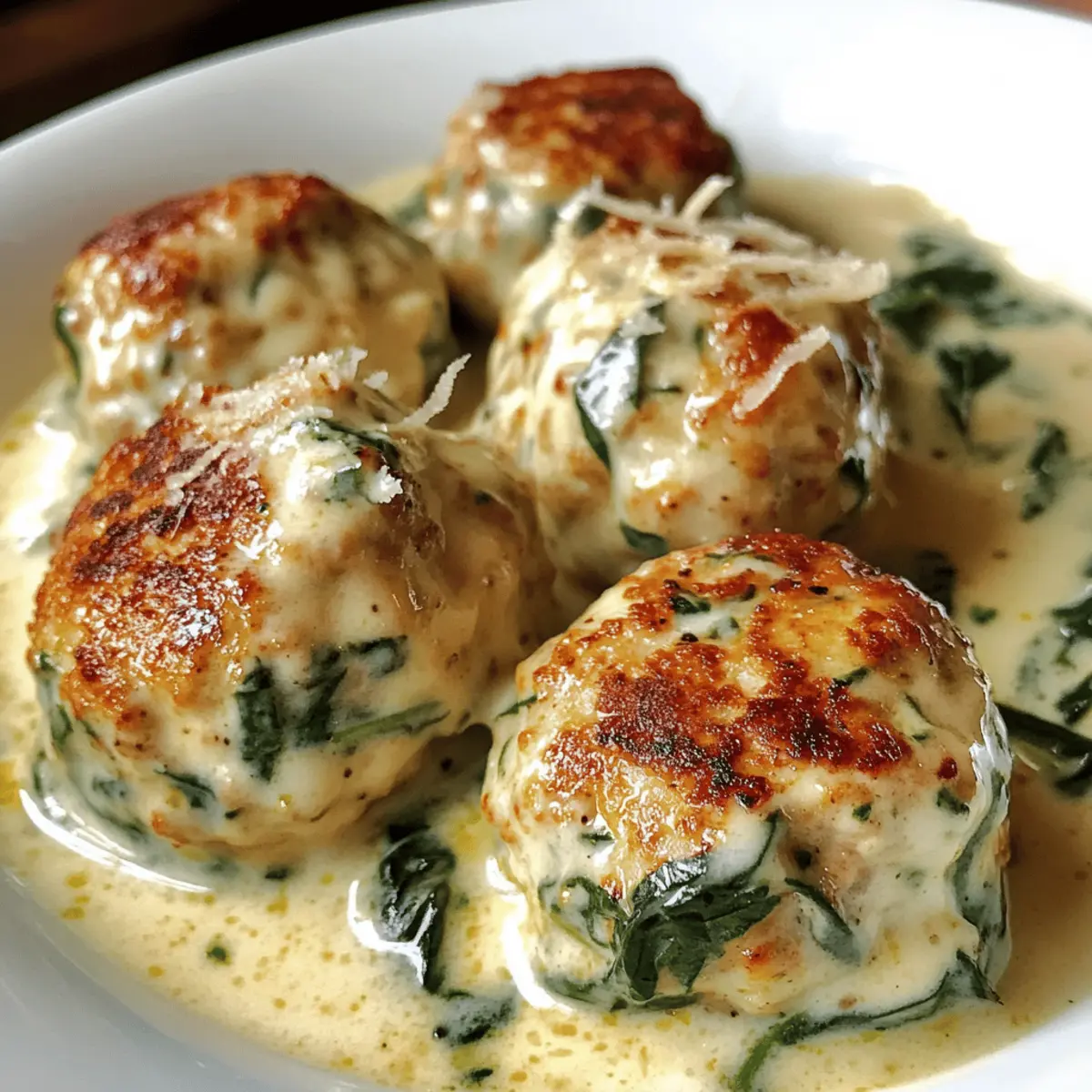 Es gibt Momente, in denen man einfach nach Hause kommen und sich in den Duft von frisch gebackenem Komfortessen einhüllen möchte. Diese cremigen Spinaci-Alfredo-Hühnchen-Ricotta-Fleischbällchen erfüllen genau dieses Verlangen. Ursprünglich inspiriert von der italienisch-amerikanischen Küche, sind sie perfekt für eine schnelle, gesellige Abendmahlzeit oder um Gäste zu beeindrucken. Der Reiz liegt nicht nur in ihrem himmlischen Geschmack, sondern auch in der Vielseitigkeit, denn sie können leicht vorbereitet und sogar eingefroren werden. So sind sie eine großartige Lösung für stressige Wochentage! Bist du bereit, deine Küche in ein kleines italienisches Restaurant zu verwandeln? Warum werden Sie dieses Rezept lieben? Einfache Zubereitung: Die Zubereitung dieser Fleischbällchen ist unkompliziert und benötigt nur wenige Zutaten. Cremiger Genuss: Die Kombination aus Ricotta und Alfredo-Sauce sorgt für eine samtige Textur, die jeder liebt. Vielseitig einsetzbar: Diese Fleischbällchen passen zu Pasta, als Teil eines Buffets oder einfach solo – ideal für alle Gelegenheiten! Familienfreundlich: Ein Gericht, das nicht nur die Kleinen begeistert, sondern auch die Großen. Einfrieren leicht gemacht: Bereiten Sie eine große Menge vor und bewahren Sie die Fleischbällchen im Gefrierschrank auf – perfekt für stressige Wochentage! Für mehr köstliche Rezepte, probieren Sie auch unsere Paprika Mit Ricotta, und machen Sie Ihr Abendessen noch abwechslungsreicher! Hühnchen Ricotta Fleischbällchen Zutaten • Hier sind die notwendigen Zutaten, um diese köstlichen Hühnchen Ricotta Fleischbällchen zuzubereiten, damit du deine Familie und Freunde beeindrucken kannst! Für die Fleischbällchen Gemahlenes Hühnchen – Hauptproteinquelle, du kannst auch mageres Puten- oder Rinderhack verwenden. Ricotta-Käse – Sorgt für Feuchtigkeit und Zartheit; unverzichtbar für die perfekte Textur. Eier – Dienen als Bindemittel; für eine vegane Variante kann ein Leinenei verwendet werden. Knoblauch – Geschmacksträger; frischer Knoblauch ist ideal, jedoch kann auch Granulat verwendet werden. Salz und Pfeffer – Essentielle Gewürze zur Geschmacksbalance; nach Geschmack anpassen. Für die Spinatsauce Butter – Fügt der Alfredo-Sauce Reichtum hinzu; verwenden Sie ungesalzene Butter für eine bessere Kontrolle des Gewürzes. Schlagsahne – Schafft die cremige Textur der Sauce; kann durch halbe-halbe für eine leichtere Variante ersetzt werden. Parmesan-Käse – Verstärkt den Umami-Geschmack sowohl in den Fleischbällchen als auch in der Sauce; frisch gerieben liefert die besten Ergebnisse. Spinat – Nährstoffreich und sorgt für Farbe; kann weggelassen werden, wenn gewünscht. Mit diesen Zutaten bereitest du die köstlichen Hühnchen Ricotta Fleischbällchen zu, die die perfekte Ergänzung für dein Abendessen sind! Schritt-für-Schritt-Anleitung für Hühnchen Ricotta Fleischbällchen Step 1: Fleischbällchen vorbereiten In einer großen Schüssel das gemahlene Hühnchen, Ricotta, die verquirlten Eier, den gehackten Knoblauch, Salz und Pfeffer gut vermengen. Achte darauf, die Zutaten gleichmäßig zu vermischen, bis eine homogene Masse entsteht. Mit Händen kleine Fleischbällchen formen, etwa in der Größe eines Golfballs. Lege die geformten Fleischbällchen auf einen großen Teller oder ein Backblech. Step 2: Fleischbällchen backen Heize den Ofen auf 190°C (375°F) vor und lege ein Backblech mit Backpapier aus. Platziere die geformten Fleischbällchen gleichmäßig auf dem Backblech, sodass sie sich nicht berühren. Backe die Fleischbällchen 20 Minuten lang, oder bis sie goldbraun sind und eine Kerntemperatur von 74°C (165°F) erreicht haben. Dies sorgt für zarte und saftige Hühnchen Ricotta Fleischbällchen. Step 3: Sauce zubereiten In einer großen Pfanne die Butter bei mittlerer Hitze schmelzen. Füge den gehackten Knoblauch hinzu und brate ihn etwa 1-2 Minuten lang, bis er duftet. Gieße die Schlagsahne in die Pfanne, rühre sie gut um und lasse sie sanft köcheln. Füge dann den frischen Spinat und den geriebenen Parmesan hinzu und koche weiter, bis der Spinat verwelkt ist und die Sauce leicht eindickt. Step 4: Fleischbällchen kombinieren Sobald die Fleischbällchen fertig gebacken sind, füge sie vorsichtig zur Spinatsauce in die Pfanne hinzu. Löffle die Sauce über die Fleischbällchen, sodass sie gleichmäßig bedeckt sind. Lasse die Mischung 5 Minuten lang bei niedriger Hitze köcheln, damit sich die Aromen verbinden und die Fleischbällchen durch die Sauce die zusätzliche Crema erhalten. Step 5: Servieren Serviere die cremigen Hühnchen Ricotta Fleischbällchen sofort, gerne über gekochter Pasta oder mit knusprigem Brot. Alternativ kannst du sie als köstliche Appetizer genießen. Die Sahnesauce sollte herrlich glänzen und die Fleischbällchen umschmeicheln, was für ein unvergessliches Geschmackserlebnis sorgt. Was passt zu Hühnchen Ricotta Fleischbällchen? Es gibt nichts Besseres, als eine köstliche Mahlzeit zu kreieren, die all deine Sinne anspricht und den Tisch mit Freunden und Familie füllt. Cremige Polenta: Die samtige Polenta ergänzt die saftigen Fleischbällchen und bietet eine wunderbare Textur-Kombination. Sie nimmt die köstliche Sauce wunderbar auf und rundet das Gericht ab. Knuspriges Baguette: Frisches, knuspriges Brot ist perfekt, um die reichhaltige Alfredo-Sauce aufzutunken. Jeder Bissen ist ein Genuss und bringt das italienische Flair direkt auf den Tisch. Grüner Salat: Ein leichter, frischer Salat mit Rucola und Kirschtomaten bringt eine angenehme Frische und knusprige Textur ins Spiel. Er sorgt für einen ausgewogenen Kontrast zu den dekadenten Fleischbällchen. Gekochte Pasta: Egal, ob Spaghetti, Tagliatelle oder Fusilli, ein guter Teller Pasta als Beilage sorgt dafür, dass die Sauce perfekt verteilt wird. Es ist das klassische italienische Vergnügen, das nie fehlt. Ein leichter Weißwein: Ein spritziger Sauvignon Blanc oder ein