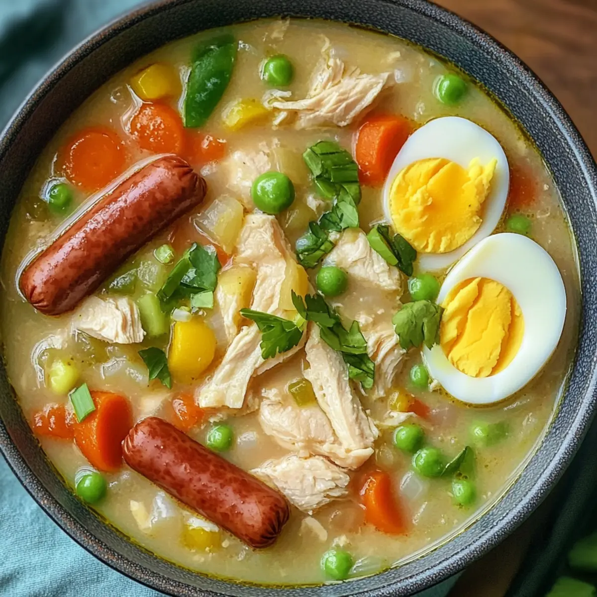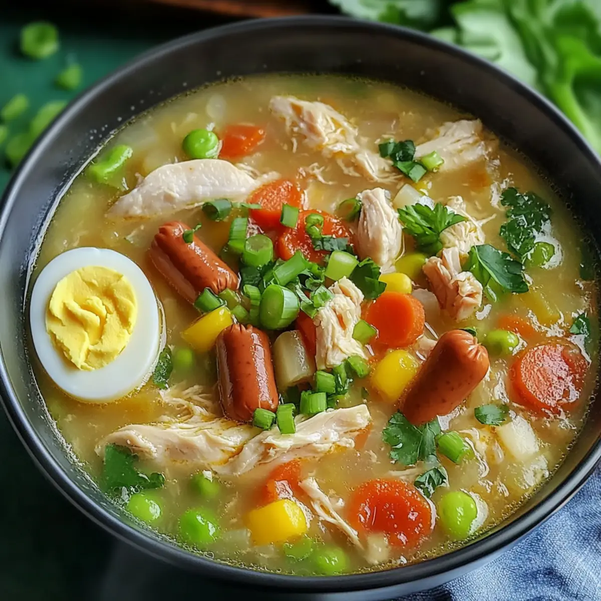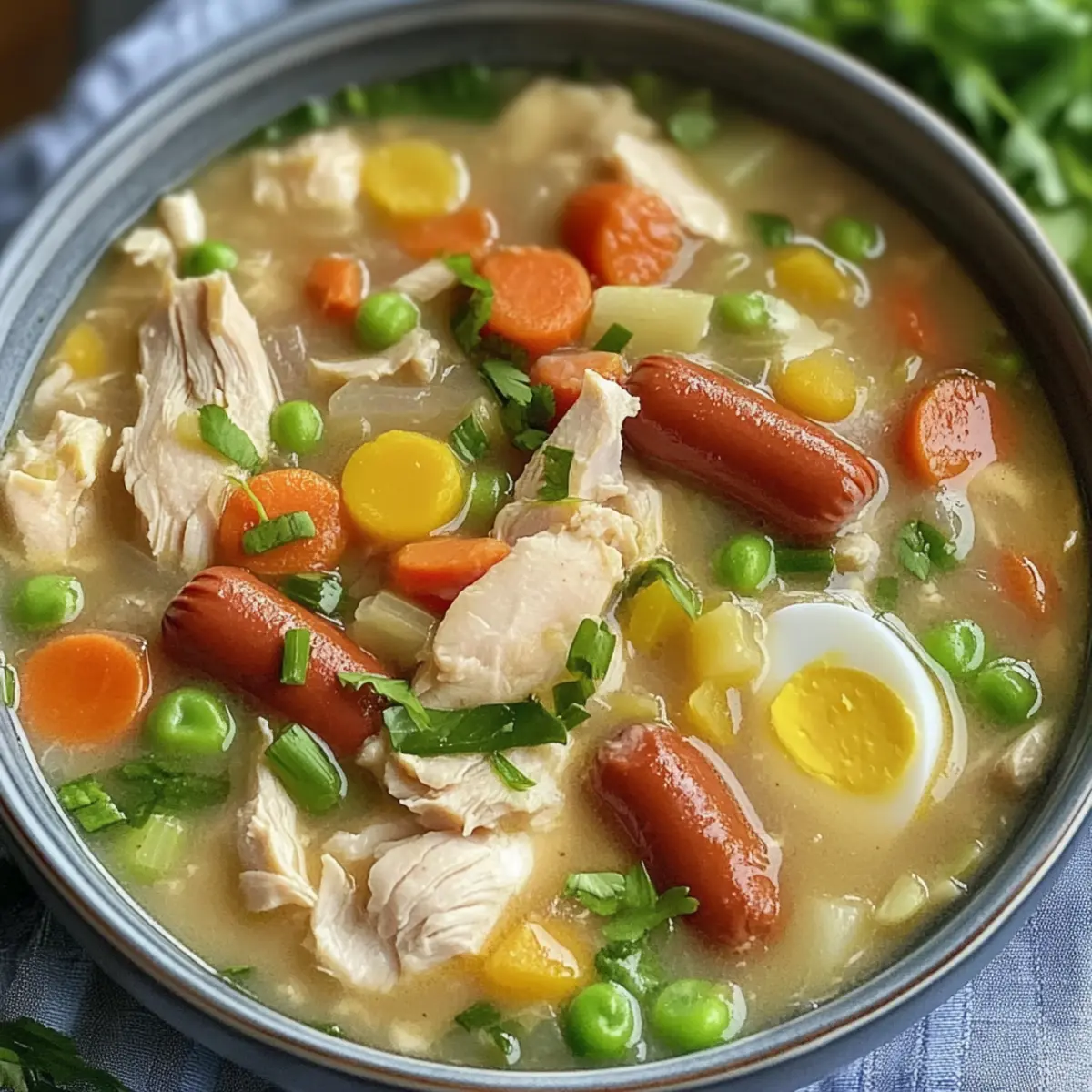 Als ich das erste Mal zu Hause Hühnchen-Sopas zubereitete, entspann sich eine kleine magische Situation in meiner Küche. Der verführerische Duft von brätendem Hähnchen vermischte sich mit dem Aroma von frischen Gemüse und Gewürzen, der perfekte Auftakt zu einem herzlichen Abendessen. Dieses komfortable Rezept vereint zarte Hähnchenteile mit herzhaften Hot Dogs in einer cremigen Brühe, die jeden Löffel zu einem Genuss macht. Das Beste daran? Es ist einfach zuzubereiten und eignet sich hervorragend für die ganze Familie. Egal, ob es sich um ein schnelles Wochendinner oder ein geselliges Beisammensein handelt, Hühnchen-Sopas wird garantiert alle begeistern. Bist du bereit, mit mir in die Welt dieser köstlichen, soul-satisfying Suppe einzutauchen?