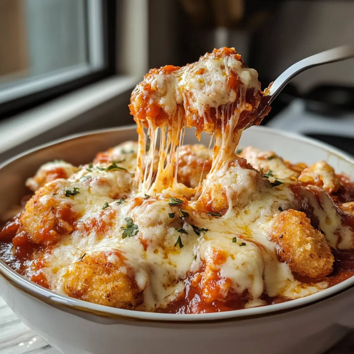 Ein köstliches Geheimnis aus meiner Familienküche hat mich neulich übermannt: Die Hüttenkäse Hähnchen Parm Schüssel ist nicht nur schnell zubereitet, sondern auch eine gesunde Variante eines zeitlosen Klassikers. In nur 30 bis 40 Minuten vereint diese Schüssel zarte Hähnchenstücke, cremigen Hüttenkäse und würzige Marinara unter einer schmelzenden Käsedecke – perfekt für hektische Wochentage! Das Beste daran? Sie liefert eine gehörige Portion Protein, die uns nach einem langen Tag satt und zufrieden macht, ohne das schlechte Gewissen einer typischen, schweren Pasta. Ich kann euch versichern, dass jeder Bissen euch ein warmes Gefühl von Zuhause schenken wird. Seid ihr bereit, eure nächste Mahlzeit auf ein neues Level zu heben? Warum ist diese Schüssel ein Must-Try? Einfachheit: Die Zubereitung ist schnell und erfordert keine komplizierten Kochtechniken – ideal für den stressigen Alltag. Reichhaltiger Geschmack: Die Kombination aus cremigem Hüttenkäse und würziger Marinara sorgt für ein Geschmacksfeuerwerk, das selbst anspruchsvolle Gaumen begeistert. Vielseitigkeit: Ihr könnt die Hähnchen Nuggets gegen gegrilltes Hähnchen tauschen oder verschiedene Marinara-Saucen ausprobieren, um den Geschmack anzupassen. Gesunde Wahl: Diese Schüssel liefert nicht nur viel Protein, sondern ist auch eine leichtere Option im Vergleich zu traditionellen Pasta-Gerichten. Wenn ihr mehr darüber erfahren möchtet, könnt ihr auch unsere schnellen und einfachen Rezeptideen entdecken. Perfekte Portionsgröße: Sie eignet sich hervorragend für eine schnelle Mahlzeit oder als Teil eures Meal Preps für die Woche. Hüttenkäse Hähnchen Parm Schüssel Zutaten Für die Basis Hüttenkäse – sorgt für die cremige Textur und ist eine großartige Proteinquelle; Vollfett für mehr Geschmack, fettarm ist ebenfalls möglich. Hähnchen Nuggets – der Hauptbestandteil; sicherstellen, dass sie luftgebraten werden, um knusprig zu bleiben. Achte auf die richtige Garzeit, um Trockenheit zu vermeiden. Marinara Sauce – bringt den charakteristischen würzigen Geschmack; Fertigprodukte sind für einen schnellen Genuss ideal. Für das Topping Mozzarella Käse – schmilzt wunderbar und verleiht der Schüssel einen köstlich-trockenen Abschluss; am Ende der Kochzeit hinzufügen, um Gummiigkeit zu vermeiden. Italienische Gewürze – geben der Mischung eine aromatische Note und passen perfekt zur Marinara. Knoblauchpulver – hebt den Geschmack hervor; kann nach persönlichem Geschmack angepasst werden. Diese Hüttenkäse Hähnchen Parm Schüssel ist nicht nur schnell zubereitet, sondern auch voller gesunder Zutaten, die eure Geschmacksknospen erfreuen werden! Schritt-für-Schritt-Anleitung für die Hüttenkäse Hähnchen Parm Schüssel Step 1: Hüttenkäse-Mischung zubereiten In einer mikrowellengeeigneten Schüssel Hüttenkäse, Marinara Sauce, Mozzarella, italienische Gewürze und Knoblauchpulver gut vermengen. Achte darauf, dass alles gleichmäßig verteilt ist, um optimale Aromen zu erzielen. Stelle die Schüssel dann in die Mikrowelle und erhitze die Mischung bei voller Leistung für 1 Minute. Rühre die Mischung nach 30 Sekunden um, um sicherzustellen, dass sie gleichmäßig warm wird. Step 2: Hähnchen vorbereiten Bereite währenddessen die Hähnchen Nuggets vor. Wenn du sie Luft frittiert hast, schneide sie in kleine Stücke, sodass sie gut in der Hüttenkäse Hähnchen Parm Schüssel verteilt werden können. Die knusprige Textur verleiht dem Gericht das nötige Extra. Achte darauf, die Nuggets nicht zu lange zu garen, um ihre Saftigkeit zu bewahren. Step 3: Hähnchen in die Mischung einarbeiten Nehme die Schüssel mit der Hüttenkäse-Mischung aus der Mikrowelle. Füge die geschnittenen Hähnchenstücke hinzu und rühre alles gut um, damit die Hähnchen Nuggets von der cremigen Sauce umhüllt sind. Stelle die Schüssel erneut in die Mikrowelle und erhitze sie für weitere 30 Sekunden, bis der Mozzarella schön geschmolzen ist und die ganze Mischung blubbert. Step 4: Anrichten und Servieren Sobald die Hüttenkäse Hähnchen Parm Schüssel fertig ist, nimm sie vorsichtig aus der Mikrowelle. Lass sie kurz abkühlen, bevor du sie servierst. Diese proteinreiche Schüssel ist perfekt für ein schnelles Abendessen und kann nach Belieben mit frischen Kräutern oder weiteren Gewürzen garniert werden. Genieß dein warmes und zufriedenstellendes Gericht! Lagerungstipps für Hüttenkäse Hähnchen Parm Schüssel Zimmertemperatur: Ideal für einen kurzen Zeitraum von bis zu 2 Stunden. Vermeide es, die Schüssel länger bei Raumtemperatur stehen zu lassen, um die Frische zu bewahren. Kühlschrank: Bewahre die Hüttenkäse Hähnchen Parm Schüssel in einem luftdichten Behälter im Kühlschrank auf. Sie bleibt bis zu 3 Tage genießbar und bleibt so frisch wie am ersten Tag. Gefrierfach: Für längere Lagerung können die Hähnchen Nuggets separat eingefroren werden. Diese halten bis zu 2 Monate im Gefrierschrank, während die gesamte Schüssel nicht empfohlen wird zu frosten, da die Textur leidet. Wiederehitzen: Erhitze die Schüssel in der Mikrowelle oder im Ofen, bis alles gut durchgewärmt ist. Achte darauf, sie in kurzen Intervallen zu erhitzen, um ein Überkochen zu vermeiden. Expertentipps für die Hüttenkäse Hähnchen Parm Schüssel Hähnchen nicht überkochen: Achte darauf, dass die Hähnchen Nuggets im Airfryer nicht zu lange gegart werden, um ihre Saftigkeit zu bewahren. Zimmertemperatur nutzen: Lass den Hüttenkäse vor der Kombination mit heißen Zutaten auf Zimmertemperatur kommen; das verhindert das Gerinnen in der Mischung. Würzen nicht vergessen: Achte darauf, den Hüttenkäse gut zu würzen, um Geschmacksverlust zu vermeiden. Die Hüttenkäse Hähnchen Parm Schüssel lebt von kräftigen Aromen. Aufbewahrungstipps: Wenn du Meal Prep machst, lagere die Einzelkomponenten separat, um Frische und Textur zu erhalten. Variiere die Gewürze: Experimentiere mit verschiedenen italienischen Gew