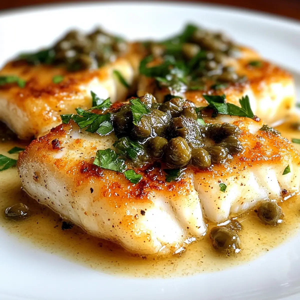 Geschmacksexplosion: Der Mix aus zarten Kabeljaufilets, spritziger Zitronensauce und salzigen Kapern bietet ein unvergleichliches Geschmackserlebnis.