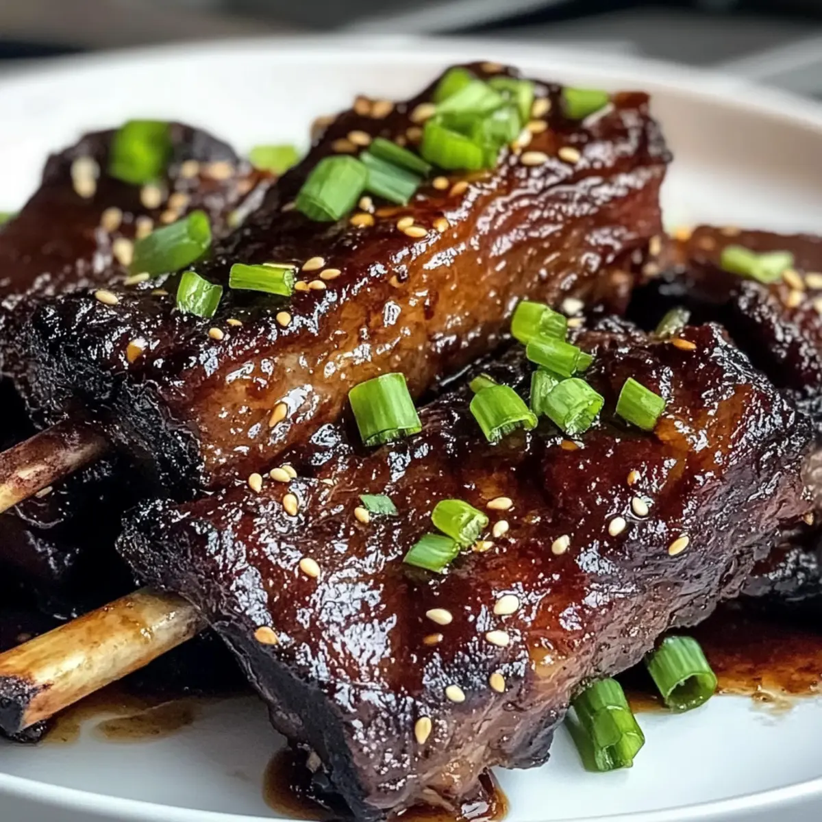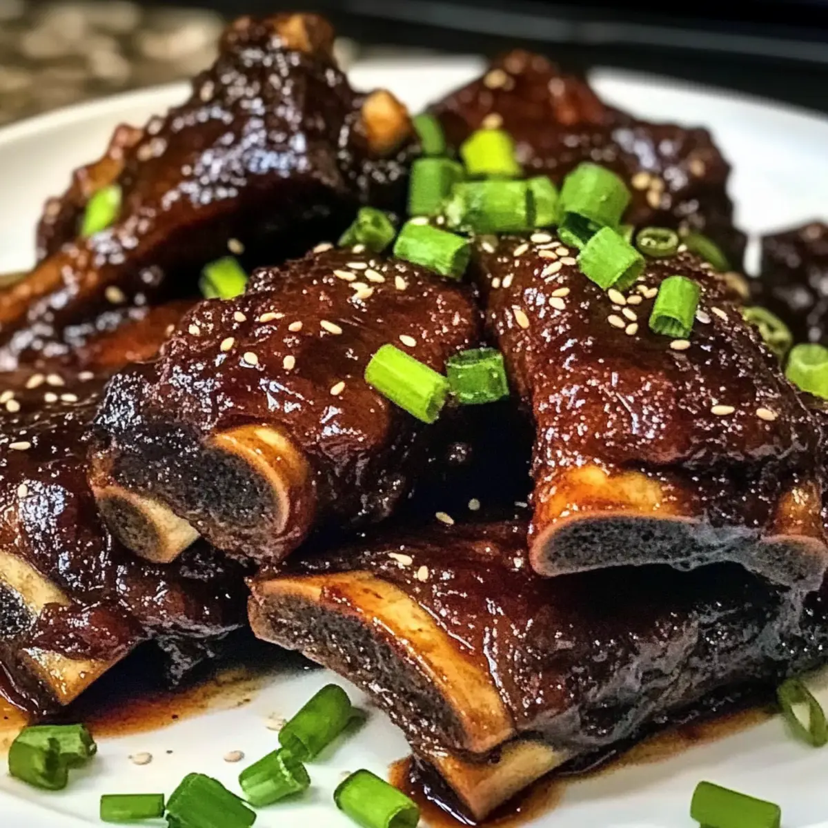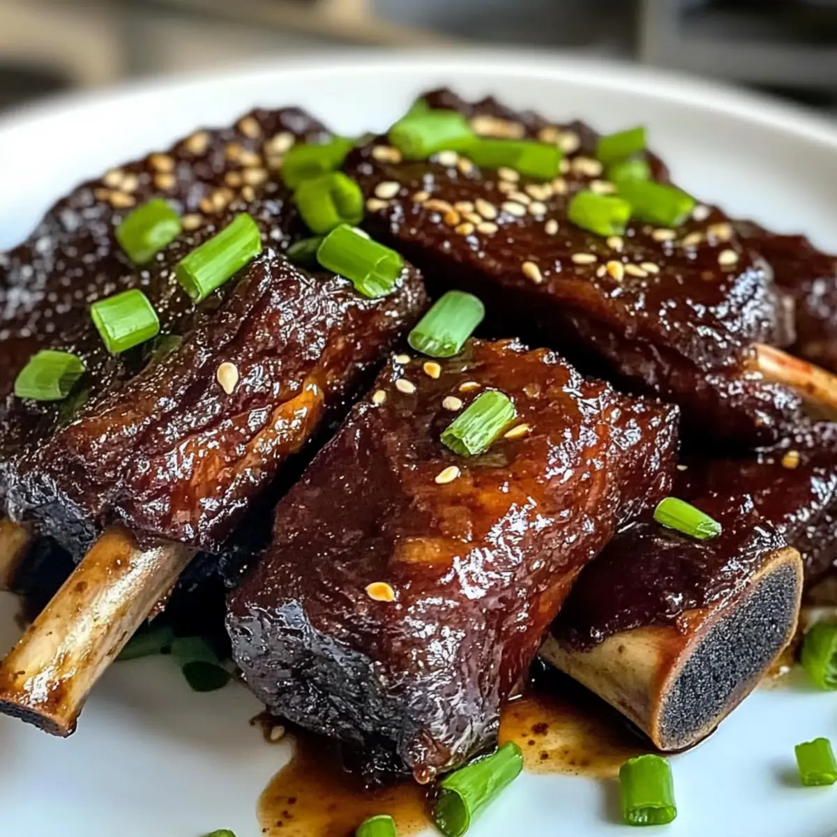 Eines der besten Dinge am Kochen ist die Möglichkeit, Gerichte zu kreieren, die den Alltag verschönern und den Gaumen verwöhnen. Heute lade ich euch ein, mit mir in die Welt der karamellisierten, langsam geschmorten asiatischen Rinderkurzrippen einzutauchen. Diese köstliche Speise vereint die Aromen von Sojasauce, Hoisin und einem Hauch von Ingwer, um ein zartes und saftiges Ergebnis zu erzeugen, das nicht nur sättigt, sondern auch beeindruckt. Perfekt für besondere Anlässe oder einfach zum Genießen an einem ruhigen Abend, wird dieser Genuss eure Freunde und Familie begeistern. Wer kann schon einem Gericht widerstehen, das so schmackhaft ist und sich ganz mühelos zubereiten lässt? Lasst uns entdecken, wie einfach es ist, diese Gaumenfreude zu zaubern! Warum lieben alle dieses Rezept? Geschmacksexplosion: Die Kombination aus Sojasauce und Hoisin sorgt für ein unvergleichliches Geschmackserlebnis, das süß, salzig und würzig zugleich ist. Tenderness: Die langsam geschmorten Rinderkurzrippen sind so zart, dass sie auf der Zunge zergehen – perfekt für besondere Anlässe oder einfach als Wohlfühlessen. Einfach und schnell: Mit wenigen, einfachen Schritten zaubert ihr dieses Gericht, ohne dass ihr ein Küchenprofi sein müsst. Variationsmöglichkeiten: Ob mit mehr Chili für die Schärfe oder verschiedenen Beilagen wie Geroestete Tomatensuppe Rezept, die Möglichkeiten sind endlos! Imposante Präsentation: Mit frischen Frühlingszwiebeln und Sesam garniert, sieht dieses Gericht nicht nur fantastisch aus, sondern verleiht jedem Dinner eine besondere Note. Karamellisierte langsam geschmorte asiatische Rinderkurzrippen Zutaten • Das Herzstück dieses Gerichts sind die qualitativ hochwertigen Zutaten. Für das Fleisch Rinderkurzrippchen – Die Hauptquelle für Reichtum und Geschmack; achte auf gut marmorierte Stücke für optimale Zartheit. Für die Marinade Sojasauce – Fügt Umami und Salzigkeit hinzu; du kannst auch eine reduzierte Natriumvariante verwenden. Brauner Zucker – Sorgt für Süße und unterstützt die Karamellisierung; eignet sich auch Kokosnusszucker als gesündere Option. Reisessig – Fügt Säure hinzu, um die Aromen auszugleichen; Apfelessig kann im Notfall verwendet werden. Hoisin-Sauce – Bringt zusätzliche Süße und Umami; mehr Sojasauce kann als Ersatz dienen. Ingwer (gehackt) – Verleiht eine frische Schärfe und aromatische Qualität; bei Bedarf auch pulverisierten Ingwer benutzen. Knoblauch (gehackt) – Verstärkt die herzhaften Aromen; Knoblauchpulver kann alternativ genutzt werden. Sesamöl – Fügt Nussigkeit und Duft hinzu; auch Olivenöl kann für einen leichteren Geschmack verwendet werden. Chilipaste (optional) – Bringt Würze; je nach Vorliebe anpassen oder weglassen für eine mildere Variante. Schwarzer Pfeffer – Für die Würze; frisch gemahlen wird empfohlen, um den Geschmack zu intensivieren. Für die Garnitur Frühlingszwiebeln – Für Frische und einen bunten Kontrast; chives sind ein guter Ersatz, wenn keine verfügbar sind. Sesamsamen – Fügen Crunch und ansprechende Optik hinzu; können nach Belieben weggelassen werden. Mit der Kombination dieser Zutaten bereitest du die Karamellisierten langsam geschmorten asiatischen Rinderkurzrippen ganz einfach und im Handumdrehen zu! Schritt-für-Schritt-Anleitung für Karamellisierte langsam geschmorte asiatische Rinderkurzrippen Step 1: Rindfleisch vorbereiten Spüle die Rinderkurzrippchen unter kaltem Wasser ab und tupfe sie mit einem Küchentuch trocken. Diese Vorbereitung ist wichtig, um überschüssige Feuchtigkeit zu entfernen, damit die Marinade besser haftet. Lege die Rippchen auf einen großen Teller oder in eine Schüssel. Step 2: Marinade herstellen Vermische in einer Schüssel die Sojasauce, den braunen Zucker, den Reisessig, die Hoisinsauce, den gehackten Ingwer, den gehackten Knoblauch, das Sesamöl, die Chilipaste und den schwarzen Pfeffer. Rühre alles gut um, bis sich der Zucker vollständig aufgelöst hat, und die Marinade eine homogene, köstliche Mischung ergibt. Step 3: Rindfleisch marinieren Lege die vorbereiteten Rinderkurzrippchen in die Marinade und wende sie gut, sodass sie komplett bedeckt sind. Die Rippchen sollten mindestens zwei Stunden im Kühlschrank mariniert werden, idealerweise über Nacht, damit die Aromen in das Fleisch einziehen und die Rinderkurzrippen besonders zart werden. Step 4: Ofen vorheizen Heize deinen Ofen auf 160°C (325°F) vor. Es ist wichtig, den Ofen rechtzeitig vorzubereiten, sodass er die richtige Temperatur erreicht, wenn die Rinderkurzrippchen nach dem Anbraten in den Ofen kommen. Dies gewährleistet eine gleichmäßige Garung. Step 5: Rindfleisch anbraten Erhitze eine große Pfanne bei mittlerer bis hoher Hitze und füge etwas Öl hinzu. Lege die marinierten Rinderkurzrippchen in die Pfanne und brate sie für etwa 3-4 Minuten auf jeder Seite an, bis sie schön gebräunt sind. Dieser Schritt verleiht dem Fleisch eine leckere, karamellisierte Kruste. Step 6: In den Bräter transferieren Nehme die seared Rinderkurzrippchen aus der Pfanne und lege sie in einen Bräter. Gieße die restliche Marinade gleichmäßig über das Fleisch, um es während des Garens mit Geschmack zu durchdringen und die Karamellisierung zu fördern. Step 7: Decken und langsam schmoren Bedecke den Bräter mit Alufolie und stelle ihn im vorgeheizten Ofen für 3-4 Stunden ein. Die Rinderkurzrippen sind fertig, wenn sie zart sind und sich leicht mit einer Gabel zerteilen lassen. Achte darauf, die Folie während des gesamten Garvorgangs zu lassen, um die Feuchtigkeit zu bewahren. Step 8: Karamellisieren Nehme die Alufolie in den letzten 30 Minuten des Garens ab, um eine schöne, karamellisierte Oberfläche auf den Rinderkurzrippchen zu erreichen. Die Hitze kann jetzt direkt wirken, um die leckeren Aromen zu intensivieren und die Oberfläche goldbraun zu machen. Step 9: Zartheit überprüfen Nach 3-4 Stunden Garzeit solltest du die Rinderkurzrippchen regelmä