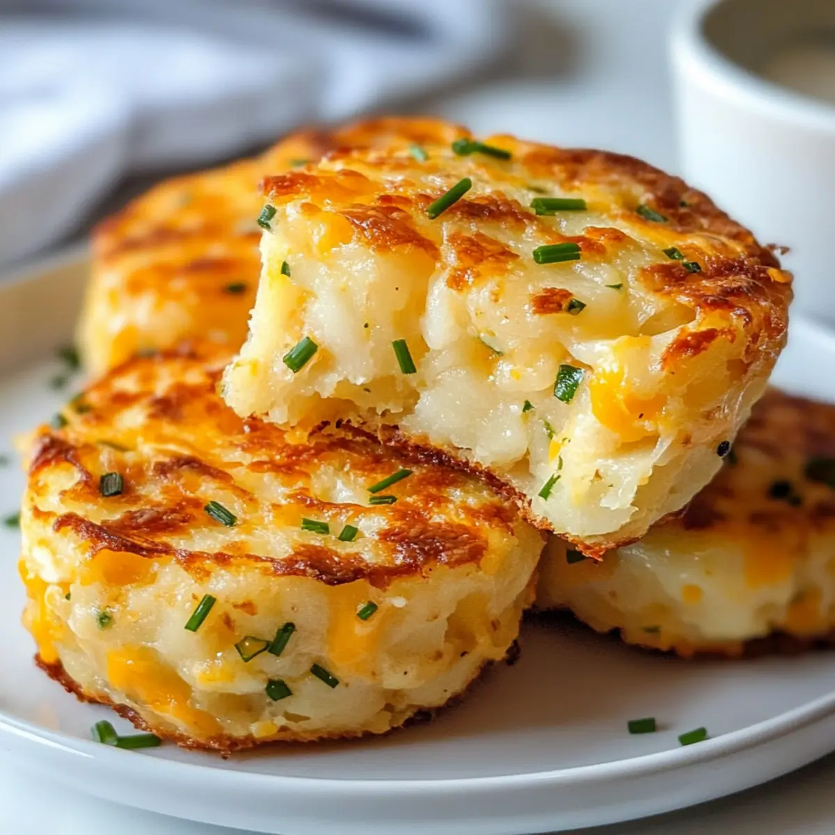 Wusstest du, dass du die Köstlichkeit der Starbucks Kartoffel-Cheddar-und-Schnittlauch-Aufläufe ganz einfach zu Hause nachmachen kannst? Diese herzhaften Aufläufe kombinieren fluffige Kartoffeln, würzigen Cheddar und frische Schnittlauch, perfekt gebacken für ein goldbraunes Finish. Sie sind nicht nur eine wahre Gaumenfreude, sondern auch unglaublich vielseitig – ideal zum Frühstück, für den Snack am Nachmittag oder als Teil deines Meal Preps. Mit ihrer knusprigen Außenschicht und einem cremig, käsigen Inneren sind diese kleinen Leckerbissen eine gemütliche Umarmung für deinen Gaumen. Hast du schon deine perfekten Dips im Kopf, um sie zu vervollständigen? Warum werden diese Aufläufe dein Favorit? Einfachheit, die begeistert: Die Zubereitung dieser Kartoffel-Cheddar-und-Schnittlauch-Aufläufe erfordert nur wenige Schritte, was sie ideal für jeden macht, egal ob du ein erfahrener Koch oder ein Küchenneuling bist. Köstlicher Geschmack: Die Kombination aus würzigem Cheddar und frischen Kräutern sorgt für ein Geschmackserlebnis, das dich einfach umhauen wird. Vielseitigkeit pur: Ob zum Frühstück, als Snack oder für dein Meal Prep, diese Bakes passen perfekt in jeden Tagesablauf. Gesund und glücklich: Du kannst sie ganz nach Belieben anpassen, mit pflanzlichem Käse und veganen Alternativen, ideal für jeden Ernährungsstil. Perfekte Konsistenz: Mit einer knusprigen Außenschicht und einem cremigen Inneren sind sie der optimale Genuss! Vielleicht kombinierst du sie mit einem erfrischenden Dip oder einer Beilage, um dein Essen zu vervollständigen. Wenn du auf der Suche nach weiteren köstlichen Rezepten bist, schau dir unsere Zucchini Spinat Einfach und Kuchen Rezept Gesund an! Kartoffel-Cheddar-und-Schnittlauch-Aufläufe Zutaten • Diese Zutatenliste schürt deine Vorfreude auf die Zubereitung der Kartoffel-Cheddar-und-Schnittlauch-Aufläufe! Für die Basis Geriebene Röstis – Sie liefern die perfekte Struktur; tauche sie vorher auf, um überschüssige Feuchtigkeit zu entfernen. Würziger Cheddar – Sorgt für den reichen Geschmack; verwende pflanzlichen Käse für eine vegane Variante. Frische Schnittlauch – Bietet einen milden Zwiebelgeschmack und bringt Frische; ersetze sie bei Bedarf durch Frühlingszwiebeln. Eier – Binden die Zutaten zusammen und sorgen für Feuchtigkeit; veganer Tipp: Nutze Aquafaba oder ein Leinsamen-Ei. Milch – Verbessert die Cremigkeit und Konsistenz; tausche sie gegen pflanzliche Milch für eine vegane Option. Schritt-für-Schritt-Anleitung für Kartoffel-Cheddar-und-Schnittlauch-Aufläufe Step 1: Röstis vorbereiten Tauche die geriebenen Röstis in kaltes Wasser, um überschüssige Feuchtigkeit zu entfernen. Lass sie für etwa 10 Minuten einweichen und danach gut abtropfen. Verteile die Röstis auf einem sauberen Küchentuch, um die restliche Feuchtigkeit zu entfernen. Dadurch wird sichergestellt, dass die Kartoffel-Cheddar-und-Schnittlauch-Aufläufe knusprig werden. Step 2: Mischung zusammenstellen Vermenge in einer großen Rührschüssel die Eier und die Milch und schlage sie gut durch, bis die Mischung cremig und leicht schaumig ist. Füge dann den würzigen Cheddar und den frisch gehackten Schnittlauch hinzu. Rühre die Zutaten gut um, bevor du die gut abgetropften Röstis vorsichtig unter die Mischung hebst. Step 3: Aufläufe formen Mit sauberen Händen forme kleine Patties oder Bites aus der Kartoffel-Cheddar-und-Schnittlauch-Mischung. Achte darauf, dass die Patty-Formen gleich groß sind, damit sie gleichmäßig backen. Platziere die geformten Patties auf einem Backblech, das vorher mit Backpapier ausgelegt ist, um ein Anhaften zu vermeiden. Step 4: Backen Heize den Ofen auf 200 °C vor und schiebe das Backblech mit den Aufläufen hinein. Backe die Kartoffel-Cheddar-und-Schnittlauch-Aufläufe etwa 25 Minuten lang, bis sie goldbraun und knusprig sind. Kontrolliere sie kurz vor Ende der Backzeit, um sicherzustellen, dass sie nicht zu dunkel werden. Step 5: Abkühlen und Servieren Nehme das Backblech aus dem Ofen und lasse die Aufläufe für 5 bis 10 Minuten abkühlen. Dies hilft, die Konsistenz zu festigen und das Aroma zu intensivieren. Serviere die Kartoffel-Cheddar-und-Schnittlauch-Aufläufe warm mit deinen Lieblingsdips oder Beilagen – sie sind ideal für jedes Frühstück oder als Snack! Was passt zu Kartoffel-Cheddar-und-Schnittlauch-Aufläufen? Genieße die perfekte Kombination mit einer Auswahl an Beilagen und Dips, die deinen Genussmoment mit diesen warmen Bakes abrunden. Sauerrahm: Die cremige, leicht säuerliche Note des Sauerrahms harmoniert perfekt mit den würzigen Aufläufen und sorgt für einen frischen Geschmack. Salsa: Mit ihrer fruchtigen Schärfe ist Salsa nicht nur ein großartiger Dip, sondern bringt auch eine aufregende Frische in jede Biss. Beilagensalat: Ein knackiger, frischer Salat aus Rucola, Gurken und Tomaten bietet einen perfekten Kontrast zu den knusprigen Aufläufen und ergänzt die Textur. Guacamole: Die cremige Avocado-Soße bringt nicht nur eine köstliche Reichhaltigkeit, sondern auch eine gesunde Variante zu deinem Snack oder Frühstück. Käsefondue: Tauche die Aufläufe in geschmolzenen Käse für ein dekadentes Geschmackserlebnis, das die Aromen toll zur Geltung bringt. Pesto: Ein frisches Basilikumpesto erhöht den Geschmack mit einer herben Kräuternote, die die Würze des Cheddars ergänzt. Mini-Wraps: Kombiniere die Aufläufe in einem Wrap mit frischem Gemüse und Aufstrichen für einen sättigenden Snack oder ein leichtes Mittagessen. Gewürzte Joghurtsoße: Mische griechischen Joghurt mit Kräutern und Gewürzen für eine köstliche und gesunde Dip-Option – eine wahre Geschmacksbereicherung. Fruchtige Smoothies: Erfrische deinen Genuss mit einem fruchtigen Smoothie, der einen süßen Kontrast zu den herzhaften Aufläufen bietet und gleichzeitig nährstoffreich ist. Expert Tips für Kartoffel-Cheddar-und-Schnittlauch-Aufläufe Röstis gut abtropfen: Achte darauf, dass die ger