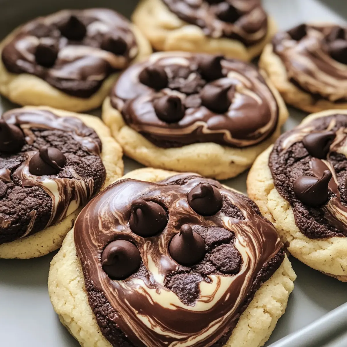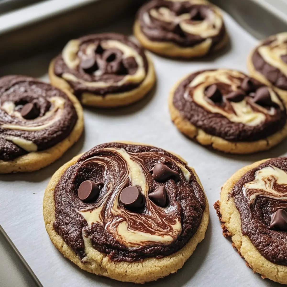 Die Kekse bei 175°C für 10–12 Minuten backen, bis die Ränder fest sind, aber die Mitte noch leicht weich aussieht. Die Kauwe Schokoladenstückchen Marmor Kekse sind perfekt, wenn sie an den Rändern goldbraun sind und in der Mitte noch leicht glänzend.