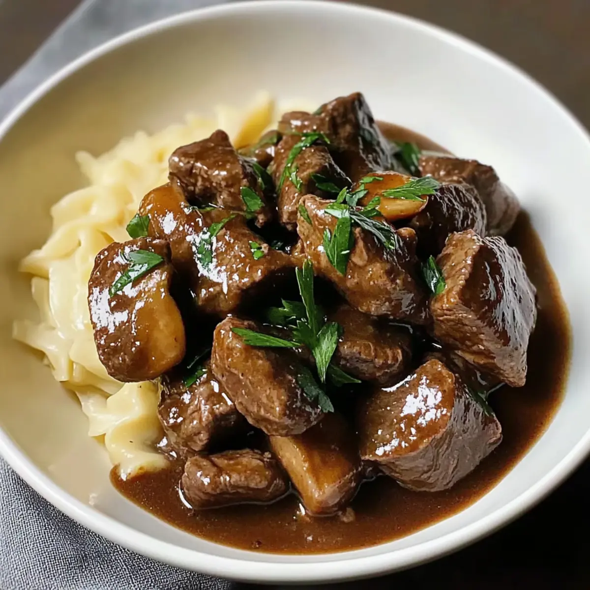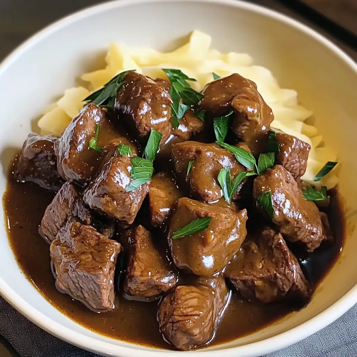 Wusstest du, dass ein Gericht mit nur einem einzigen Topf deine Woche von gewöhnlich auf außergewöhnlich verwandeln kann? Lassen Sie mich Ihnen die No Peek Beef Tips vorstellen – ein einfaches, aromatisches Gericht, das in einer Pfanne zubereitet wird und perfekt für hektische Abendessen oder entspannte Zusammenkünfte geeignet ist. Mit zarten Rindfleischstücken, karamellisierten Zwiebeln und erdigen Champignons, alles eingehüllt in eine glänzende, würzige Sauce, ist dies die ideale Lösung für alle, die eine schnelle, aber gehaltvolle Mahlzeit suchen. Und das Beste daran? Die minimalen Vorbereitungszeiten und die Verwendung gängiger Vorratsartikel machen es zum perfekten Rezept für jede Gelegenheit. Wer könnte da schon widerstehen? Bereit für ein köstliches Familienessen? Warum sind diese Rindfleisch Tipps so besonders? Einfachheit: Mit nur einem einzigen Topf zubereitet, ist dieses Gericht der Inbegriff von stressfreier Küche. Aromatische Mischung: Die Verbindung aus Zwiebeln, Knoblauch und Pilzen bringt eine wunderbare Tiefe und Geschmack mit sich, die Ihre Sinne verzaubern wird. Perfekte Konsistenz: Die glänzende Sauce umhüllt das zarte Rindfleisch und verwandelt es in ein wahres Geschmackserlebnis. Familienfreundlich: Egal, ob Sie das Gericht für die ganze Familie oder für Freunde zubereiten – jeder wird begeistert sein! Schnelle Zubereitung: Ideal für hektische Abende, wo Sie ohne viel Aufwand ein unglaublich leckeres Essen zaubern möchten. Für weitere inspirierende Rezepte, schauen Sie sich auch unsere Linsensuppe Mit Zitrone an, die perfekt auf kalte Tage abgestimmt ist oder entdecken Sie unseren Buttered Noodles, um die Sauce wunderbar aufzunehmen! Keine Spickelei Rindfleisch Zutaten • Diese Zutaten sorgen für ein unvergleichliches Geschmackserlebnis! Für das Gemüse Zwiebel – sorgt beim Karamellisieren für eine süße und tiefgründige Aromenbasis. Knoblauch – frisch und gehackt, verleiht dem Gericht eine aromatische Intensität. Cremini Champignons – bringen erdige Noten mit; können bei Bedarf durch weiße Champignons ersetzt werden. Für das Fleisch Rindfleisch-Sirloin Tipps – zarte Stücke, die für Geschmack und Textur sorgen; auch Rinderbraten kann hier als Ersatz dienen. Für die Sauce Rinderbrühe – bildet eine geschmackvolle Basis; kann hausgemacht oder in geringer Natriumvariante verwendet werden. Sojasauce/Tamari – fügt köstlichen Umami-Geschmack hinzu; glutenfreie Tamari-Option für spezielle Diäten verfügbar. Worcestershire-Sauce – verstärkt die Reichhaltigkeit des Gerichts. Räucherpaprika – bringt eine subtile Rauchnote; reguläre Paprika kann ebenfalls verwendet werden, wenn nötig. Tomatenmark – verleiht der Sauce zusätzliche Tiefe und eine leichte Süße. Maisstärke – für die Verdickung der Sauce; kann mit Pfeilwurzpulver für glutenfreie Zubereitungen ersetzt werden. Für das Finish Frische Petersilie – zum Garnieren, bringt visuelle Frische und zusätzlichen Geschmack. Mit diesen Zutaten zaubern Sie das perfekte “Keine Spickelei Rindfleisch” – ein einfaches, aromatisches Slow Cooker Gericht, das alle begeistern wird! Schritt-für-Schritt-Anleitung für Keine Spickelei Rindfleisch Step 1: Fleisch vorbereiten Das Rindfleisch in Stücke schneiden und gut trocken tupfen. Anschließend mit Salz und Pfeffer kräftig würzen. Diese Vorbereitung sorgt dafür, dass die Rindfleischstücke beim Anbraten schön bräunen und Geschmack entfalten. Step 2: Rindfleisch anbraten Erhitzen Sie in einer großen Pfanne einen Esslöffel Olivenöl bei mittlerer bis hoher Hitze. Fügen Sie das gewürzte Rindfleisch in Portionen hinzu und braten Sie es 2-3 Minuten pro Seite, bis es gut gebräunt ist, aber noch nicht durchgegart. Nehmen Sie das Fleisch anschließend aus der Pfanne und stellen Sie es beiseite. Step 3: Zwiebeln kochen Reduzieren Sie die Hitze auf mittlere Stufe und geben Sie die geschnittenen Zwiebeln in die Pfanne. Lassen Sie sie etwa 5 Minuten kochen, bis sie weich und leicht durchscheinend sind. Die karamellisierten Zwiebeln bilden die aromatische Basis für die No Peek Beef Tips. Step 4: Aromatische Zutaten hinzufügen Fügen Sie den gehackten Knoblauch und die geschnittenen Champignons zu den Zwiebeln hinzu. Braten Sie alles bei mittlerer Hitze an, bis die Champignons ihre Flüssigkeit abgeben und etwas bräunlich werden, was etwa 4-5 Minuten dauert. Die Aromen vereinen sich und bereiten den perfekten Grundgeschmack vor. Step 5: Zutaten kombinieren Geben Sie das angebratene Rindfleisch zurück in die Pfanne und rühren Sie Paprika, getrockneten Thymian und das Tomatenmark unter. Kochen Sie alles für etwa 2 Minuten, damit sich die Gewürze gut vermischen und das Fleisch alle Aromen aufnehmen kann. Step 6: Sauce erstellen Gießen Sie die Rinderbrühe, Sojasauce und Worcestershire-Sauce in die Pfanne. Kratzen Sie den Boden der Pfanne ab, um die leckeren Röstaromen zu lösen, und bringen Sie die Mischung zum Kochen. Lassen Sie sie dann bei niedriger Hitze 15 Minuten köcheln, damit die Aromen gut durchziehen können. Step 7: Sauce eindicken Wenn die Sauce die richtige Konsistenz erreicht hat, können Sie die Maisstärke mit etwas Wasser vermischen und hinzufügen. Rühren Sie die Mischung gut ein und kochen Sie sie 1-2 Minuten weiter, bis die Sauce dick wird und glänzend aussieht. Step 8: Servieren Überprüfen Sie die Gewürze und passen Sie sie nach Geschmack an. Servieren Sie die No Peek Beef Tips heiß, garniert mit frischer Petersilie. Dieses Gericht passt wunderbar zu butterigen Nudeln oder cremigem Polenta und sorgt für ein rundum köstliches Erlebnis! Lagerungstipps für Keine Spickelei Rindfleisch Raumtemperatur:: Dieses Gericht sollte nicht länger als 2 Stunden bei Raumtemperatur gelagert werden, um die Lebensmittelsicherheit zu gewährleisten. Kühlschrank:: Im Kühlschrank aufbewahrt, bleibt das No Peek Beef bis zu 3 Tage frisch. Verwenden Sie einen luftdichten Behälter, um die Aromen 
