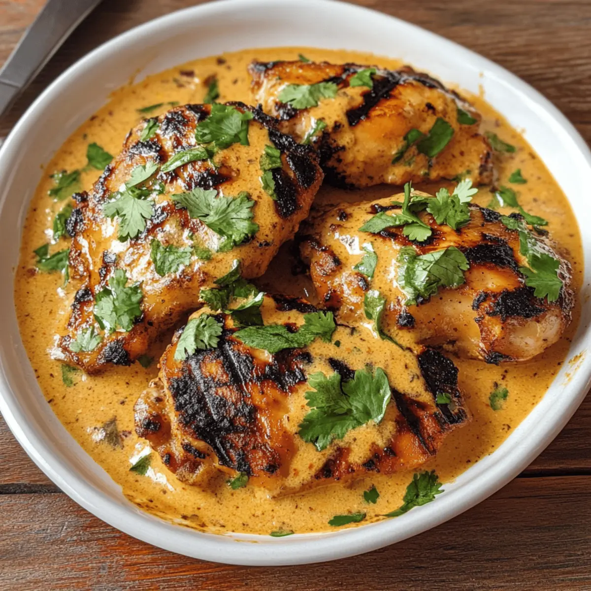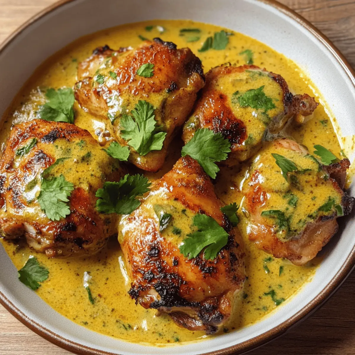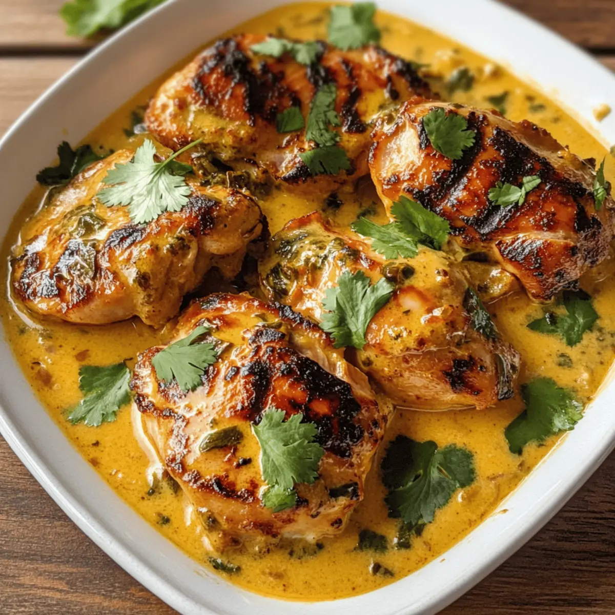 Das Geräusch von Grillen im Garten, während die Sonne langsam untergeht, ist für mich der perfekte Aufhänger für ein köstliches Abendessen. Heute lade ich euch ein, mit mir die leuchtenden Aromen der kenianischen Küche zu entdecken, denn ich präsentiere euch Kuku Paka – ein Grillgericht, das zart mariniertes Hähnchen in einer luxuriösen Kokosnusssoße vereint. Diese authentische Rezeptur ist nicht nur ein echter Genuss für die Sinne, sondern auch ein unkompliziertes Gericht, das sich ideal für gesellige Abende eignet. Die Kombination aus rauchigem Hähnchen und cremiger Soße verleiht jedem Bissen ein Gefühl von Abenteuer, ohne in stundenlanger Vorbereitung zu versinken. Seid ihr bereit, euren Grill anzufeuern und in den Genuss dieses schmackhaften Gerichts zu kommen? Warum ist Kuku Paka so besonders? Einzigartig im Geschmack: Diese köstliche Kombination aus mariniertem Hähnchen und cremiger Kokosnusssoße verführt mit jedem Bissen. Einfach zuzubereiten: Die Schritte sind unkompliziert, ideal für alle, die neue Rezepte ausprobieren möchten. Perfekt für gesellige Abende: Kuku Paka bringt Familie und Freunde zusammen und sorgt für ein himmlisches Essen, das begeistert. Vielfalt der Aromen: Die spezielle Gewürzmischung verleiht dem Gericht einen authentischen kenianischen Charakter. Gesunde Wahl: Mit magerem Hähnchen und nahrhaftem Kokosmilch ist es eine ausgewogene Mahlzeit, die dein Gewissen beruhigt. Entdecke auch, wie du dein Kuku Paka wunderbar mit reichem Reis oder Ugali kombinierst! Kuku Paka Zutaten Für das Hähnchen Hähnchenschenkel – Die Hauptproteinquelle, die zart bleibt und viel Geschmack bietet. Du kannst auch Hähnchenbrust oder festes weißes Fischfilet (z. B. Heilbutt) verwenden. Zitronensaft – Für einen spritzigen, erfrischenden Geschmack; frisch gepresst ist am besten. Öl – Wird für die Marinade und beim Kochen verwendet; du kannst jede Art von Kochöl verwenden. Salz & Pfeffer – Grundlegende Gewürze, um den Geschmack zu verstärken. Für die Soße Zwiebel – Die Geschmacksbasis der Soße; wichtig für die Tiefenaromen. Knoblauch – Aromatische Zutat, die den Geschmack intensiviert; frisch, gepresst oder gerieben verwenden. Grüne Chili (optional) – Für die Schärfe; passe die Menge je nach Vorliebe an. Tomate – Sorgt für Textur und Süße; frisch ist ideal für den besten Geschmack. Kokosmilch (14-15 oz) – Die cremige Basis der Soße, die den typischen Charakter von Kuku Paka ausmacht; wähle die fettreiche Variante für mehr Geschmack. Kuku Paka Gewürzmischung – Enthält Orange, Ingwer, Kurkuma, Salz, Anardana, Amchur, Kreuzkümmel, schwarze Pfefferkörner, Chilis, Asafoetida, Thymian und Minze; verleiht dem Gericht sein einzigartiges Aroma. Entdecke, wie diese Zutaten harmonisch zusammenkommen, und koche ein authentisches Kuku Paka, das den Gaumen verführt! Step-by-Step Instructions for Kenianisches Kuku Paka Step 1: Hähnchen marinieren In einem großen Behälter die Kuku Paka Gewürzmischung mit 1 Esslöffel Zitronensaft und 2 Esslöffeln Öl vermengen. Die Hähnchenschenkel mit Salz bestreuen und gründlich in der Marinade wälzen. Den Behälter abdecken und das Hähnchen mindestens 1-2 Stunden im Kühlschrank marinieren, damit die Aromen gut durchziehen. Step 2: Kokosmischung vorbereiten Nehmt das marinierte Hähnchen aus dem Kühlschrank und gebt die Kokosmilch in die Marinade. Gut umrühren, damit sich die Aromen verbinden. Stellt diese Mischung beiseite, während ihr mit dem Grill oder der Grillpfanne beschäftigt seid, um die perfekten gegrillten Hähnchenschenkel zu kreieren. Step 3: Hähnchen grillen Heizt den Grill auf mittelhohe Temperatur vor. Das marinierte Hähnchen auf den Grill legen und jedes Stück für ca. 10-15 Minuten grillen. Dreht die Stücke regelmäßig, bis sie rundherum schön gebräunt sind und eine innere Temperatur von 75 °C erreicht haben. Dadurch wird das Hähnchen saftig und erhält eine leckere Grillnote. Step 4: Grundzubereitung kochen In einem großen Topf 2 Esslöffel Öl erhitzen. Die gehackten Zwiebeln hinzufügen und unter ständigem Rühren goldbraun braten. Nach etwa 5 Minuten den gehackten Knoblauch und die optionalen grünen Chilis dazugeben; weitere 2 Minuten braten. Dann die gewürfelte Tomate hinzufügen und alles gut vermengen, bis die Mischung eine pasteartige Konsistenz erreicht. Step 5: Hähnchen und Soße kombinieren Das gegrillte Hähnchen in den Topf geben und die vorbereitete Kokosmischung dazu gießen. Alles gut umrühren, um das Hähnchen gleichmäßig mit der Soße zu umhüllen. Mit Salz und Pfeffer würzen, dann den Topf abdecken und bei mittlerer bis niedriger Hitze 20-30 Minuten köcheln lassen, bis die Soße eindickt und das Hähnchen zart ist. Step 6: Servieren Das köstliche Kenianische Kuku Paka in einer Schüssel anrichten und vor dem Servieren mit frischem Zitronensaft beträufeln. Diese zusätzliche Säure hebt die Aromen und macht das Gericht noch schmackhafter. Serviert das Kuku Paka am besten mit dampfendem Reis oder Ugali und genießt dieses aromatische Gericht in Gesellschaft! Meal Prep für Kenianisches Kuku Paka Kenianisches Kuku Paka ist perfekt für die Vorbereitung, besonders für vielbeschäftigte Kochbegeisterte! Ihr könnt das Hähnchen bis zu 24 Stunden im Voraus marinieren, indem ihr die Gewürzmischung, Zitronensaft und Öl in einer Schüssel kombiniert und das Hähnchen darin einlegt – dadurch bleibt das Fleisch zart und aromatisch. Zusätzlich könnt ihr die Kokosmilch direkt in die Marinade mischen, um die Aromen zu intensivieren. Wenn es Zeit ist zu servieren, grillt das marinierte Hähnchen einfach, bis es schön gebräunt ist, und kombiniert es dann mit der vorbereiteten Soße. Um die Qualität zu bewahren, lagert das marinierte Hähnchen im Kühlschrank und achtet darauf, es in einem luftdichten Behälter aufzubewahren, damit es frisch bleibt. Genießt den Zeitgewinn und esst einfach was leckeres! Was passt gut zu Kenianisch