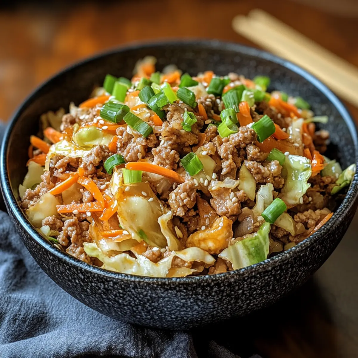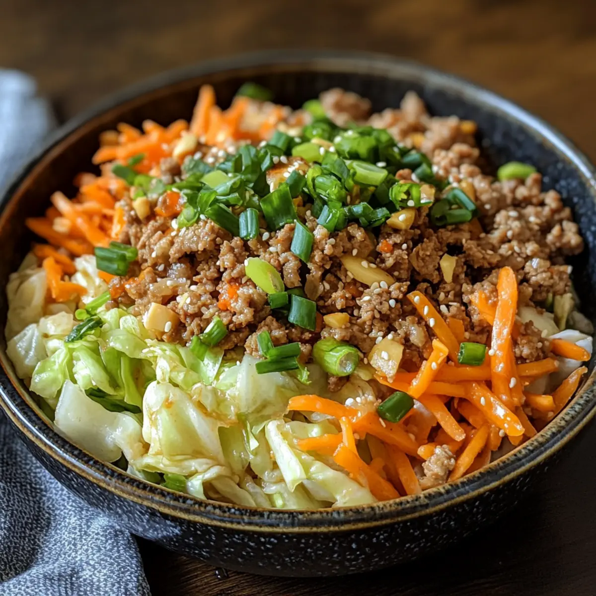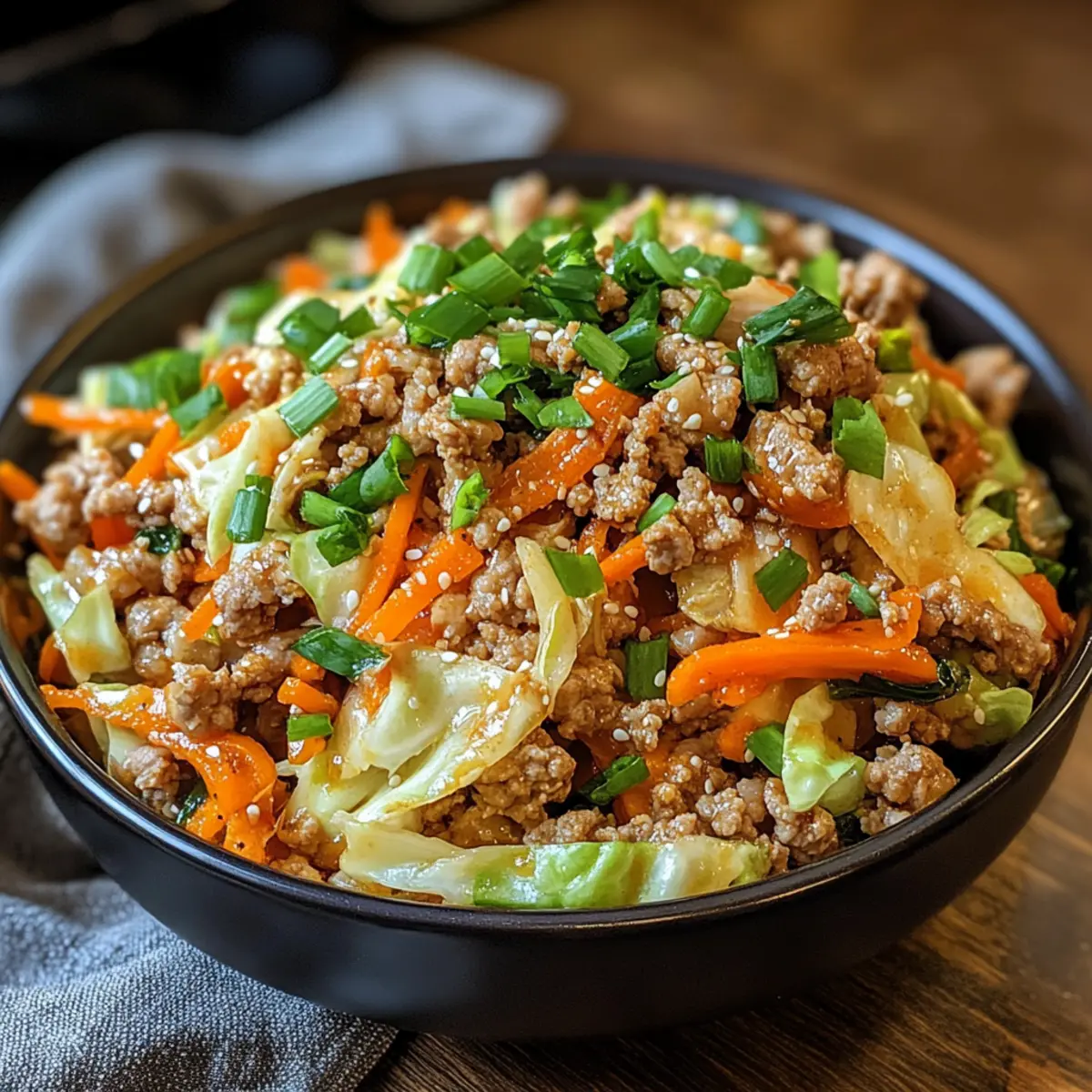 Es war einer dieser hektischen Abende, an denen ich mich fragte, was ich schnell zubereiten könnte, ohne dabei auf Geschmack zu verzichten. Dann kam mir die Idee für meine Keto Eierrolle in einer Schüssel – ein allzeit beliebtes Rezept, das die klassischen Aromen eines Egg Rolls in eine leichte, kohlenhydratarme Variante verwandelt. Dieses Gericht ist nicht nur blitzschnell in nur 30 Minuten zubereitet, sondern bietet auch eine köstliche, sättigende Option, die perfekt für hektische Wochentage oder als Meal-Prep-Gemüse ist. Mit knackigem Gemüse und würzigem Fleisch wird es jeden begeistern, der die Vorzüge hausgemachter Küche schätzt. Bereit für eine simples, aber geschmackvolles Abenteuer, das das Verlangen nach Fast Food vergessen lässt? Lass uns gemeinsam kochen! Warum ist dieses Rezept so besonders? Einfachheit: Die Zubereitung ist unkompliziert und benötigt nur wenige grundlegende Kochfähigkeiten, was es ideal für alle macht, die schnell ein köstliches Gericht auf den Tisch bringen möchten. Vielseitigkeit: Du kannst das Rezept mit verschiedenen Gemüsesorten oder Proteinen anpassen, z. B. mit Tofu oder Garnelen, um deinen persönlichen Vorlieben gerecht zu werden. Sättigender Genuss: Mit knackigem Gemüse und würzigem Fleisch bietet die Keto Eierrolle in einer Schüssel ein reichhaltiges Geschmackserlebnis, das dein Verlangen nach aufwendigen Gerichten stillt. Gesund und Lecker: Es kombiniert gesunde, frische Zutaten, die nicht nur gut schmecken, sondern auch gut für dich sind – perfekt für eine ausgewogene Ernährung! Schnell zubereitet: In nur 30 Minuten hast du ein vollständiges Gericht zubereitet, das ideal für hektische Wochentage ist, sodass du mehr Zeit für die Dinge hast, die dir wirklich wichtig sind. Entdecke auch diese großartigen Meal-Prep-Ideen, um dein Kochen noch einfacher zu gestalten! Keto Eierrolle in einer Schüssel Zutaten • For the Meat Gemischtes Hackfleisch – Ein proteinreicher Hauptbestandteil; ersetzbar durch Hähnchen- oder Rinderhack je nach Vorliebe. • For the Vegetables Grüner Kohl – Für einen knackigen Biss und Volumen; vorher shreddern. Julienned Karotten – Fügen Süße und Farbe hinzu; einfach raspeln oder in Streifen schneiden. Knoblauch – Intensiviert den Geschmack; fein hacken für eine bessere Verteilung. Ingwer – Bringt Wärme und Gewürz; ebenfalls fein hacken. • For the Sauce Sojasauce – Liefert einen umami Geschmack; verwende Tamari für glutenfrei. Sesamöl – Für einen nussigen Geschmack; Avocadoöl ist eine gute Alternative. Salz & Pfeffer – Zur Geschmacksoptimierung. Rote Paprikaflocken – Für eine optionale Schärfe. • For the Garnish Frühlingszwiebeln – Frische und Garnitur; am Ende hacken und hinzufügen. Diese Keto Eierrolle in einer Schüssel wird mit frischen Zutaten zubereitet, die nicht nur köstlich sind, sondern auch alle deine Bedürfnisse für eine gesunde Mahlzeit abdecken. Schritt-für-Schritt-Anleitung für Keto Eierrolle in einer Schüssel Step 1: Vorbereitung der Zutaten Zuerst bereitest du alle frischen Zutaten vor, um einen reibungslosen Kochprozess zu gewährleisten. Shredde den grünen Kohl, raspel die Karotten und hacke den Knoblauch sowie den Ingwer fein. Dies dauert etwa 10 Minuten und sorgt dafür, dass du alles zur Hand hast, wenn es ans Kochen geht. Step 2: Hackfleisch anbraten Erhitze eine große Pfanne bei mittelhoher Hitze und füge das gemischte Hackfleisch hinzu. Brich das Fleisch mit einem Holzlöffel auf und brate es für 5-7 Minuten an, bis es gleichmäßig braun ist. Achte darauf, überschüssiges Fett abzugießen, um die Konsistenz der Keto Eierrolle in einer Schüssel zu optimieren. Step 3: Aromatische Zutaten hinzufügen Füge nun den fein gehackten Knoblauch und Ingwer zum Fleisch in der Pfanne hinzu. Rühre alles gut um und lasse es für 1-2 Minuten kochen, bis sich die Aromen entfalten und der Geruch köstlich wird. Diese Schritte verstärken den Geschmack deines Gerichts erheblich. Step 4: Gemüse und Sauce kombinieren Füge den shredded Kohl, die Karotten, Sojasauce und Sesamöl in die Pfanne hinzu. Mische alle Zutaten gründlich und koche sie weitere 5-7 Minuten. Du solltest sehen, dass das Gemüse weich, aber noch knackig ist, was die perfekte Textur für deine Keto Eierrolle in einer Schüssel schafft. Step 5: Würzen und abschmecken Jetzt ist es Zeit, deine Mischung zu würzen. Füge Salz, Pfeffer und rote Paprikaflocken nach Geschmack hinzu. Rühre alles gut um und schmecke es ab, um sicherzustellen, dass die Aromen harmonisch sind und deinem persönlichen Geschmack entsprechen. Step 6: Garnierung und Servieren Tossiere zum Schluss die gehackten Frühlingszwiebeln in die Pfanne. Serviere das Gericht sofort und garniere es nach Belieben mit gerösteten Sesamsamen oder Sriracha-Mayonnaise. Die schöne Farbpalette und die aromatischen Düfte machen diese Keto Eierrolle in einer Schüssel zu einer einladenden Mahlzeit! Variationen zur Keto Eierrolle in einer Schüssel Lass deiner Kreativität freien Lauf und passe das Rezept nach deinem Geschmack an! Vegetarisch: Ersetze das Hackfleisch durch Tofu oder Tempeh für eine schmackhafte, pflanzenbasierte Option. Tofu nimmt die Aromen wunderbar auf und bietet eine herzliche Konsistenz. Zusätzliche Gewürze: Füge einen Schuss Sojasauce oder etwas Hoisin-Sauce für mehr Umami hinzu. Diese Kombination verleiht dem Gericht eine neue Geschmacksdimension, die du lieben wirst. Scharf: Integriere frische Chilis oder mehr rote Paprikaflocken, um ordentlich Feuer in die Pfanne zu bringen. Der Kick der Schärfe kann deinen Abend aufpeppen und dich richtig durchwärmen. Mehr Gemüse: Experimentiere mit Brokkoli, Paprika oder Zucchini für zusätzlichen Crunch und Farbe. Diese Gemüsesorten bieten nicht nur Nährstoffe, sondern bringen auch Abwechslung auf den Tisch. Original-Meinung: Ein wenig Miso-Paste kann dem Gericht eine tiefere, taiwanesische Note verleihen. Miso ist oft ein Überraschungsstar