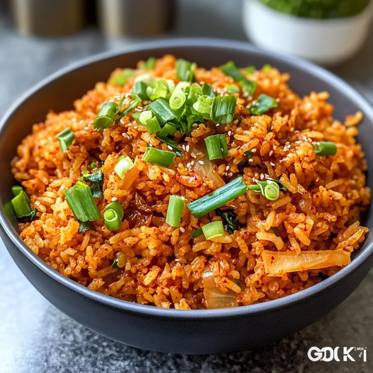 • Zusätzliche Toppings: Experimentiere mit verschiedenen Garnituren wie geröstetem Sesam oder frischen Kräutern, um deinem Kimchi gebratenen Reis eine individuelle Note zu verleihen.