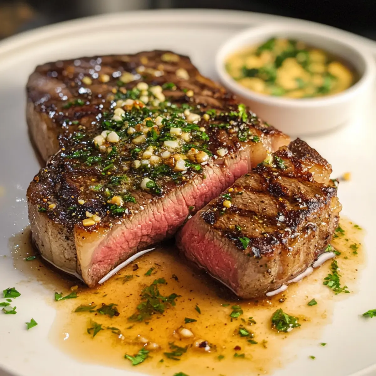 • Kräuter-Upgrade: Ergänze frische Kräuter wie Thymian oder Rosmarin zur Knoblauchbuttersauce. So erhält das Steak ein noch aromatischeres Profil.