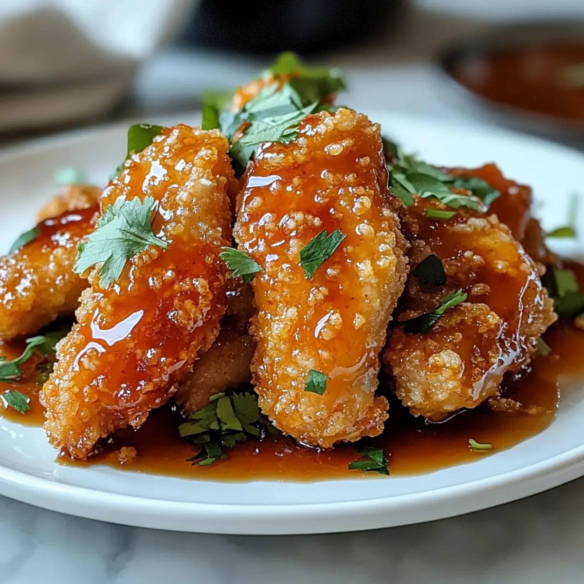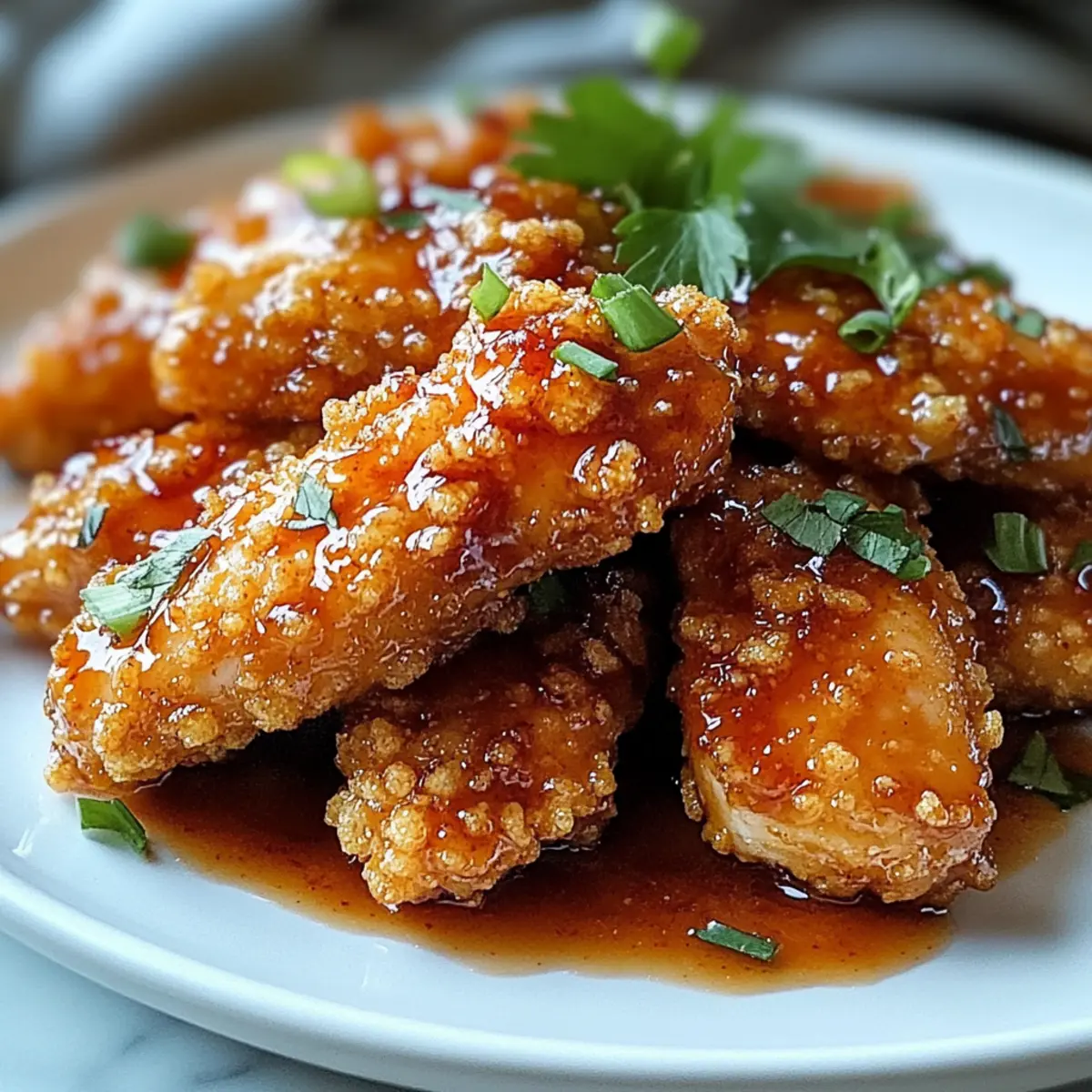 Die Verlockung von frisch gebackenem Hühnchen ist kaum zu widerstehen! Bei meinem Rezept für Knusprig Gebackenes Heißes Honighähnchen vereinen sich ein knuspriger Cornflake-Belag und eine süße, scharfe Honigsauce zu einem wahrhaft köstlichen Erlebnis. Dieses Gericht eignet sich nicht nur perfekt für gesellige Abende, sondern lässt sich auch im Handumdrehen zubereiten, was es zu einer idealen Lösung für hektische Wochentage macht. Und das Beste daran? Es gibt zahlreiche Anpassungsmöglichkeiten, darunter glutenfreie und vegane Varianten sowie verschiedene Schärfegrade, sodass jeder auf seine Kosten kommt. Bereit, den Geschmackskick zu entdecken? Lass uns gemeinsam in die Zubereitung eintauchen! Warum wird dir dieses Rezept gefallen? Einzigartige Geschmackskombination: Die Mischung aus süßer Honigsauce und würziger Schärfe macht jedes Stück zu einem Geschmackserlebnis. Köstliche Textur: Das knusprige Cornflake-Brett sorgt für einen wunderbaren Crunch, während das Hähnchen saftig bleibt. Vielseitig und anpassbar: Egal ob du glutenfrei oder vegan essen möchtest, es gibt Anpassungsmöglichkeiten für jeden Geschmack! Schnell und einfach: In weniger als 30 Minuten fertig – perfekt für stressige Wochentage. Aufläufer für jede Gelegenheit: Dieses Gericht begeistert garantiert Familie und Freunde, egal ob beim Abendessen oder bei einem Grillfest. Wenn du nach weiteren großartigen Rezepten suchst, die deine Gäste beeindrucken werden, schau dir auch unsere Angebote für Honig Knoblauch Garnelen oder Knoblauch Butter Rinderfilet an! Knusprig Gebackenes Heißes Honighähnchen Zutaten • Für das Hähnchen Hähnchenbrust – Eine wichtige Eiweißquelle, die beim Kochen einen saftigen Innenraum bietet. Substitution: Verwende Hähnchenschenkel für eine saftigere Variante. Salz – Verstärkt den Geschmack und sollte frisch gemahlen sein für das beste Aroma. Schwarzer Pfeffer – Fügt der Geschmacksprofil Tiefe hinzu; frisch gemahlen ist vorzuziehen. Antihaft-Kochspray – Verhindert das Ankleben beim Backen; leichtes Öl kann substituiert werden. • Für die Panade Mehl – Essentiell für die Panade; Mandelmehl ist eine glutenfreie Option. Hellbrauner Zucker – Fügt der Panade Süße hinzu; Kokosblütenzucker dient als eine Alternative mit niedrigem glykämischen Index. Eier – Binden die Panade zusammen; kann mit Leinsamen-Eiern für eine vegane Version ersetzt werden. Hot Sauce – Verleiht der Eiermischung Schärfe; die Menge kann je nach Geschmack angepasst werden. Cornflakes – Sorgt für eine knusprige Textur; glutenfreie Cornflakes sind verfügbar. Paprika – Fügt Farbe und milden Geschmack hinzu; Geräucherte Paprika vertieft den Geschmack. Gewürzmischung – Eine Mischung aus Salz, Chili-Pulver, schwarzem Pfeffer und Cayennepfeffer für verbesserten Geschmack. • Für die Honigsauce Honig – Bringt Süße in die Honigsauce; Ahornsirup kann als vegane Alternative genutzt werden. Zusätzliche Hot Sauce – Verstärkt die Schärfe in der Sauce; wähle deine bevorzugte Variante. Butter – Verleiht der Sauce Reichtum; pflanzliche Butter für eine milchfreie Version verwenden. Hellbrauner Zucker (für die Sauce) – Süßt die Sauce; kann durch Rohrzucker ersetzt werden. Apfelessig – Balanciert die Säure in der Sauce; Zitronensaft ist eine Alternative. Knoblauchpulver – Fügt herzhaften Tiefgang hinzu. Zwiebelpulver – Ergänzt den Knoblauch und verstärkt den Geschmack. Senfpulver – Fügt eine subtile Säure hinzu. Mit diesen einfachen und köstlichen Zutaten kannst du dein eigenes Knusprig Gebackenes Heißes Honighähnchen kreieren, das garantiert alle begeistert! Schritt-für-Schritt-Anleitung für Knusprig Gebackenes Heißes Honighähnchen Step 1: Ofen vorheizen Heize den Ofen auf 220°C (425°F) vor, um eine optimale Knusprigkeit für dein Knusprig Gebackenes Heißes Honighähnchen zu erreichen. Diese Temperatur sorgt dafür, dass das Hühnchen gleichmäßig durchgart und außen schön braun wird. Bereite dein Backblech vor, indem du es mit einem Antihaft-Kochspray besprühst. Step 2: Cornflakes zerkleinern Zerkleinere die Cornflakes in einer Küchenmaschine oder lege sie in eine Plastiktüte und schlage sie mit einem Nudelholz, bis sie krümelig sind. Die kleinen Stücke helfen, eine knusprige Panade zu erzeugen. Achte darauf, dass die Cornflakes nicht zu pulverisiert werden, um die ideale Textur zu behalten. Step 3: Panierstation einrichten Richte drei flache Schüsseln ein: Die erste enthält eine Mischung aus Mehl und hellbraunem Zucker, die zweite hat aufgeschlagene Eier mit etwas Hot Sauce, und die dritte ist mit den zerkleinerten Cornflakes und der Gewürzmischung gefüllt. Diese Station erleichtert das Panieren des Hähnchens und sorgt für eine gleichmäßige Beschichtung. Step 4: Hähnchen vorbereiten Bereite die Hähnchenbrustfilets vor, indem du sie in gleichmäßige Stücke schneidest und sie sanft klopfend dünn machst. Dies sorgt dafür, dass das Fleisch gleichmäßig gart und saftig bleibt. Die gleichmäßige Dicke ist entscheidend für die perfekte Garzeit und Textur. Step 5: Hähnchen würzen und panieren Würze das Hähnchen großzügig mit Salz und schwarzem Pfeffer. Tauche jedes Stück zuerst in die Mehlmischung, dann in die Eier und abschließend in die Cornflakesmischung, sodass es gleichmäßig und vollständig bedeckt ist. Drücke das Paniermehl leicht an, um sicherzustellen, dass es gut haftet. Step 6: Hähnchen auf dem Backblech anrichten Lege das panierte Hähnchen auf das vorbereitete Backblech und sprühe es leicht mit Antihaft-Kochspray ein. Dies trägt zur perfekten Knusprigkeit bei. Achte darauf, genügend Platz zwischen den Hähnchenstücken zu lassen, damit die Luftzirkulation gewährleistet ist und sie gleichmäßig backen können. Step 7: Hähnchen backen Backe das Hähnchen 15-16 Minuten lang im vorgeheizten Ofen oder bis es goldbraun und knusprig ist. Überprüfe während des Backens gelegentlich den Zust