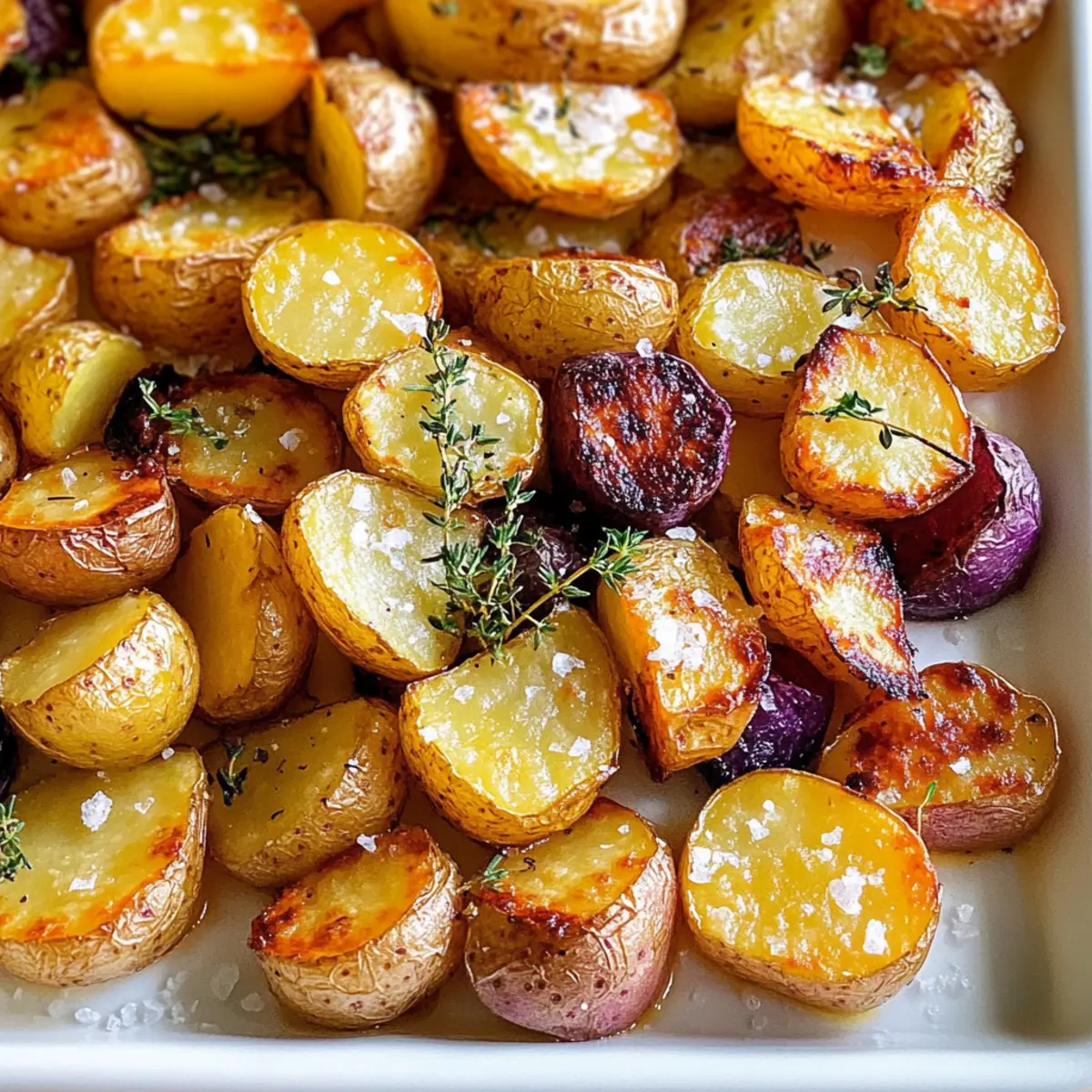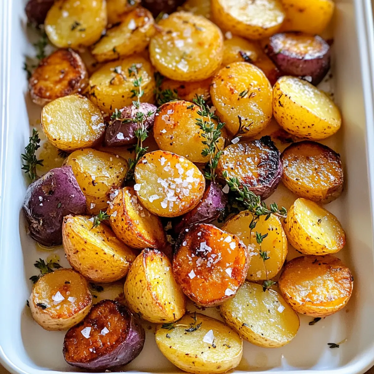 Die Küche erfüllt sich mit dem verführerischen Duft von frisch gerösteten Kartoffeln – ein angenehmes Gefühl, das jeden Raum lebendig macht. In unserem Rezept für knusprige Blechpfannen-Kartoffeln vereinen sich russet, süße und sogar lila Süßkartoffeln zu einem farbenfrohen Erlebnis, das an jedem Esstisch glänzt. Diese einfache Beilage ist nicht nur ein Blickfang, sondern auch blitzschnell zubereitet und ein Garant für knusprige Genussmomente. Perfekt für alltägliche Mahlzeiten oder festliche Anlässe, laden sie dazu ein, kreativ mit verschiedenen Gewürzen und Kartoffelsorten zu experimentieren. Welche Farben und Aromen wirst du probieren? Warum wirst du dieses Rezept lieben? Einfachheit pur: Die Zubereitung ist unkompliziert, ideal für Hobbyköche und beschäftigte Menschen. Knuspriger Genuss: Die Kombination von verschiedenen Kartoffelsorten sorgt für ein unwiderstehliches Geschmackserlebnis und knusprige Texturen, die bei jedem Bissen erfreuen. Vielseitigkeit: Dieses Rezept lässt sich leicht anpassen – experimentiere mit verschiedenen Kräutern oder füge weitere Gemüse wie Zucchini hinzu, um deine eigene Note zu setzen. Perfekt für jeden Anlass: Egal ob als Beilage zu einem saftigen Knuspriges Hähnchen Bacon oder einem festlichen Essen, diese Blechpfannen-Kartoffeln sind der Hit auf jedem Tisch. Einfache Aufbewahrung: Schnell zubereitet und die Reste bleiben in einem luftdichten Behälter bis zu 3 Tage frisch – perfekt für schnelle Snacks! Gesunde Option: Glutenfrei und vegetarisch, eine gesunde Wahl für jeden Tag. Knusprige Blechpfannen-Kartoffeln Zutaten Für die Kartoffeln Russet Kartoffeln – sorgen für eine fluffige Textur und knusprige Ränder. Substitution: Yukon Gold oder rote Kartoffeln für ähnliche Textur. Süßkartoffeln – fügen natürliche Süße und Farbe hinzu. Substitution: Butternut-Kürbisscheiben oder Karottenrunden. Lila Süßkartoffeln – bringen Farbe und Antioxidantien mit. Substitution: Normale Süßkartoffeln, falls nicht verfügbar. Für den Geschmack Butter – verstärkt den Reichtum und Geschmack. Hinweis: Verwende ganz Olivenöl für eine leichtere, milchfreie Option. Olivenöl – hilft beim Knusprigwerden und fügt eine fruchtige Note hinzu. Immer verwenden für gleichmäßiges Garen. Knoblauchpulver – sorgt für herzhaften Tiefgang. Substitution: Zwiebelpulver oder geräuchertes Paprika für Variationen. Salz und schwarzer Pfeffer – unerlässlich zur Geschmacksverbesserung. Frischer Thymian – bietet ein aromatisches Aroma. Substitution: Rosmarin, Oregano oder Salbei können ebenfalls verwendet werden. Schritt-für-Schritt-Anleitung für Knusprige Blechpfannen-Kartoffeln Schritt 1: Ofen vorheizen Heize den Ofen auf 200°C vor und bereite ein großes Backblech vor, indem du es mit Backpapier auslegst oder leicht mit Öl besprühst. Diese Vorbereitung sorgt dafür, dass deine knusprigen Blechpfannen-Kartoffeln nicht anhaften und gleichmäßig garen können. Schritt 2: Zutaten kombinieren In einer großen Schüssel die in gleichmäßige Scheiben geschnittenen Kartoffeln mit Olivenöl, geschmolzener Butter, Knoblauchpulver, Salz und Pfeffer gut vermengen. Achte darauf, dass alle Kartoffelscheiben gleichmäßig mit der Gewürzmischung bedeckt sind, um optimale Geschmack und Knusprigkeit zu erreichen. Schritt 3: Blech vorbereiten Verteile die marinierten Kartoffelscheiben in einer einzigen Schicht auf dem Backblech, ohne sie zu überlappen. Auf diese Weise können die Kartoffeln gleichmäßig garen und erhalten die gewünschte knusprige Textur. Schritt 4: Geschmack hinzufügen Platziere frische Thymianzweige zwischen den Kartoffelscheiben und träufle die restliche Buttermischung gleichmäßig darüber. Dies fügt während des Backens zusätzliches Aroma hinzu und sorgt für eine köstliche Kruste. Schritt 5: Backen Schiebe das Backblech in den vorheizten Ofen und backe die Kartoffeln für 25-30 Minuten. Wende die Kartoffelscheiben nach der Hälfte der Backzeit, sodass sie von beiden Seiten schön knusprig werden. Sie sind fertig, wenn sie goldbraun und an den Rändern knusprig sind. Schritt 6: Fertigstellen Sobald die knusprigen Blechpfannen-Kartoffeln aus dem Ofen kommen, bestreue sie sofort mit grobem Meersalz und frisch gehackter Petersilie. Dies bringt zusätzliche Frische und Geschmack, der hervorragend zu den gerösteten Aromen passt. Schritt 7: Servieren Serviere die warmen Kartoffeln direkt vom Blech als köstliche Beilage oder Snack. Ihre Vielseitigkeit macht sie zum perfekten Begleiter für jede Mahlzeit oder auch einfach so zum Genießen! Variationen & Substitute Lass deiner Kreativität freien Lauf und passe dieses Rezept nach deinem Geschmack an! Dairy-Free: Verwende anstelle von Butter nur Olivenöl für eine leichte, milchfreie Option. So bleibt der köstliche Geschmack erhalten. Würzige Variante: Füge eine Prise Cayennepfeffer oder einige rote Pfefferflocken zu den Kartoffeln hinzu, um einen aufregenden Kick zu verleihen. Diese Schärfe bringt eine ganz neue Dimension ins Spiel! Fettwechsel: Probiere Speckfett für einen herzhaften, rauchigen Geschmack. Der Unterschied ist erstaunlich und passt perfekt zu einem herzhaften Frühstück. Gemüse hinzufügen: Schlichte Süßkartoffeln ersetzen? Füge saisonales Gemüse wie Zucchini oder rote Paprika hinzu. Das schafft nicht nur Abwechslung, sondern bringt auch frische Farben auf den Tisch. Kräutermischung: Verwende statt Thymian frischen Rosmarin oder Oregano. Diese aromatischen Alternativen verleihen den Kartoffeln einen mediterranen Touch, der unglaublich lecker ist. Knoblauch-Hit: Mögen es deine Gäste extra aromatisch? Ersetze das Knoblauchpulver durch frisch gehackten Knoblauch. So wird dein Gericht noch geschmackvoller. Käse hinzufügen: Streue zum Ende der Backzeit geriebenen Parmesan oder Feta über die Kartoffeln. Das sorgt für eine schön geschmolzene Kruste voller Geschmack. Mit Geschmack verfeinern: Experimentiere mit ungepuffter Paprik
