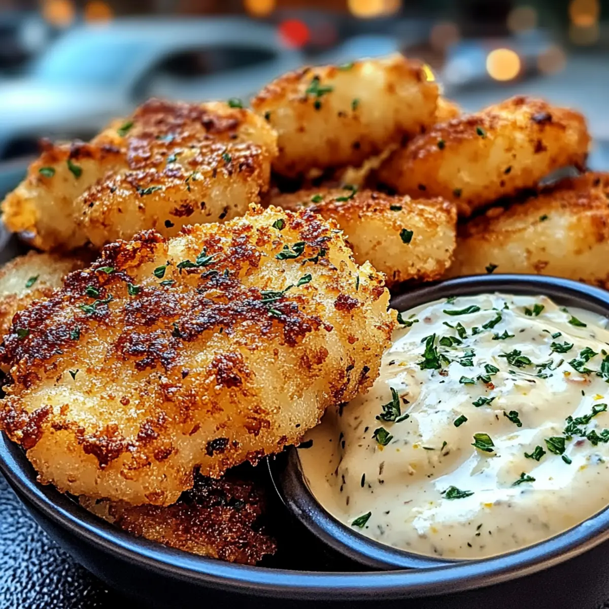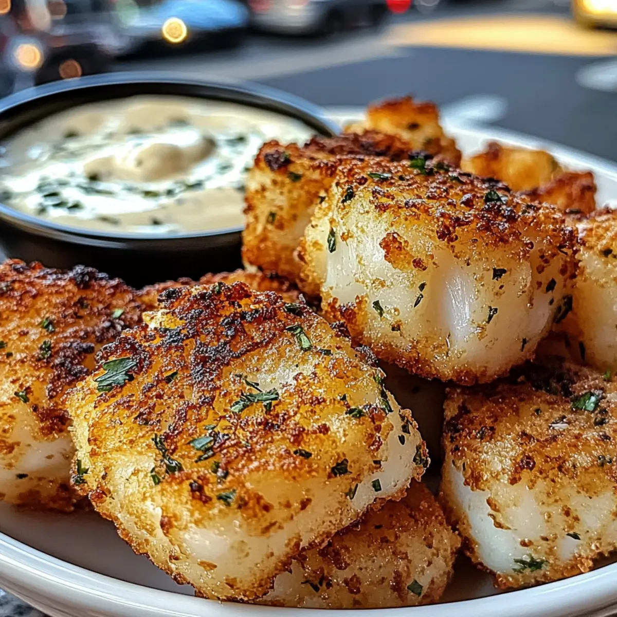 Wenn ich in der Küche stehe und den verführerischen Duft von frisch gebratenem Knoblauch wahrnehme, weiß ich, dass etwas Besonderes im Anmarsch ist. Diese knusprigen Knoblauch-Kabeljau-Bissen mit cremigem Zitronen-Kräuter-Dip sind der perfekte Snack, wenn ich mich nach einer gesunden, aber dennoch herzhaften Genussform sehne. Mit ihrer krossen Panko-Hülle und dem zarten, saftigen Kabeljau sind sie in kürzester Zeit zubereitet und ideal für gesellige Abende oder einen gemütlichen Abend zu Hause. Außerdem sind sie nicht nur kalorienbewusst, sondern auch eine großartige Quelle für gesundes Protein. Bist du bereit, in die Welt der herzhaften Köstlichkeiten einzutauchen und deine nächsten Gäste zu beeindrucken? Warum wirst du diese Bissen lieben? Einfachheit, die begeistert: Die Zubereitung dieser knusprigen Knoblauch-Kabeljau-Bissen ist schnell und unkompliziert, ideal für Kochanfänger und Profis. Herzhafte Aromen: Der kräftige Geschmack von Knoblauch, kombiniert mit dem frischen Zitronen-Dip, sorgt für eine Geschmacksexplosion, die deine Sinne verwöhnt. Super vielseitig: Ob für einen gemütlichen Filmabend oder als Vorspeise für eine Feier, diese Bissen passen immer – und sie sind einfach anpassbar! Gesunde Wahl: Mit Kabeljau als magerem Protein und einem Dip auf Basis von griechischem Joghurt machst du eine leckere, kalorienbewusste Entscheidung. Crowd-Pleaser: Deine Gäste werden begeistert sein, wenn sie diese köstlichen Häppchen probieren. Sie sind der perfekte Gesprächsstarter und bringen alle zusammen. Entdecke auch unsere Tipps für gelungene Snacks und gesunde Vorspeisen. Knusprige Knoblauch-Kabeljau-Bissen Zutaten • Hier sind die nötigen Zutaten für deine knusprigen Knoblauch-Kabeljau-Bissen mit cremigem Zitronen-Kräuter-Dip. Für die Bissen Kabeljaufilets – Die Hauptzutat, die für einen zarten und saftigen Biss sorgt. Substitution: Kann durch Schellfisch oder Seelachs ersetzt werden. Weizenmehl – Gibt dem Kabeljau Halt und Struktur. Substitution: Glutenfreies Mehl funktioniert ebenso gut. Knoblauchpulver – Verleiht den Bissen ein intensives Knoblaucharoma. Paprika – Sorgt für eine schöne Farbe und eine subtile Rauchnote. Salz – Verstärkt den Geschmack der Bissen. Schwarzer Pfeffer – Fügt eine milde Schärfe hinzu und rundet den Geschmack ab. Große Eier – Binden die Kruste am Fisch und sorgen für eine gleichmäßige Beschichtung. Panko-Semmelbrösel – Kreiert die wunderbar knusprige Textur. Substitution: Normale Semmelbrösel eignen sich ebenfalls, bieten jedoch weniger Crunch. Speiseöl – Zum Frittieren, unerlässlich für die perfekte Knusprigkeit. Für den Dip Mayonnaise – Die Basis für den Dip, sorgt für eine cremige Konsistenz. Griechischer Joghurt – Macht den Dip cremiger und erhöht den Proteingehalt. Zitronensaft und -schale – Bringen Frische und Säure in den Dip. Frischer Dill und Petersilie – Fügen aromatische Kräuternoten hinzu und machen den Dip lebendiger. Gehackter Knoblauch – Intensiviert das Knoblaucharoma im Dip. Hinweis: Nach Geschmack mit Salz und Pfeffer abschmecken. Mit diesen Zutaten bist du bestens gerüstet für deine knusprigen Knoblauch-Kabeljau-Bissen mit cremigem Zitronen-Kräuter-Dip! Schritt-für-Schritt-Anleitung für Knusprige Knoblauch-Kabeljau-Bissen mit cremigem Zitronen-Kräuter-Dip Step 1: Mehlmischung vorbereiten In einer flachen Schüssel vermengst du das Weizenmehl mit dem Knoblauchpulver, Paprika, Salz und schwarzem Pfeffer. Diese Kombination sorgt für den perfekten Rahmen für die knusprigen Knoblauch-Kabeljau-Bissen. Achte darauf, dass die Mischung gleichmäßig verteilt ist, und stelle sie dann beiseite, damit du sie später verwenden kannst. Step 2: Eier schlagen Schlage in einer separaten Schüssel die großen Eier gründlich auf. Du möchtest eine homogene Masse erreichen, die beim Bestreichen der Bissen dafür sorgt, dass die Panko-Semmelbrösel perfekt haften. Die Mischung sollte schaumig werden, was etwa 1-2 Minuten dauert. Step 3: Panko vorbereiten Lass die Panko-Semmelbrösel in einer dritten Schüssel bereitstehen. Diese Brösel werden für die knusprige Textur der Kabeljau-Bissen entscheidend sein. Wenn du möchtest, kannst du die Brösel leicht anrösten, um ihnen zusätzlichen Geschmack zu verleihen, bevor du mit dem Panieren beginnst. Step 4: Kabeljau panieren Nimm ein Stück Kabeljaufilet und wende es zuerst in der Mehlmischung, sodass es gut bedeckt ist. Tauche es nun in die Eiermasse, sodass die gesamte Oberfläche benetzt ist, und rolle es dann in den Panko-Semmelbröseln. Drücke leicht, damit die Brösel haften bleiben und eine knusprige Kruste entstehen kann. Step 5: Öl erhitzen Erhitze in einer tiefen Pfanne etwa 1,5 cm Speiseöl auf mittelhoher Stufe. Um sicherzustellen, dass das Öl heiß genug ist, kannst du einen kleinen Test machen, indem du ein paar Brösel hineinwirfst; sie sollten sofort aufsteigen. Dies dauert etwa 5 Minuten, stelle sicher, dass das Öl nicht raucht. Step 6: Kabeljau braten Frittieren die vorbreiteten Kabeljau-Bissen in Chargen, damit sie genügend Platz haben. Brate sie für etwa 3-4 Minuten auf jeder Seite, bis sie goldbraun und knusprig sind. Achte darauf, dass die Temperatur stabil bleibt, um eine gleichmäßige Bräunung zu erreichen. Step 7: Abtropfen lassen Nehme die Kabeljau-Bissen mit einer Zange aus der Pfanne und lasse sie auf einem mit Küchenpapier ausgelegten Teller abtropfen. Dadurch wird überschüssiges Öl entfernt und deine knusprigen Knoblauch-Kabeljau-Bissen bleiben angenehm leicht und knusprig. Step 8: Dip zubereiten Für den cremigen Zitronen-Kräuter-Dip mischst du in einer Schüssel die Mayonnaise, den griechischen Joghurt, Zitronensaft und -schale, frischen Dill, Petersilie sowie gehackten Knoblauch. Rühre alles gut durch, bis eine gleichmäßige, cremige Konsistenz entsteht. Schmecke den Dip nach Geschmack mit Salz und Pfeffer ab. Step 9: Servieren Serviere die knusprigen Knoblauch-Kabeljau-Bi
