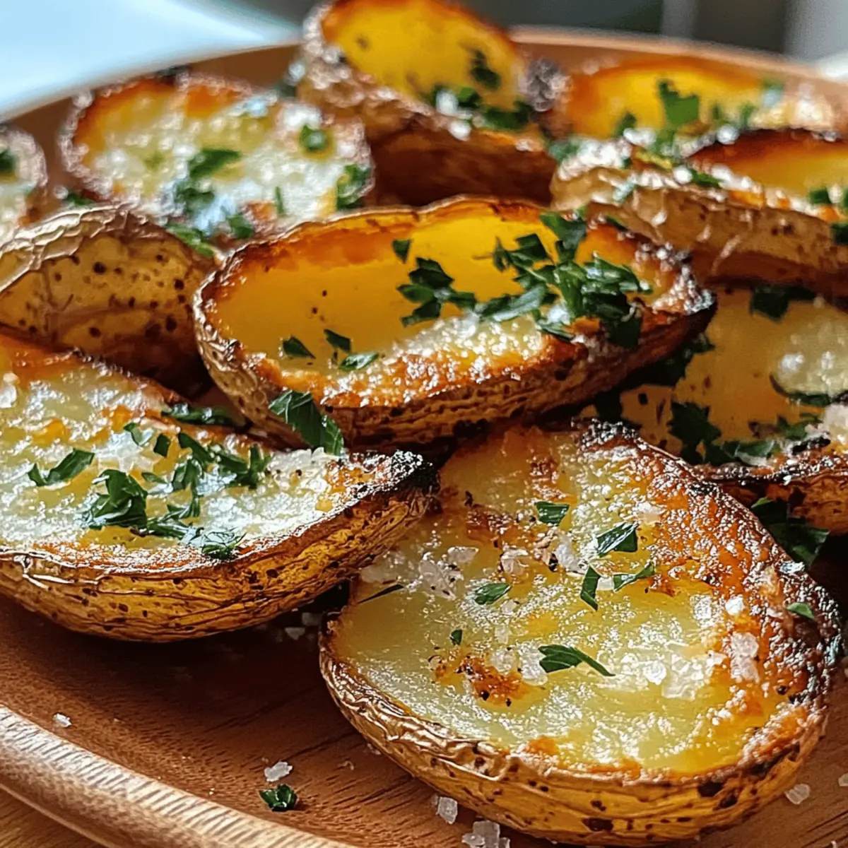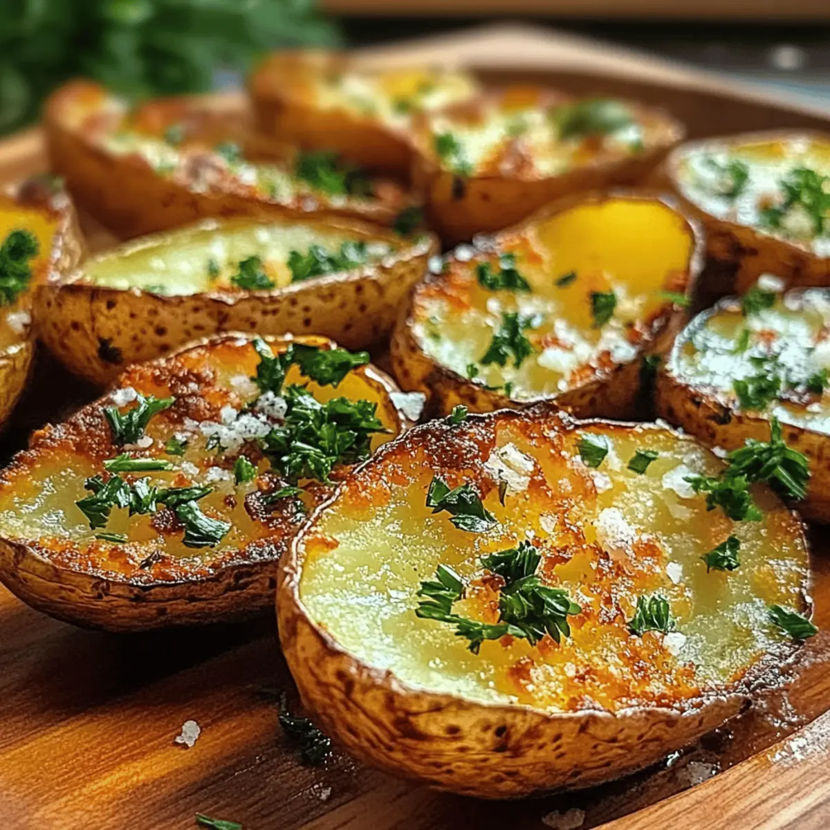 Genießen Sie diese knusprigen Knoblauch-Kräuter Kartoffelhälften als köstlichen Snack oder aufregendes Fingerfood auf Ihrer nächsten Feier!