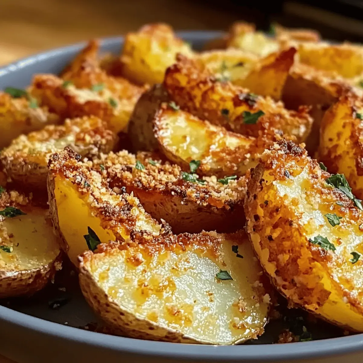 Als ich neulich in meiner Küche stand, überkam mich ein unwiderstehlicher Geruch von gerösteten Kartoffeln, der mich sofort an gemütliche Abendessen und herzliche Familienmomente erinnerte. Es sind meine knusprigen Parmesan-Kartoffeln – das perfekte Ofenbeilagen-Rezept, das sowohl einfach zuzubereiten als auch ein echter Hit bei meinen Gästen ist. Diese goldbraunen Kartoffelspalten werden von einer unwiderstehlichen Parmesan-Kruste umhüllt und mit einer aromatischen Kombination aus Knoblauch und Paprika gewürzt, die jedes Gericht aufwertet. Ob für ein entspanntes Wochenende oder ein schnelles Feierabendessen, dieses Rezept hält neben dem köstlichen Geschmack auch die Vorteile der bequemen Zubereitung für dich bereit. Neugierig, wie du aus einfachen Zutaten ein Gericht zaubern kannst, das allen schmeckt? Lass uns gleich anfangen! Warum werden diese Kartoffeln geliebt? Einfachheit, die Zubereitung dieser knusprigen Parmesan-Kartoffeln ist kinderleicht und erfordert nur grundlegende Kochkenntnisse. Köstlicher Geschmack, die Kombination aus Parmesan und Gewürzen sorgt für ein unvergessliches Geschmackserlebnis. Vielseitigkeit, perfekt als Beilage zu Gegrilltem oder in Kombination mit einem cremigen Dip wie Knoblauch-Aioli. Schnelligkeit, in weniger als 30 Minuten kannst du ein köstliches Gericht servieren. Und selbstverständlich die Zufriedenheit der Gäste, diese Kartoffeln sind ein Hit bei jedem Anlass, ob bei Familienfeiern oder gemütlichen Abendessen. Probiere auch unser Rezept für Knuspriger Parmesan Spargel oder Knuspriges Parmesan Huehnchen als tolle Ergänzungen zu deinem Menü! Crispy Crunchy Parmesan Kartoffel Zutaten Für die Kartoffeln • Yukon Gold oder Russet Kartoffeln – Ideal für eine perfekte Textur; Yukon Gold bringen einen buttrigen Geschmack. • Frisch geriebener Parmesan – Für die knusprige Kruste; authentischer Parmigiano Reggiano liefert die besten Ergebnisse. • Olivenöl oder geschmolzene Butter – Fügt Reichtum hinzu; Olivenöl für einen milderen Geschmack, Butter für mehr Tiefe. • Knoblauchpulver – Erhöht die herzhaften Noten; frischer, gehackter Knoblauch ist eine tolle Alternative. • Paprika – Für Wärme und Farbe; geräucherte Paprika sorgt für noch mehr Tiefe. • Salz und Pfeffer – Unverzichtbar für die Geschmacksbalance. • Frische Kräuter (z.B. Petersilie oder Thymian) – Sorgt optional für Farbe und Aroma. Schritt-für-Schritt-Anleitung für Knusprige Parmesan Kartoffeln Schritt 1: Ofen vorheizen Heize den Ofen auf 220°C vor, damit die Kartoffeln schön knusprig werden. Während der Ofen aufheizt, kannst du die Kartoffeln vorbereiten, damit alles bereit ist, wenn die Temperatur erreicht ist. Schritt 2: Kartoffeln vorbereiten Wasche die Yukon Gold oder Russet Kartoffeln und schneide sie in 0,5 cm dicke Scheiben oder Spalten. Lege die geschnittenen Kartoffeln für 20-30 Minuten in kaltes Wasser, um überschüssige Stärke zu entfernen. Dies hilft, die gewünschte Knusprigkeit zu erzielen. Schritt 3: Kartoffeln abtropfen und trocknen Sobald die Kartoffeln eingeweicht sind, lasse sie gut abtropfen und tupfe sie gründlich mit einem Küchentuch trocken. Dies ist wichtig, um die Kartoffelscheiben so knusprig wie möglich zu machen, während sie im Ofen gebacken werden. Schritt 4: Parmesan-Mischung vorbereiten In einer großen Schüssel kombinierst du den frisch geriebenen Parmesan, das Olivenöl oder die geschmolzene Butter, das Knoblauchpulver und die Paprika. Würze das Gemisch mit Salz und Pfeffer, um den Geschmack zu intensivieren. Rühre alles gut um, bis eine gleichmäßige Paste entsteht. Schritt 5: Kartoffeln in die Mischung tauchen Gib die abgetropften Kartoffelscheiben in die Schüssel mit der Parmesan-Mischung. Mische sie gründlich, damit jede Scheibe gleichmäßig mit der gewürzten Mischung überzogen wird. Dies sorgt für eine köstliche Kruste, wenn sie gebacken werden. Schritt 6: Kartoffeln auf das Backblech legen Lege die gut beschichteten Kartoffelscheiben in einer einzigen Schicht auf ein mit Backpapier ausgelegtes Backblech. Achte darauf, die Kartoffeln nicht zu dicht nebeneinander zu legen, damit sie gleichmäßig garen und knusprig werden. Schritt 7: Backen der Kartoffeln Backe die Kartoffeln im vorgeheizten Ofen für 25-30 Minuten. Wende die Kartoffelscheiben nach der Hälfte der Backzeit, damit sie von beiden Seiten goldbraun und knusprig werden. Achte darauf, dass sie eine appetitliche, goldbraune Farbe annehmen. Schritt 8: Garnieren und Servieren Wenn die Knusprigen Parmesan Kartoffeln fertig sind, hole sie aus dem Ofen und lasse sie kurz abkühlen. Vor dem Servieren kannst du sie mit frischen Kräutern wie Petersilie oder Thymian garnieren, um Farbe und Aroma hinzuzufügen. Vorbereitung für die Knusprigen Parmesan Kartoffeln Die Zubereitung der Knusprigen Parmesan Kartoffeln kann durch einige einfache Vorbereitungen enorm erleichtert werden! Du kannst die Kartoffeln bis 24 Stunden im Voraus schneiden und in kaltes Wasser legen, um die Stärke zu entfernen; so bleiben sie frisch und verhindern, dass sie braun werden. Eine weitere Möglichkeit besteht darin, die Parmesan-Mischung (Parmesan, Olivenöl, Knoblauchpulver und Paprika) im Voraus zu kombinieren und im Kühlschrank zu lagern. Wenn du bereit bist zu kochen, tupfe die Kartoffeln trocken, mische sie mit der einzelnen Mischung und backe sie einfach für 25-30 Minuten bis sie goldbraun sind. So kannst du wertvolle Zeit sparen und trotzdem ein köstliches Gericht genießen, das ganz frisch und knusprig ist! Expertentipps für knusprige Parmesan-Kartoffeln Die richtige Kartoffelwahl: Nutze Yukon Gold oder Russet für die beste Textur; achte darauf, dass sie gleichmäßig groß sind, um ein gleichmäßiges Garen zu erzielen. Wasserbad verwenden: Das Einweichen der Kartoffeln in kaltem Wasser entfernt überschüssige Stärke und hilft, die gewünschte Knusprigkeit zu erreichen, also nicht auslassen! Sorgfältig abtrocknen: Tupfe die Ka