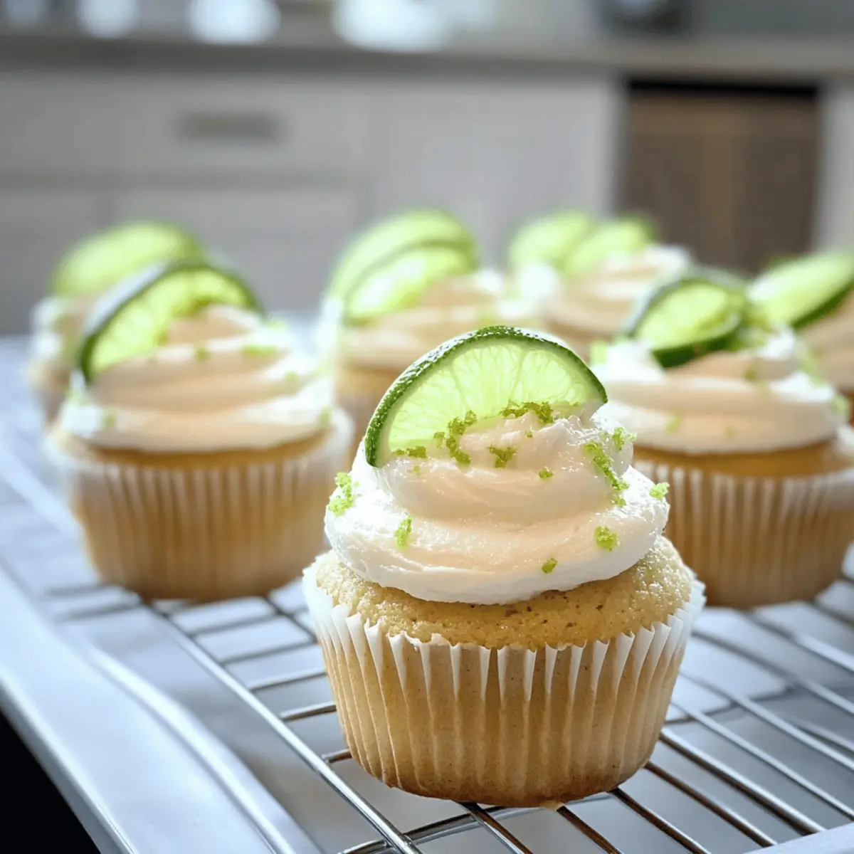 8. Kühlen Sie die Cupcakes vollständig ab und dekorieren Sie sie mit dem Limetten-Frosting.