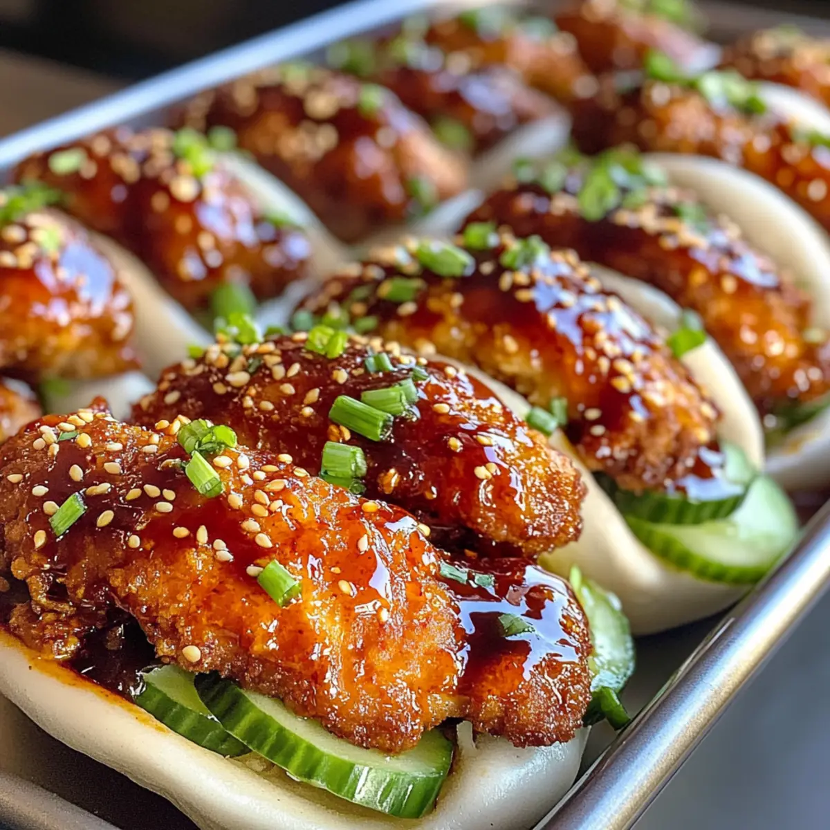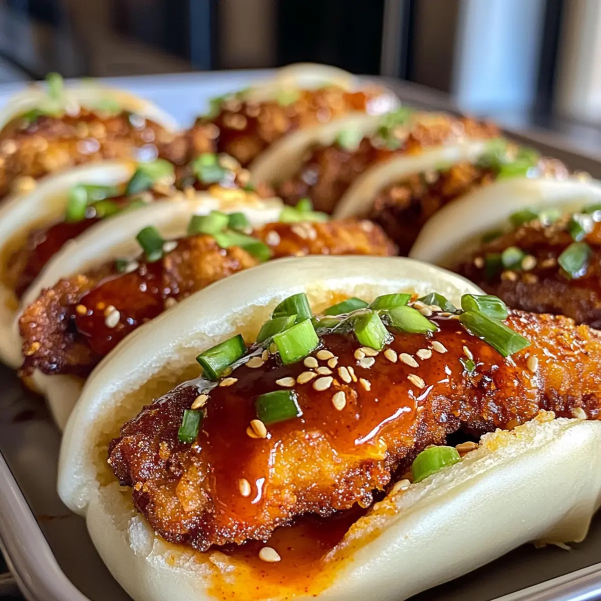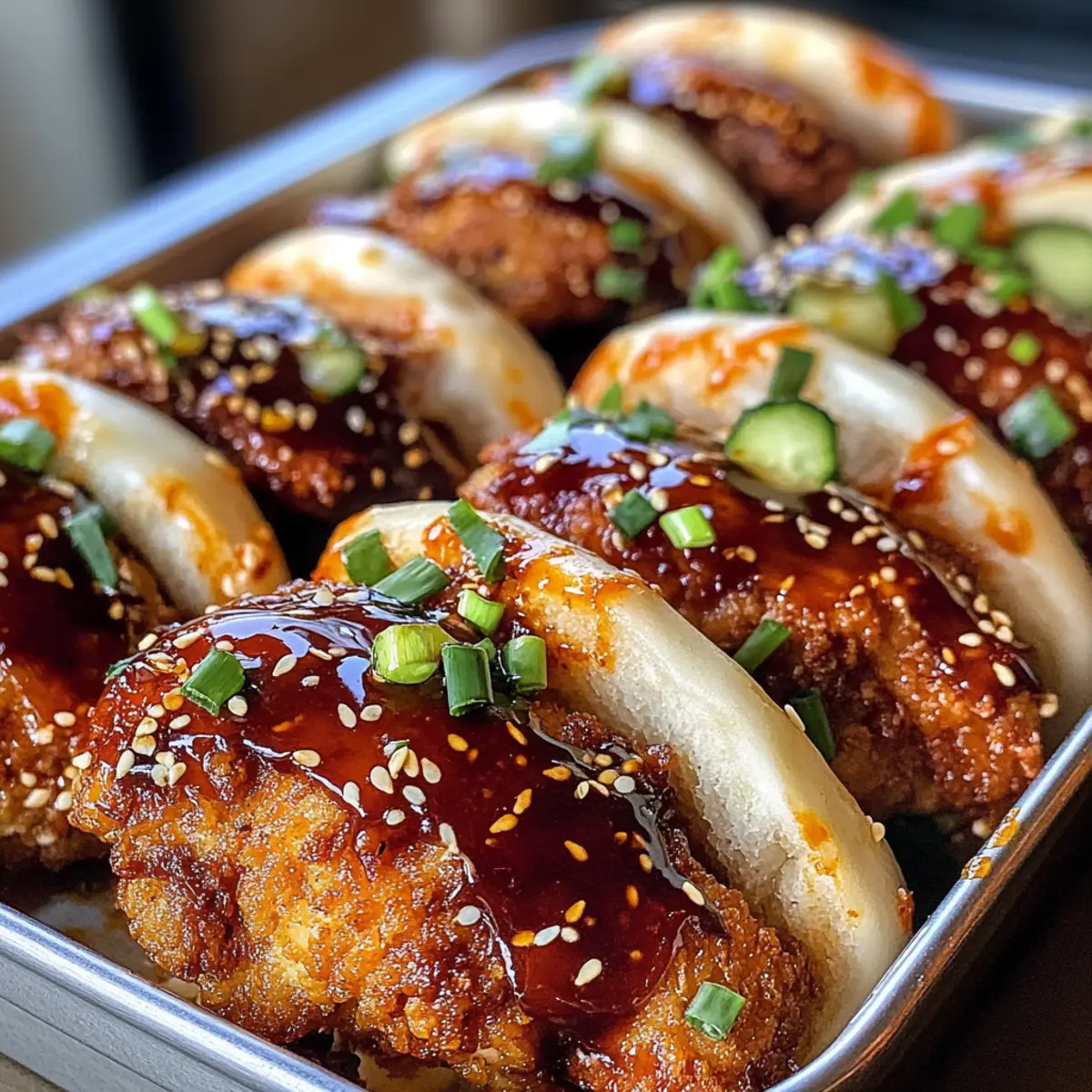 Die ersten Dampfwölkchen stiegen auf, und ein köstlicher Duft durchzog die Küche – ein unwiderstehliches Zeichen, dass es Zeit für die Zubereitung meiner hausgemachten Korean Fried Chicken Bao Buns ist. Diese kleinen, fluffigen Teigtaschen sind nicht nur ein wahrer Hingucker, sondern auch ein Genuss für den Gaumen. Mit ihrem knusprigen, würzigen Hühnchen, das in einer leicht süßen und scharfen Sauce getaucht ist, sind sie die perfekte Lösung für ein schnelles, aber beeindruckendes Familienessen oder als schicke Häppchen für deine nächste Feier. Und das Beste daran? Diese Bao Buns sind einfach zuzubereiten, ob du sie von Grund auf neu machst oder auf gefrorene zurückgreifst. Bist du bereit, dein nächstes Kocherlebnis zu beginnen und deine Lieben mit einem besonderen Gericht zu überraschen? Warum du diese Bao Buns lieben wirst Einfachheit: Die Zubereitung ist unkompliziert und erfordert nur wenige grundlegende Kochkenntnisse, was sie perfekt für Anfänger macht. Aromatische Explosion: Die Kombination aus knusprigem Hühnchen und der würzigen Sauce sorgt für ein Geschmackserlebnis, das deine Geschmacksknospen tanzen lässt. Vielseitigkeit: Du kannst die Füllung variieren, sei es mit Tofu für eine vegane Option oder einer süßen Ananasalternative – die Möglichkeiten sind endlos! Beeindruckende Präsentation: Diese Bao Buns sind nicht nur lecker, sondern sehen auch auf jedem Tisch äußerst ansprechend aus. Schnell zubereitet: Egal, ob du sie frisch machst oder gefrorene Versionen nutzt, sie sind in kürzester Zeit bereit zum Genießen. Mach deine nächste Feier unvergesslich und serviere diese Bao Buns als köstliche Fingerfood-Option! Korean Fried Chicken Bao Buns Zutaten Hier sind alle Zutaten, die du benötigst, um diese köstlichen Bao Buns zuzubereiten: Für den Teig Weizenmehl – sorgt für die Struktur der Bao Buns; du kannst bleiches Mehl verwenden, um hellere Buns zu erhalten. Maisstärke – sorgt für eine leichte und fluffige Textur; keine Substitute empfohlen, aber andere Stärken könnten funktionieren. Zucker – fügt Süße hinzu; kann durch normalen Zucker ersetzt werden, falls notwendig. Instanthefepulver – lässt die Buns aufgehen und macht sie weich; kann durch aktiviertes Trockenhefe ersetzt werden. Backpulver – hilft beim Aufgehen der Buns; unbedingt verwenden, da es für die Textur wichtig ist. Warmes Wasser – aktiviert die Hefe und hydratisiert das Mehl; benutze angenehm warmes, nicht kochendes Wasser. Pflanzenöl – sorgt für Feuchtigkeit und hilft dabei, die Schichten im Teig zu bilden; neutralen Öl verwenden. Für die Füllung Hähnchenschenkel/-brust – die proteinreiche Füllung, zart und saftig; Schenkel sind saftiger. Meersalz und weißer Pfeffer – Gewürze, die den Geschmack des Hähnchens verbessern. Sojasauce – fügt der Marinade Umami hinzu; ersetzbar mit Tamari für eine glutenfreie Variante. Shaoxing-Kochwein – trägt zum Geschmack der Marinade bei; kann durch trockenen Sherry ersetzt oder weggelassen werden. Eiklar – bindet die Marinade; wichtig zum Beschichten; kann weggelassen oder durch eine vegane Alternative ersetzt werden. Gochujang – der Schlüssel zur scharfen Glasur des Hähnchens; kannst durch koreanische Chilipaste ersetzen, die Menge je nach Schärfegrad anpassen. Honig – sorgt für die Süße in der scharfen Sauce; ersetzbar durch Ahornsirup für eine vegane Option. Knoblauch – fügt der Sauce Tiefe hinzu; frischer Knoblauch ist für den besten Geschmack empfehlenswert. Für die Garnitur Gurke, Frühlingszwiebeln, Sesamsamen – verleihen Knusprigkeit und Frische; optional sind auch Radieschen oder Salat möglich. Viel Spaß beim Kochen deiner Korean Fried Chicken Bao Buns! Schritt-für-Schritt-Anleitung für Honig Knoblauch Rippchen Step 1: Teig für die Bao Buns vorbereiten Vermische in einer großen Schüssel das Weizenmehl, die Maisstärke, den Zucker, das Instanthefepulver und das Backpulver gut. Füge dann langsam das warme Wasser und das Pflanzenöl hinzu. Knete den Teig auf einer bemehlten Fläche etwa 10 Minuten lang, bis er glatt und elastisch ist. Lasse den Teig in einer geschlossenen Schüssel für 1 bis 1,5 Stunden an einem warmen Ort aufgehen, bis er sich verdoppelt hat. Step 2: Bao Buns formen Wenn der Teig aufgegangen ist, forme ihn auf einer leicht bemehlten Fläche zu einer Rolle und teile ihn in gleichmäßige Portionen. Rolle jede Portion zu einer runden Scheibe aus, etwa 1 cm dick. Decke die geformten Teigscheiben mit einem feuchten Tuch ab und lasse sie für weitere 30 Minuten ruhen, damit sie leicht aufgehen. Step 3: Bao Buns dämpfen Bereite einen Dampfgarer oder einen großen Topf mit einem Dämpfeinsatz vor und bringe Wasser zum Kochen. Lege die geformten Buns in den Dampfgarer und dämpfe sie für 10 bis 12 Minuten, bis sie schön aufgeplustert und durchgegart sind. Achte darauf, dass sie nicht aneinander kleben, indem du genug Platz zwischen den Buns lässt. Step 4: Hähnchen marinieren In einer Schüssel kombinierst du die Hähnchenteile mit Meersalz, weißem Pfeffer, Sojasauce, Shaoxing-Kochwein, Eiklar, Gochujang und Honig. Vermische alles gut, sodass das Hähnchen gleichmäßig bedeckt ist, und lasse die Marinade für mindestens 30 Minuten im Kühlschrank ruhen, damit die Aromen einziehen können. Step 5: Hähnchen frittieren Erhitze in einer tiefen Pfanne ausreichend Pflanzenöl auf mittlerer Hitze (ca. 165°C). Nimm die marinierten Hähnchenteile und wälze sie in einer Mischung aus Mehl und Maisstärke. Lege die Hähnchenstücke vorsichtig ins heiße Öl und brate sie auf jeder Seite für 4-5 Minuten goldbraun und knusprig. Stelle sicher, dass sie durchgegart sind. Step 6: Scharfe Sauce vorbereiten In einem kleinen Topf erhitze die restlichen Zutaten für die Sauce: Gochujang, Honig, zerdrückte Knoblauchzehen und einen Schuss Wasser. Bringe die Mischung zum Kochen und lasse sie bei niedriger Hitze für 5-7 Minuten köcheln, bis sie leicht eindickt. Rüh