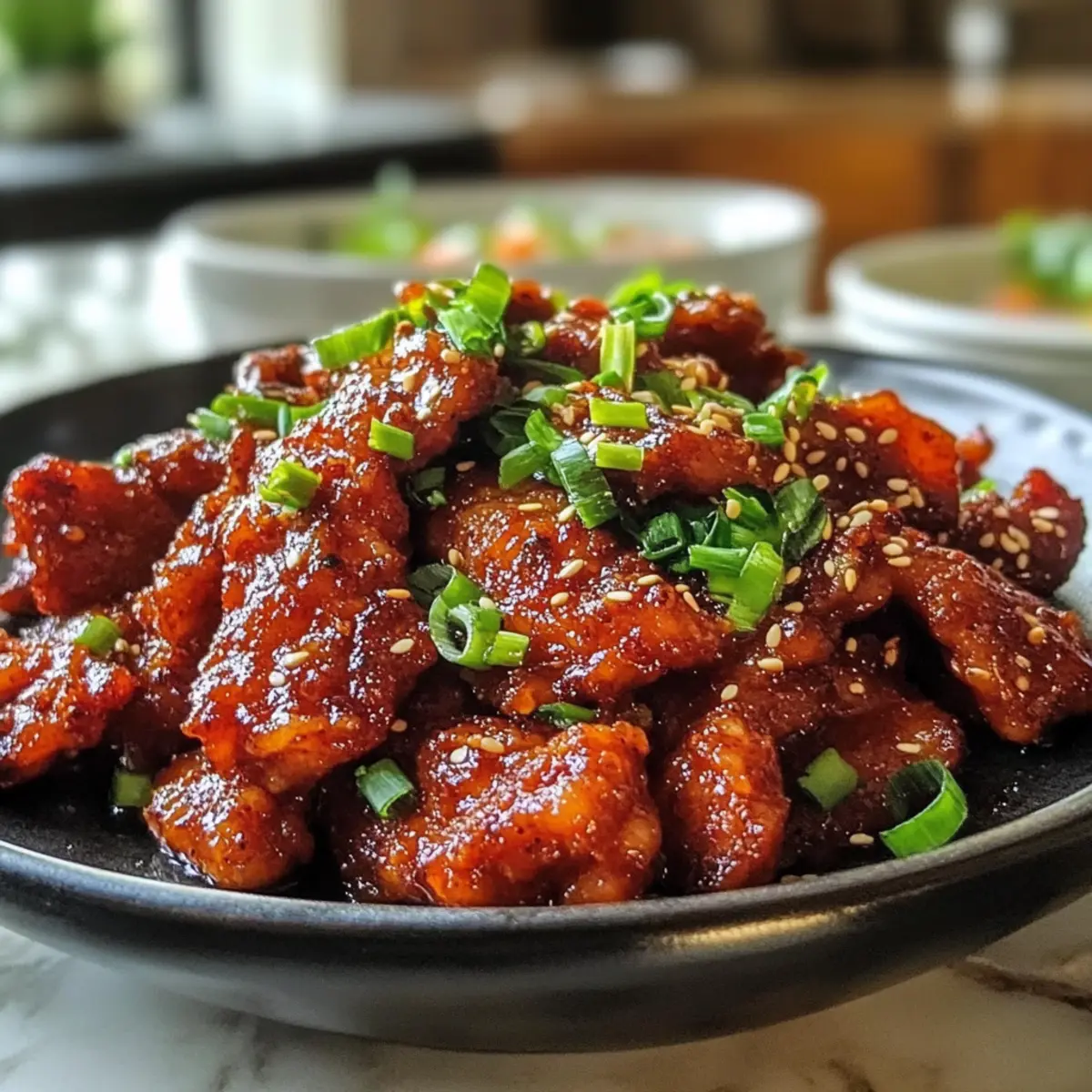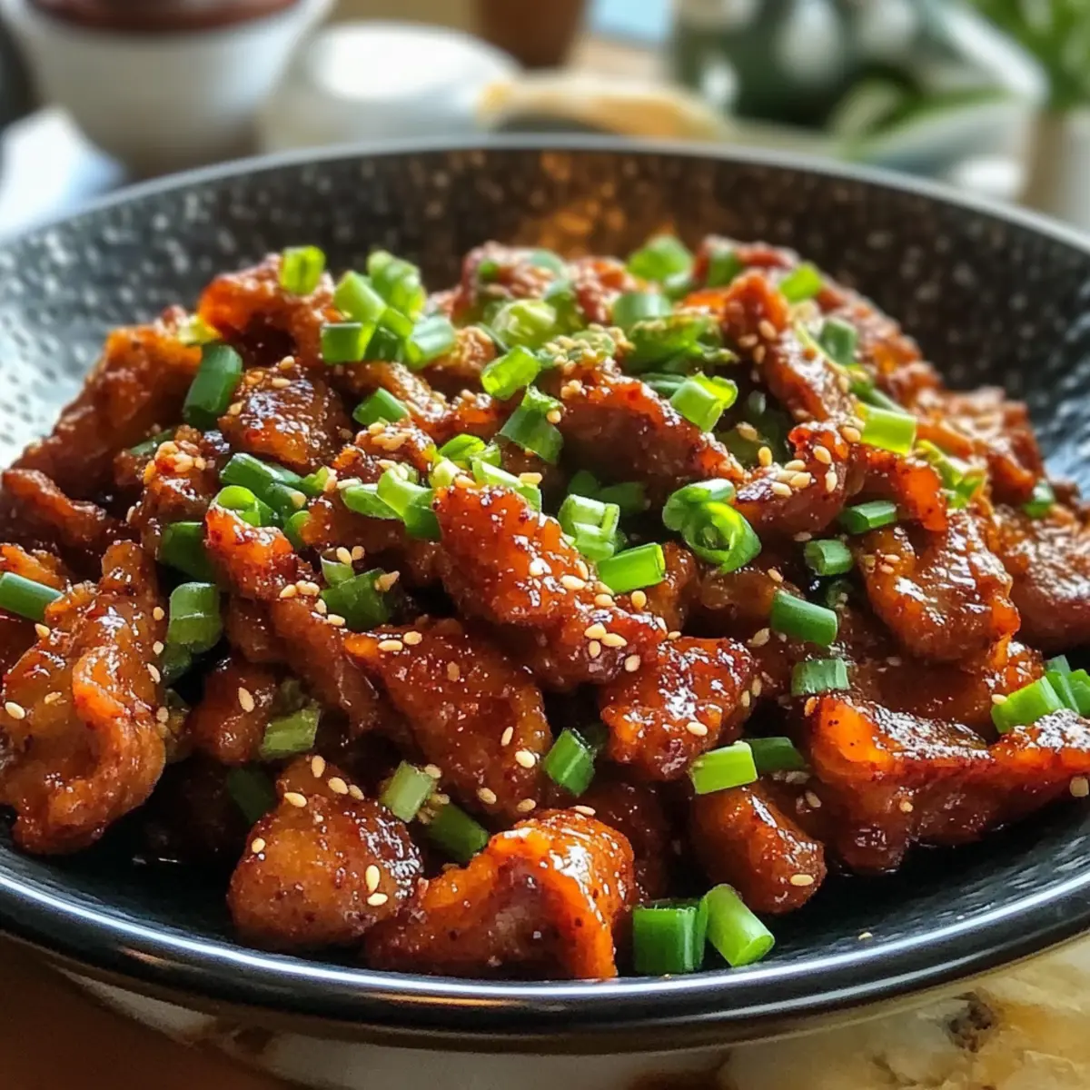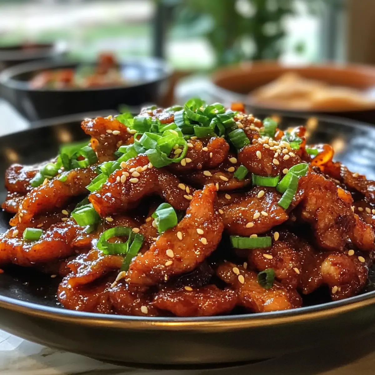 Eines Abends, während ich in meiner Küche werkelte, erblickte ich ein vertrautes, jedoch aufregendes Gericht: Koreanisches scharfes Bulgogi. Die Vorstellung von zartem, mariniertem Schweinefleisch, das mit einer köstlichen Mischung aus Knoblauch, Sojasauce und der pikanten Schärfe von Gochujang gefüllt ist, ließ mir das Wasser im Mund zusammenlaufen. In nur 30 Minuten kann dieses Gericht auf den Tisch kommen und eignet sich perfekt für geschäftige Wochentage oder gemütliche Abende mit Freunden. Die simple Zubereitung macht es nicht nur zu einem echten Stresslöser, sondern auch zu einem absoluten Hit bei jedem Festessen. Welche Beilagen würden wohl am besten zu diesem authentischen Geschmackserlebnis passen? Warum ist Bulgogi so besonders? Vielfalt: Koreanisches scharfes Bulgogi ist ein vielseitiges Gericht, das mit verschiedenen Fleischsorten, wie Hühnchen oder Rind, angepasst werden kann. Schnelligkeit: In nur 30 Minuten steht ein leckeres Abendessen auf dem Tisch – ideal für stressige Wochentage. Einfachheit: Die Zubereitung erfordert nur grundlegende Kochkenntnisse und sorgt dafür, dass auch Kochanfänger begeistert sind. Aromatische Explosion: Die Kombination aus Gochujang und frischen Aromen schafft ein Geschmackserlebnis, das Ihre Geschmacksknospen weckt. Kombinieren Sie es mit einer Beilage wie frisch zubereitetem Reis oder einem Salat, um das Festessen zu perfektionieren. Für noch mehr köstliche Ideen schauen Sie sich auch mein Rezept für Honig Scharfes Cajun oder Süßscharfes Chili Hühnchen an! Zutaten für Koreanisches scharfes Bulgogi Für die Marinade • Sojasauce – sorgt für einen salzigen Umami-Geschmack; verwenden Sie eine natriumarme Variante für eine gesündere Option. • Gochujang (Koreanische Chilipaste) – fügt Würze und Tiefe hinzu; passen Sie die Menge nach Ihrem Geschmack an, um die Schärfe zu regulieren. • Sesamöl – verleiht eine nussige Note und reichhaltigen Geschmack. • Brauner Zucker – sorgt für Süße; kann durch Honig ersetzt werden für eine andere Geschmacksrichtung. • Knoblauch (gehackt) – verstärkt die Aromen; frisch ist für den maximalen Geschmack am besten. • Ingwer (gehackt) – bringt Wärme und Tiefe, verwenden Sie frischen Ingwer für die besten Ergebnisse. • Reiswein oder Mirin – verleiht eine subtile Süße und Komplexität. Für das Hauptgericht • Schweineschulter (dünn geschnitten) – die Hauptproteinquelle; kann mit anderen Fleischsorten wie Filet oder Huhn ersetzt werden. • Pflanzenöl – zum Braten; verhindert das Ankleben beim Garen. Zur Garnitur • Frühlingszwiebel (gehackt) – verleiht Frische und Farbe. • Sesamsamen – optional, sorgen für zusätzlichen Crunch und eine ansprechende Optik. Koreanisches scharfes Bulgogi ist schnell zubereitet und bringt eine Fülle von Aromen auf den Tisch! Schritt-für-Schritt-Anleitung für Koreanisches scharfes Bulgogi Step 1: Marinade vorbereiten In einer großen Schüssel die Sojasauce, Gochujang, Sesamöl, braunen Zucker, gehackten Knoblauch, Ingwer und Reiswein gut vermischen. Rühren Sie die Zutaten etwa 1–2 Minuten lang, bis der Zucker vollständig aufgelöst ist und eine homogene Marinade entsteht. Diese Aromamischung wird das koreanische scharfe Bulgogi köstlich würzen. Step 2: Schweinefleisch marinieren Fügen Sie das dünn geschnittene Schweinefleisch zur Marinade hinzu und mischen Sie alles sorgfältig, sodass jedes Stück gut bedeckt ist. Decken Sie die Schüssel mit Frischhaltefolie ab und lassen Sie das Fleisch mindestens 15 Minuten bis maximal 2 Stunden im Kühlschrank marinieren, damit die Aromen intensiv durchziehen können. Step 3: Öl erhitzen Erhitzen Sie in einer großen Pfanne bei mittelhoher Temperatur etwa 2 Esslöffel Pflanzenöl. Warten Sie, bis das Öl heiß ist, aber noch nicht raucht. Dies dauert etwa 1–2 Minuten. Ein heißes Öl sorgt dafür, dass das koreanische scharfe Bulgogi gleichmäßig gebraten wird und eine köstliche, karamellisierte Kruste erhält. Step 4: Schweinefleisch braten Geben Sie das marinierte Schweinefleisch in die heiße Pfanne und verteilen Sie es in einer gleichmäßigen Schicht. Braten Sie das Fleisch für 3–5 Minuten, bis es durchgegart und goldbraun ist. Wenden Sie die Stücke regelmäßig, damit sie gleichmäßig bräunen und die Marinade gut karamellisiert. Step 5: Anrichten und Servieren Sobald das Schweinefleisch fertig ist, nehmen Sie die Pfanne vom Herd. Garnieren Sie das koreanische scharfe Bulgogi mit gehackten Frühlingszwiebeln und optional mit Sesamsamen für zusätzlichen Crunch. Servieren Sie das Gericht heiß, idealerweise mit frisch gedämpftem Reis oder in knackigen Salatblättern für ein leckeres Essgefühl. Vorbereiten für schnelles Koreanisches scharfes Bulgogi Koreanisches scharfes Bulgogi lässt sich hervorragend im Voraus zubereiten, was besonders für vielbeschäftigte Wochen bestens geeignet ist! Sie können das Schweinefleisch bis zu 24 Stunden vor dem Kochen marinieren, um die Aromen noch intensiver werden zu lassen. Einfach das dünn geschnittene Schweinefleisch in die Marinade legen und abdecken, bevor Sie es im Kühlschrank aufbewahren. Achten Sie darauf, die Marinade gut zu vermischen, um eine gleichmäßige Verteilung der Aromen zu gewährleisten. Wenn Sie bereit sind zu kochen, erhitzen Sie einfach das Öl in der Pfanne, braten das marinierte Fleisch für 3-5 Minuten und servieren es frisch mit Ihrem Lieblingsbeilagen. So haben Sie in kürzester Zeit ein leckeres und aromatisches Abendessen! Tipps für das beste Koreanische scharfe Bulgogi • Marinierzeit: Lassen Sie das Schweinefleisch mindestens 30 Minuten marinieren, idealerweise bis zu 2 Stunden, um die Aromen besser durchziehen zu lassen. • Fleischdicke: Achten Sie darauf, das Schweinefleisch sehr dünn zu schneiden, damit es zart bleibt und gleichmäßig gart. • Hitze regulieren: Braten Sie das Fleisch bei mittelhoher Hitze, um ein Anbrennen zu vermeiden und eine perfekte Karamel